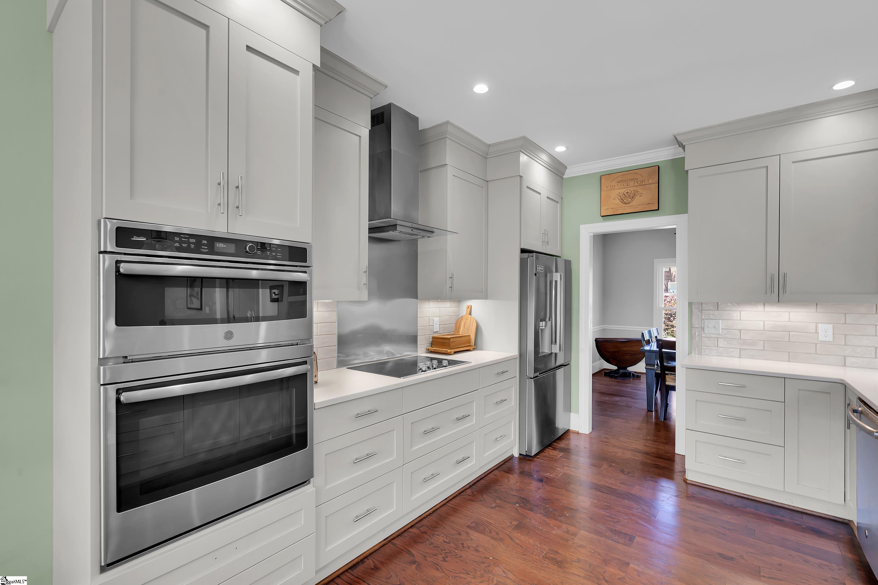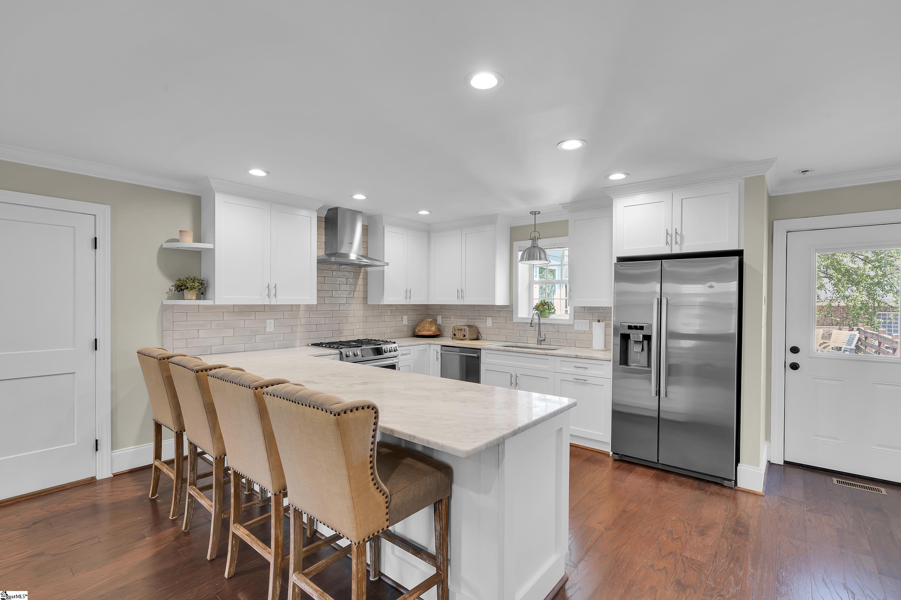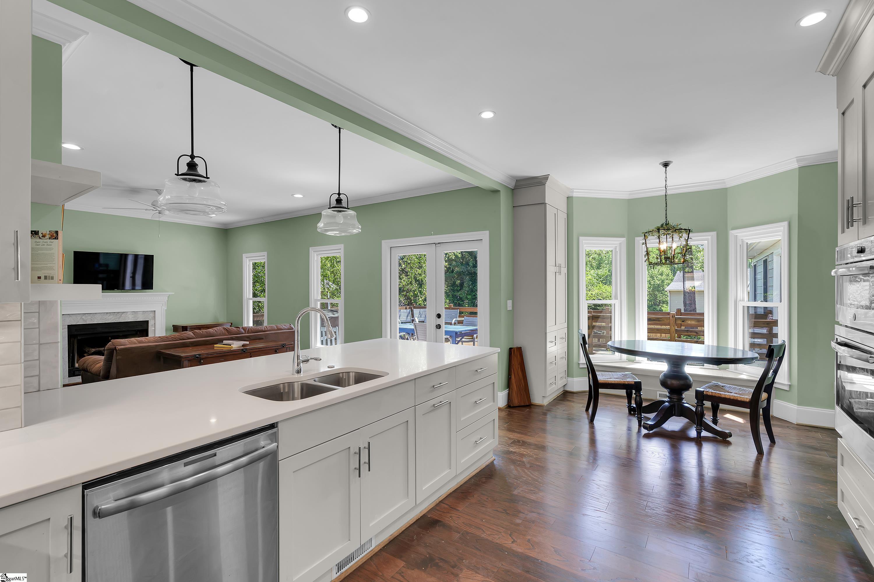Unique opportunity! This thoughtfully renovated home offers a rare combination of space, flexibility, luxury, and everyday livability, highlighted by a true secondary living suite (part of main level) that functions as a fully independent residence. Renovated in recent years, the property features two stunning kitchens, 2 laundry rooms, and beautifully updated baths, all finished with a cohesive, modern aesthetic. Both living areas have been carefully designed to feel connected yet private, with separate entrances and a seamless flow that allows each side to function independently without sacrificing the overall integrity of the home. The kitchens are a standout, offering full-size layouts with quality finishes and thoughtful design, while the bathrooms reflect the same level of attention to detail and refinement. The secondary suite includes its own kitchen, living area, bedroom, bath, and wine refrigerator, providing exceptional flexibility for extended family, guests, or private living arrangements. The main living areas are equally well-appointed, featuring a gas fireplace, dedicated office space, and custom built-in shelving and storage throughout. Recessed lighting, updated systems including multi-zoned HVAC, on-demand hot water, and a one-year-old roof and windows reflect the level of care and investment in the home. A mudroom adds everyday convenience, while thoughtful design creates an easy transition from interior living spaces to the expansive rear deck. Outdoor living is a true highlight, with a large deck designed for entertaining, a fire pit area, and a fully fenced backyard that offers both privacy and usability. A gated deck provides added peace of mind for pets or children, while an in-ground multi-zone sprinkler system helps maintain the grounds with ease. Set within a walkable neighborhood near Green Charter Elementary with no HOA, the property also offers optional access to a nearby pool and tennis facilities for an annual fee. Conveniently located near Pelham Road shopping, major highways, GSP Airport, and just a short drive to downtown Greenville, this home delivers a unique blend of flexibility, thoughtful design, and livability that is near impossible to find.