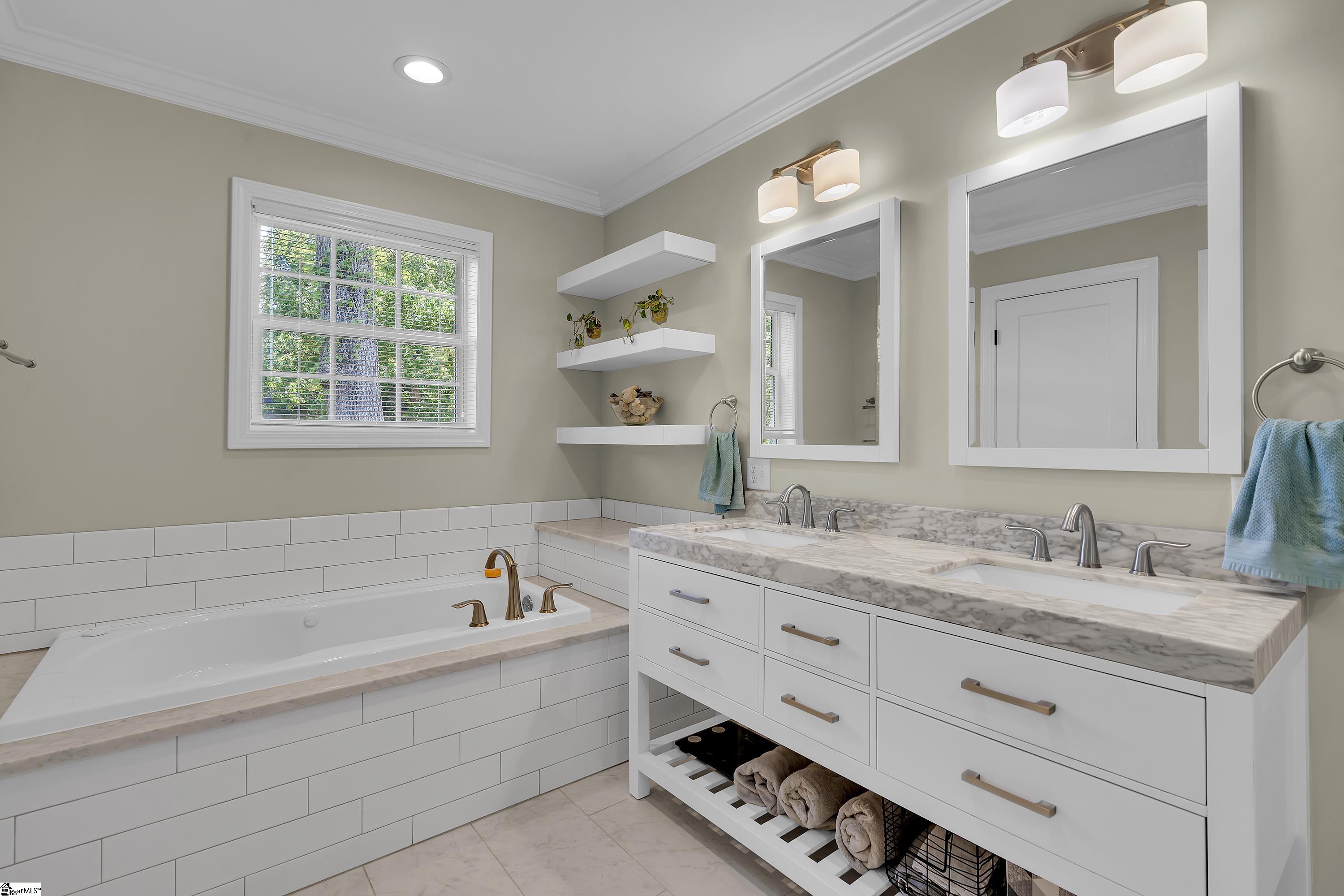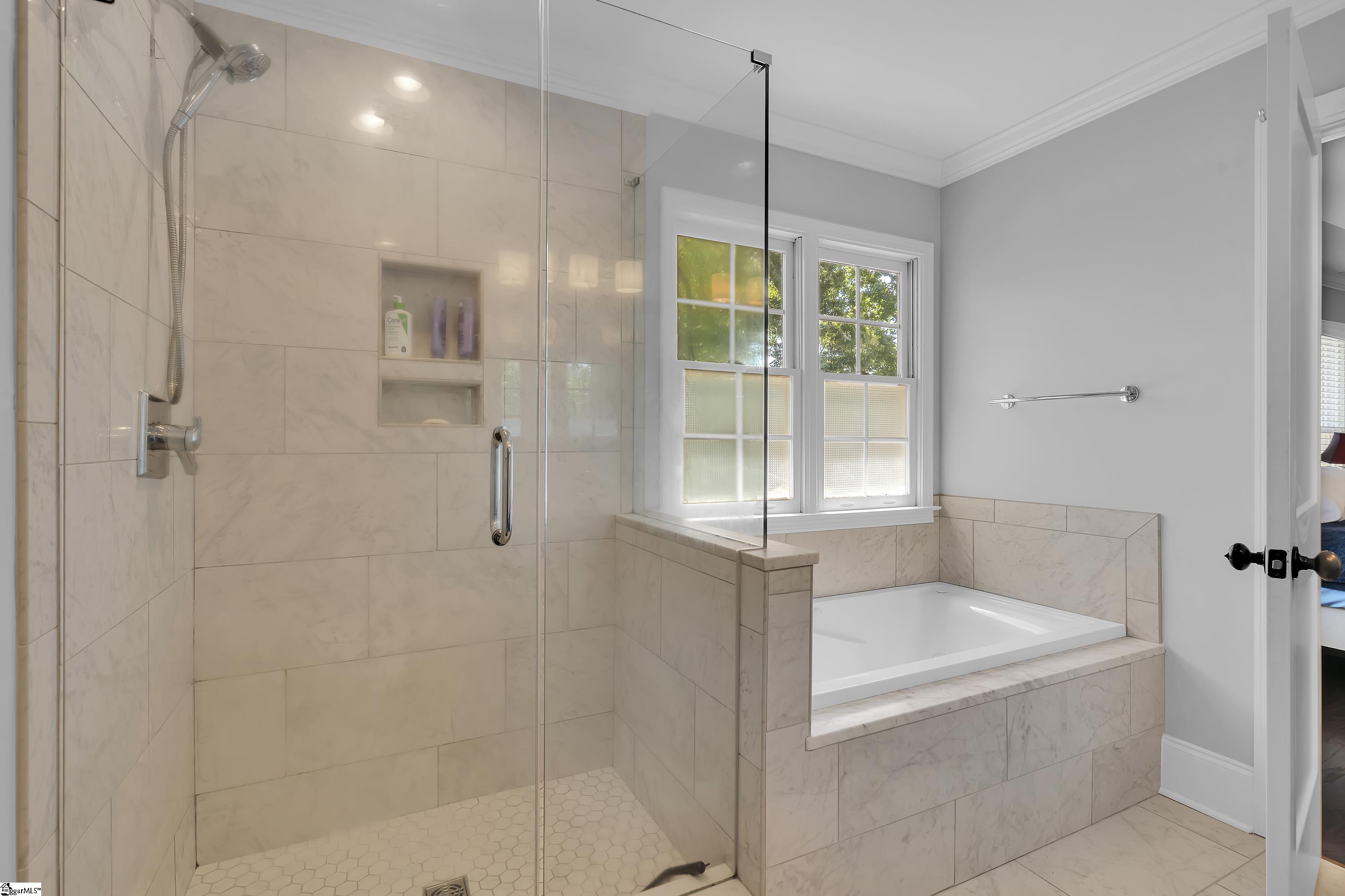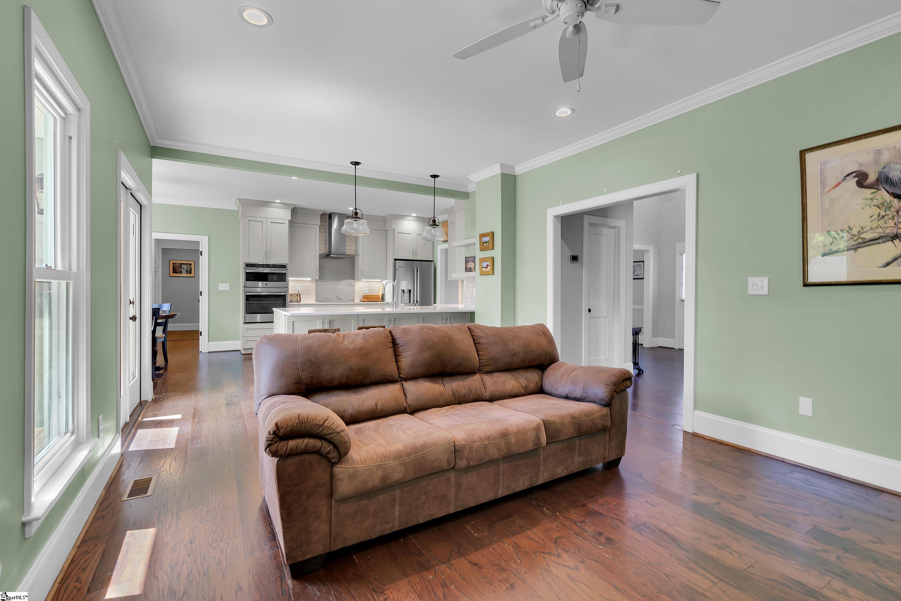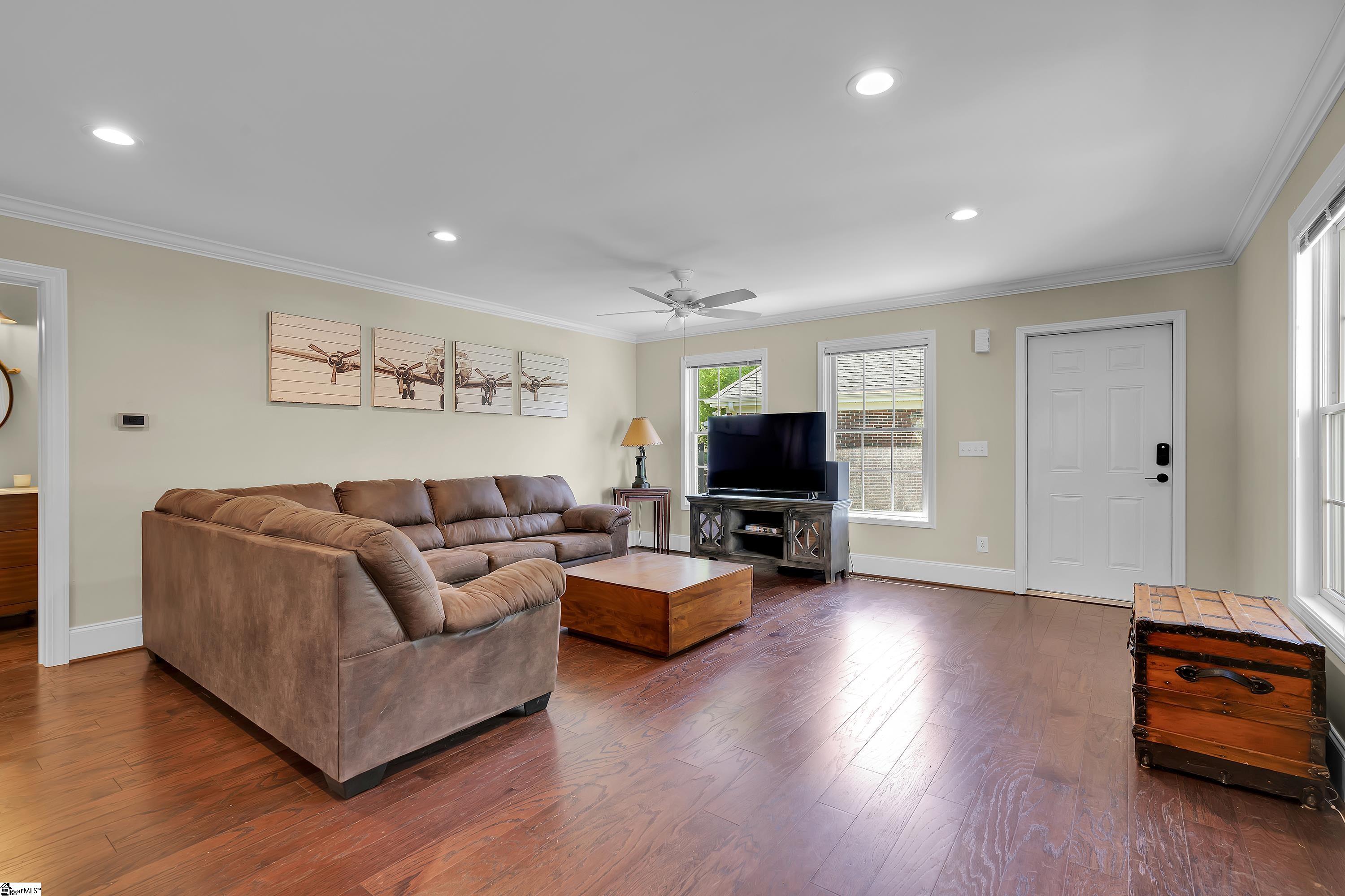 Unique opportunity! This thoughtfully renovated home offers a rare combination of space, flexibility, luxury, and everyday livability, highlighted by a true secondary living suite (part of main level) that functions as a fully independent residence. Renovated in recent years, the property features two stunning kitchens, 2 laundry rooms, and beautifully updated baths, all finished with a cohesive, modern aesthetic. Both living areas have been carefully designed to feel connected yet private, with separate entrances and a seamless flow that allows each side to function independently without sacrificing the overall integrity of the home. The kitchens are a standout, offering full-size layouts with quality finishes and thoughtful design, while the bathrooms reflect the same level of attention to detail and refinement. The secondary suite includes its own kitchen, living area, bedroom, bath, and wine refrigerator, providing exceptional flexibility for extended family, guests, or private living arrangements. The main living areas are equally well-appointed, featuring a gas fireplace, dedicated office space, and custom built-in shelving and storage throughout. Recessed lighting, updated systems including multi-zoned HVAC, on-demand hot water, and a one-year-old roof and windows reflect the level of care and investment in the home. A mudroom adds everyday convenience, while thoughtful design creates an easy transition from interior living spaces to the expansive rear deck. Outdoor living is a true highlight, with a large deck designed for entertaining, a fire pit area, and a fully fenced backyard that offers both privacy and usability. A gated deck provides added peace of mind for pets or children, while an in-ground multi-zone sprinkler system helps maintain the grounds with ease. Set within a walkable neighborhood near Green Charter Elementary with no HOA, the property also offers optional access to a nearby pool and tennis facilities for an annual fee. Conveniently located near Pelham Road shopping, major highways, GSP Airport, and just a short drive to downtown Greenville, this home delivers a unique blend of flexibility, thoughtful design, and livability that is near impossible to find.