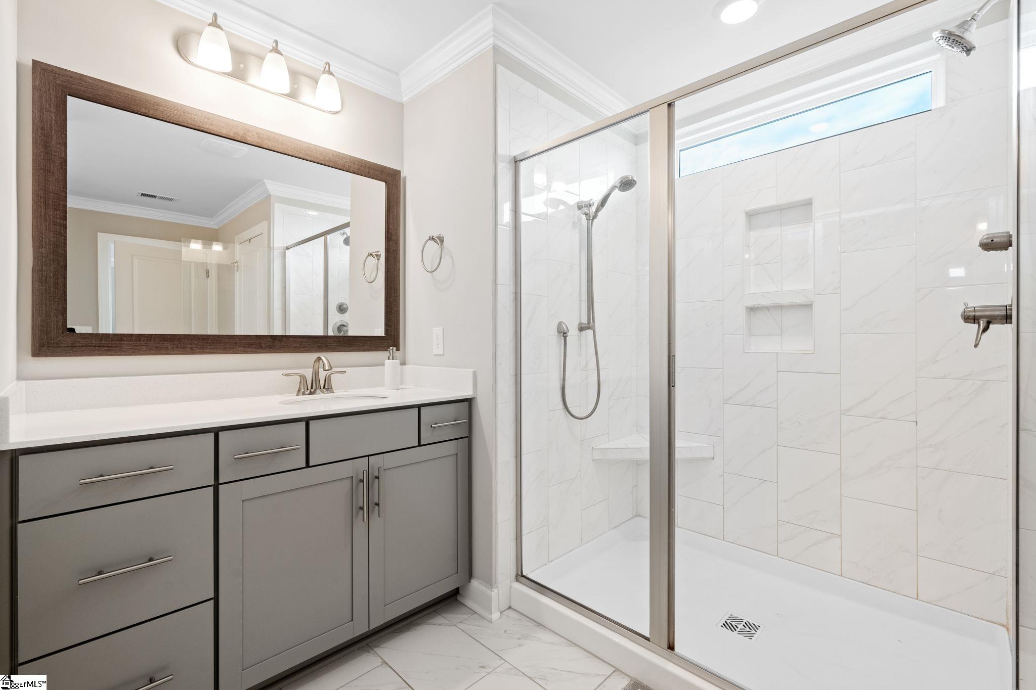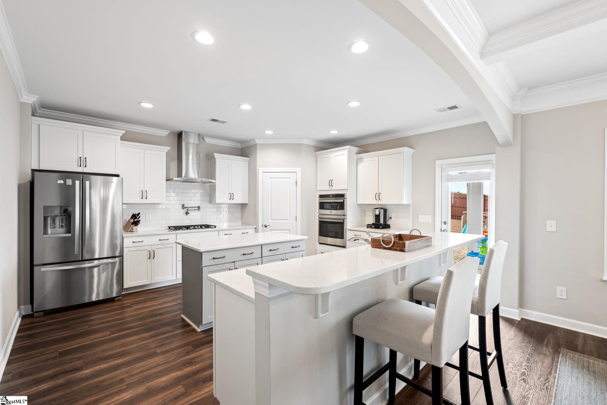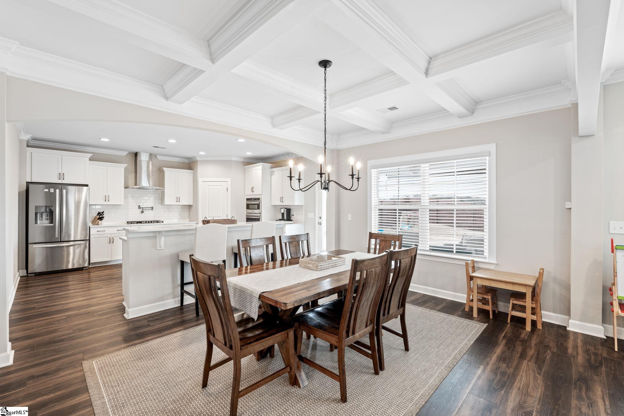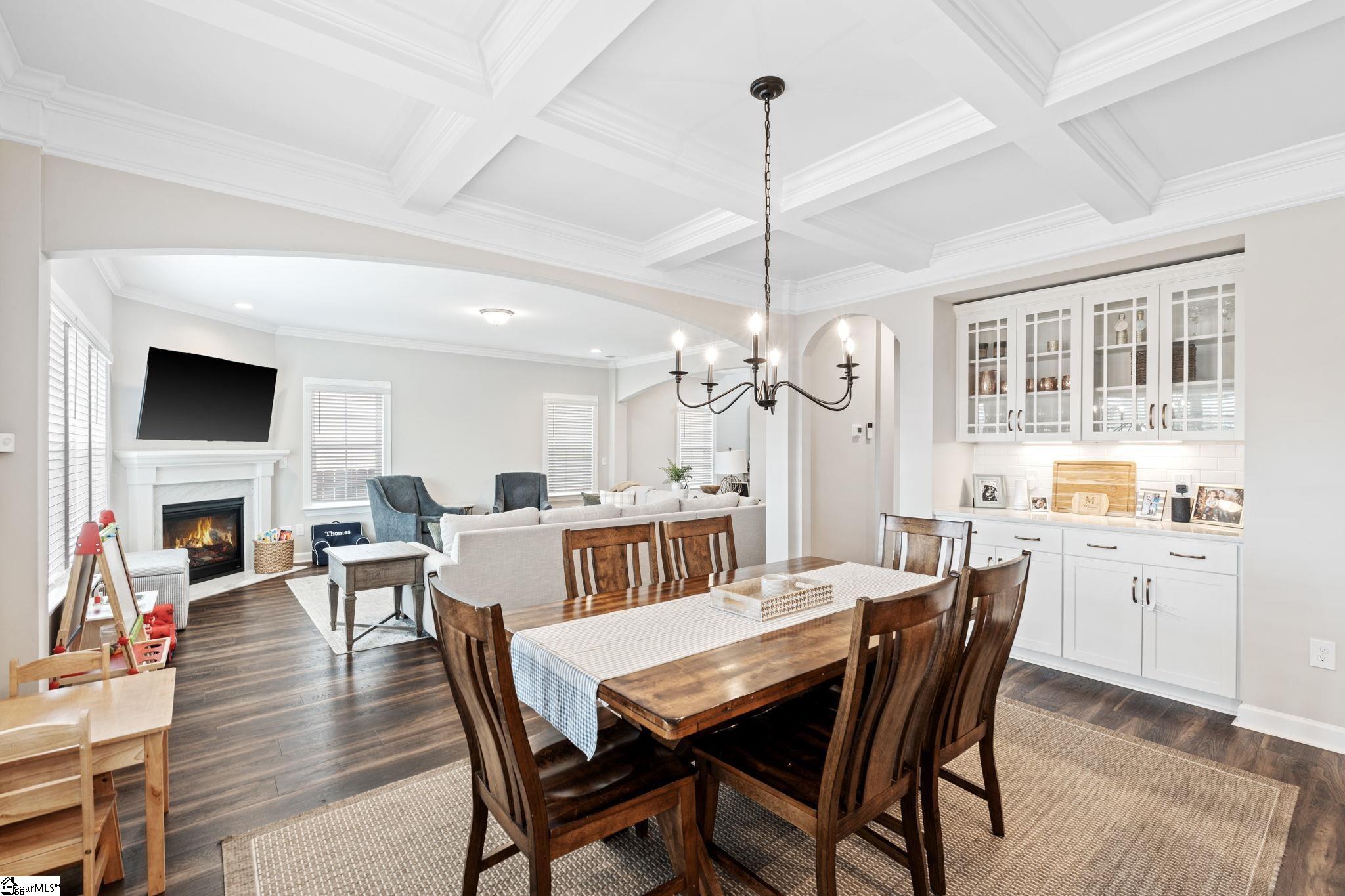 If you’ve been searching for a home that truly has it all—space, style, updates, and location—look no further than 213 Reseda Drive. This 5-bedroom, 3.5-bathroom home in the coveted Indigo Pointe neighborhood offers multiple living spaces designed to support both everyday living and effortless entertaining. The main level features a two-story foyer, a spacious, open floor plan that seamlessly connects the living room, dining area, and gourmet kitchen, with a gas fireplace serving as a warm, understated focal point. The dining room is elevated by a coffered ceiling and features a convenient butler’s pantry. The kitchen blends function and style with quartz countertops, two generous islands, a farmhouse sink, gas cooktop with pot filler, stainless appliances, and a walk-in pantry—ideal for everything from weeknight meals to hosting with ease. Just off the kitchen, a covered patio is equipped for TV and sunshades and overlooks the fully fenced backyard, creating a natural extension of the living space. A main-level bedroom offers flexibility as a guest suite, home office, or additional living space, complemented by a convenient drop zone with built-in cubbies for everyday organization. Upstairs, the primary suite provides a serene retreat with a tray ceiling, very large walk-in closet, and a well-appointed bathroom featuring separate vanities and a tile shower. Three additional bedrooms are located upstairs—two connected by a Jack-and-Jill bath—while a loft/bonus area offers space for a media room, play area or secondary living space. A spacious walk-in laundry room adds ease to everyday routines. Freshly painted interiors and brand-new carpet in the upstairs bedrooms create a clean, updated feel throughout. Outside, the private backyard offers flat, usable space along with an irrigation system for low-maintenance upkeep. The 3-car garage, complete with epoxy flooring and side entry, enhances both storage and functionality. Set on a quiet street with sidewalks, neighbors enjoy access to the beautiful community pool and nearby Swamp Rabbit Trail—perfect for walking, running or cycling. Close to shopping and restaurants on Woodruff Road, as well as major highways I-85 and I-385, this home blends comfort, convenience and lifestyle—and one you won’t want to miss!