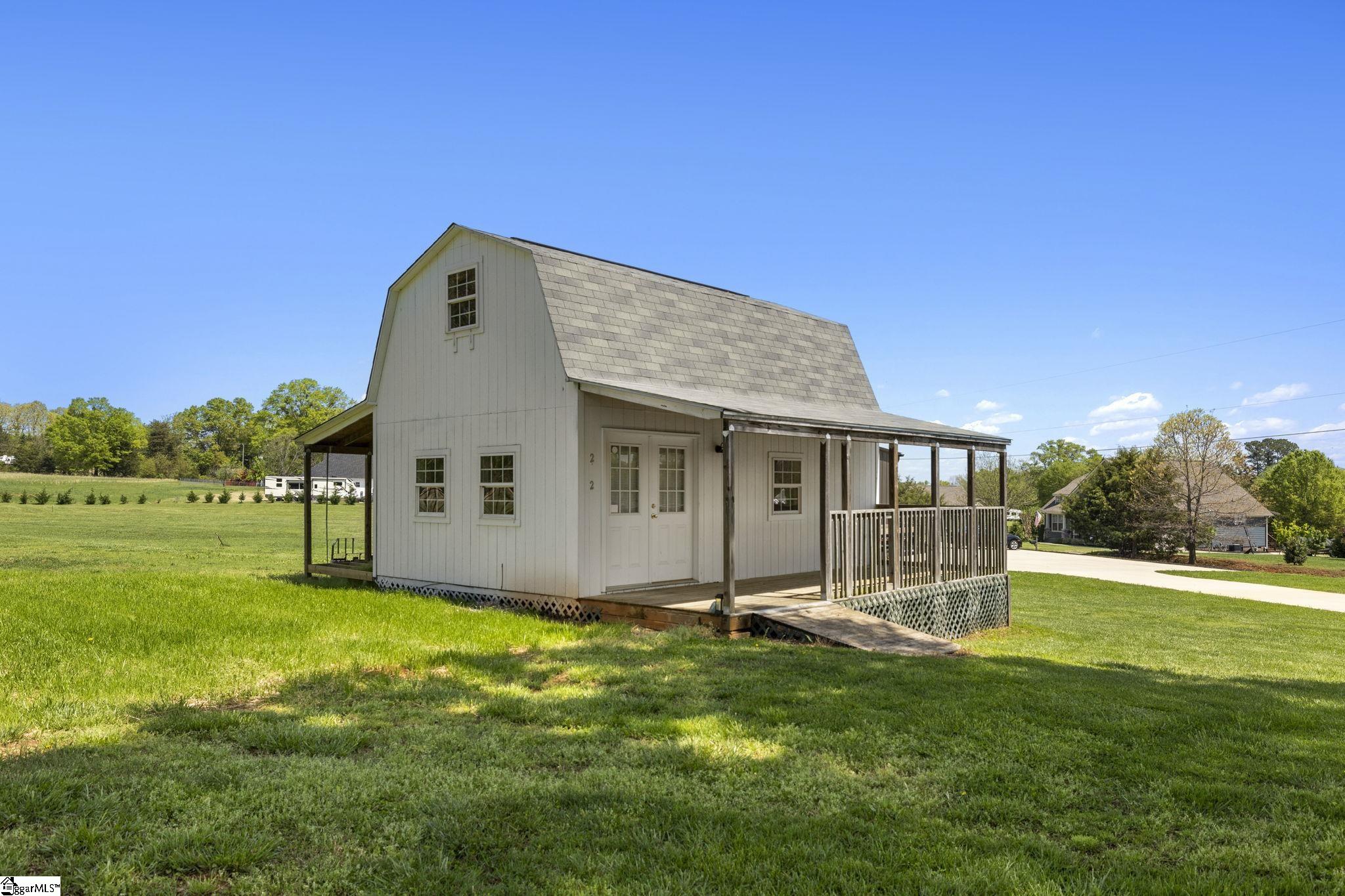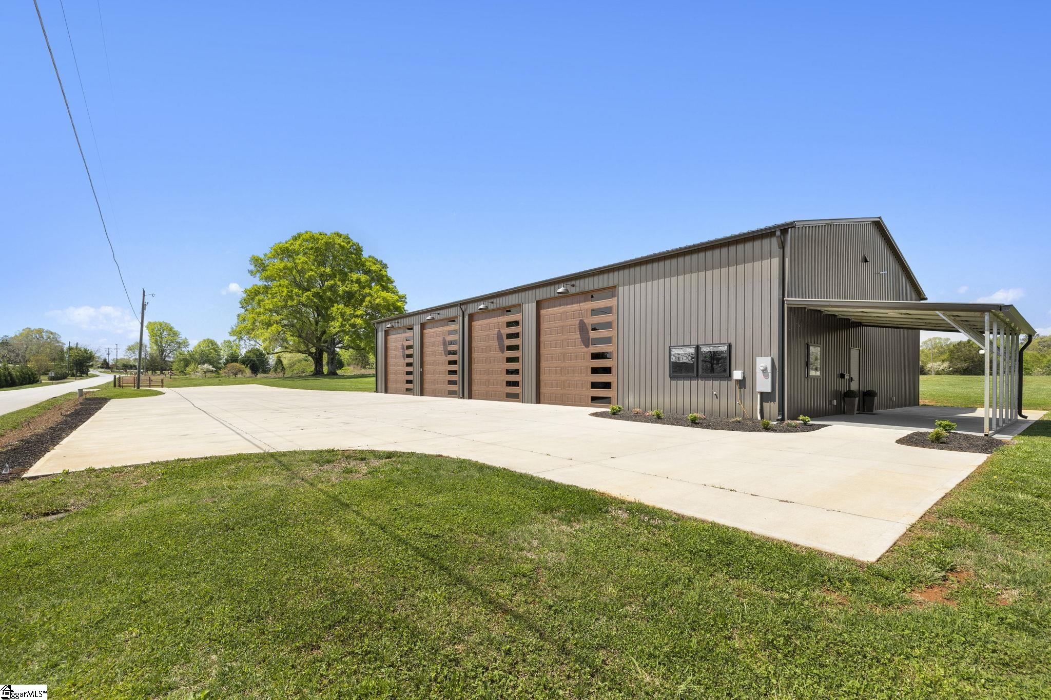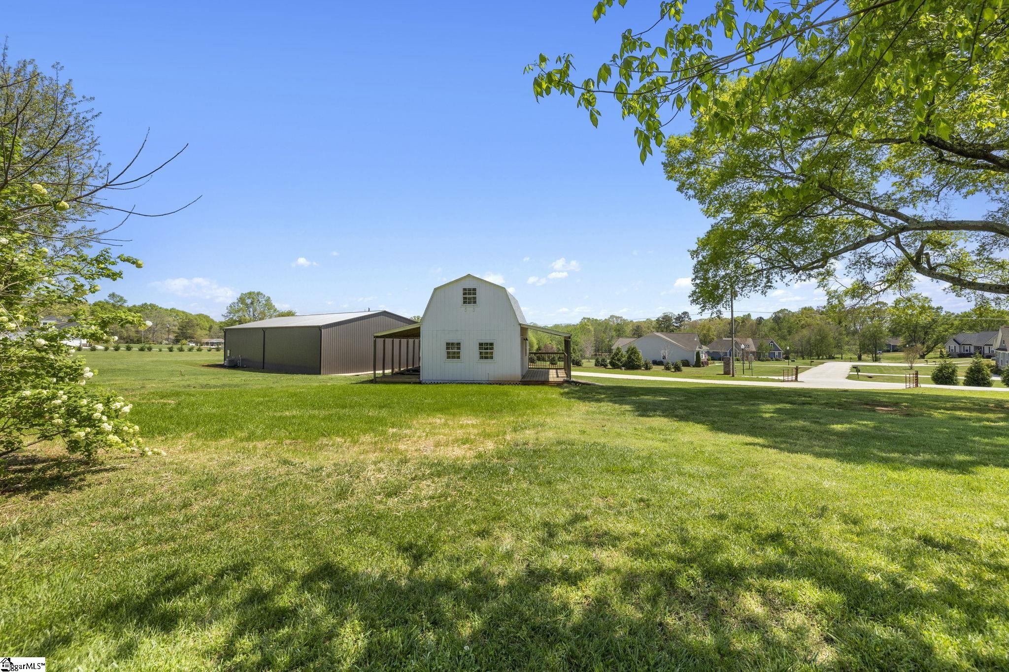 One-of-a-Kind Luxury Meets Versatility on 3+ Unrestricted Acres! This exceptional 48×88 shop offers over 1,300 sqft of climate-controlled living space, finished with high-end details throughout. Thoughtfully designed, it features a private office, a spacious upstairs bedroom, a full bath upstairs, and a convenient half bath on the main level for guests. Four oversized bays with garage doors provide ample space for your RV, boat, or collection of toys. Enjoy the ultimate recreational experience in the climate-controlled golf simulator and game room—complete with a stylish wet bar, perfect for entertaining, relaxing, or hosting game nights. Step outside to a covered porch, and take advantage of over 8,000 sqft of concrete pad for seamless parking and outdoor gatherings. Also included is a charming cottage, ideal for conversion into a guest suite or income-producing Airbnb. With no HOA, generous road frontage, and buildable acreage for your custom home, this one-of-a-kind property offers boundless potential to create your dream retreat or luxury estate.