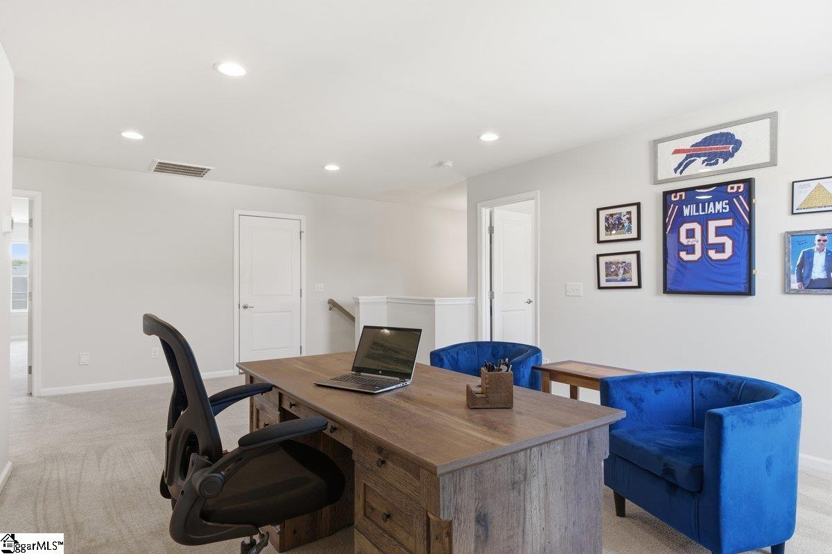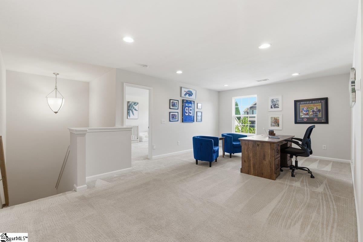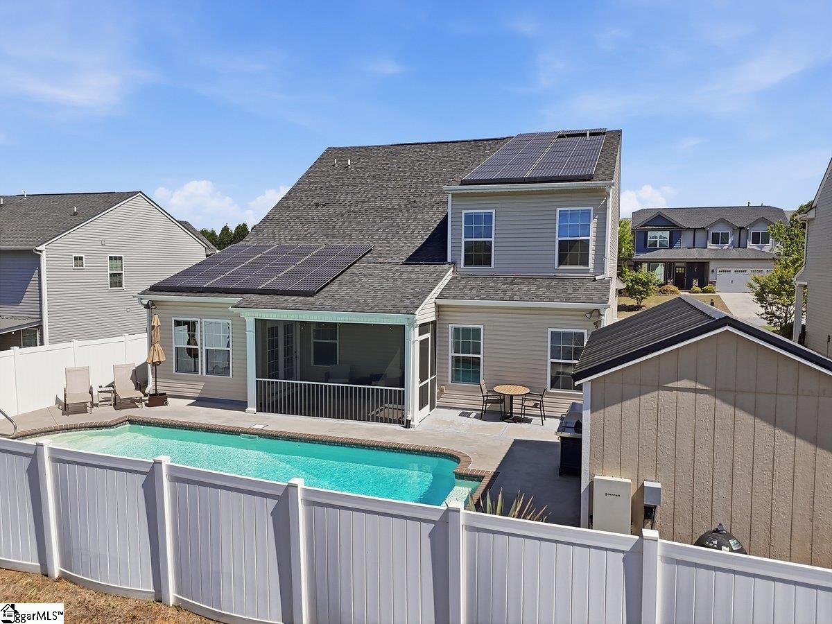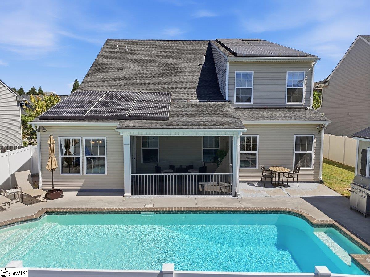 Beautifully maintained and built in 2018, 214 Picketts Mill Drive offers 4 bedrooms and 2.5 bathrooms with a layout that balances comfort and function. The main level features a spacious primary suite with vaulted ceilings, dual vanities, a walk in closet, and a separate tub and shower. The kitchen offers generous storage and a large island that opens to the main living area, creating an easy flow for everyday living. Upstairs, three additional bedrooms share a full bathroom, providing flexibility for guests, family, or office space. The backyard is designed for enjoyment with a pool and plenty of space to relax or host. Located just 20 minutes from downtown Greenville shopping and dining, this home combines convenience with a well thought out floorplan. Don’t miss the chance to make this home yours