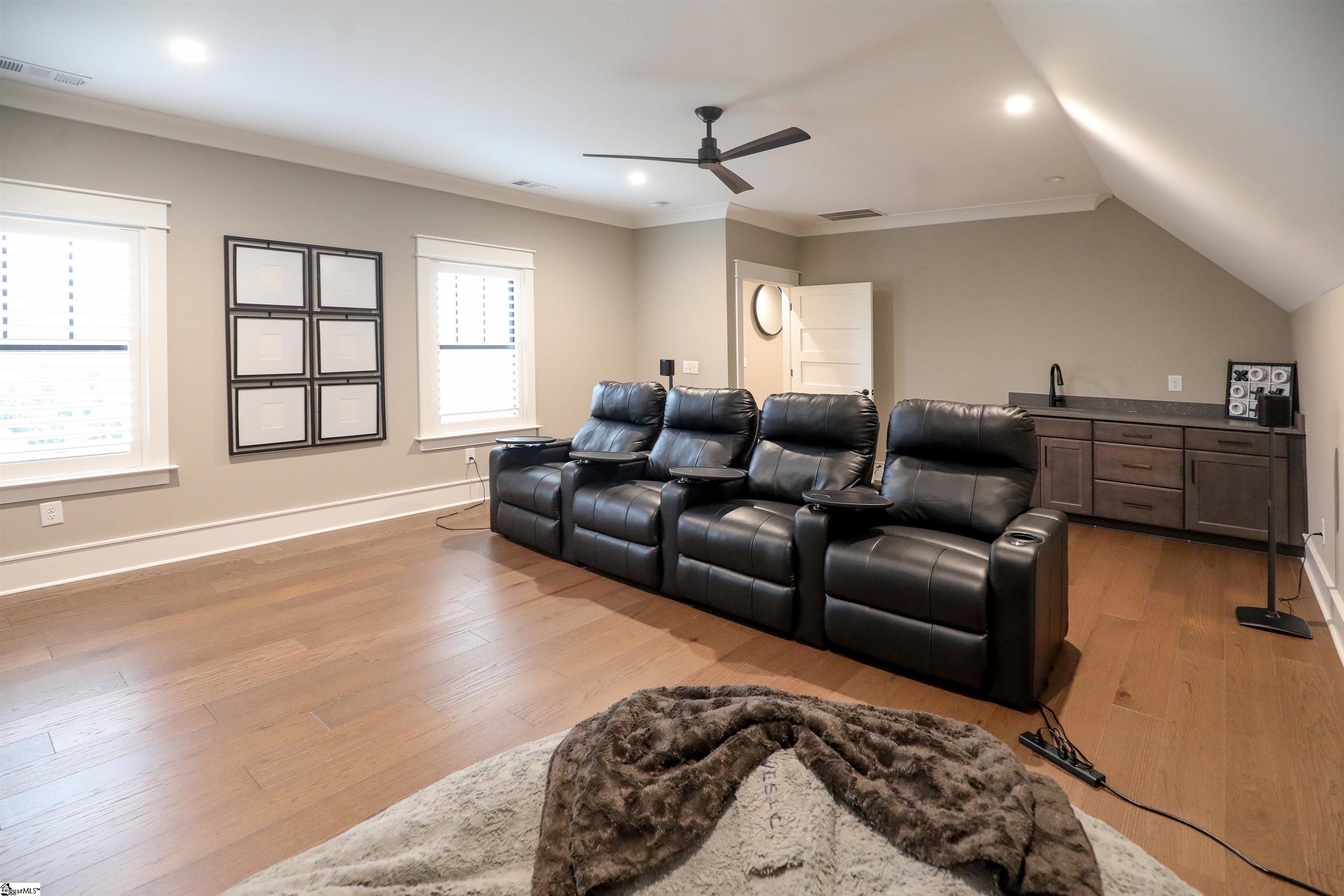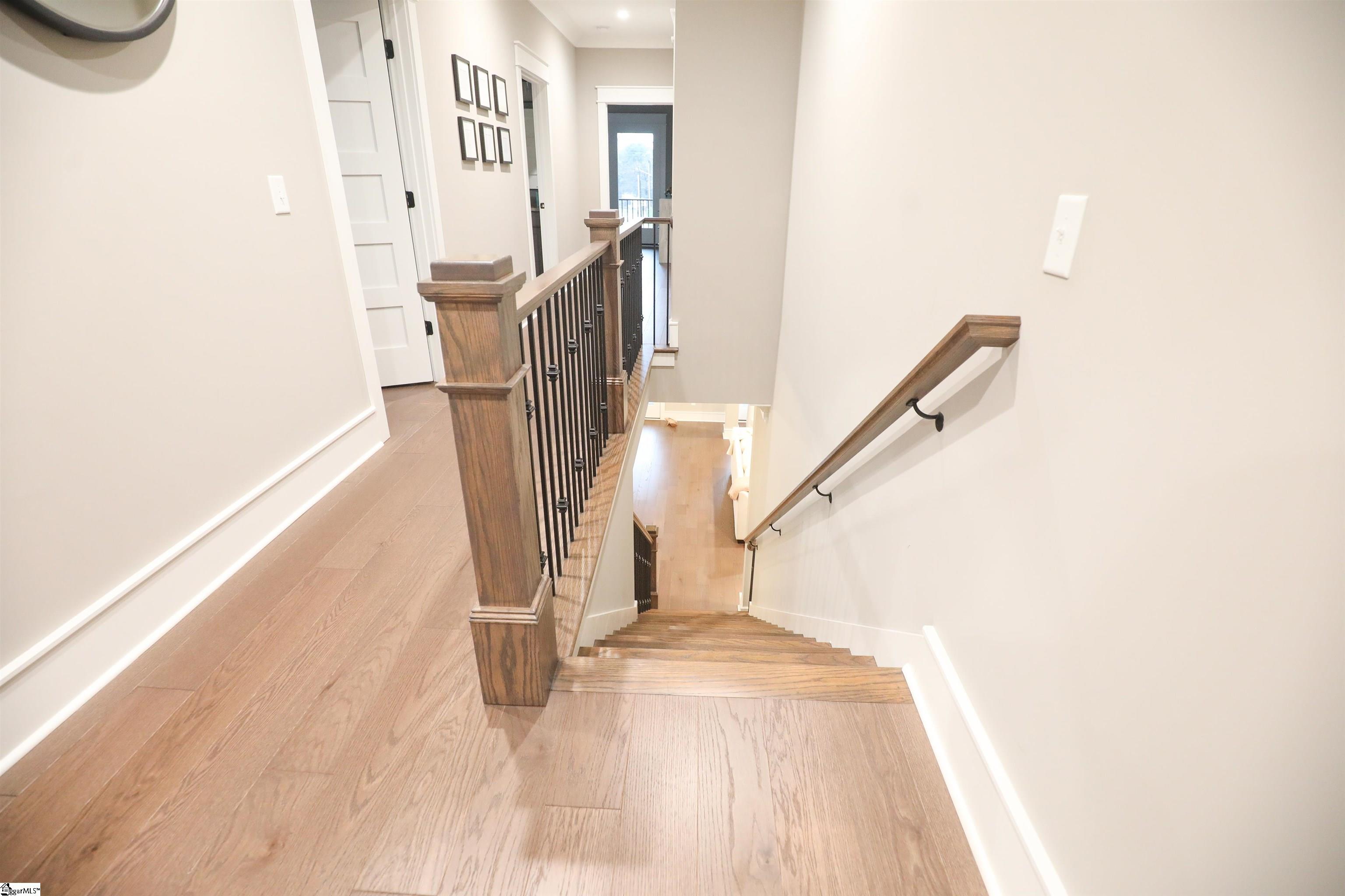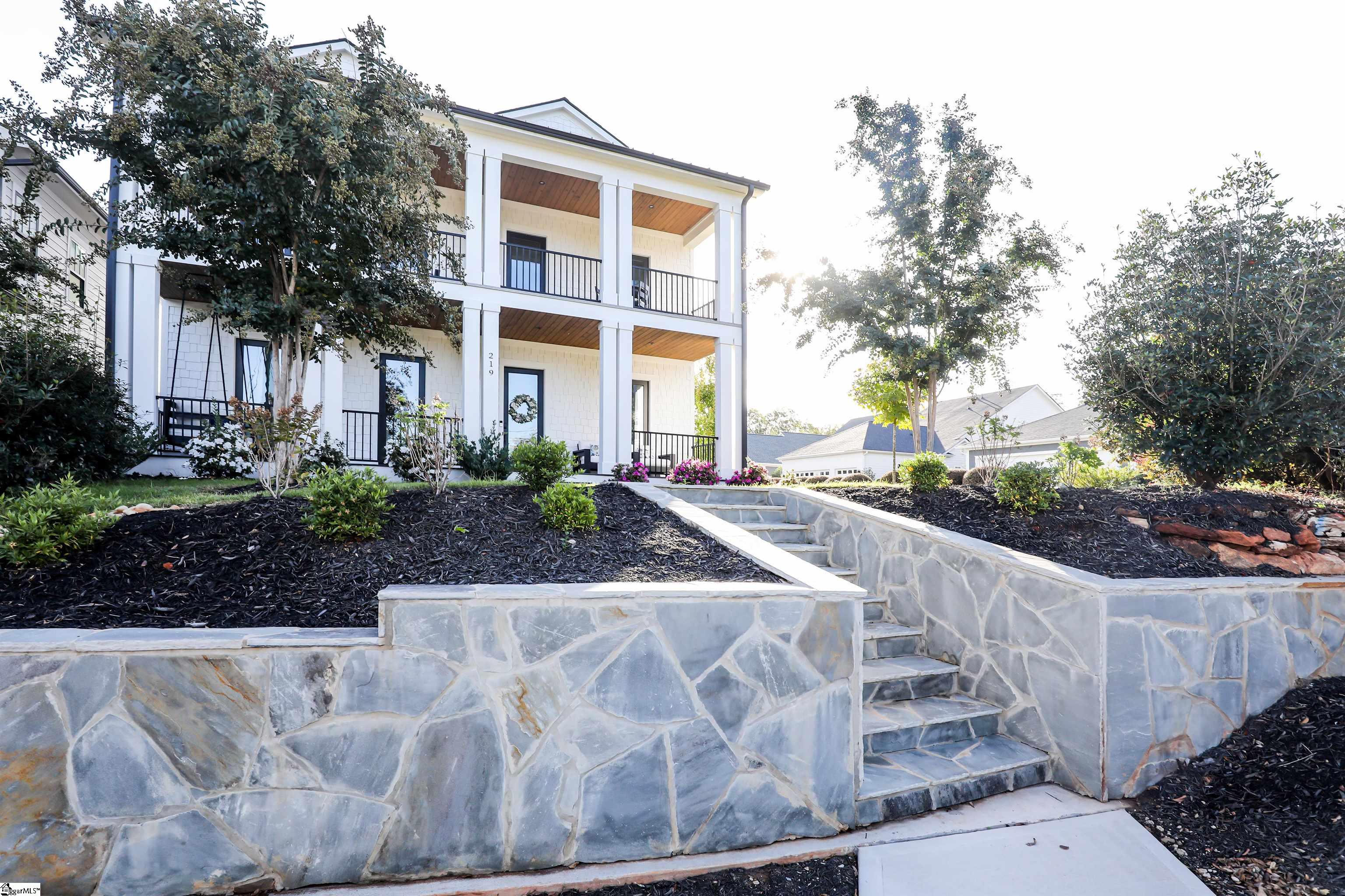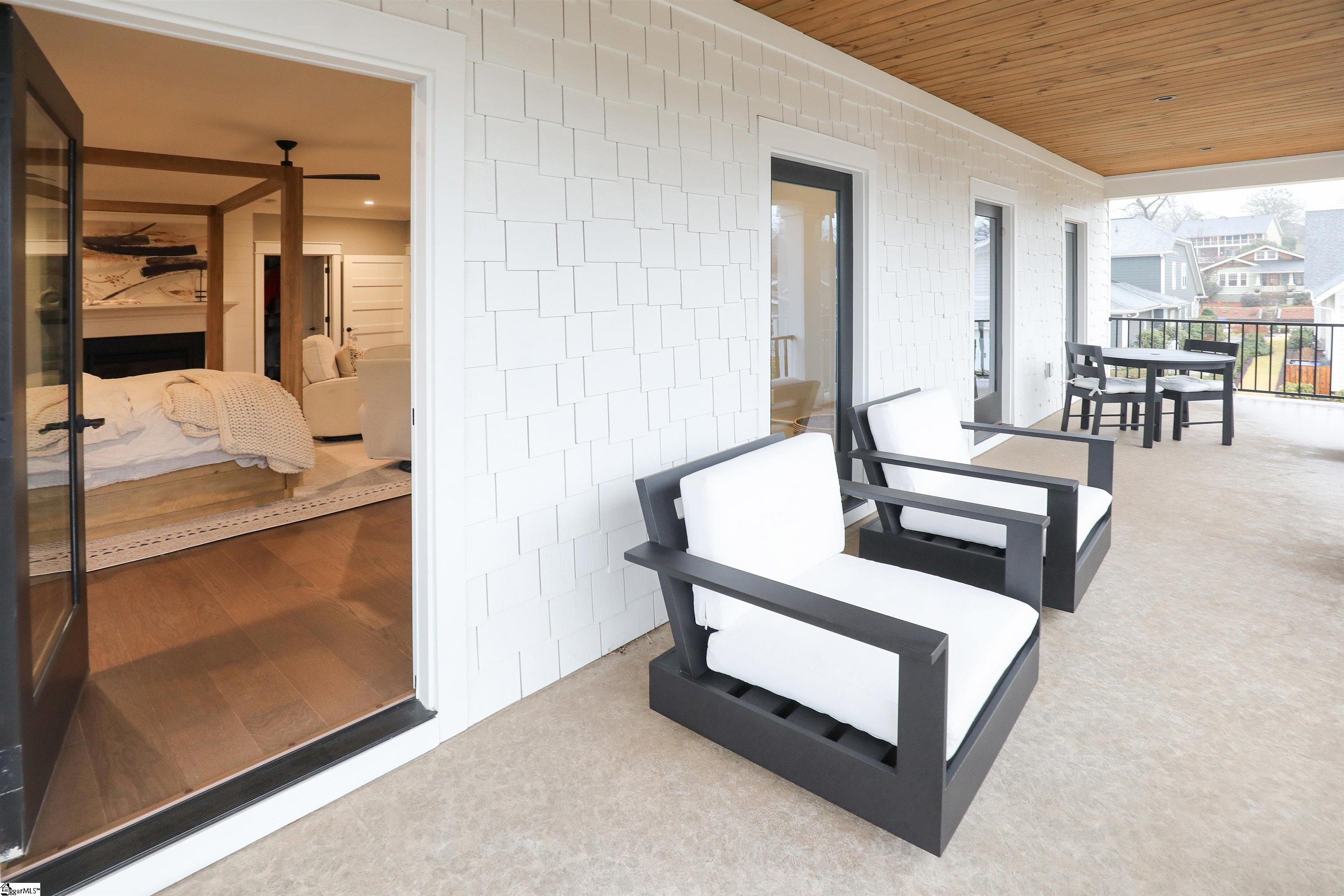 Situated on a premier corner lot in one of the community’s most desirable locations, this home is just 2–3 minutes from downtown Greenville, close to the interstate, and near top-rated schools. Located within walking distance of Main Street in Downtown Greenville, Falls Park, Greenville Zoo, The Children’s Museum, and Fluor Field, this stunning home offers timeless elegance, exceptional design, and like-new modern luxury upgrades. Upon arrival, you are welcomed by charming upper and lower front porches with a custom porch swing that set the tone for the craftsmanship and character found throughout. The rich design features a spacious open-concept layout that invites both comfort and creativity. The main level showcases high-end finishes, including a gourmet kitchen with custom cabinetry, a WOLF gas range, French-door refrigerator, quartz countertops, dishwasher, a large walk-in pantry, and an expansive island perfect for gathering. The main floor also features beautifully coffered ceilings in the living room, high-end lighting fixtures, and a cozy fireplace with a blower. Additional spaces include a private office, powder room, convenient mudroom, and an elegant dining area ideal for entertaining. Upstairs, you’ll find the luxurious primary suite along with two additional bedrooms. Both the primary and second bedroom offer direct access to the upper porch. The second floor also includes an entertainment room equipped with a sink and sound system, plus a spacious laundry room with abundant cabinet storage. The primary suite is filled with natural light from the double doors that open to the porch, offering views toward downtown Greenville. It features a custom accent wall, its own fireplace, and a fully upgraded spa-like bathroom with a separate tub, walk-in shower, and an expansive walk-in closet. Step outside to an upgraded screened porch designed for relaxation, complete with thoughtfully crafted walls, a chiminea, and privacy fencing. A secondary rear door leads to the attached two-car garage. Beautiful landscaping surrounds the home, creating a peaceful and inviting atmosphere. This meticulously designed residence offers the perfect blend of luxury, privacy, and comfort while allowing you to enjoy vibrant city living with a peaceful neighborhood feel.