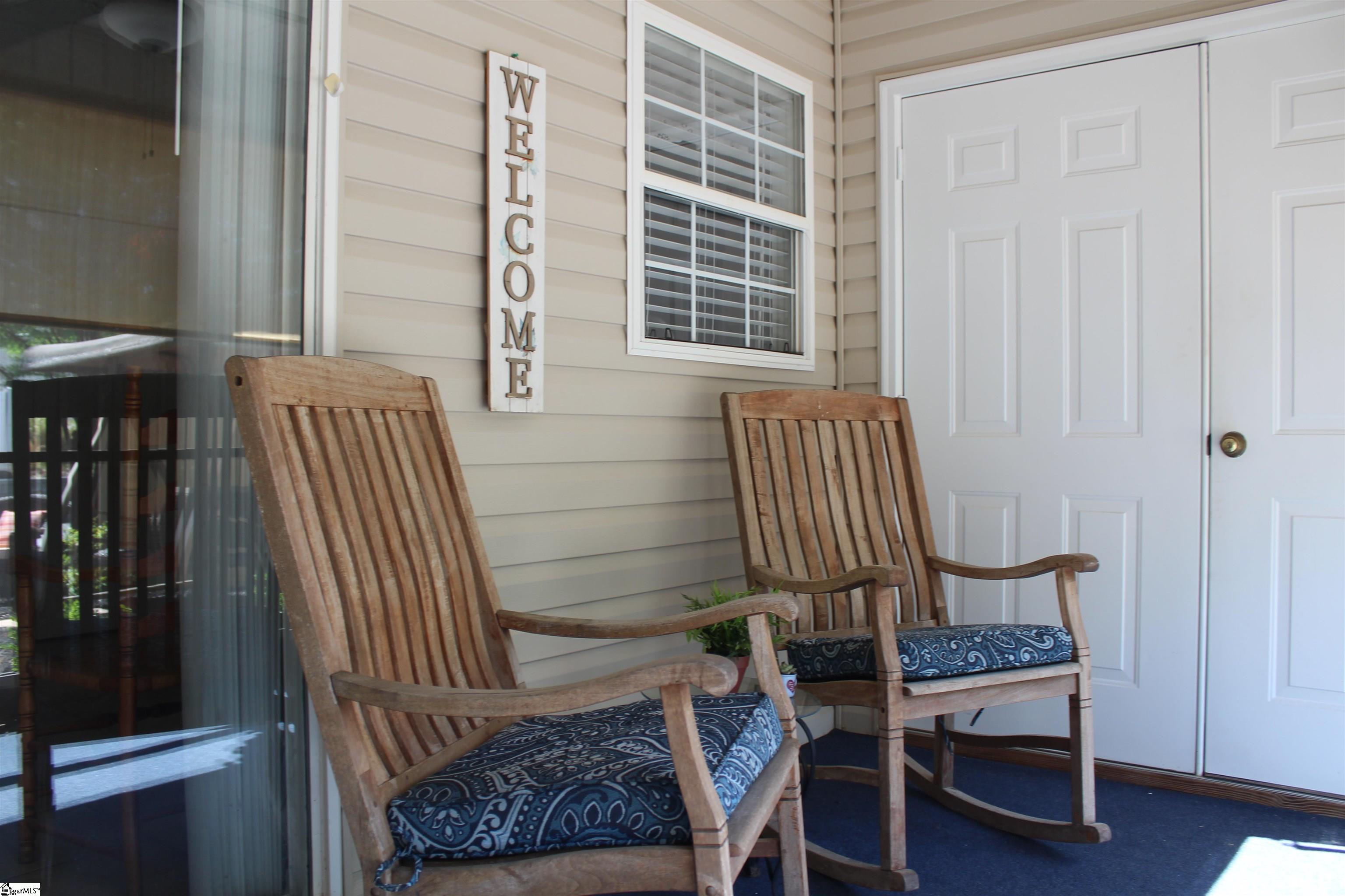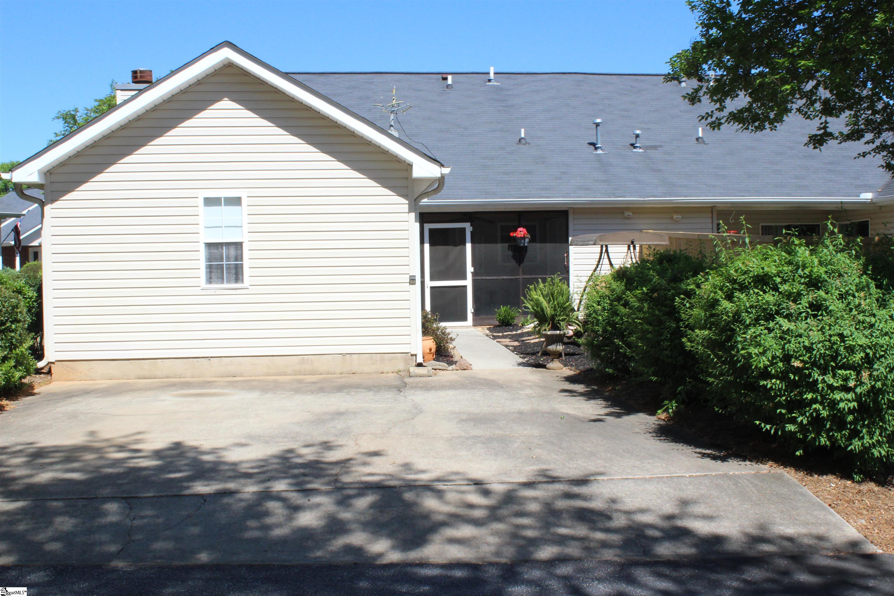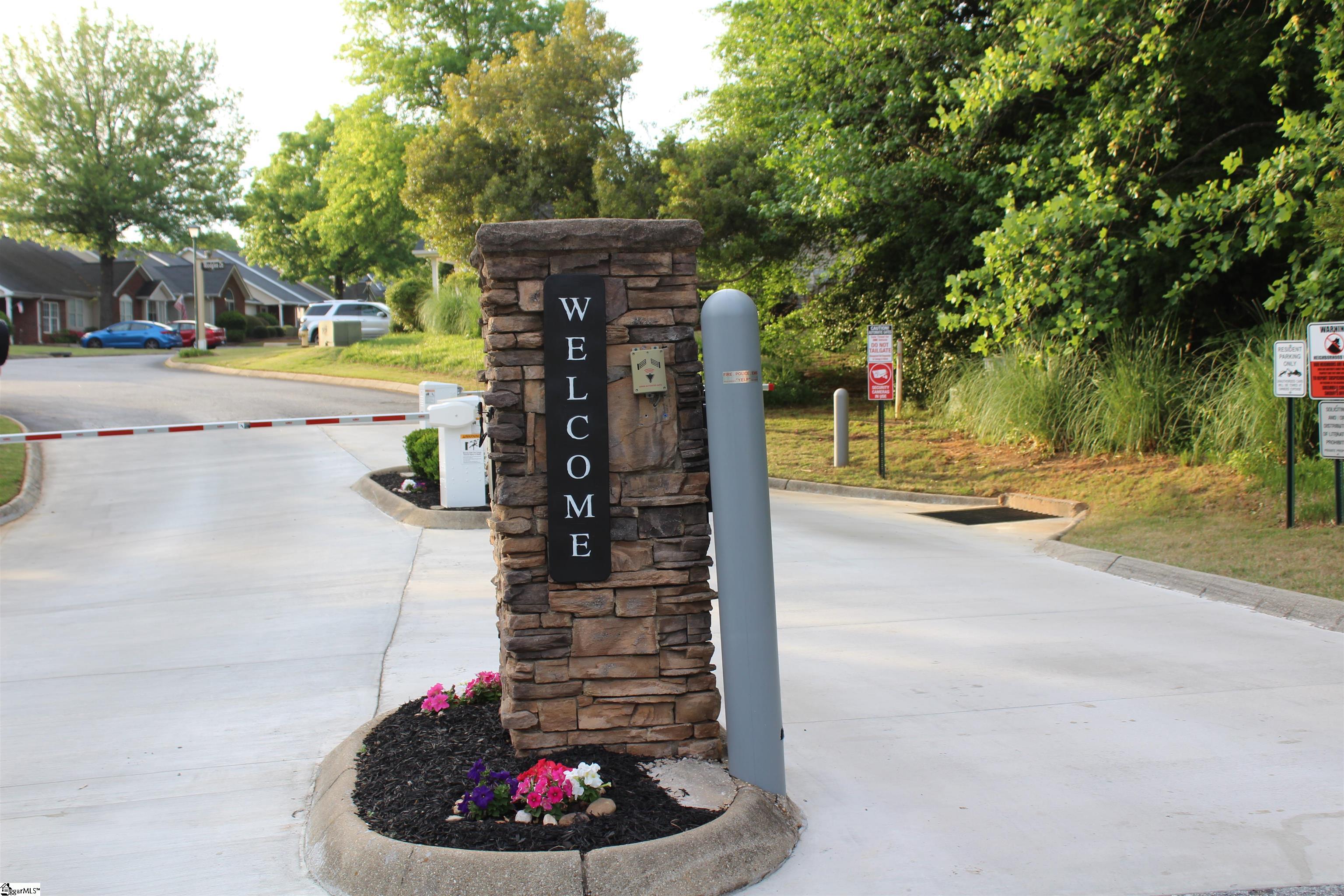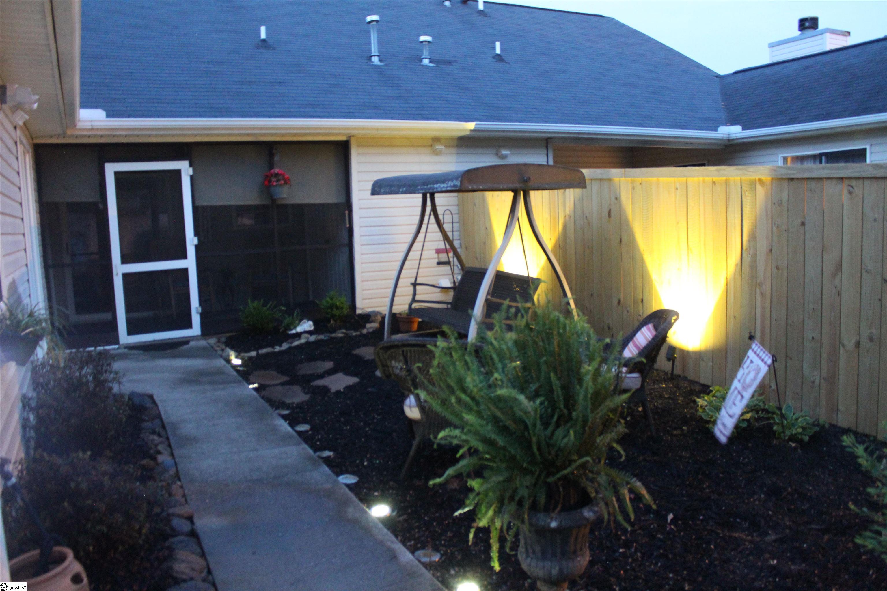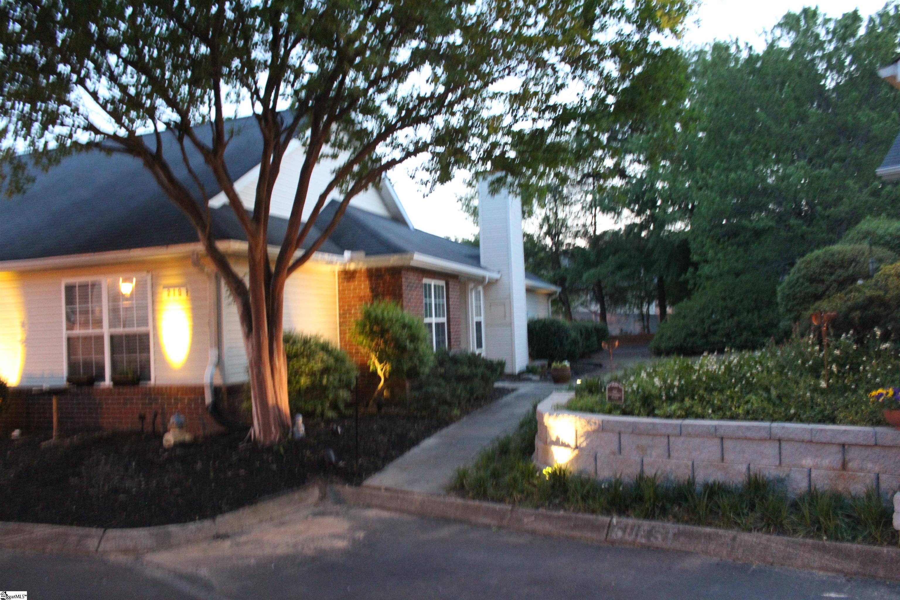 Rare one level townhome located in The Townes of Woodruff Park, located in the popular Five Forks area of Woodruff Road. This townhome is in superb condition with freshly painted walls and trim, granite counter tops, stainless appliances, updated fixtures. This home has ample space, boasting a split floor plan with 3 bedrooms, 2 full baths and open dining area adjacent to the family/living room. There are 2” blinds throughout as well as three sliding glass doors to allow lots of light to enhance the openness of the layout. Living area has a wood burning fireplace equipped with gas starter which can easily be connected to gas logs if desired. The screened in patio overlooks a perfect sized, private back yard sitting area with yard swing, shrubs and landscape lighting to enhance the beauty. One of the best lots in the community offering a large 2 car, private paved driveway at the rear of the home which backs up to a quiet street. In addition, there are two guest parking spots in front of unit which can be utilized. This is an end unit bordering a large common area giving you more privacy and space to roam. This townhome is easily accessible, all one level with no stairs inside or outside. Great location, quiet, well kept, gated community with mature trees and landscaping. Book your appointment today to view this unique townhome and make it your own!