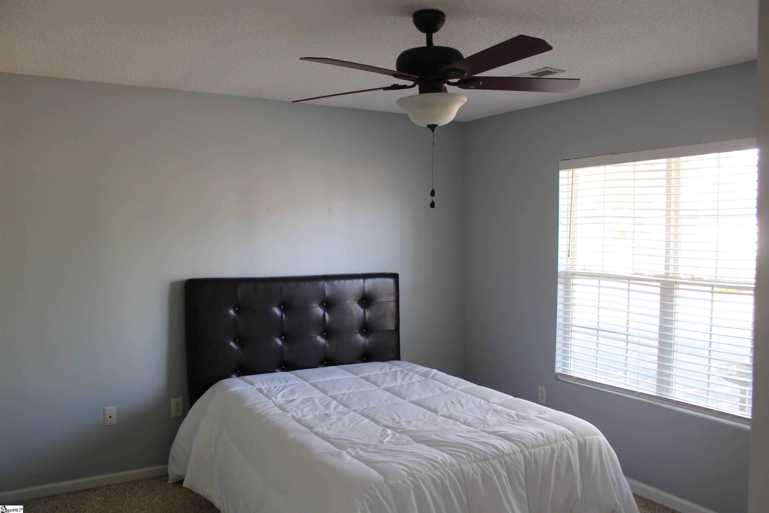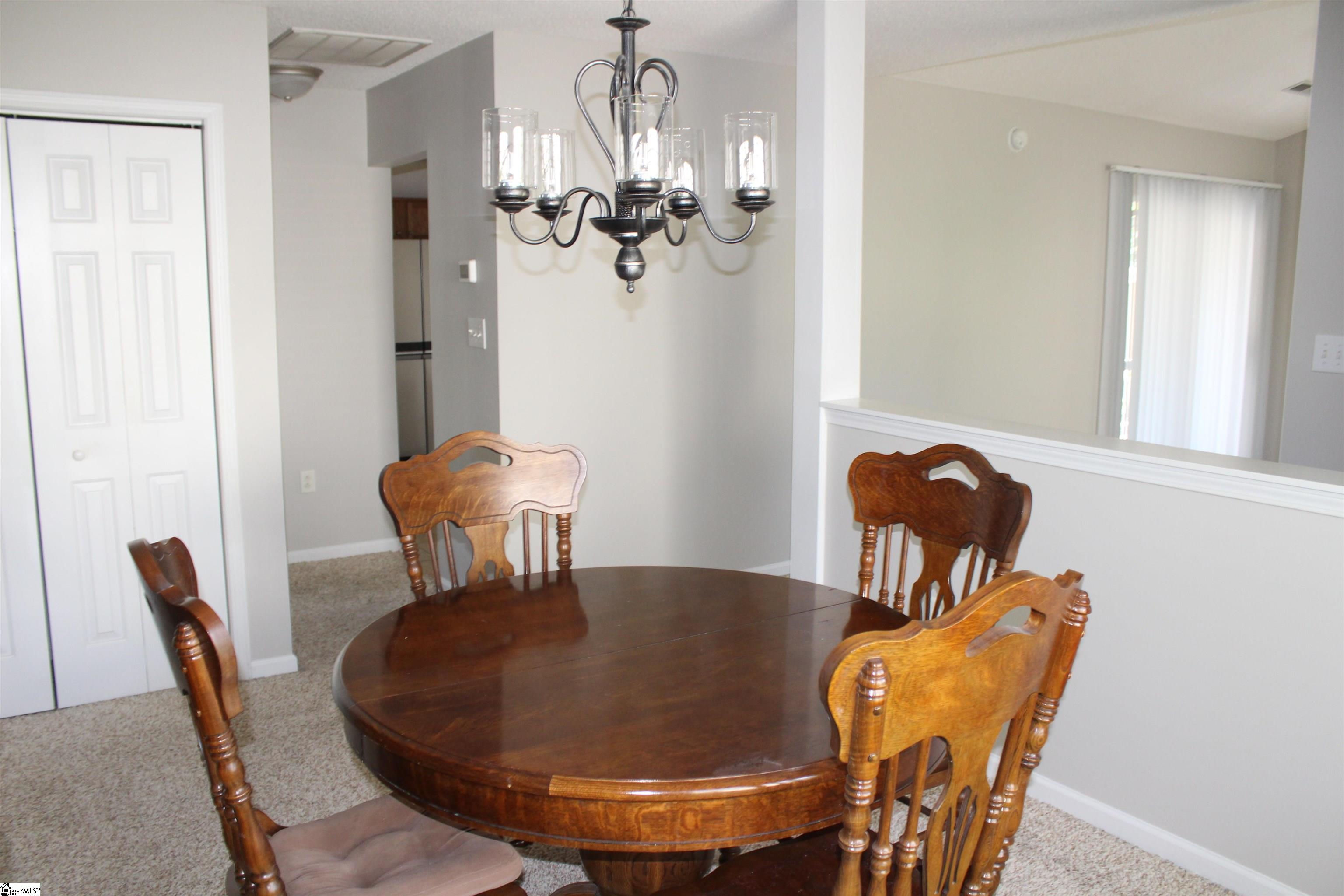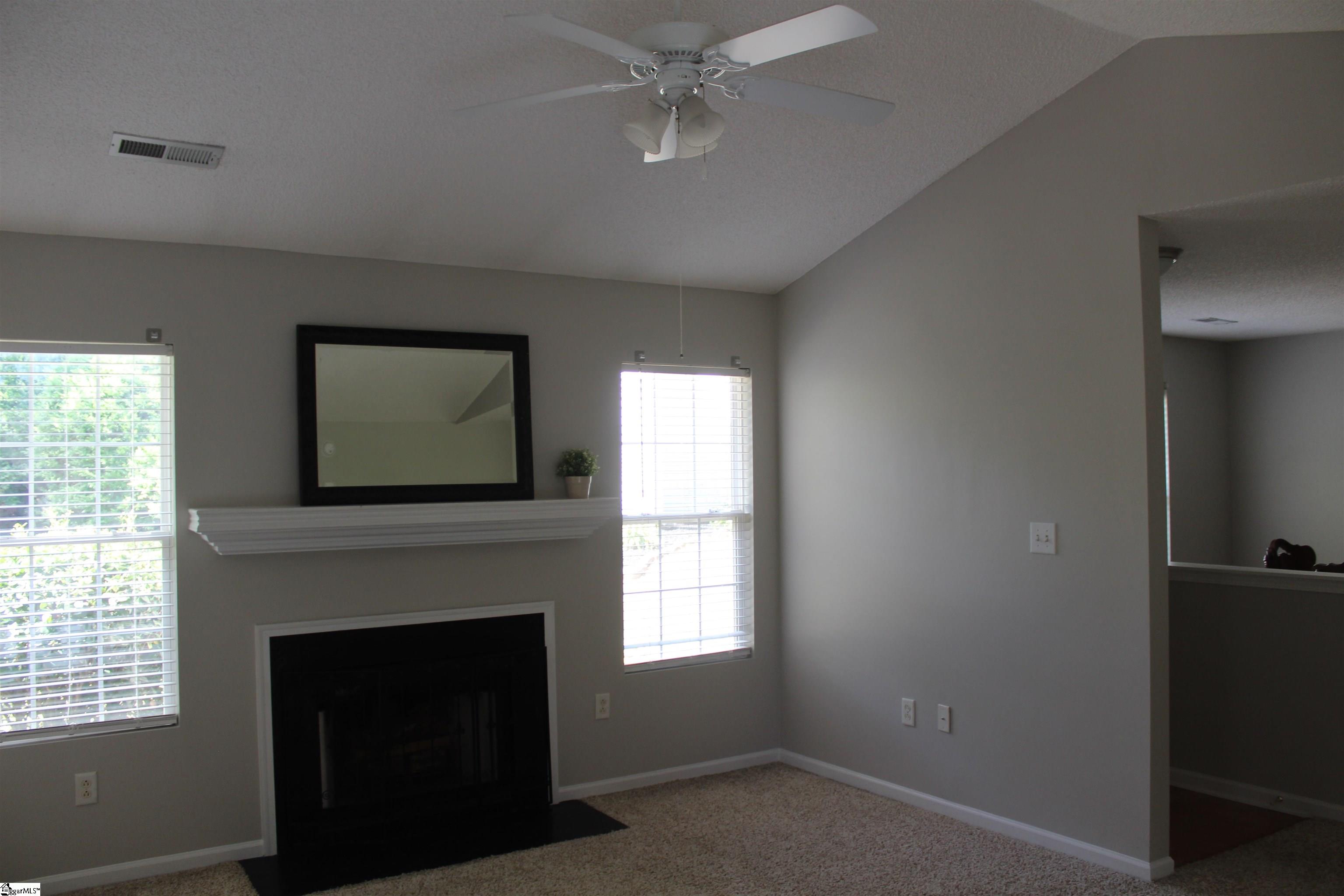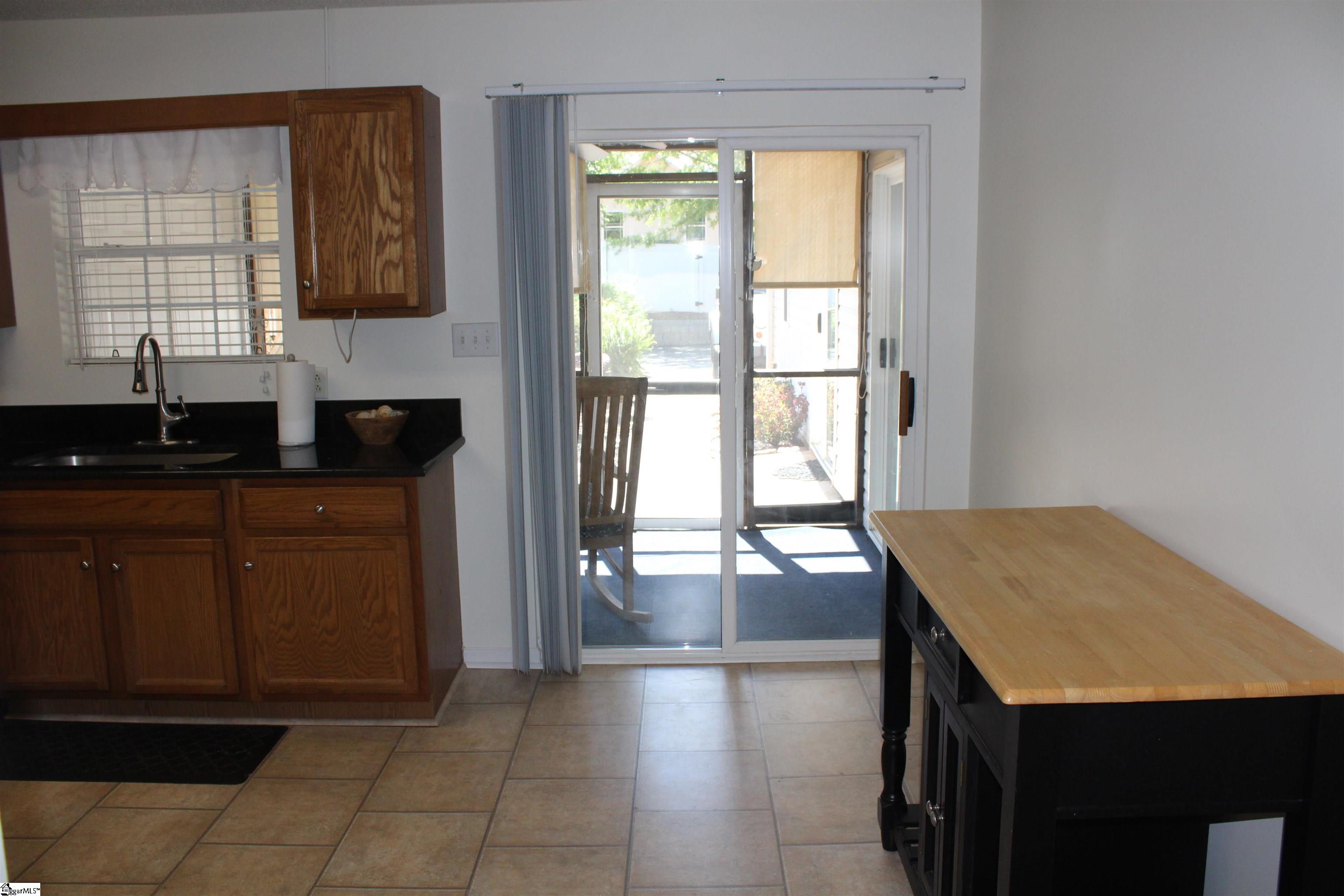 Rare one level townhome located in The Townes of Woodruff Park, located in the popular Five Forks area of Woodruff Road. This townhome is in superb condition with freshly painted walls and trim, granite counter tops, stainless appliances, updated fixtures. This home has ample space, boasting a split floor plan with 3 bedrooms, 2 full baths and open dining area adjacent to the family/living room. There are 2” blinds throughout as well as three sliding glass doors to allow lots of light to enhance the openness of the layout. Living area has a wood burning fireplace equipped with gas starter which can easily be connected to gas logs if desired. The screened in patio overlooks a perfect sized, private back yard sitting area with yard swing, shrubs and landscape lighting to enhance the beauty. One of the best lots in the community offering a large 2 car, private paved driveway at the rear of the home which backs up to a quiet street. In addition, there are two guest parking spots in front of unit which can be utilized. This is an end unit bordering a large common area giving you more privacy and space to roam. This townhome is easily accessible, all one level with no stairs inside or outside. Great location, quiet, well kept, gated community with mature trees and landscaping. Book your appointment today to view this unique townhome and make it your own!