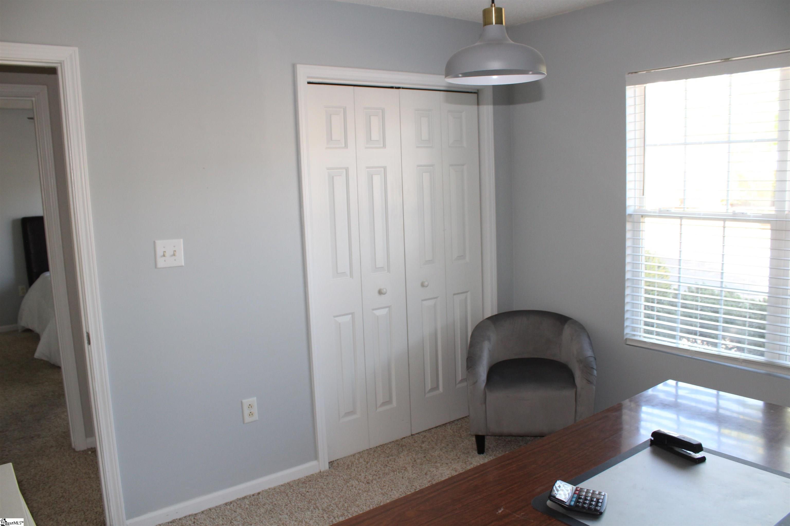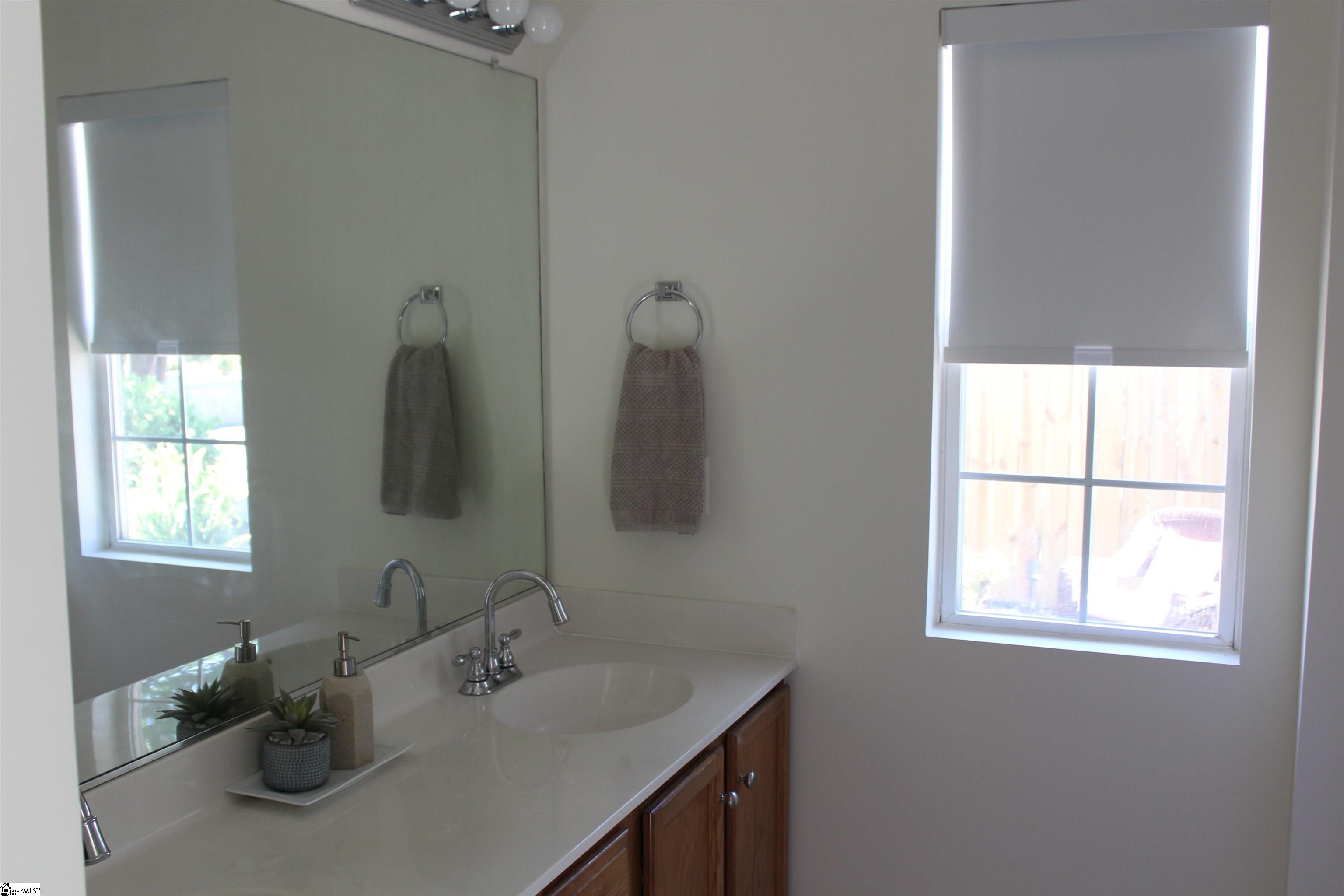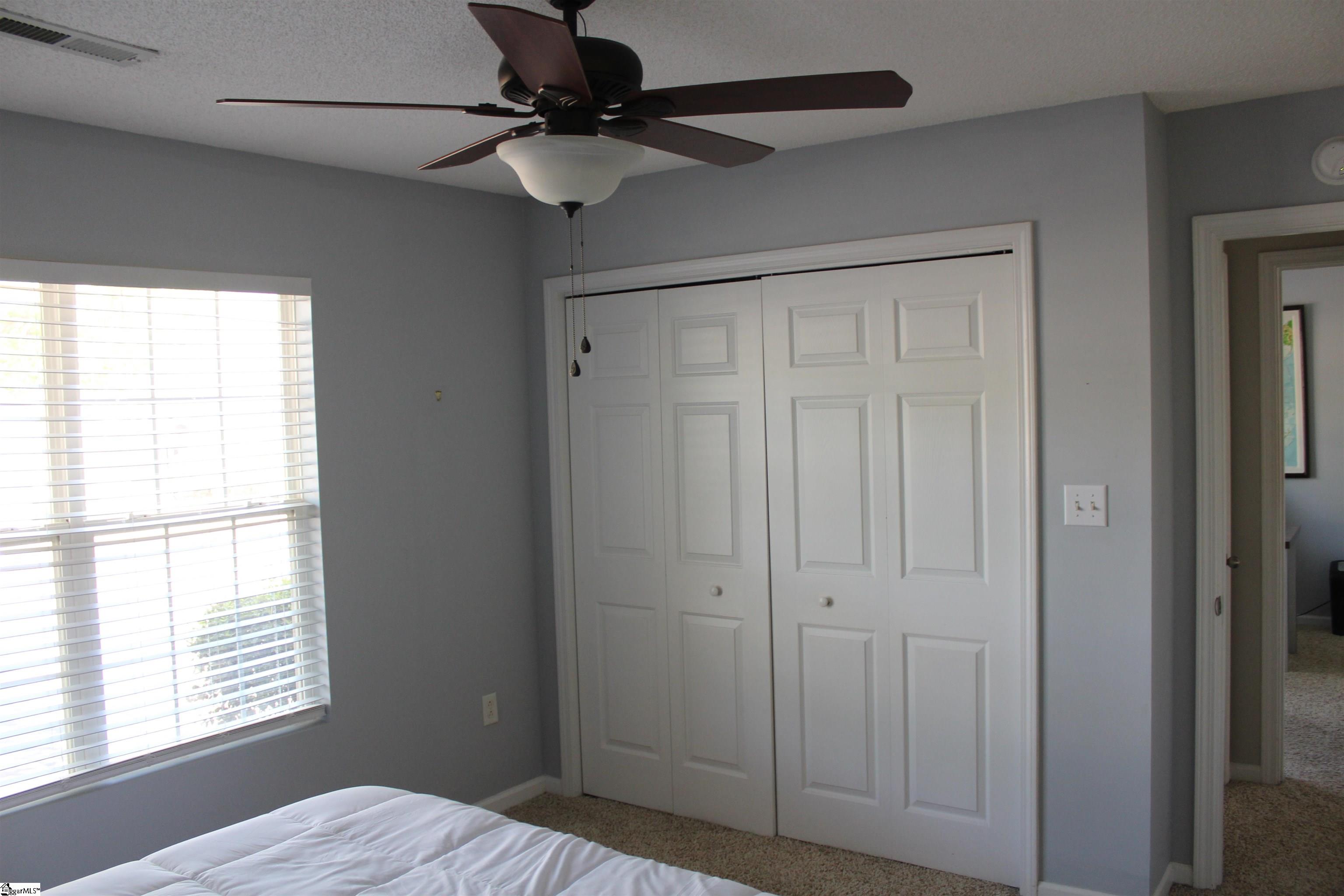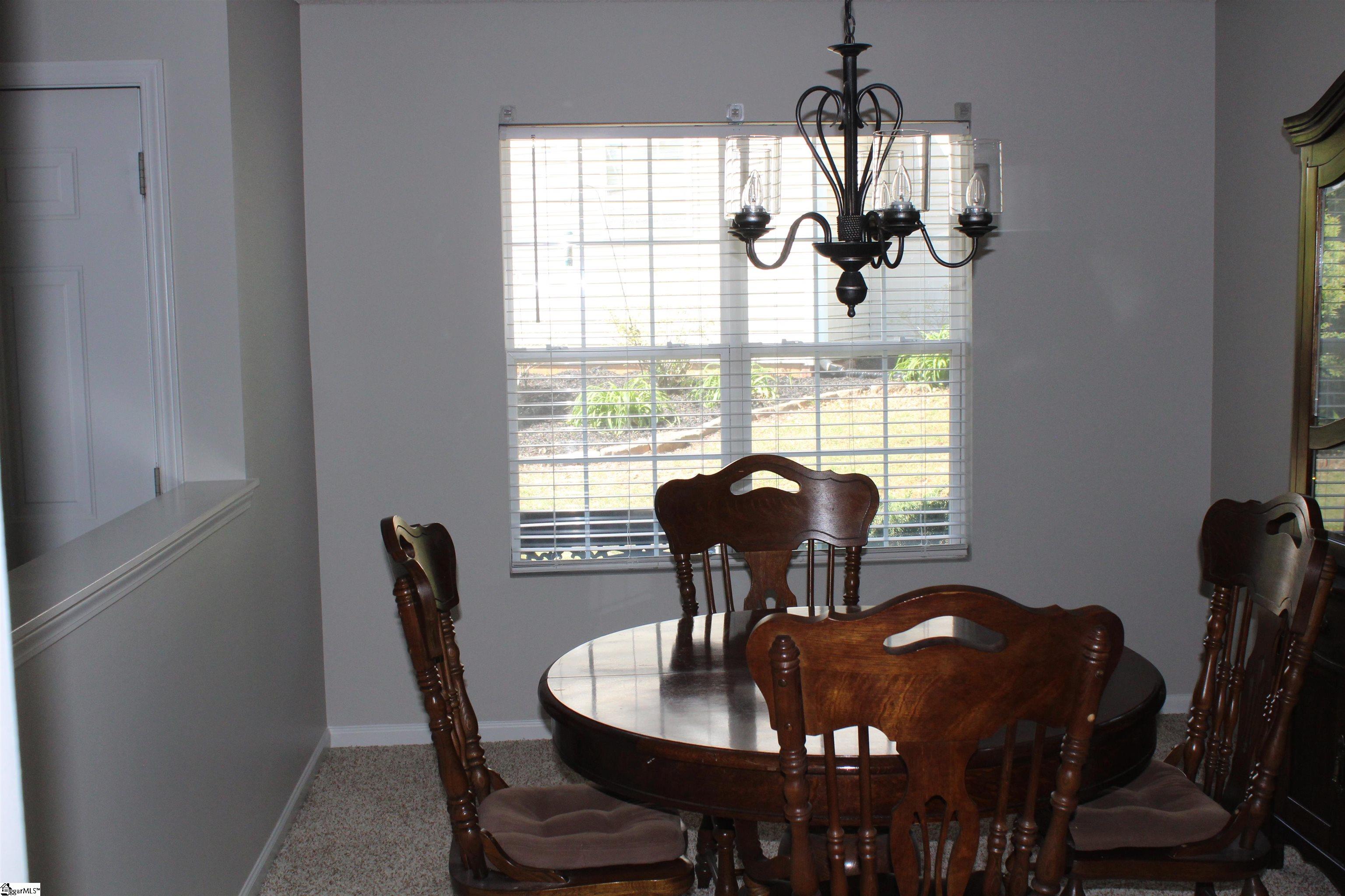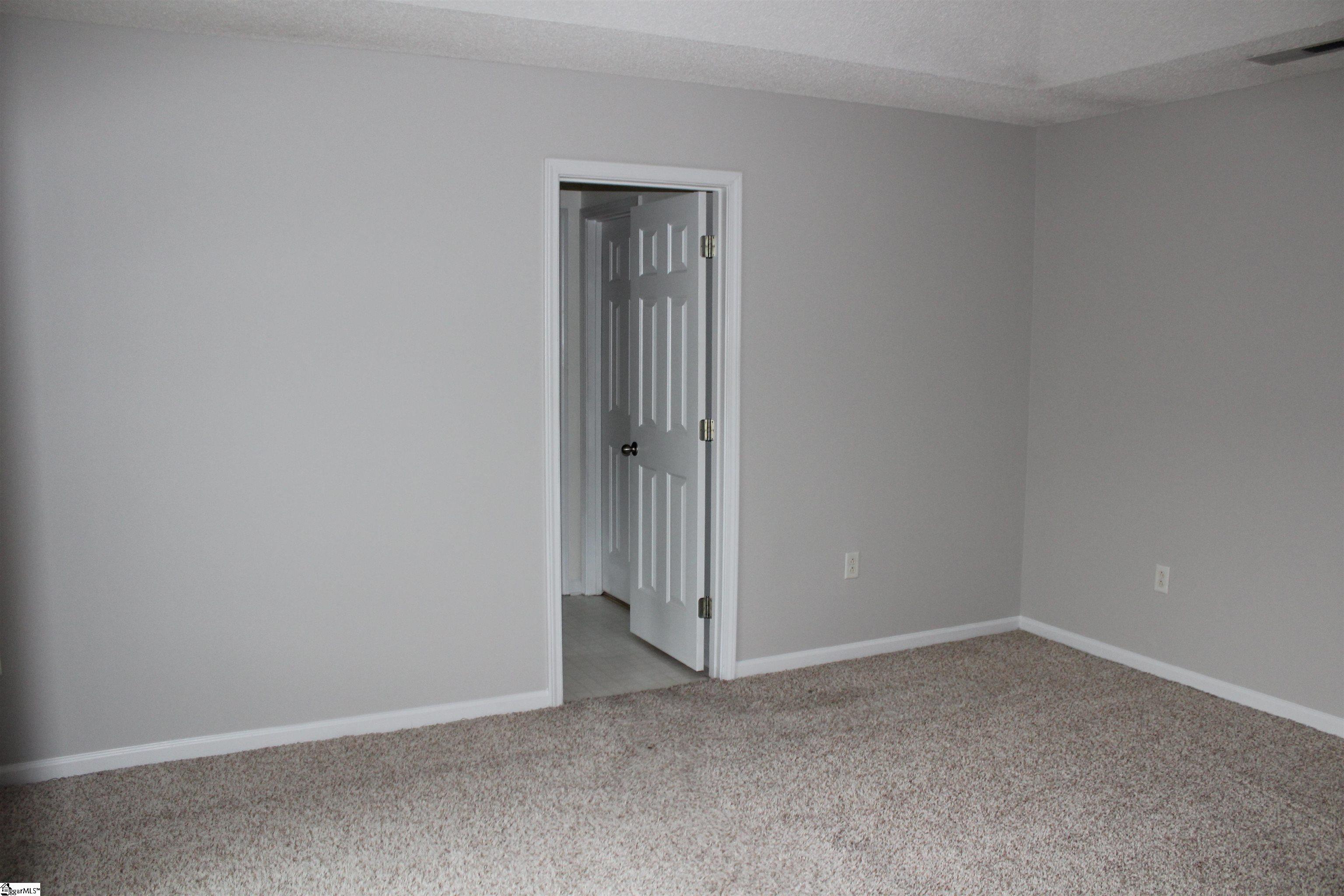 Rare one level townhome located in The Townes of Woodruff Park, located in the popular Five Forks area of Woodruff Road. This townhome is in superb condition with freshly painted walls and trim, granite counter tops, stainless appliances, updated fixtures. This home has ample space, boasting a split floor plan with 3 bedrooms, 2 full baths and open dining area adjacent to the family/living room. There are 2” blinds throughout as well as three sliding glass doors to allow lots of light to enhance the openness of the layout. Living area has a wood burning fireplace equipped with gas starter which can easily be connected to gas logs if desired. The screened in patio overlooks a perfect sized, private back yard sitting area with yard swing, shrubs and landscape lighting to enhance the beauty. One of the best lots in the community offering a large 2 car, private paved driveway at the rear of the home which backs up to a quiet street. In addition, there are two guest parking spots in front of unit which can be utilized. This is an end unit bordering a large common area giving you more privacy and space to roam. This townhome is easily accessible, all one level with no stairs inside or outside. Great location, quiet, well kept, gated community with mature trees and landscaping. Book your appointment today to view this unique townhome and make it your own!