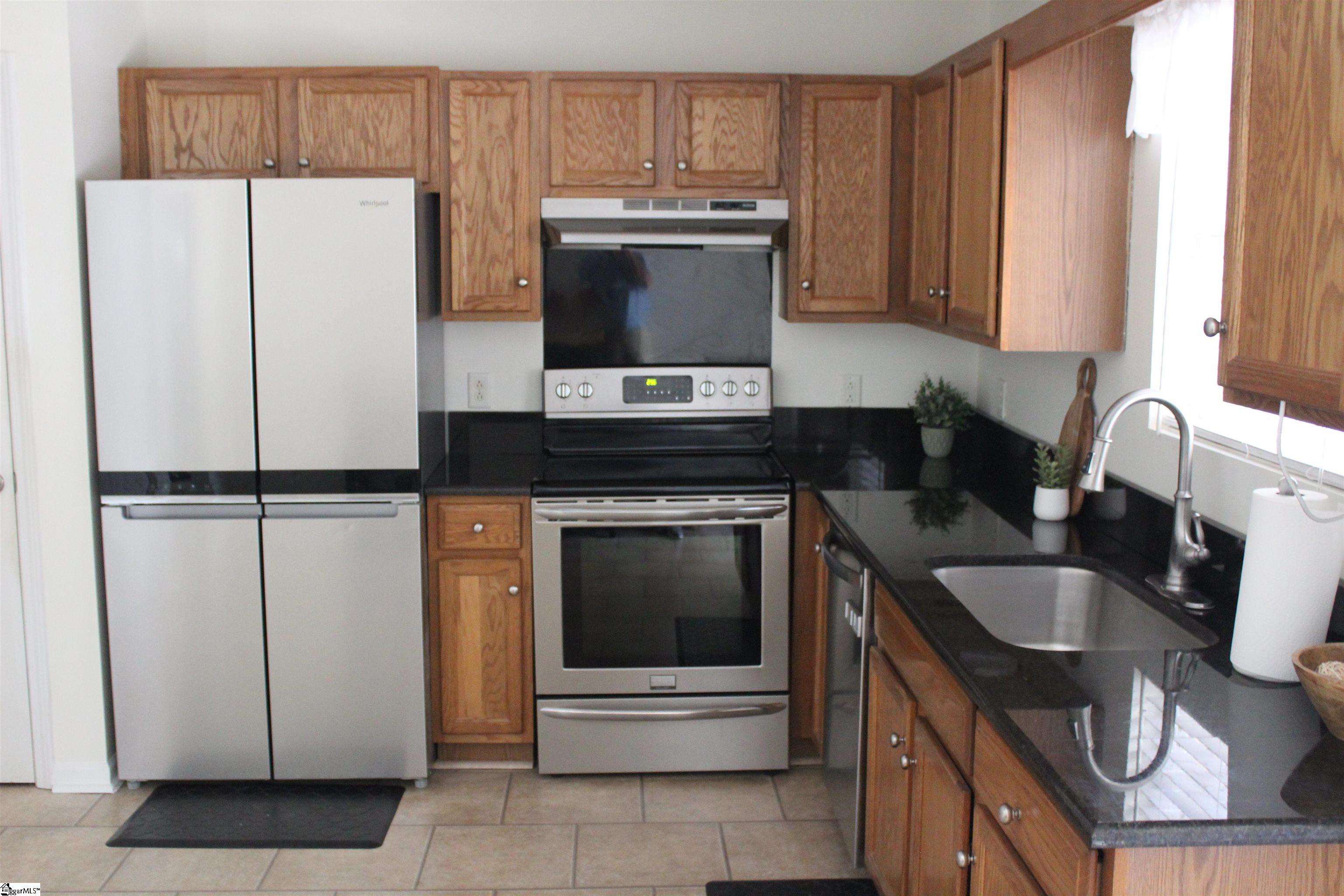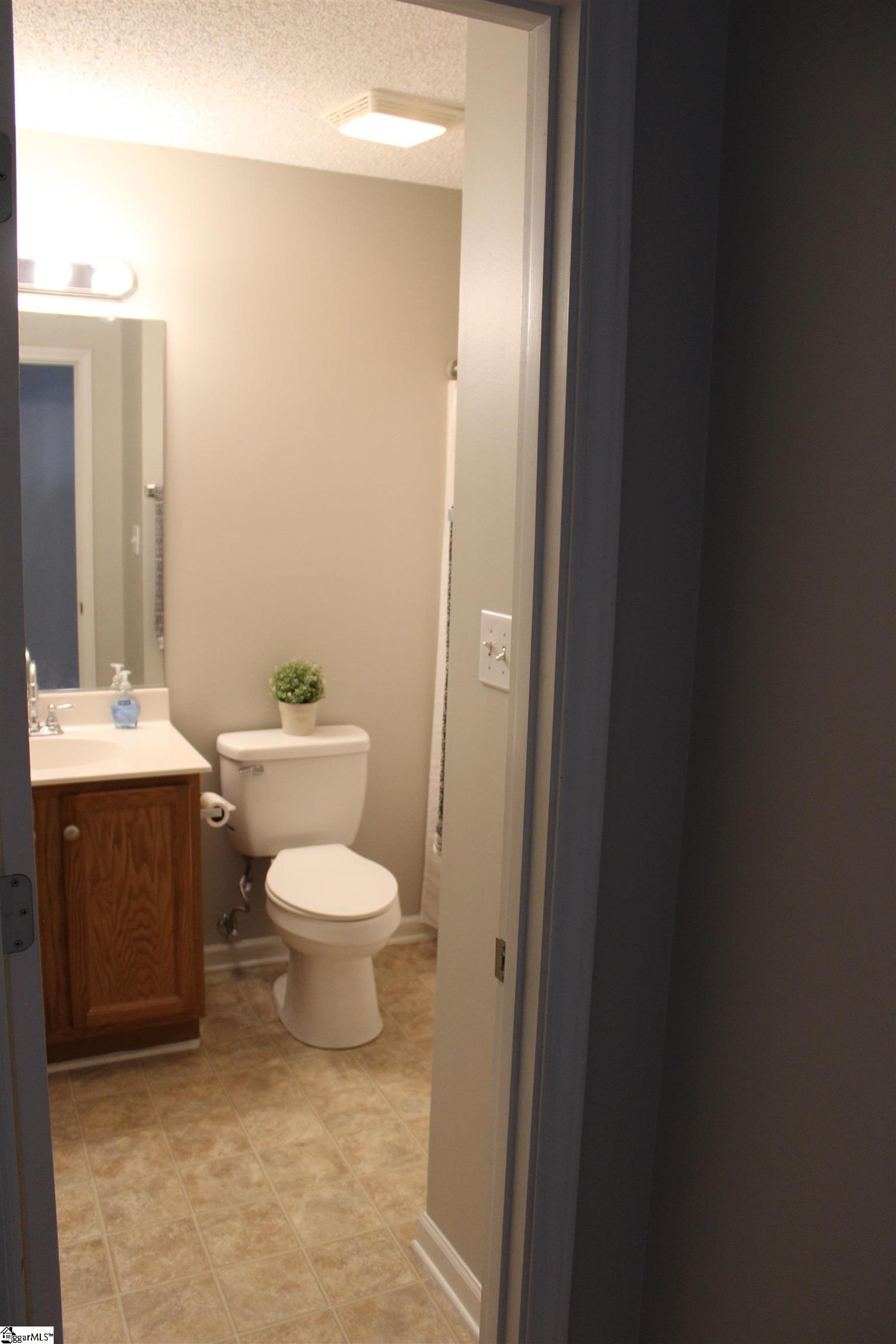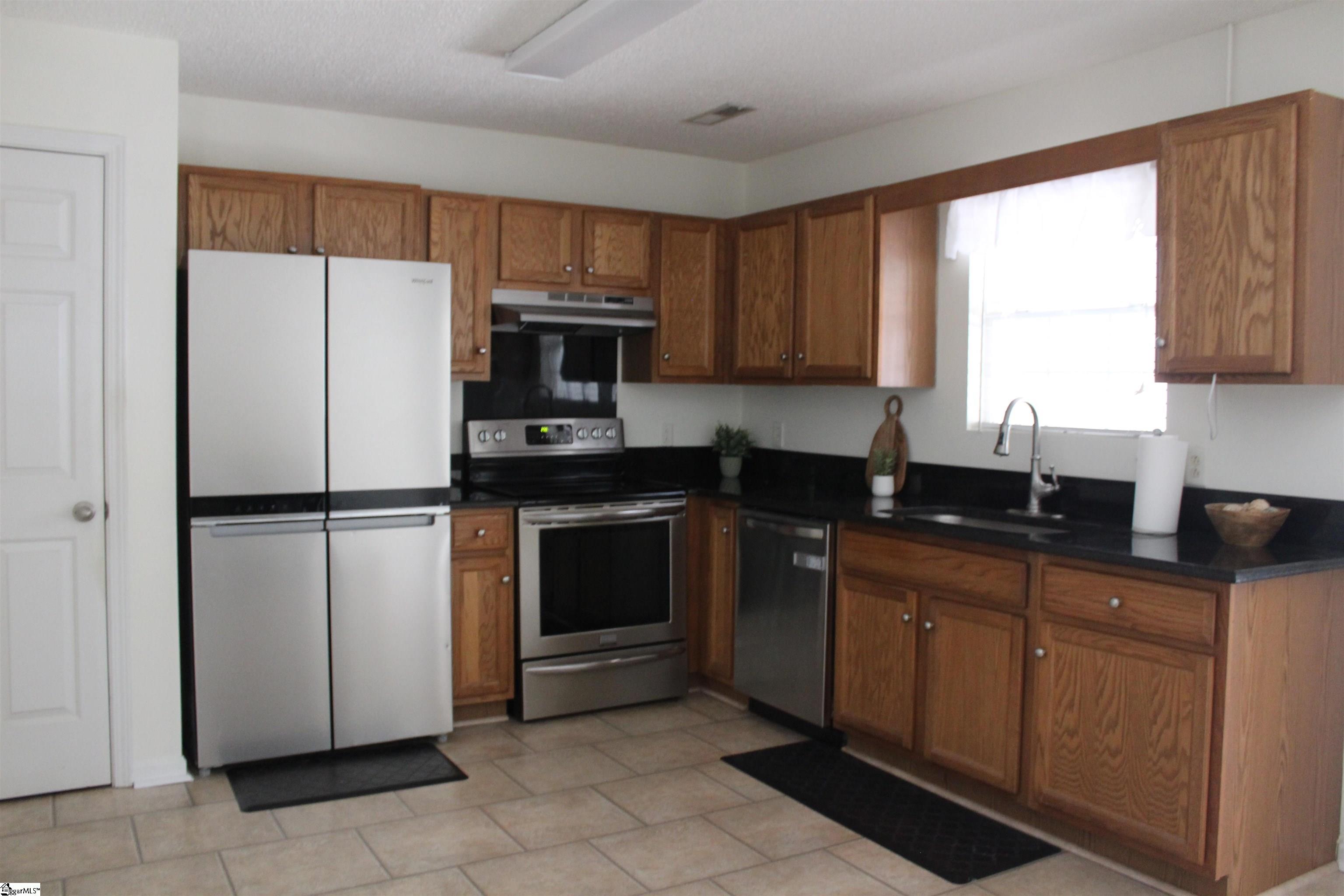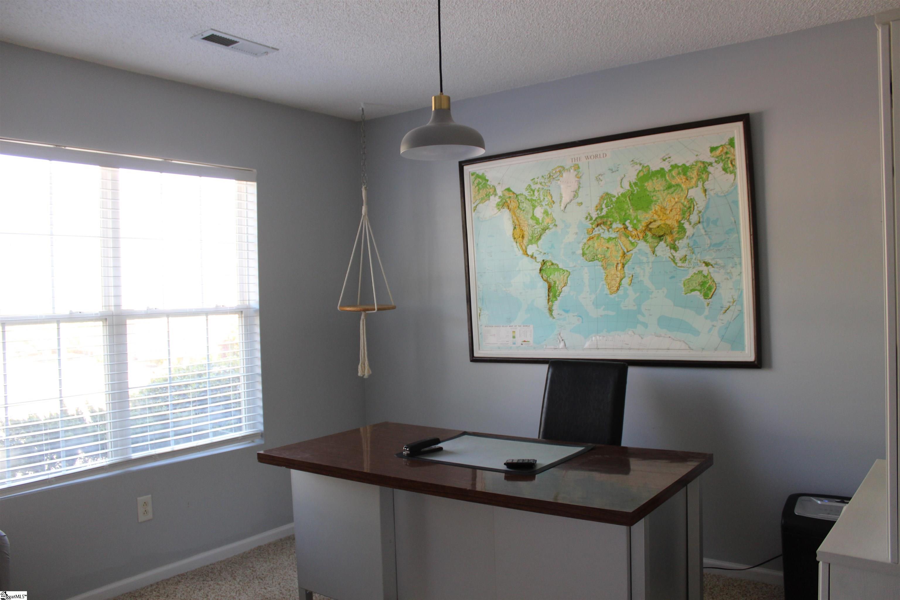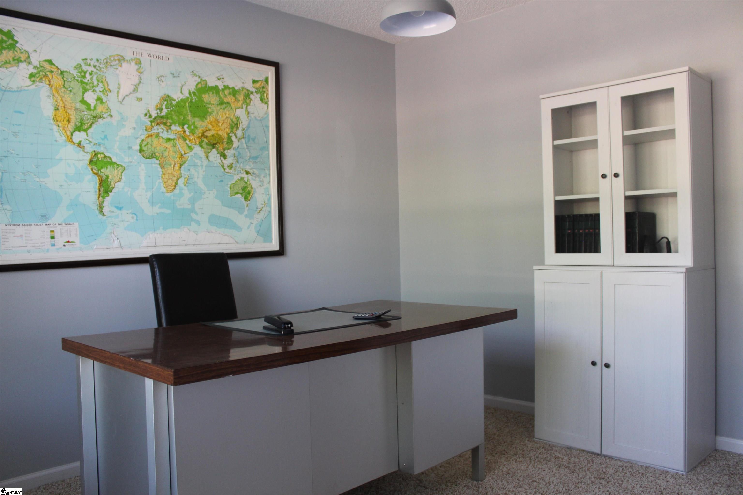 Rare one level townhome located in The Townes of Woodruff Park, located in the popular Five Forks area of Woodruff Road. This townhome is in superb condition with freshly painted walls and trim, granite counter tops, stainless appliances, updated fixtures. This home has ample space, boasting a split floor plan with 3 bedrooms, 2 full baths and open dining area adjacent to the family/living room. There are 2” blinds throughout as well as three sliding glass doors to allow lots of light to enhance the openness of the layout. Living area has a wood burning fireplace equipped with gas starter which can easily be connected to gas logs if desired. The screened in patio overlooks a perfect sized, private back yard sitting area with yard swing, shrubs and landscape lighting to enhance the beauty. One of the best lots in the community offering a large 2 car, private paved driveway at the rear of the home which backs up to a quiet street. In addition, there are two guest parking spots in front of unit which can be utilized. This is an end unit bordering a large common area giving you more privacy and space to roam. This townhome is easily accessible, all one level with no stairs inside or outside. Great location, quiet, well kept, gated community with mature trees and landscaping. Book your appointment today to view this unique townhome and make it your own!
