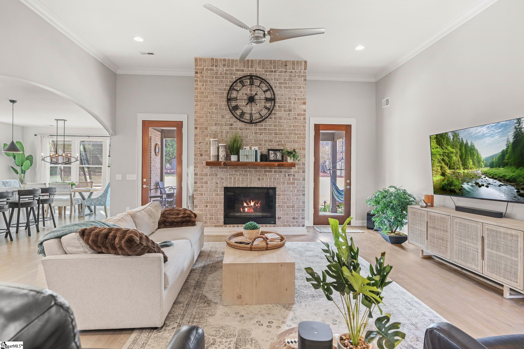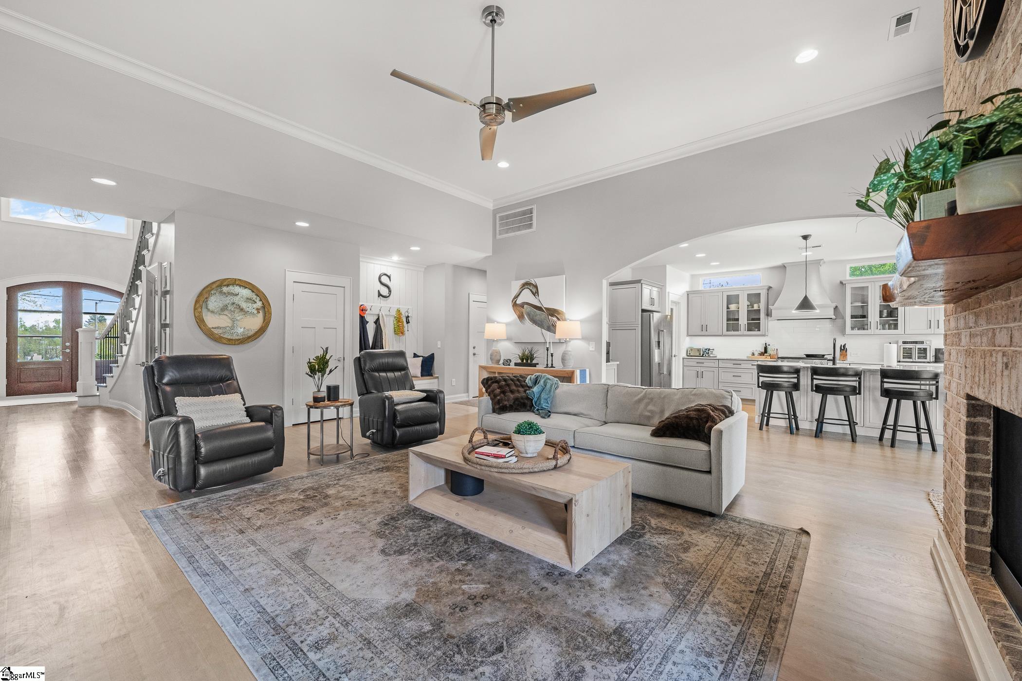 No expense spared in this builder’s personal residence! Set in an exceptional Eastside location with an assignment to award-winning schools, 2201 River Rd offers effortless access to everyday conveniences… whether it’s a quick trip to the market for a forgotten ingredient, an easy commute via nearby interstates, or proximity to top schools and the GSP International Airport. From the moment you arrive, the full brick exterior, dramatic gables, and striking black trim create a bold architectural statement. A welcoming rocking chair front porch invites you to slow down and stay awhile. Inside, a soaring two-story Foyer introduces an open layout defined by rich hardwoods and arched passages. At the heart of the home, a central Family Room highlighted by a masonry gas fireplace, crown molding, and a sleek modern fan flows seamlessly into the center-island Kitchen. Granite counters, a walk-in pantry, and a suite of stainless appliances combine for a pleasing, functional space to prepare meals. There is also a convenient wet bar for serving when entertaining. The adjacent Dining Area showcases a unique candelabra chandelier and exterior louvered shutters that allow you to control the natural light. Off the Foyer, you will delight in the Home Office with French doors that offer a quiet retreat for work or study. The Owner’s Suite is set apart for true privacy, featuring a circular trey ceiling, custom painted accents, and oversized clerestory windows that bathe the space in natural light. The spa-inspired Bath includes a dual-sink vanity, soaking tub, tiled shower, and multiple walk-in closets. A guest Half Bath, the Laundry with a folding counter and sink, and a well-designed Staging Area complete the main level. Upstairs, a versatile Loft provides the perfect setting for a home gym or cozy reading nook. Three additional Bedrooms, including one large enough to serve as a media or rec room, are also on the top floor found along with a shared Bath. Outdoor living is just as inviting, with a covered Porch and Patio overlooking a huge fenced yard with tremendous potential to personalize to suit your family’s desires. Thoughtful upgrades like EV wiring and a backup generator connection ensure the home is as practical as it is beautiful. Schedule a private viewing today!