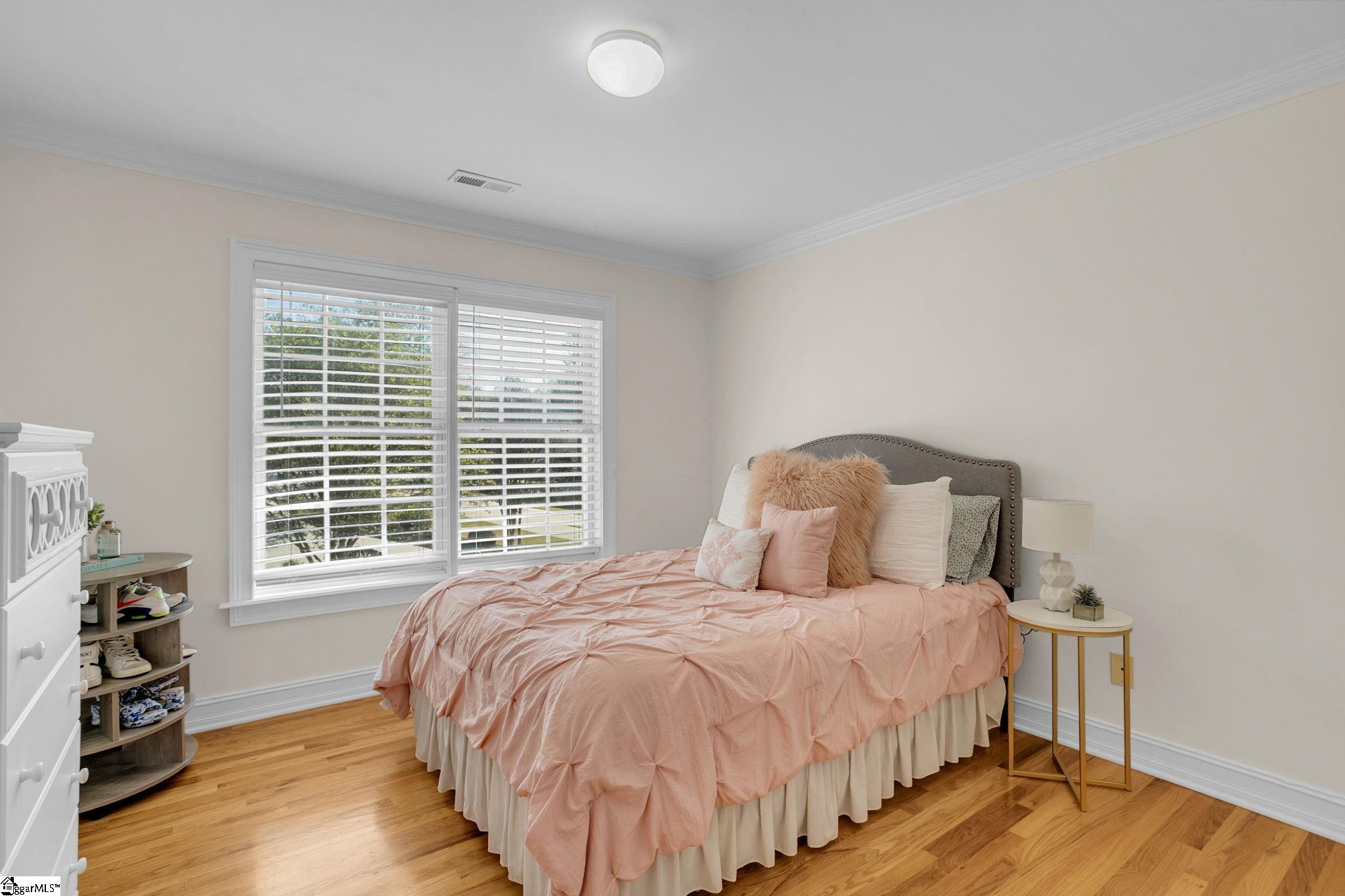 Welcome to this beautifully maintained 5-bedroom, 3 full bathroom home in the highly sought-after Brushy Meadows subdivision! This home has been pre-inspected, with all necessary repairs completed—move in with confidence. The main level welcomes you with a 2-story foyer and multiple staircases. It features a desirable guest bedroom with a full bathroom just outside the door, perfect for visitors or multigenerational living. You’ll also find a spacious office/formal living room with a bay window, offering abundant natural light, and a formal dining room for all of your guests. Hardwood floors run throughout the home—no carpet anywhere! The large kitchen is a standout, featuring generous granite counter space, abundant cabinetry, a walk-in pantry, and a butler’s pantry currently set up as a coffee station. Enjoy both a breakfast area and bar seating, ideal for everyday living and entertaining. Upstairs, the expansive primary suite includes an en-suite bathroom with dual vanities, a soaking tub, separate shower, private water closet, and dual walk-in closets. Three additional bedrooms share a well-appointed Jack-and-Jill/hall bathroom with dual vanities. Outdoor living is just as impressive, with a screened-in porch, spacious grilling deck, private half-acre yard, and a circular driveway providing ample parking. Enjoy a short walk to neighborhood amenities, including a pool with swim team, tennis and pickleball courts, clubhouse, and a scenic walking trail around the pond leading to the Greer hospital system. Located in an award-winning school district: Woodland Elementary, Riverside Middle, and Riverside High. This one is a rare find!