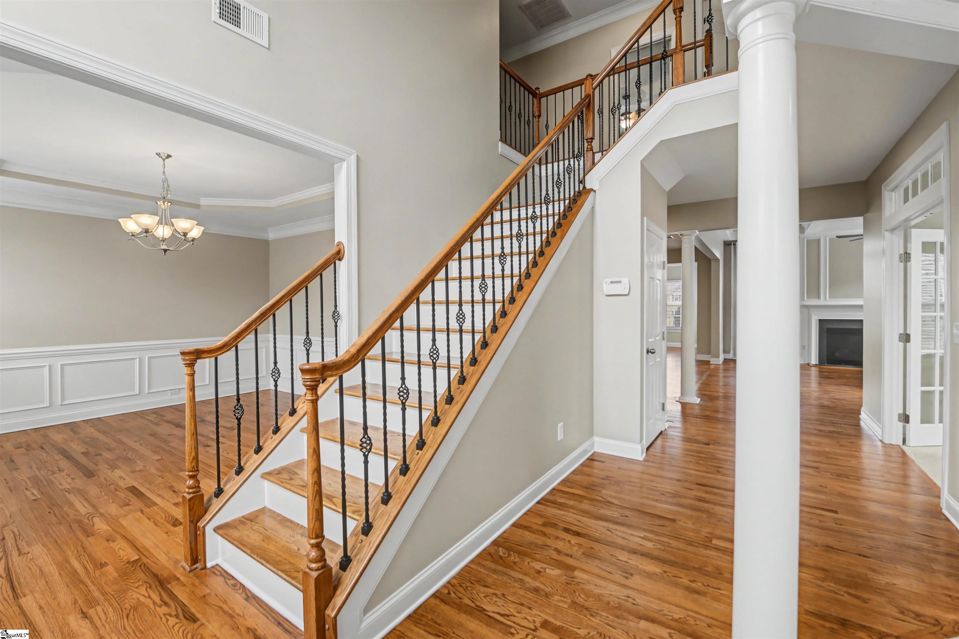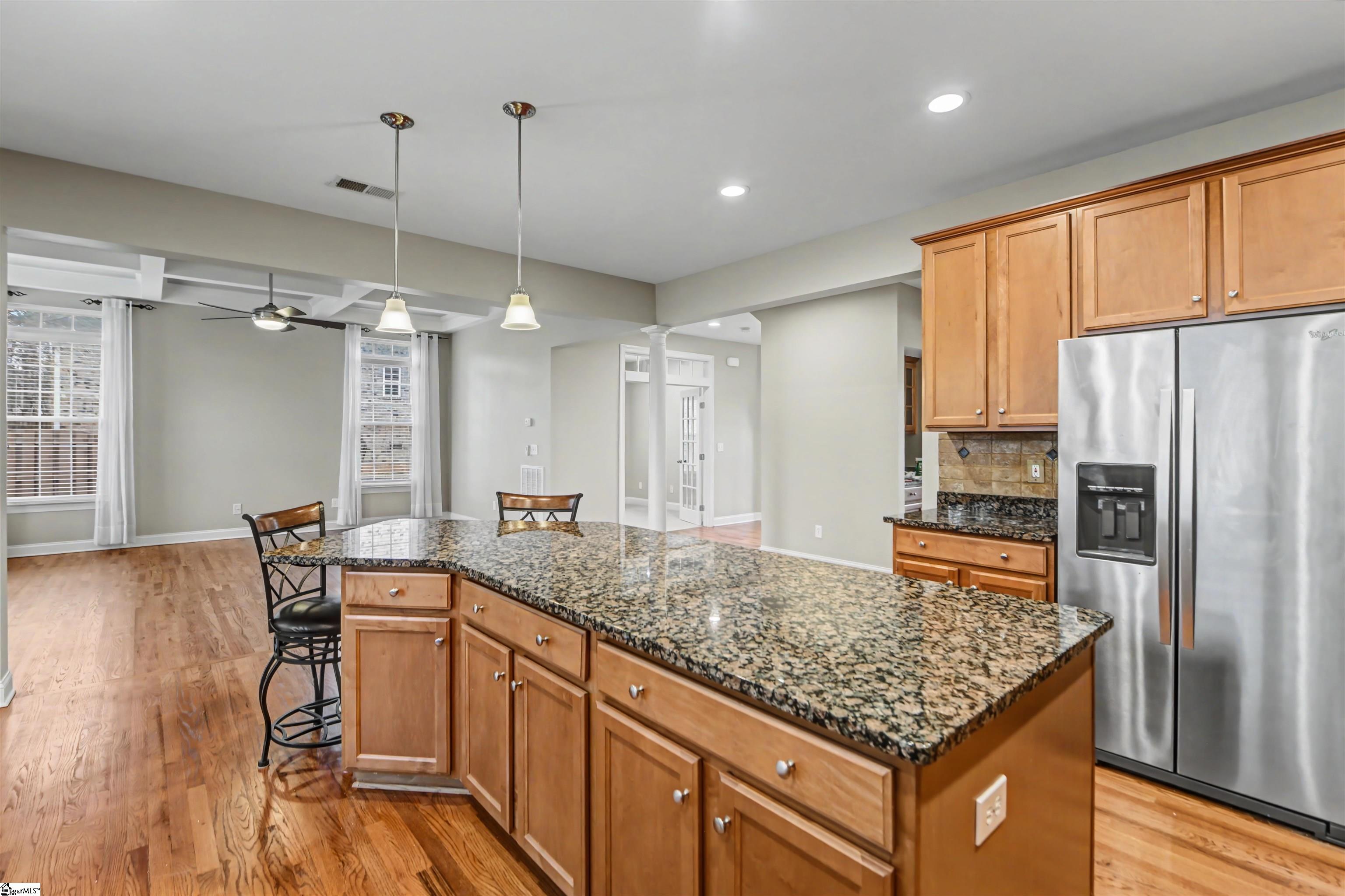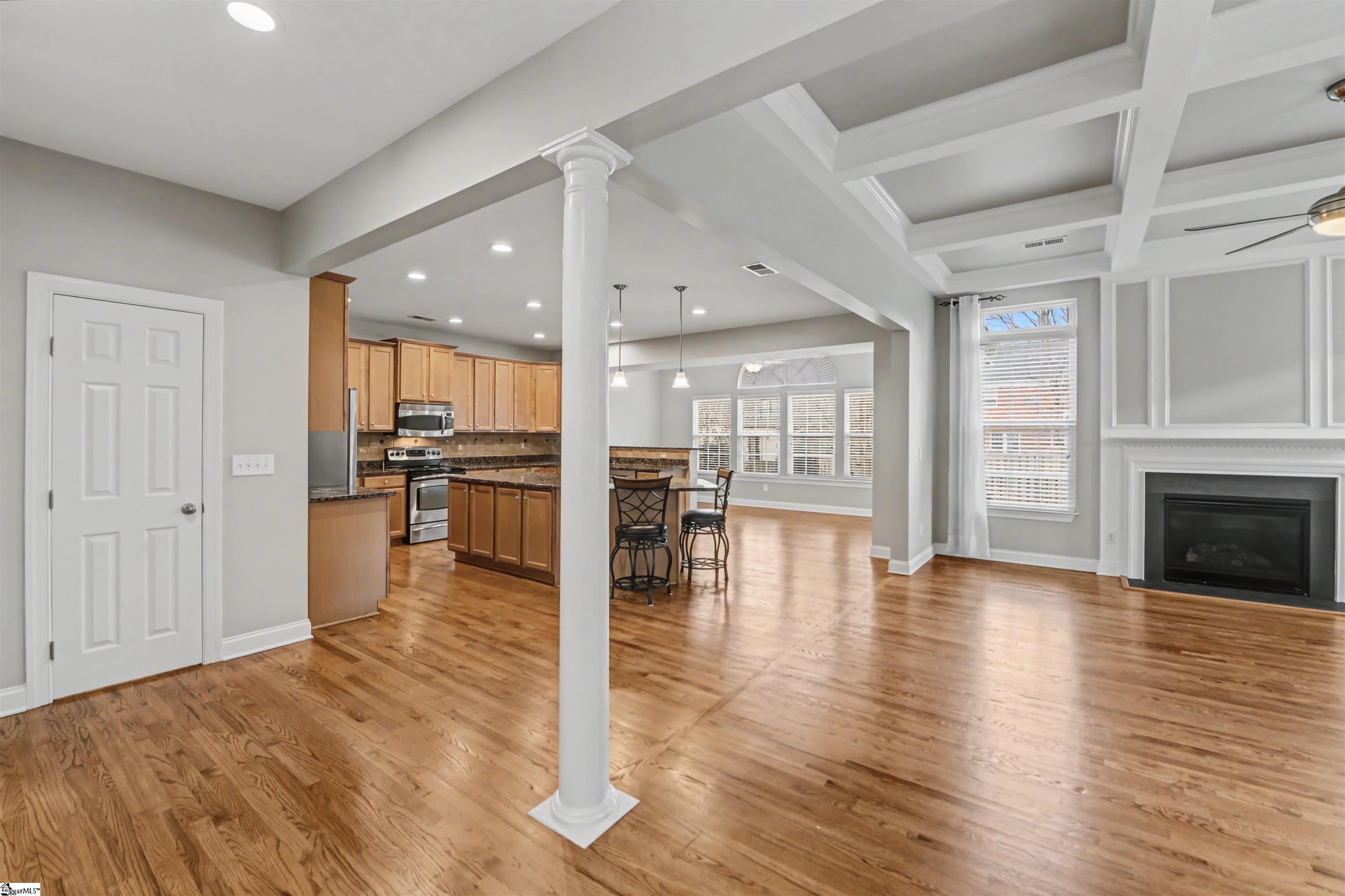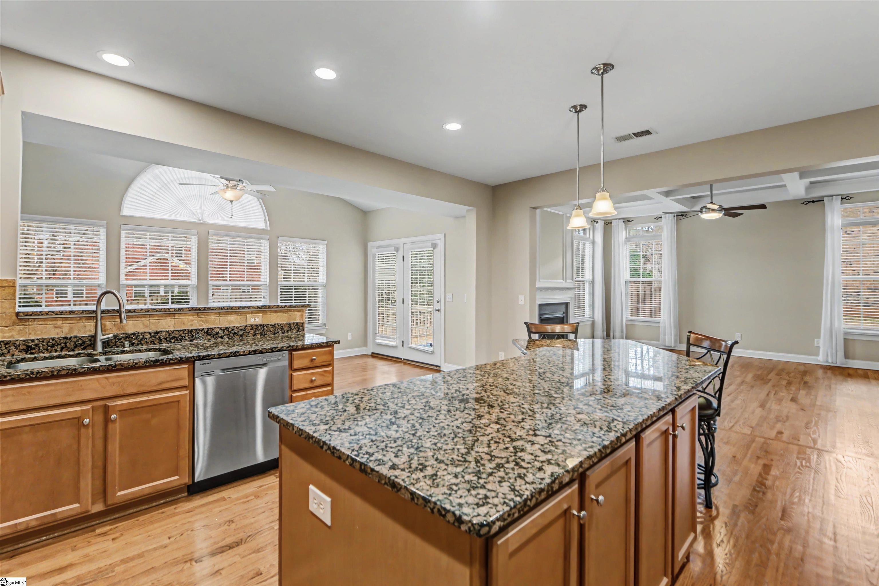 OPEN HOUSE SUNDAY 2/22/26 2-4PM! MUST SEE! WELCOME to the prestigious 225 Highgrove Court in the heart of the Five Forks area in Simpsonville, SC! This ALL BRICK 4BR home is conveniently located on a long cul-de-sa street in the highly desired community of HIGHGROVE ESTATES with popular amenities including a pool, sidewalks, a tennis court, AND a playground! This FRESHLY PAINTED beauty boasts a THREE-car side load garage, an extra upstairs flex room, PLUS a dedicated home office with French doors! You will quickly notice and appreciate the gleaming hardwoods throughout much of the main level that continue in the upstairs hallway. This immaculate home features a large formal dining room, formal living room, and a spacious open kitchen/great room and adjoining morning/breakfast room. The great room has a coffered ceiling, floor to ceiling windows with transoms, and a gas log fireplace. You will love all the natural light in this home! The amazing kitchen includes a vast amount of cabinetry including an elongated center island with seating space (two barstools convey), a walk-in pantry, granite countertops, extra recessed lighting, and all SS appliances! Step out back on to a large deck overlooking a level backyard lined with trees and three sides of fencing for added privacy. Upstairs you will enjoy spacious bedrooms plus an oversized vaulted flex room, and an equipped walk-in laundry room! The upstairs primary bedroom boasts a trey ceiling, dual walk-in closets, and a private bath with tile flooring, dual vanities, private commode, garden tub, and tile shower! WHAT a retreat! The secondary bedrooms are also nicely proportioned with super closets and share a lovely hall bath. EVEN a two year old hot water heater! In addition, this home is zoned for the coveted schools Monarch Elementary, Beck Academy, and JL Mann High School or conveniently located to many top private schools nearby. Convenient to shopping, restaurants, GSP, Greenville, Spartanburg or Woodruff, this location is KEY! STOP your search today; this home is move-in ready so come on home to 225 Highgrove Court! P.S. Free initial rate buydown offered with preferred lender provides substantial savings also!
