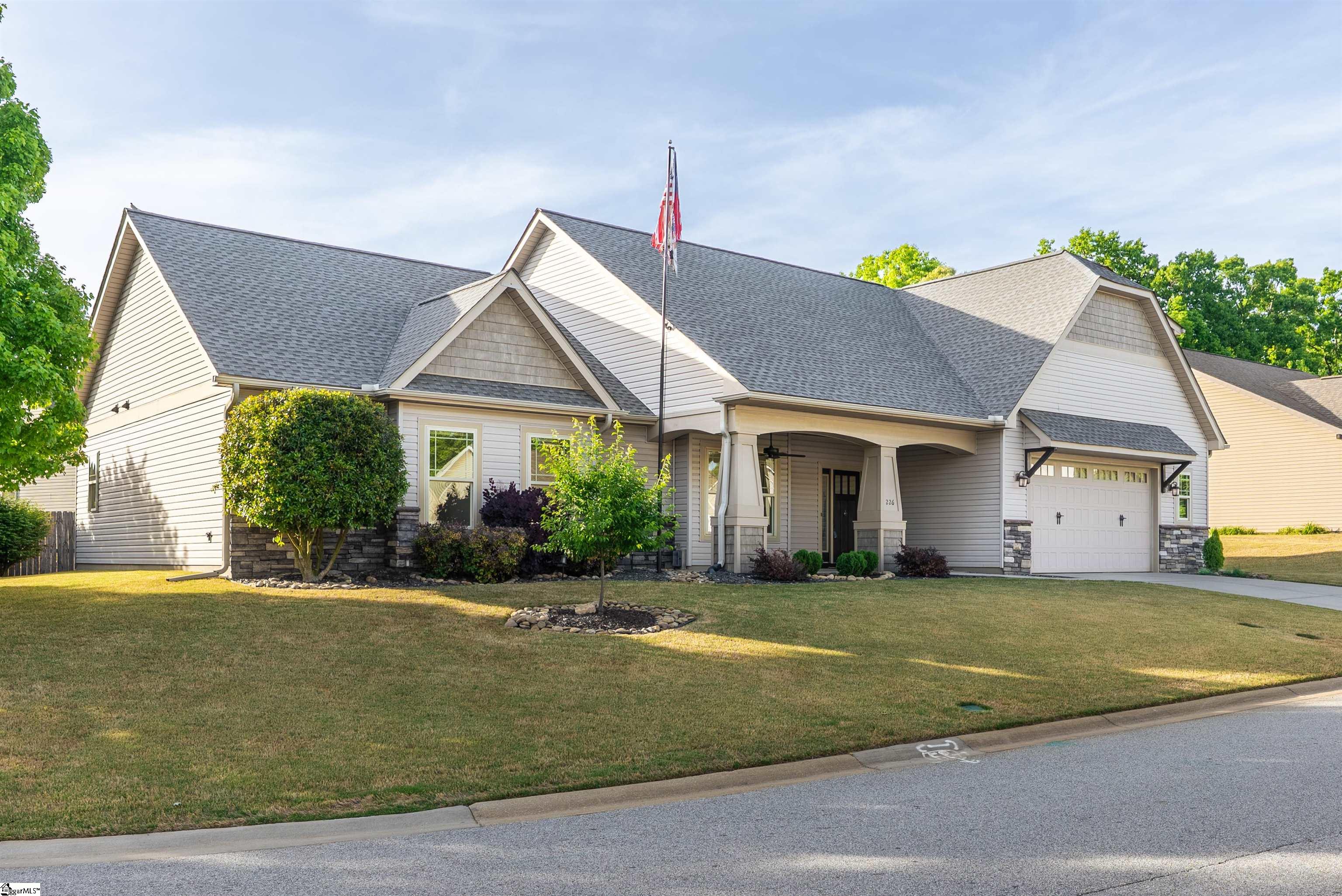 Welcome to this amazing, immaculate, like-new Craftsman-style home tucked away in the heart of Simpsonville’s highly sought-after Golden Strip! Perfectly positioned just minutes from I-385, Downtown Greenville, and Simpsonville, this home offers the ideal combination of location, condition, and lifestyle convenience. From the moment you arrive, the spectacular curb appeal will stop you in your tracks. The exterior showcases a beautifully manicured lawn, meticulously maintained shrubbery beds, and a charming covered front porch—all thoughtfully designed and cared for by a detail-oriented owner. Every element of the landscaping reflects pride of ownership and creates a warm, inviting first impression that truly sets this home apart. Step inside to a bright, open floor plan where large rooms and tall ceilings create an airy, welcoming space perfect for both everyday living and entertaining. The great room is the heart of the home, featuring a cozy gas log fireplace with stonework and a wooden mantle, creating the perfect setting for relaxing evenings. The adjacent dining area provides ample space for a large farm table and is perfectly positioned with open sightlines to both the great room and kitchen—making this layout ideal for hosting and gathering. The well-equipped kitchen is designed with both function and style in mind, featuring granite countertops, custom wooden cabinetry, large drawers, an island with trendy lighting, and a spacious pantry for ample storage—everything today’s buyers are looking for. The primary suite on the main level offers a true retreat with a spa-like bathroom including a garden tub, separate shower, and a spacious walk-in closet. Secondary bedrooms are generously sized and share a full hall bath, providing comfortable accommodations for family or guests. Upstairs, the large bonus room offers endless possibilities—perfect as a media room, game room, guest suite, or home office. In addition, the home features a huge attic space for storage, giving you all the room you need to stay organized. This room off the bonus room is also plumbed in case you want to add an additional bathroom in the bonus room. Step outside to your own private outdoor oasis. Enjoy relaxing on the screened porch overlooking the backyard, or host gatherings on the patio—perfect for grilling and entertaining. A detached shed provides additional storage for lawn equipment or gardening tools, while the oversized garage offers even more space for storage, hobbies, or a workshop. Located just minutes from grocery stores, restaurants, medical offices, and major retail corridors, this home truly delivers on convenience. Easy access to Fairview Road and I-385 puts everything you need within reach, while still enjoying the privacy of cul-de-sac street living. This move-in ready home checks every box—condition, layout, curb appeal, and location. * Prime Simpsonville Location * Exceptional Curb Appeal & Landscaping *Primary Suite on Main Level *Bonus Room + Ample Storage *Minutes to I-385, Shopping, Dining & Medical Homes with this level of care, presentation, and location do not last long—schedule your showing today before it’s gone!