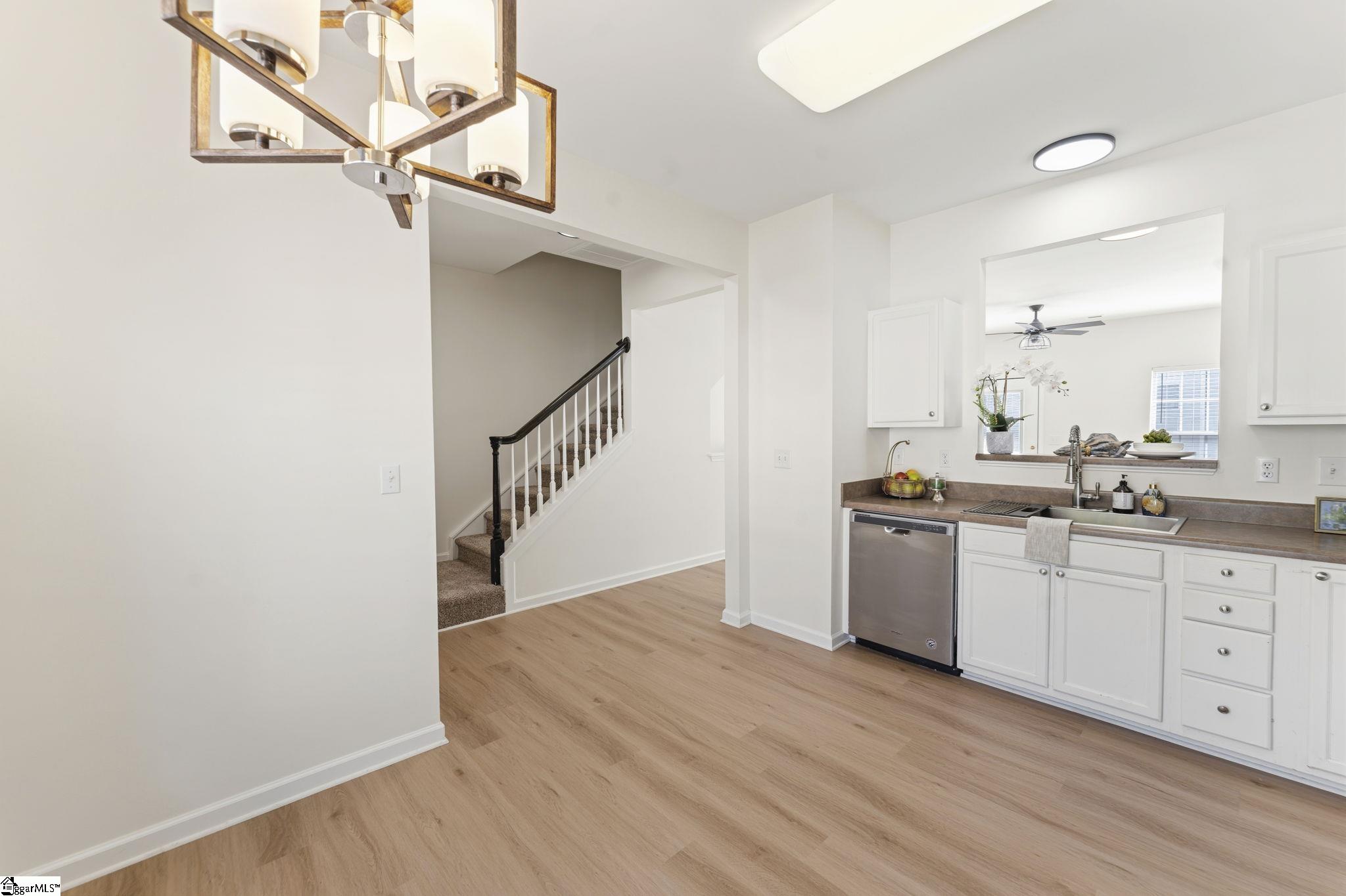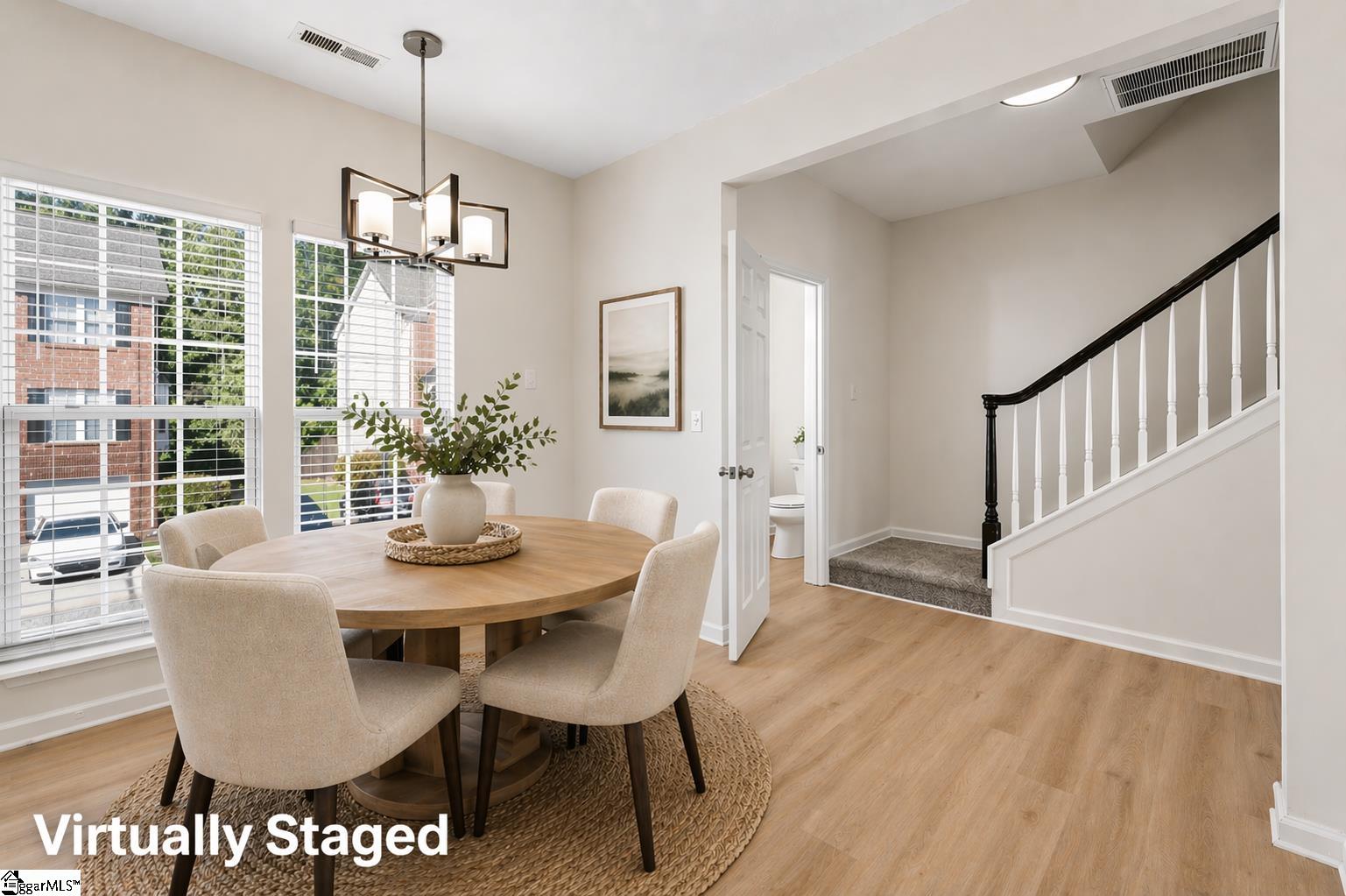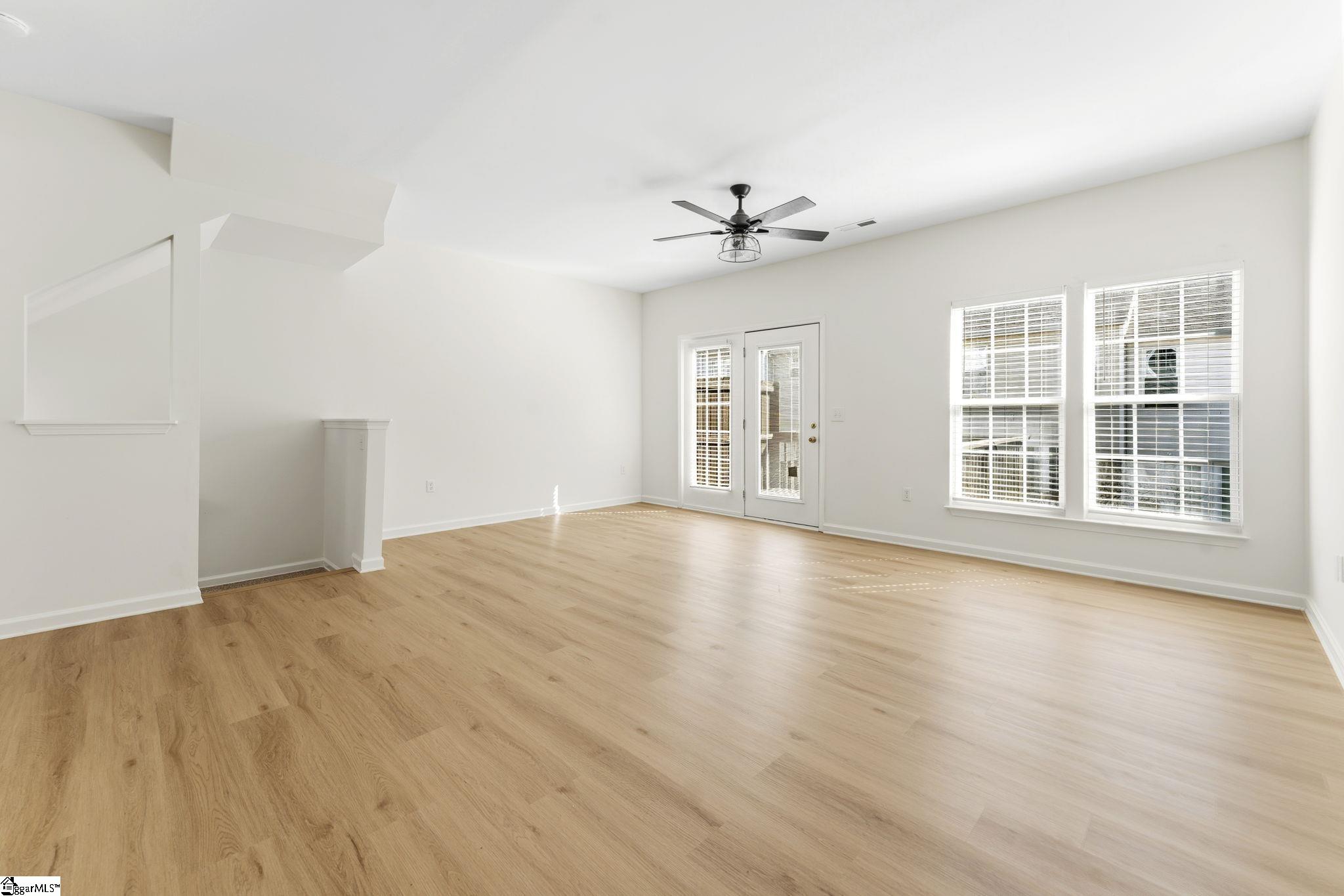 Welcome to this stunning, move-in ready townhome in a prime location near shopping, dining, Woodruff Road, I-385, I-85, and downtown Greenville. Offering both convenience and lifestyle, this spacious home features 3 bedrooms, 1.5 bathrooms, and a garage for added storage and functionality. Brand new, never-lived-on luxury vinyl plank flooring and carpet pair beautifully with fresh neutral paint throughout. The flexible lower level includes a bedroom and private patio, making it ideal for guests, teens, or multi-generational living. The bright eat-in kitchen features a large window, neutral cabinetry, and a welcoming feel. Adjacent to the kitchen, the spacious family room is perfect for entertaining and is enhanced by 9-foot ceilings that create an open, airy atmosphere. Step outside to the deck for a peaceful place to relax and unwind. Enjoy exceptional access to nearby lifestyle amenities, including BridgeWay Station for dining, entertainment, and events, as well as the growing amenities along North Main and Mauldin City Center, including coffee shops, Publix, restaurants, and everyday conveniences just minutes away. Zoned for sought-after Greenville County schools, this beautiful townhome offers the perfect blend of comfort, connectivity, and location.