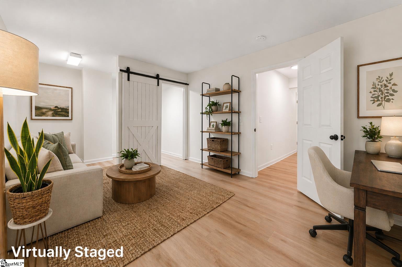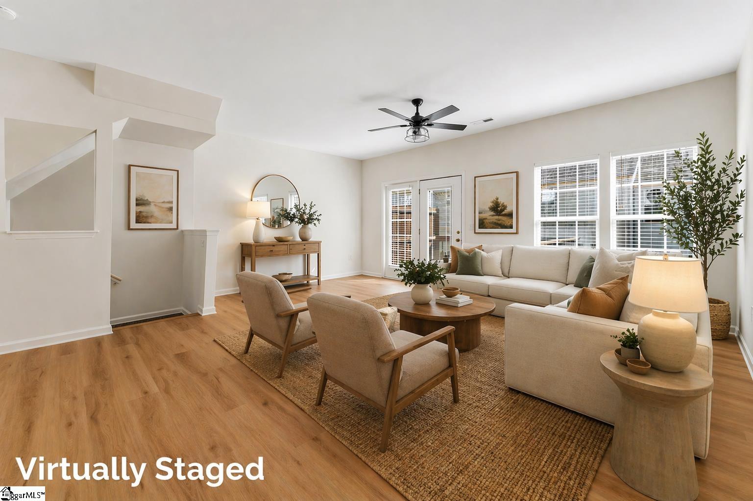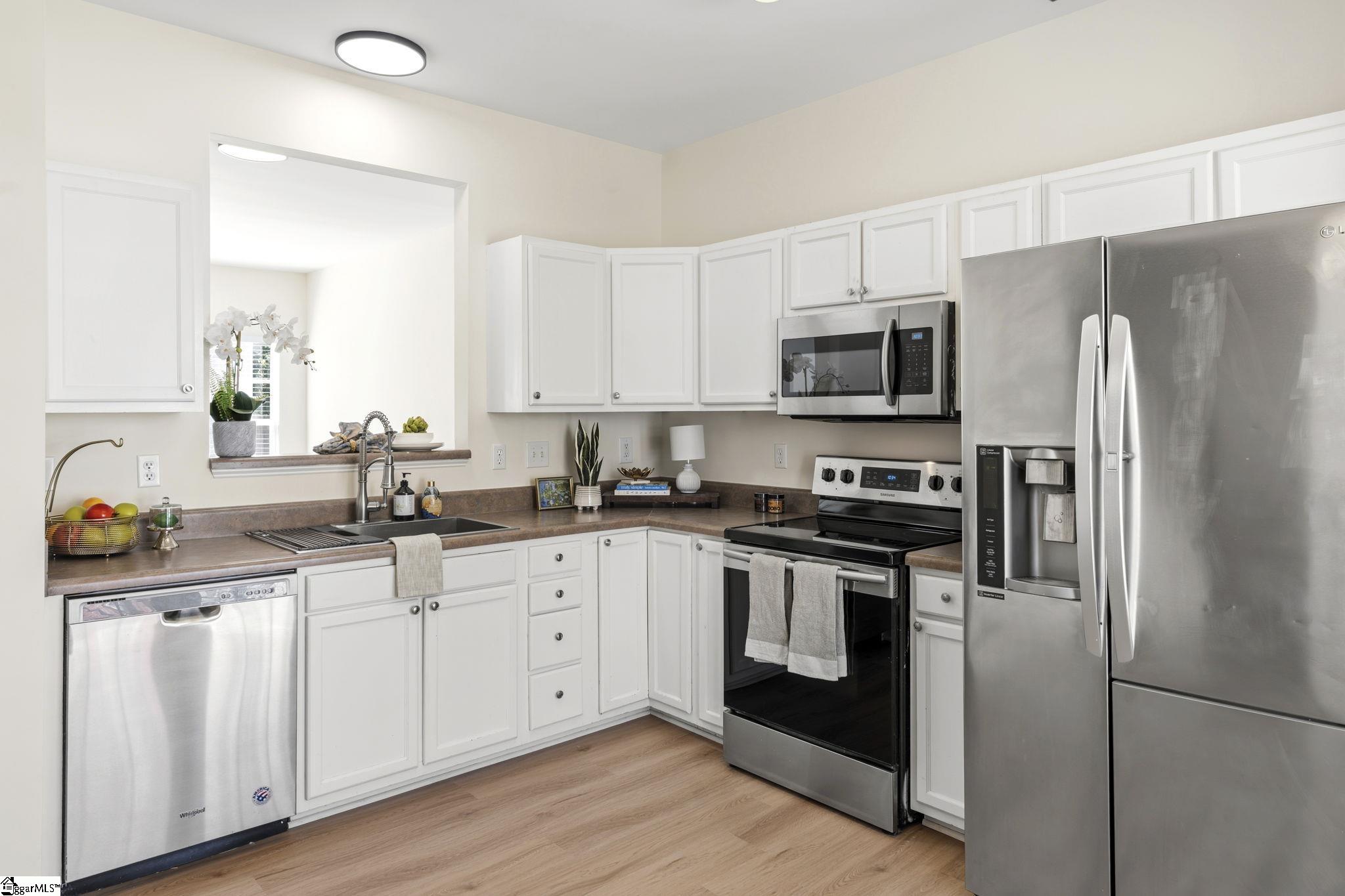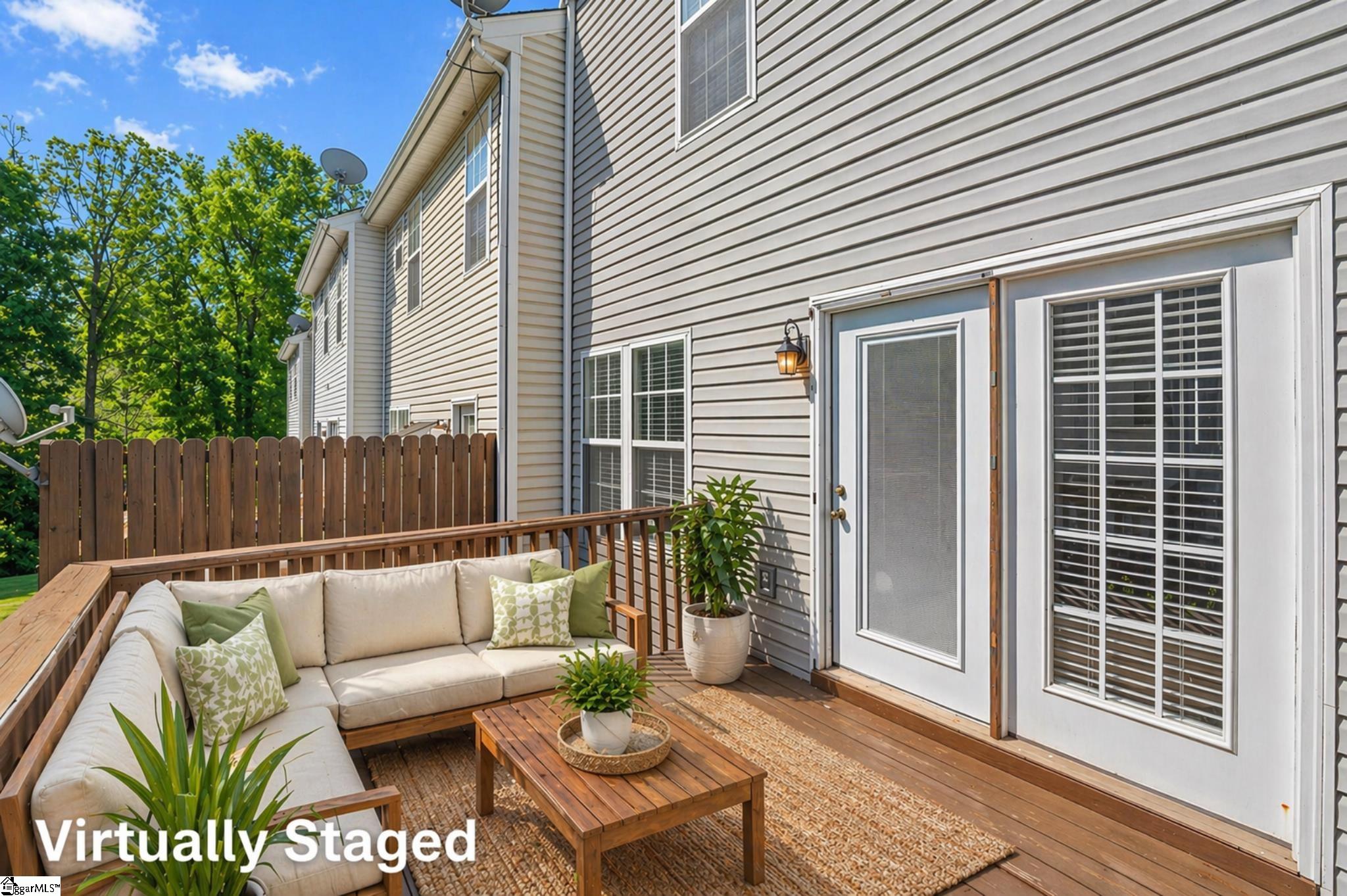 Welcome to this stunning, move-in ready townhome in a prime location near shopping, dining, Woodruff Road, I-385, I-85, and downtown Greenville. Offering both convenience and lifestyle, this spacious home features 3 bedrooms, 1.5 bathrooms, and a garage for added storage and functionality. Brand new, never-lived-on luxury vinyl plank flooring and carpet pair beautifully with fresh neutral paint throughout. The flexible lower level includes a bedroom and private patio, making it ideal for guests, teens, or multi-generational living. The bright eat-in kitchen features a large window, neutral cabinetry, and a welcoming feel. Adjacent to the kitchen, the spacious family room is perfect for entertaining and is enhanced by 9-foot ceilings that create an open, airy atmosphere. Step outside to the deck for a peaceful place to relax and unwind. Enjoy exceptional access to nearby lifestyle amenities, including BridgeWay Station for dining, entertainment, and events, as well as the growing amenities along North Main and Mauldin City Center, including coffee shops, Publix, restaurants, and everyday conveniences just minutes away. Zoned for sought-after Greenville County schools, this beautiful townhome offers the perfect blend of comfort, connectivity, and location.