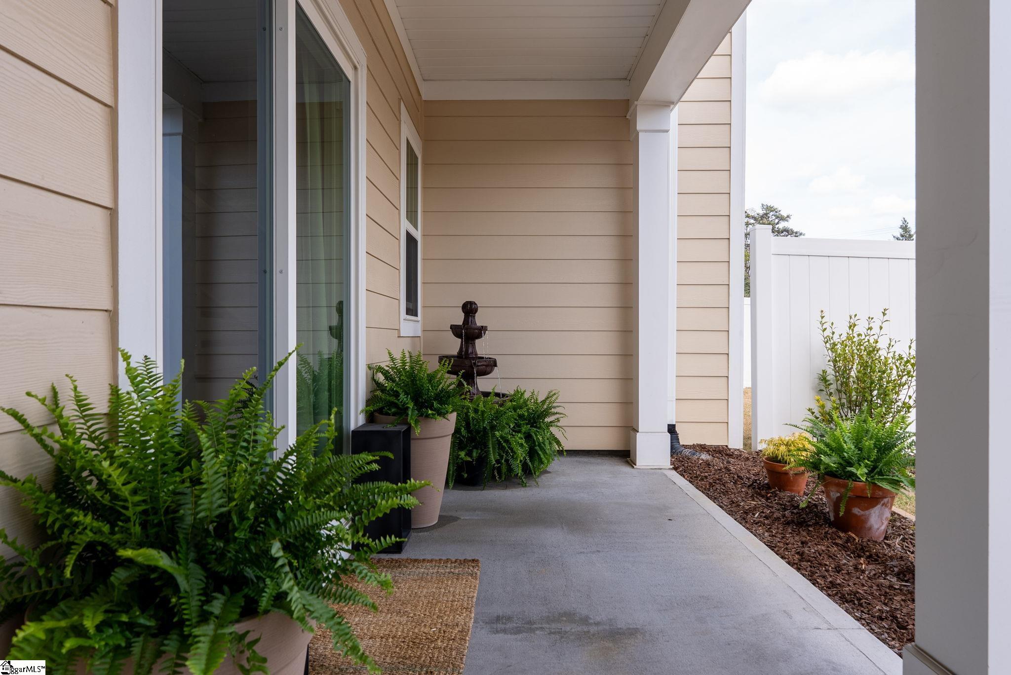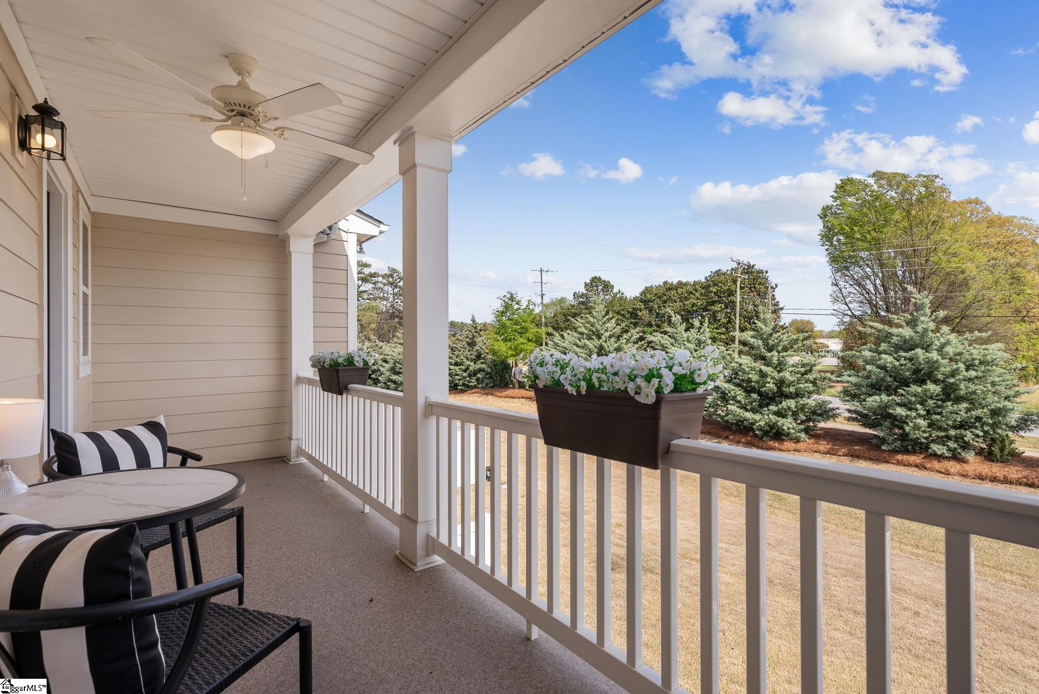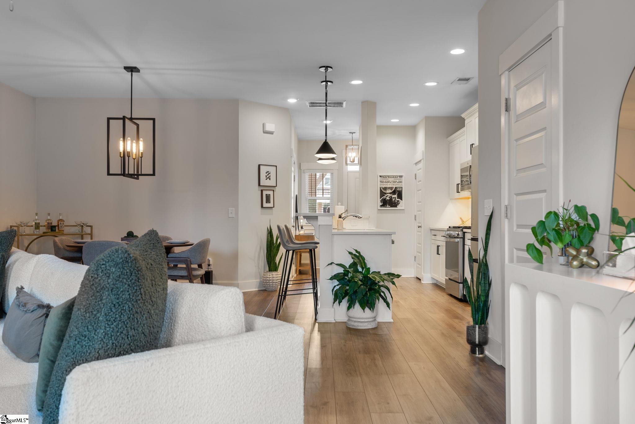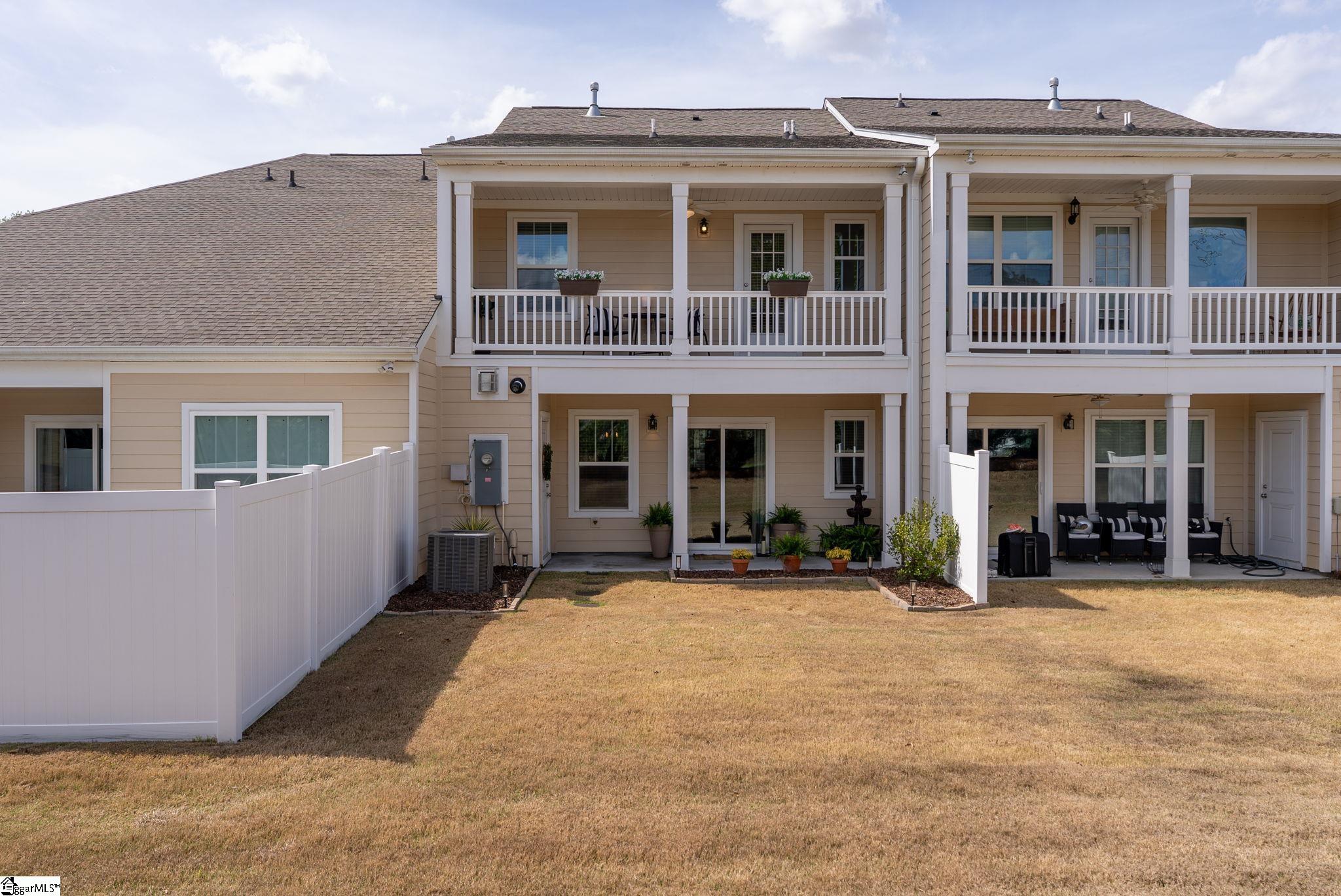 This immaculate town home combines elegance and low-maintenance living all into one. It is conveniently located within 5 minutes of Woodruff Road shops and restaurants as well as being minutes to all of the charm and lifestyle that downtown Greenville has to offer. This home features hardwood stairs, LVP flooring on main level and hallway on second level, upgraded craftsman style trim and designer lighting. Quartz kitchen countertops, under-cabinet lighting, stainless steel appliances and gas stove/oven complete this well-appointed kitchen. From the living room, walk out onto your covered 17 ft x 6 ft covered patio perfect for outdoor entertaining and with a 4 ft x 5 ft storage shed to the side. Retreat to the master suite and step out onto your 21 ft x 5 ft covered balcony which is perfect for relaxing or having morning coffee. The master bath has a large walk-in tile shower and tile flooring which leads to the spacious walk-in closet. Come see this beautifully staged well appointed home today and make it yours before it is gone!