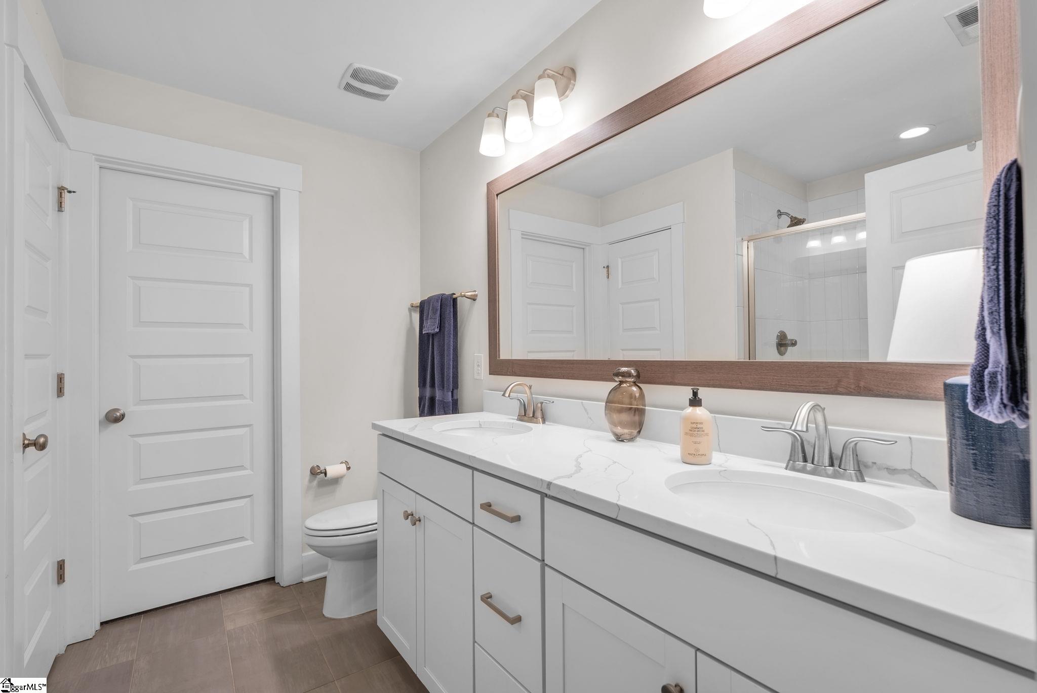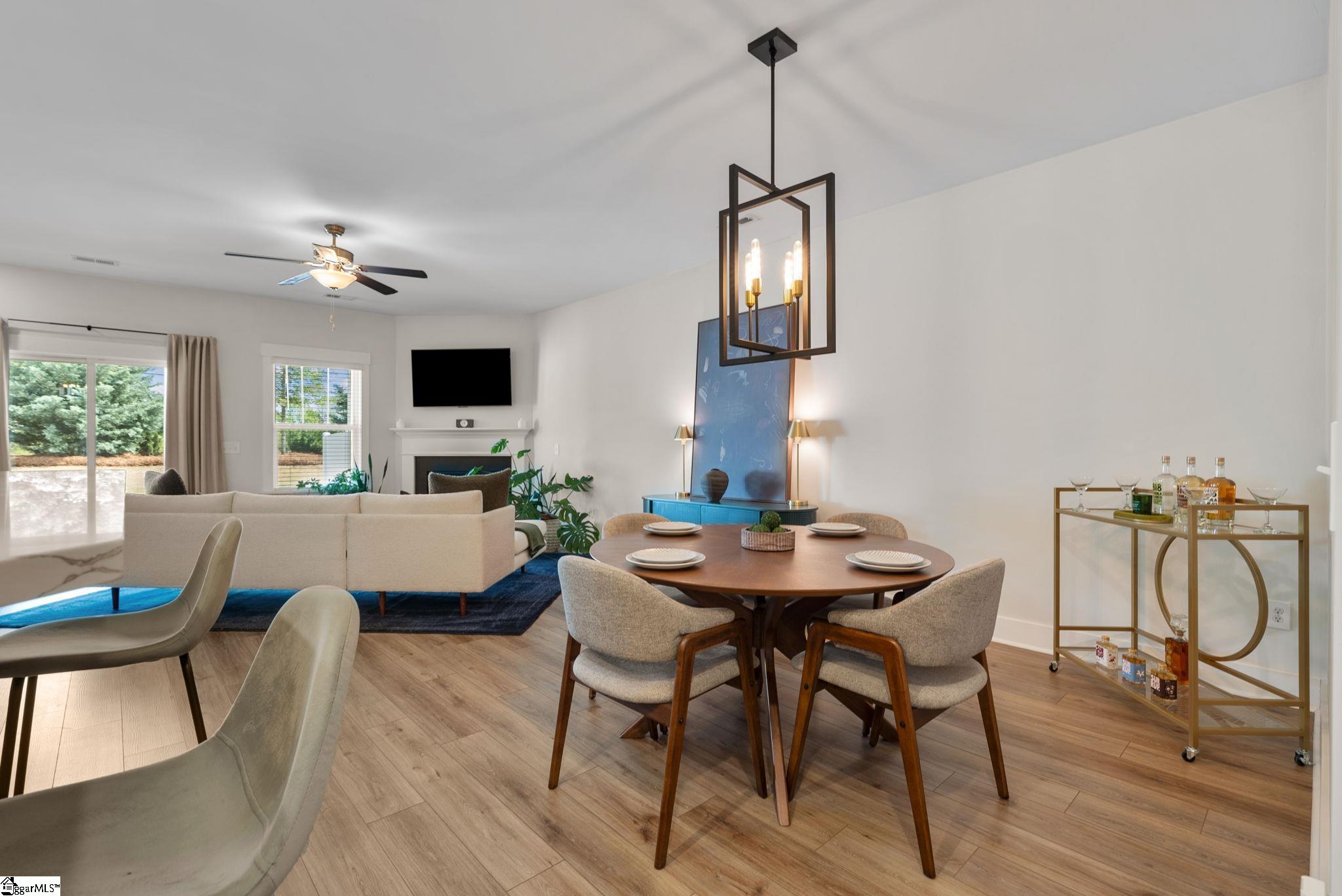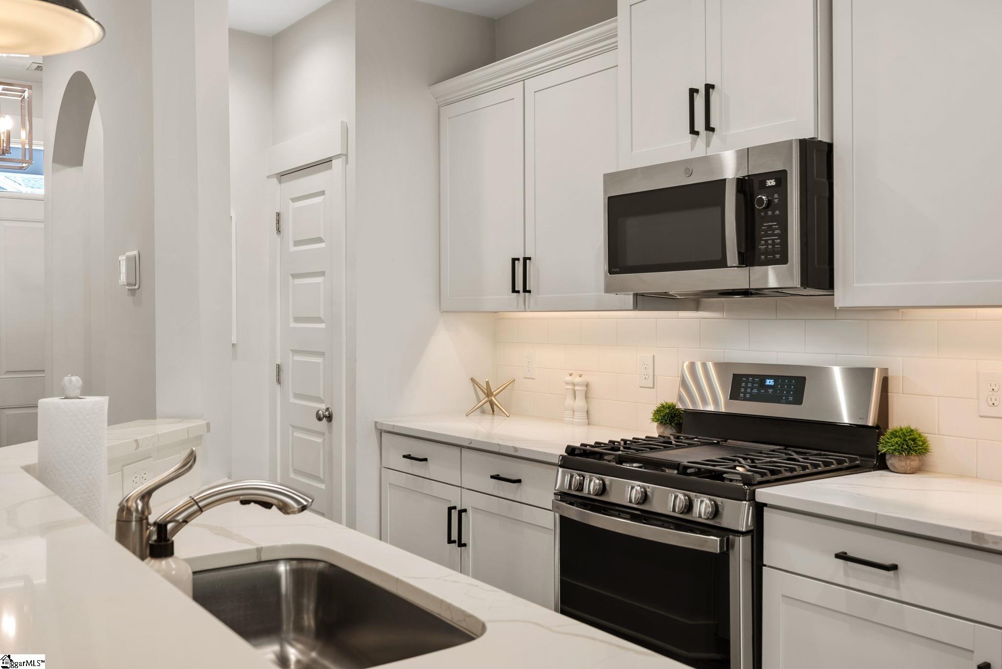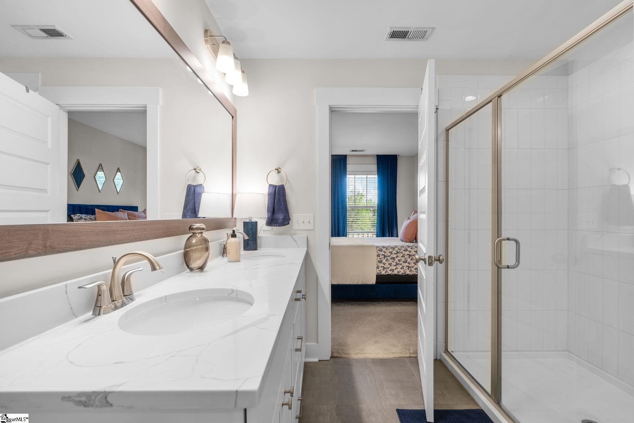 This immaculate town home combines elegance and low-maintenance living all into one. It is conveniently located within 5 minutes of Woodruff Road shops and restaurants as well as being minutes to all of the charm and lifestyle that downtown Greenville has to offer. This home features hardwood stairs, LVP flooring on main level and hallway on second level, upgraded craftsman style trim and designer lighting. Quartz kitchen countertops, under-cabinet lighting, stainless steel appliances and gas stove/oven complete this well-appointed kitchen. From the living room, walk out onto your covered 17 ft x 6 ft covered patio perfect for outdoor entertaining and with a 4 ft x 5 ft storage shed to the side. Retreat to the master suite and step out onto your 21 ft x 5 ft covered balcony which is perfect for relaxing or having morning coffee. The master bath has a large walk-in tile shower and tile flooring which leads to the spacious walk-in closet. Come see this beautifully staged well appointed home today and make it yours before it is gone!