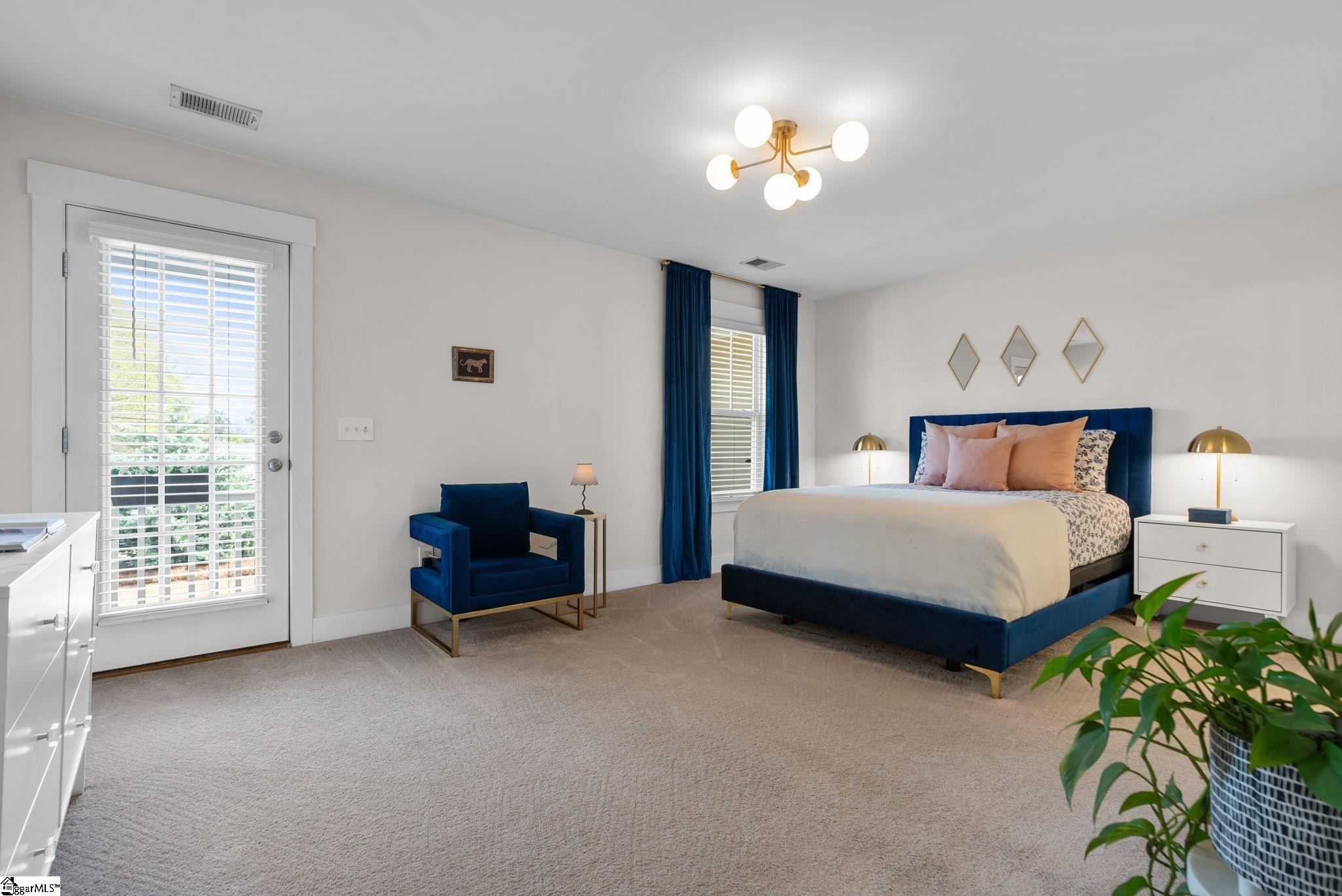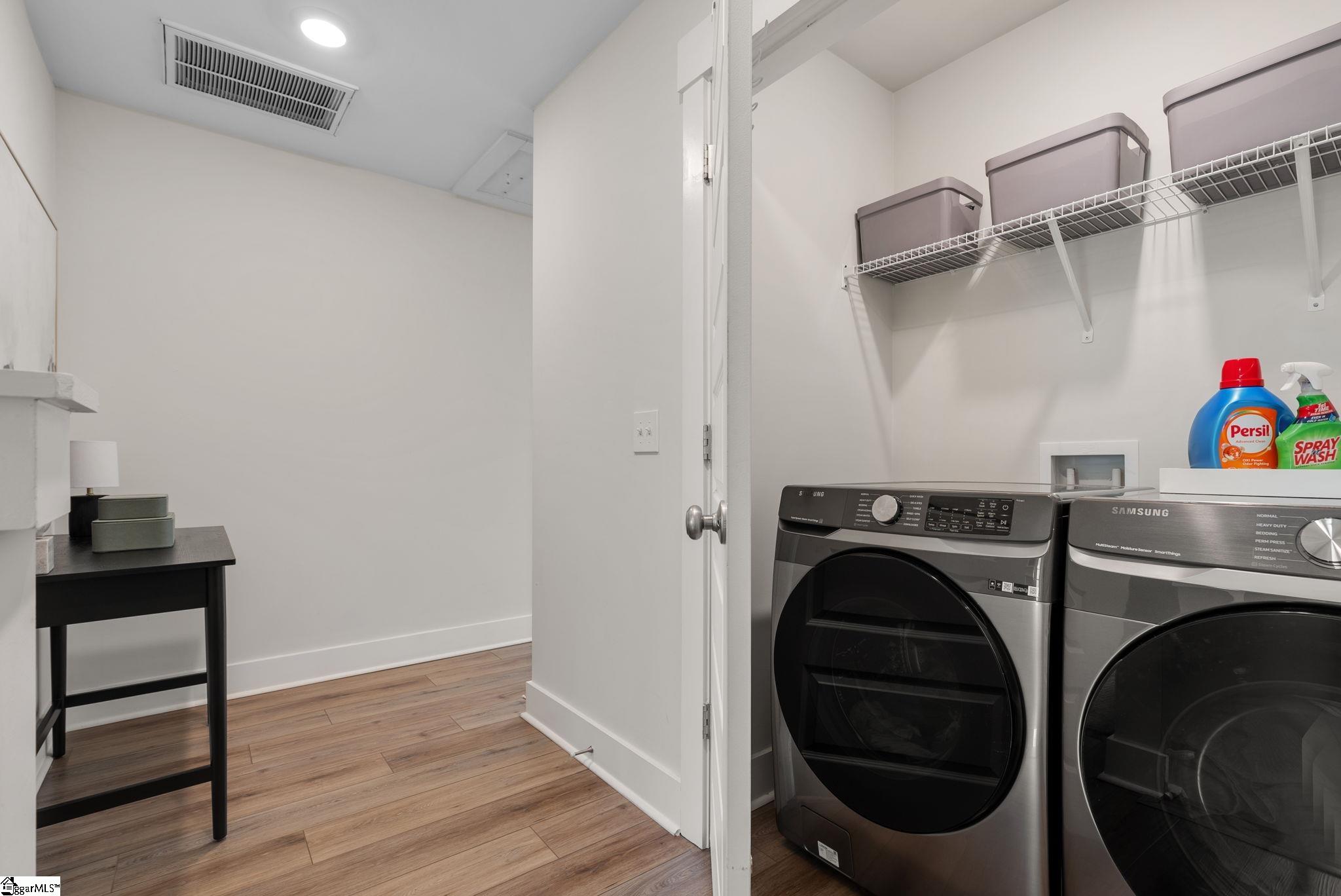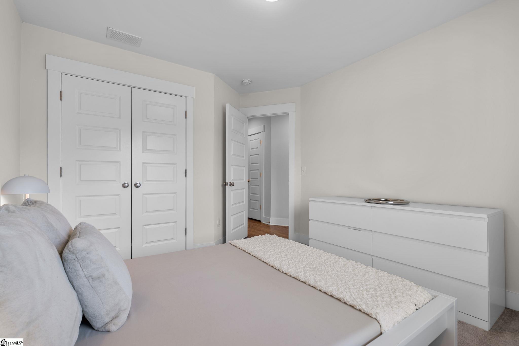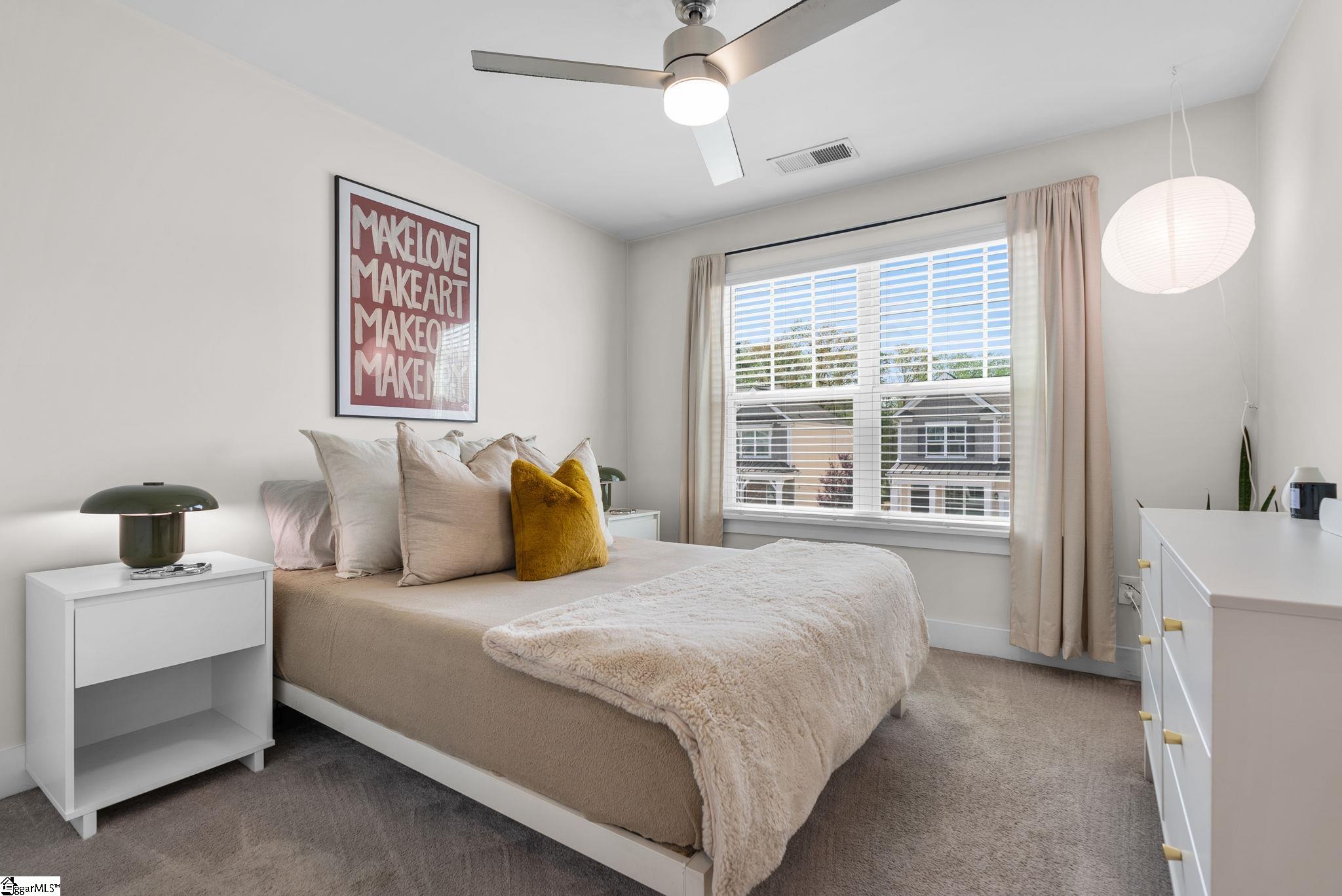 This immaculate town home combines elegance and low-maintenance living all into one. It is conveniently located within 5 minutes of Woodruff Road shops and restaurants as well as being minutes to all of the charm and lifestyle that downtown Greenville has to offer. This home features hardwood stairs, LVP flooring on main level and hallway on second level, upgraded craftsman style trim and designer lighting. Quartz kitchen countertops, under-cabinet lighting, stainless steel appliances and gas stove/oven complete this well-appointed kitchen. From the living room, walk out onto your covered 17 ft x 6 ft covered patio perfect for outdoor entertaining and with a 4 ft x 5 ft storage shed to the side. Retreat to the master suite and step out onto your 21 ft x 5 ft covered balcony which is perfect for relaxing or having morning coffee. The master bath has a large walk-in tile shower and tile flooring which leads to the spacious walk-in closet. Come see this beautifully staged well appointed home today and make it yours before it is gone!