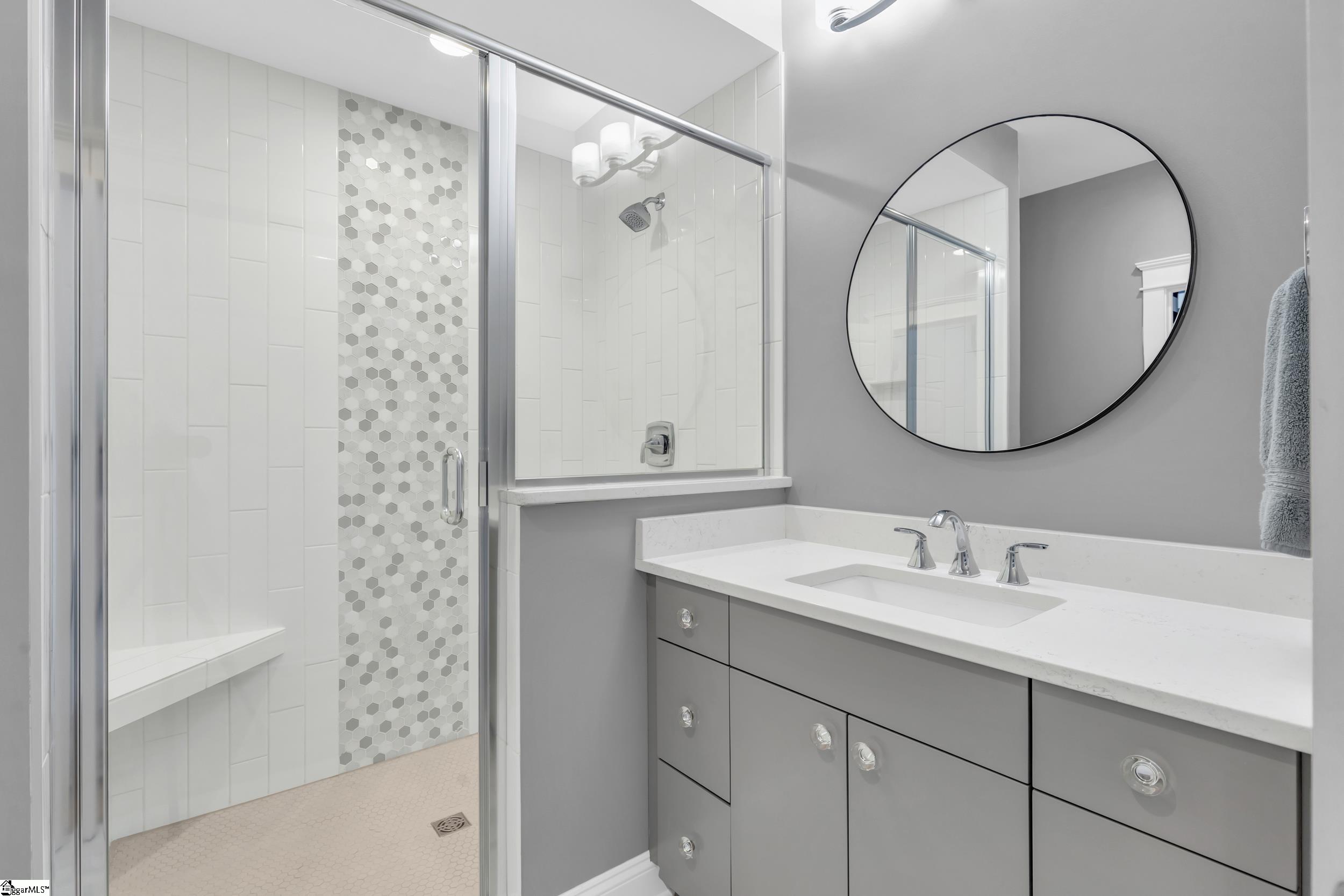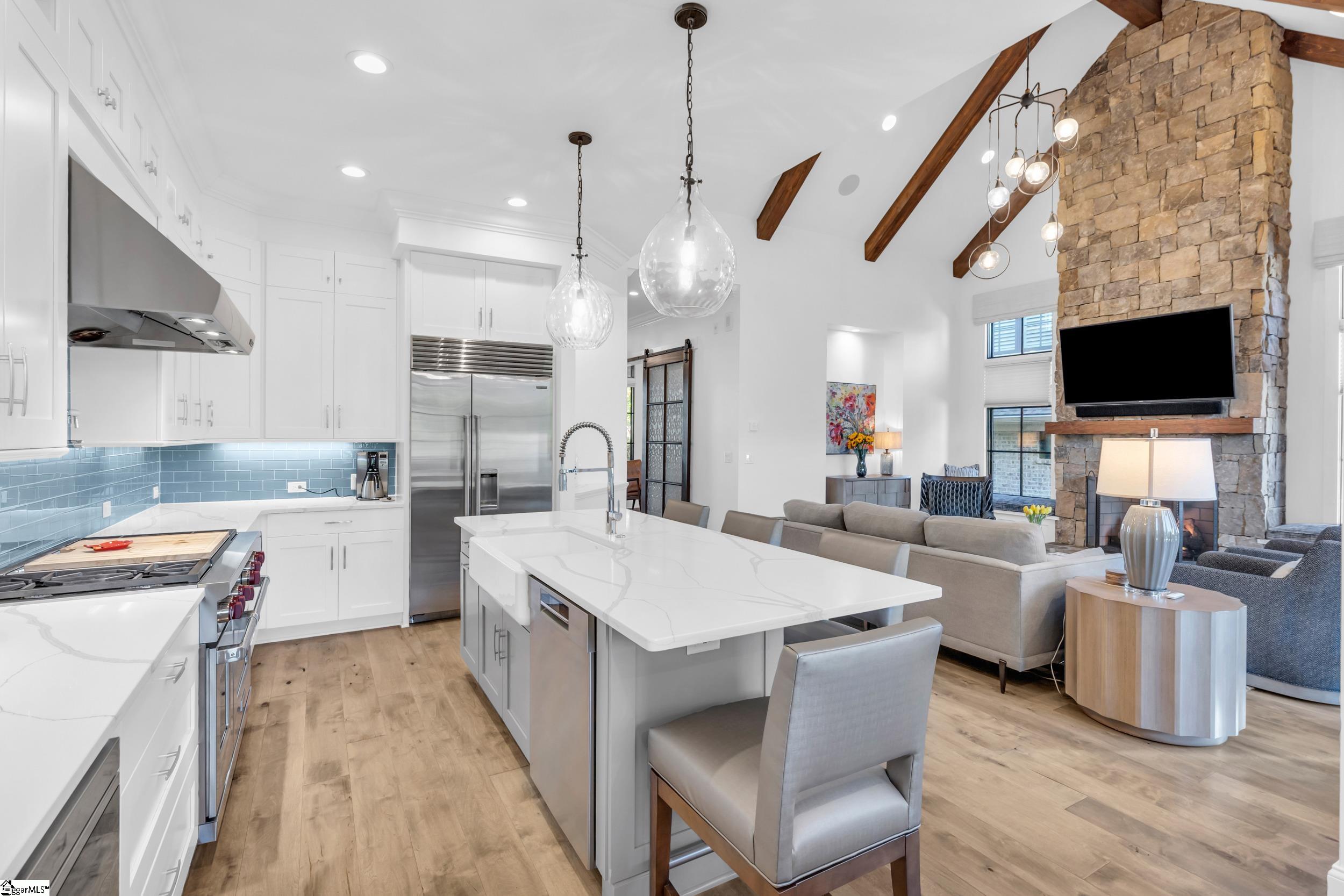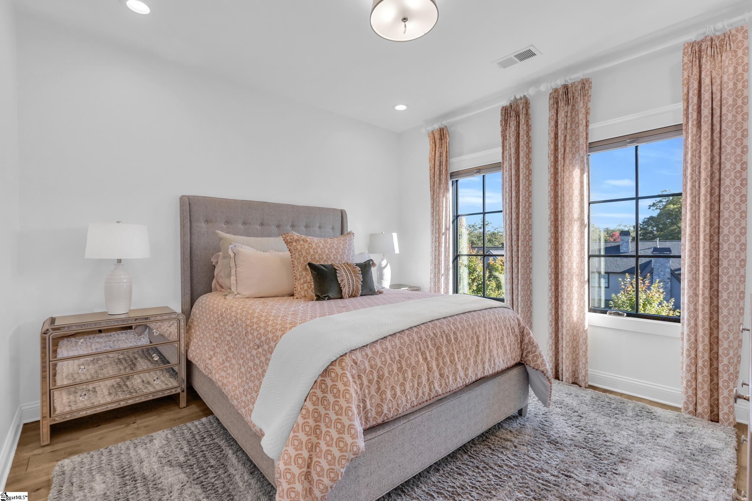 Welcome to 23 Gardenview Avenue, a refined luxury residence in the heart of Woodland Park, Greenville’s most coveted enclave within Alta Vista—where newer custom homes blend seamlessly into one of the city’s most prestigious, established neighborhoods. Every inch of this home is thoughtfully curated for elegance, comfort, and effortless indoor-outdoor living. Soaring 10-foot ceilings and 8-foot solid core doors create an airy, grand feel, complemented by designer finishes and meticulous architectural detail throughout. The gourmet kitchen is a chef’s dream, boasting an oversized walk-in pantry, large central island, custom cabinetry, and a premium luxury appliance suite including (including built-in Sub-Zero refrigeration, professional-grade Wolf gas range, Wolf microwave drawer and high-end Bosch dishwasher). Perfect for entertaining or everyday living, the space flows seamlessly into the spacious great room with a gas fireplace and stunning floor-to-ceiling windows. Retractable doors blur the line between indoors and out, opening to an expansive screened porch featuring a remote-controlled screening system and second fireplace—an ideal setting for year-round enjoyment. Tucked privately behind the home, discover the rear alley access for secure and convenient parking, plus a beautifully landscaped yard designed for low maintenance luxury living. The primary suite is a serene retreat offering a spa-like bath with a deep soaking tub, designer tile, dual vanities, generous closet space, and high-end fixtures throughout. Each secondary bedroom offers walk-in closets and stunning natural light, while additional living spaces provide flexibility for an office, fitness room, or media space. Step outside and enjoy one of Greenville’s most premier walkable lifestyle locations. Woodland Park sits directly across from the Swamp Rabbit Trail and 122-acre Cleveland Park—offering miles of biking/walking paths, playgrounds, and tranquil green space. Minutes away are the Greenville Zoo (4 mins), Brooks Playground, Caine Halter YMCA (2 blocks), the new pickleball and tennis complex, award-winning Peace Center for Performing Arts (3 mins), Falls Park and Liberty Bridge (3 mins), leading medical facilities including Prisma Hospital (8 mins) and St. Francis (7 mins), and convenient access to I-85 (8 mins). Experience luxury living with unmatched walkability, modern comfort, and timeless design—right in the heart of Greenville’s most sought-after neighborhood. Welcome home to 23 Gardenview Avenue!