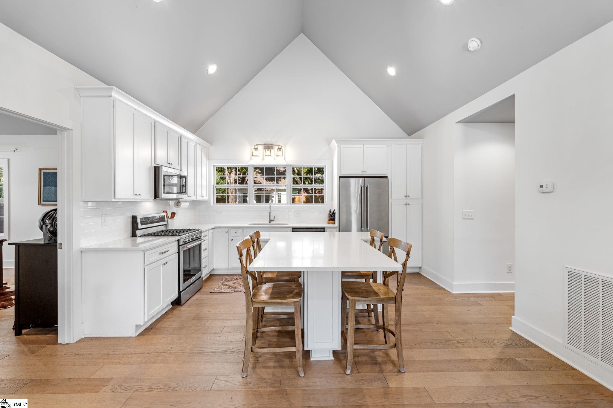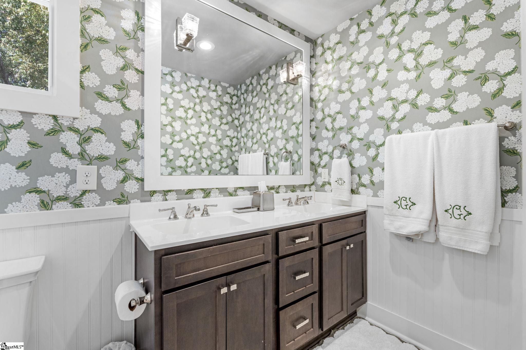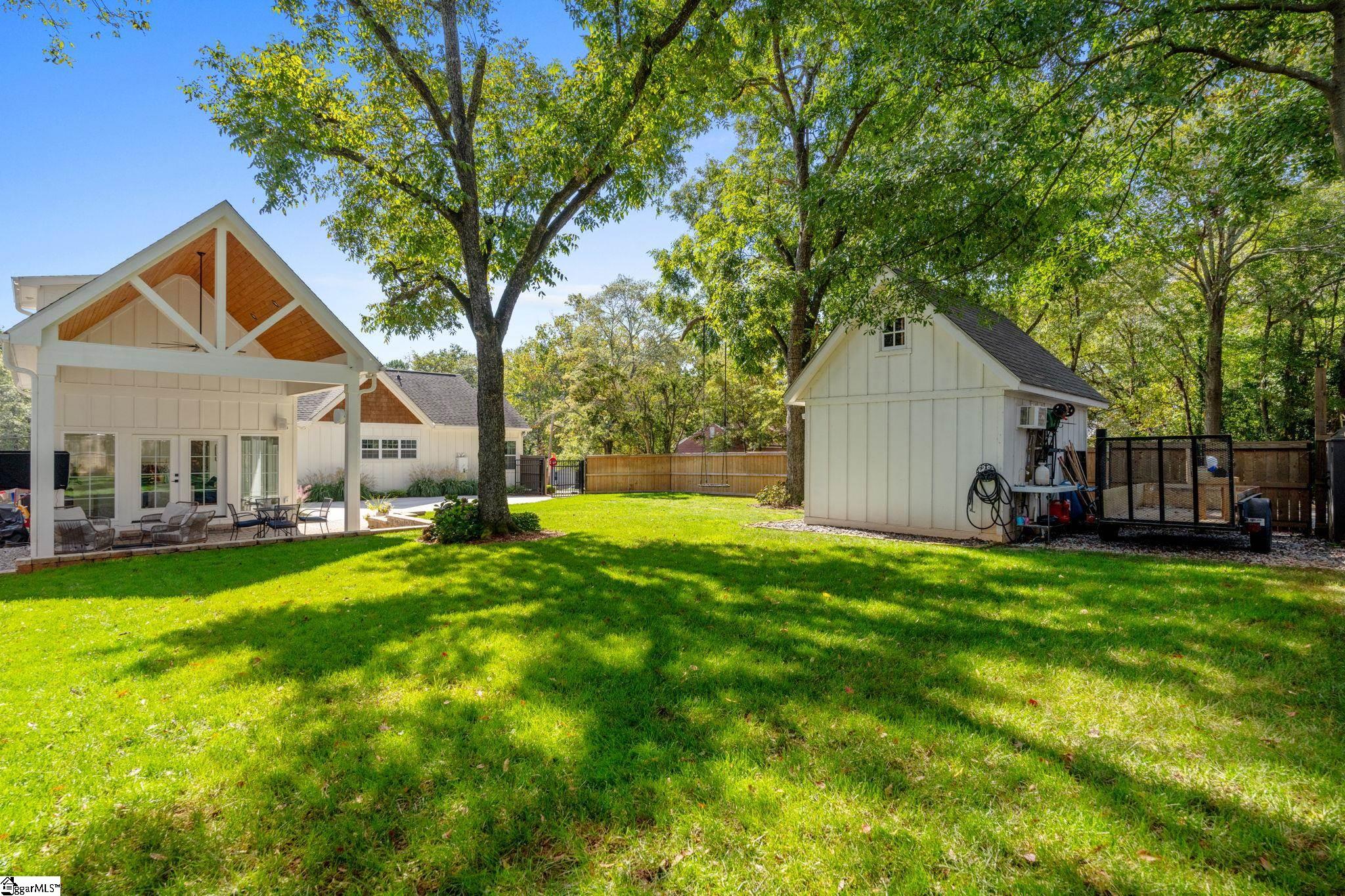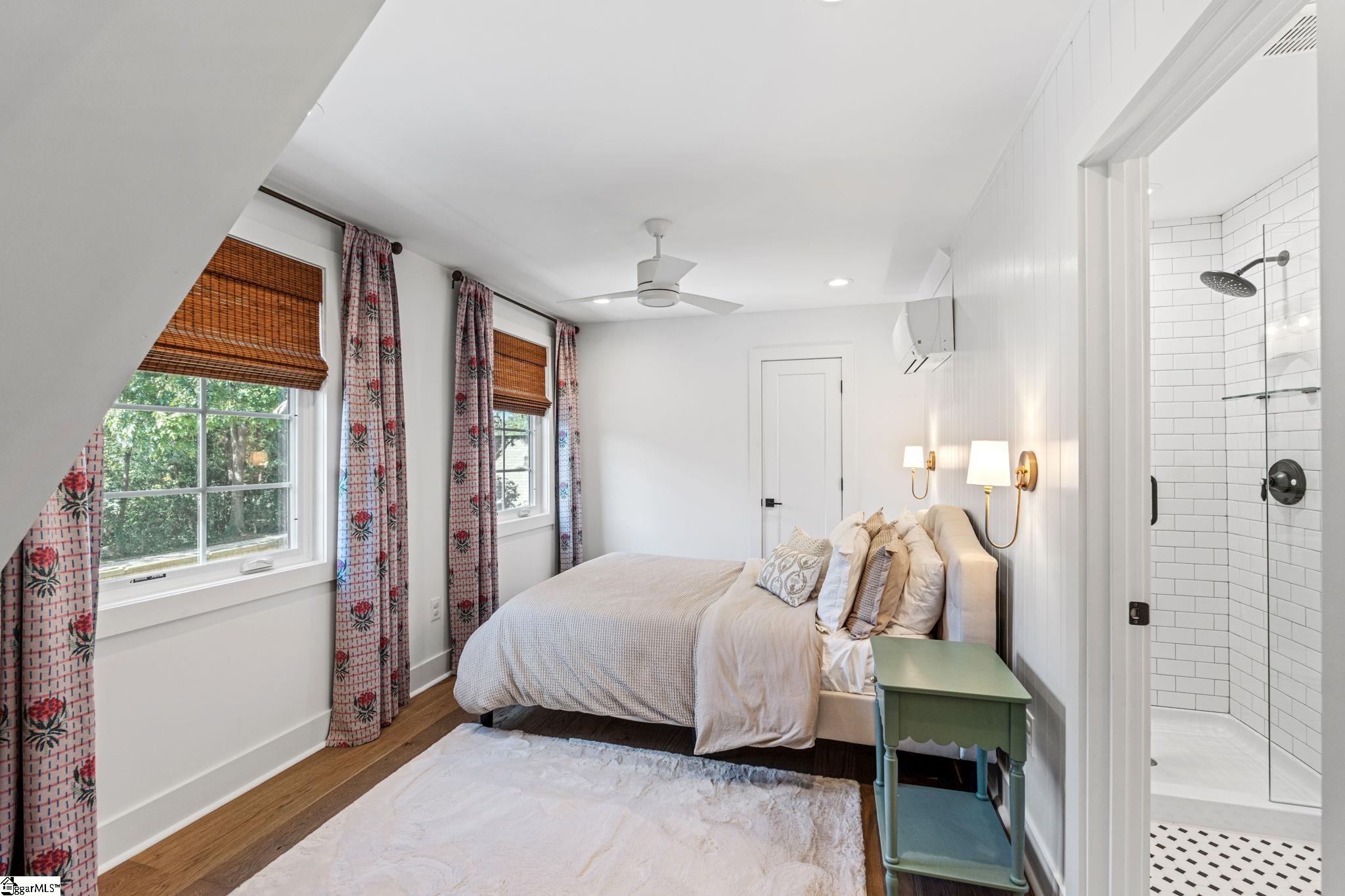 230 Potomac Avenue is perfectly positioned in the Augusta Road area and blends classic charm with modern, renovated and expanded finishes. This 1.5-story home welcomes you with a beautiful covered front porch featuring gas lanterns and plenty of room for rocking chairs and hours of enjoyment. Inside, a light-filled, vaulted living room open to the gorgeous, renovated kitchen greet you! Featuring quartz countertops and large central island, this kitchen has stainless steel appliances including a gas range. There is an abundance of storage with plenty of cabinetry in the kitchen. The main level also includes a spacious primary suite with vaulted ceiling and spa like primary bathroom complete with dual sink vanity and large tiled shower with frameless glass shower door. There are two additional bedrooms on the main level that share a full bathroom. Upstairs, a private guest suite with a full bathroom provides additional living space ideal for guests or family. Additionally, you will love this laundry and drop zone area – with designer finishes and plenty of room for storage and organization and complete with a sink – spending time in the laundry will never feel like a chore! Fabulous great room with beautiful wooden beams surrounded by many windows and doors provide wonderful entertaining and living space. The great room opens onto the amazing covered back porch and patio as well as the rear yard. This fully fenced, corner lot with electric driveway gate is one not to be missed. Meticulously maintained, level and fenced – this yard is a dream! Complete with a workshop that has water and power – you will have plenty of space for entertaining, woodworking or other hobbies or ample storage. With its combination of charm, functionality, and an exceptional location, 230 Potomac Avenue is a rare opportunity in one of Greenville’s most desirable areas. Convenient to I-85, Augusta Road shopping and dining, major hospital systems and downtown Greenville – don’t miss your chance on this one!