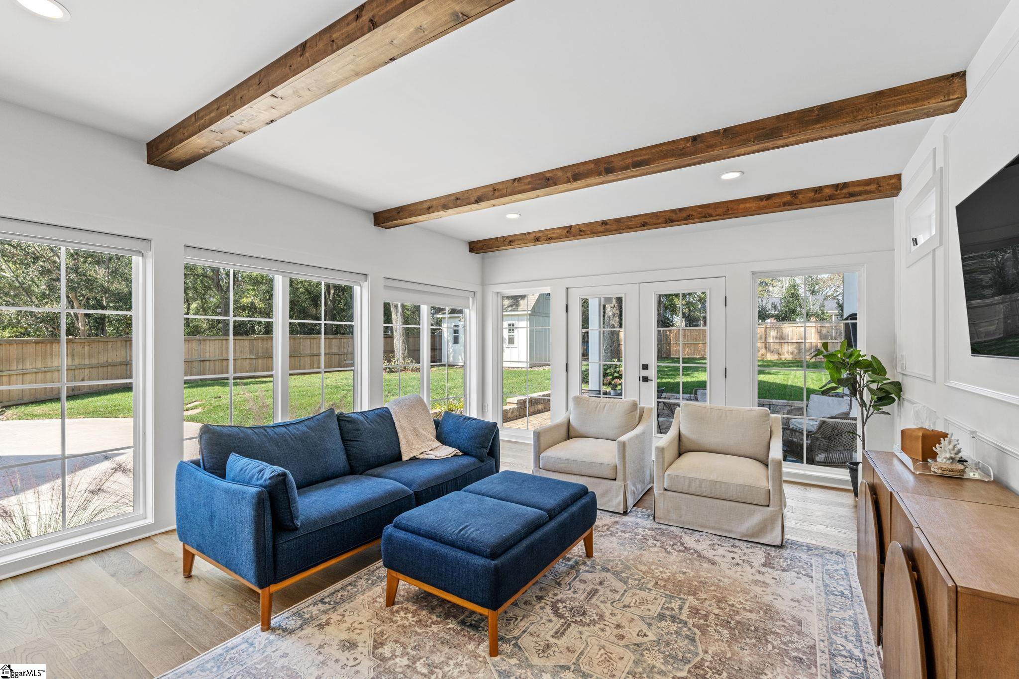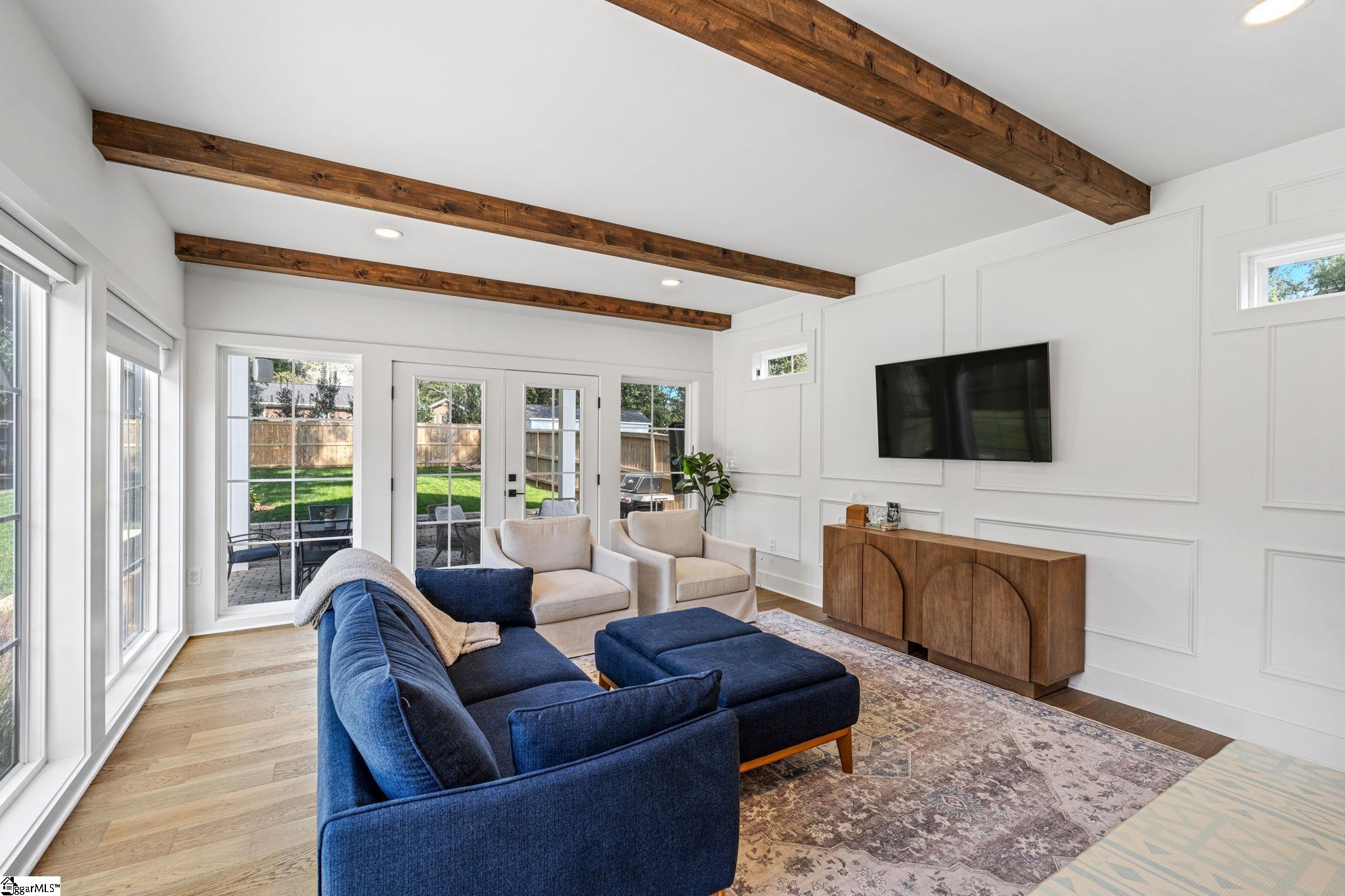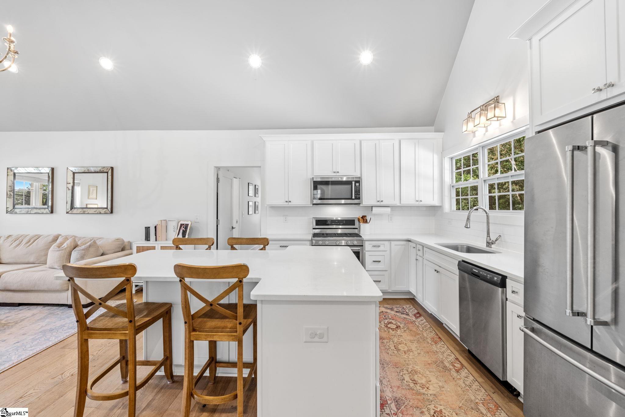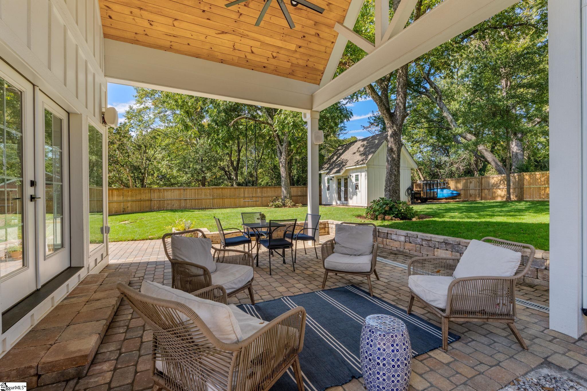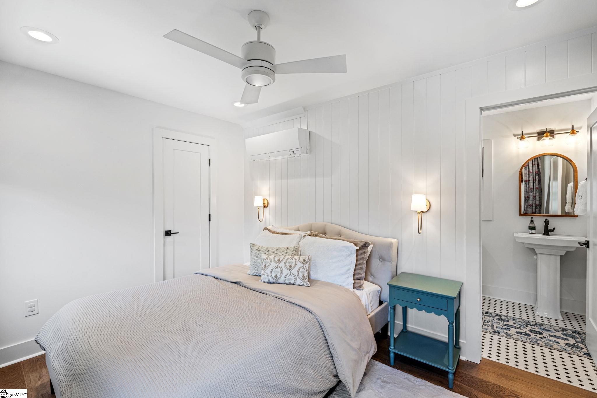 230 Potomac Avenue is perfectly positioned in the Augusta Road area and blends classic charm with modern, renovated and expanded finishes. This 1.5-story home welcomes you with a beautiful covered front porch featuring gas lanterns and plenty of room for rocking chairs and hours of enjoyment. Inside, a light-filled, vaulted living room open to the gorgeous, renovated kitchen greet you! Featuring quartz countertops and large central island, this kitchen has stainless steel appliances including a gas range. There is an abundance of storage with plenty of cabinetry in the kitchen. The main level also includes a spacious primary suite with vaulted ceiling and spa like primary bathroom complete with dual sink vanity and large tiled shower with frameless glass shower door. There are two additional bedrooms on the main level that share a full bathroom. Upstairs, a private guest suite with a full bathroom provides additional living space ideal for guests or family. Additionally, you will love this laundry and drop zone area – with designer finishes and plenty of room for storage and organization and complete with a sink – spending time in the laundry will never feel like a chore! Fabulous great room with beautiful wooden beams surrounded by many windows and doors provide wonderful entertaining and living space. The great room opens onto the amazing covered back porch and patio as well as the rear yard. This fully fenced, corner lot with electric driveway gate is one not to be missed. Meticulously maintained, level and fenced – this yard is a dream! Complete with a workshop that has water and power – you will have plenty of space for entertaining, woodworking or other hobbies or ample storage. With its combination of charm, functionality, and an exceptional location, 230 Potomac Avenue is a rare opportunity in one of Greenville’s most desirable areas. Convenient to I-85, Augusta Road shopping and dining, major hospital systems and downtown Greenville – don’t miss your chance on this one!
