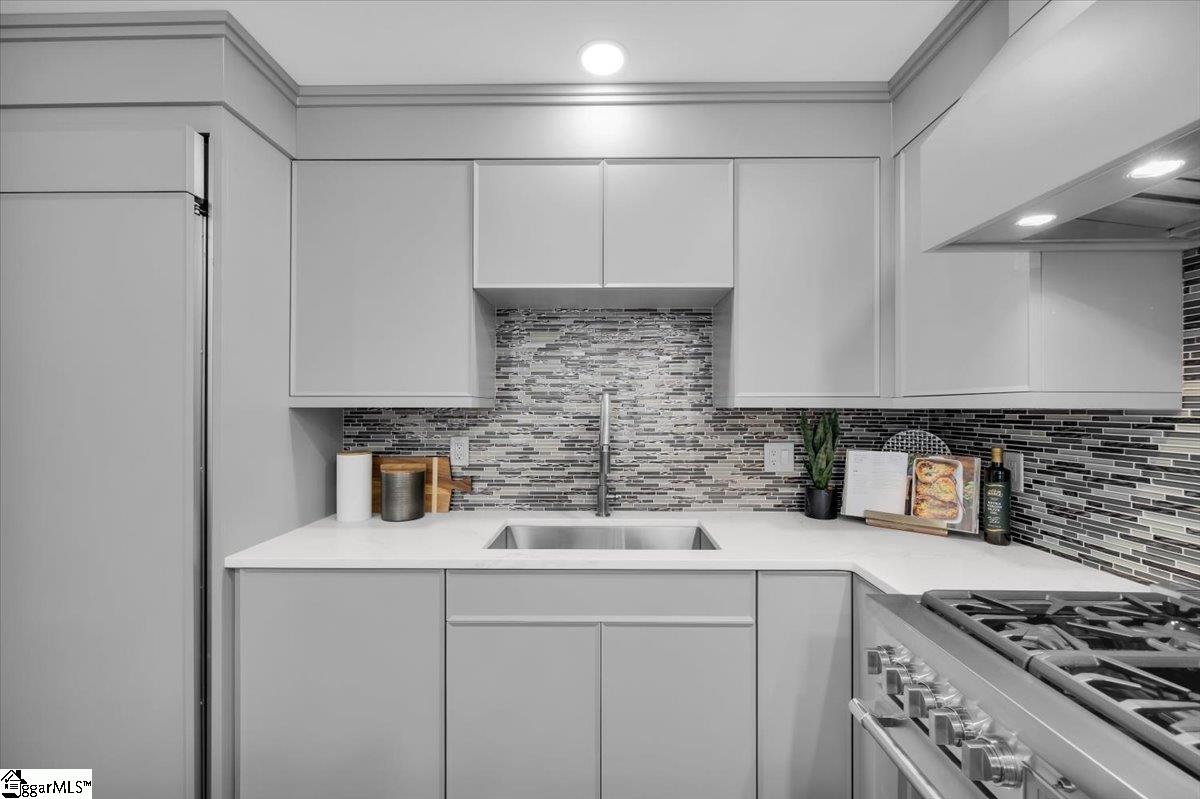 Indulge in the finest of urban living with this completely gutted and masterfully renovated townhome in the heart of Greenville’s Heritage Historic District. No detail was overlooked and no surface left untouched—everything is new, from the plumbing and electrical to the spray-foam insulation that enhances comfort and efficiency throughout. Step inside to an impressive open floor plan filled with natural light and elevated by designer finishes. The chef’s kitchen showcases custom cabinetry, sleek stone surfaces, and a full suite of Thermador appliances. The dining area is anchored by gorgeous built-ins featuring a wine fridge, sink, and ice maker—an entertainer’s dream. An expanded, beautifully appointed powder room adds convenience on the main level. Upstairs, the spacious primary suite offers a stunning custom accent wall, built-ins and an all-new spa-quality bathroom complete with a floor-to-ceiling tiled shower and frameless glass door, heated flooring and beautiful LED mirror. The secondary bedroom is equally impressive, featuring custom cabinetry, a charming bay window overlooking E. Park Avenue, and its own luxurious en-suite that is fully tiled, ceiling to floor and features heated flooring and a Jacuzzi tub-and-shower experience. Outdoor living is just as exceptional. The completely redesigned two-level patio provides multiple spaces to relax, grill, or entertain. Perfectly positioned at the corner of Bennett Street and E. Park Avenue, Park Row sits directly across from McPherson Park—enjoy tennis, playgrounds, walking paths, and greenspace just steps from your door. Take a 10-minute walk to the Bon Secours Wellness Arena, or head just two blocks to Main Street. You’re also moments from West Stone retail, Canvas Coffee, the Swamp Rabbit Trail, Unity Park, and Falls Park. This townhome is truly one of a kind—an exquisitely renovated property offering luxury, functionality, and an unbeatable downtown lifestyle. Schedule your private tour today and experience this extraordinary home firsthand.