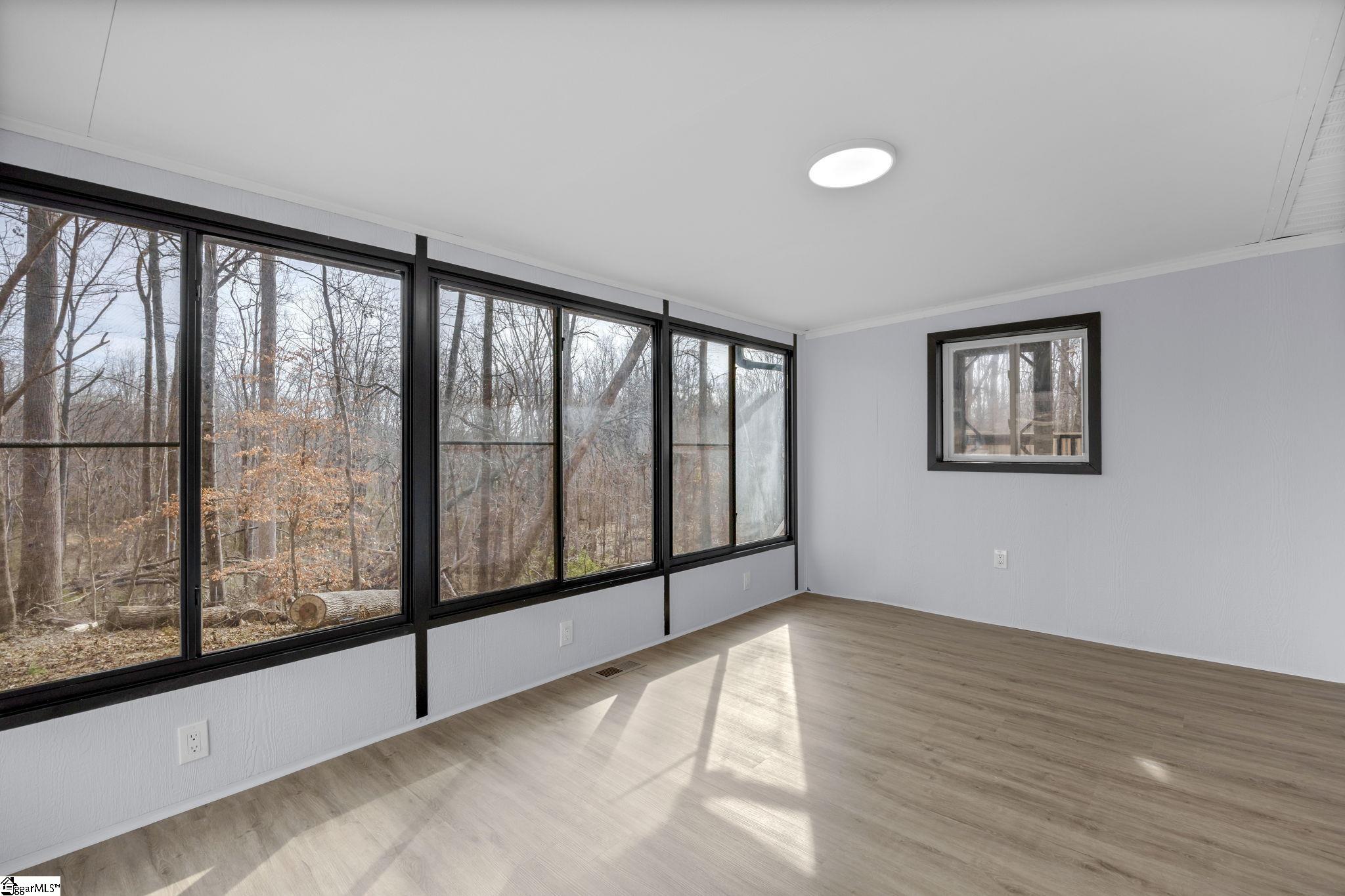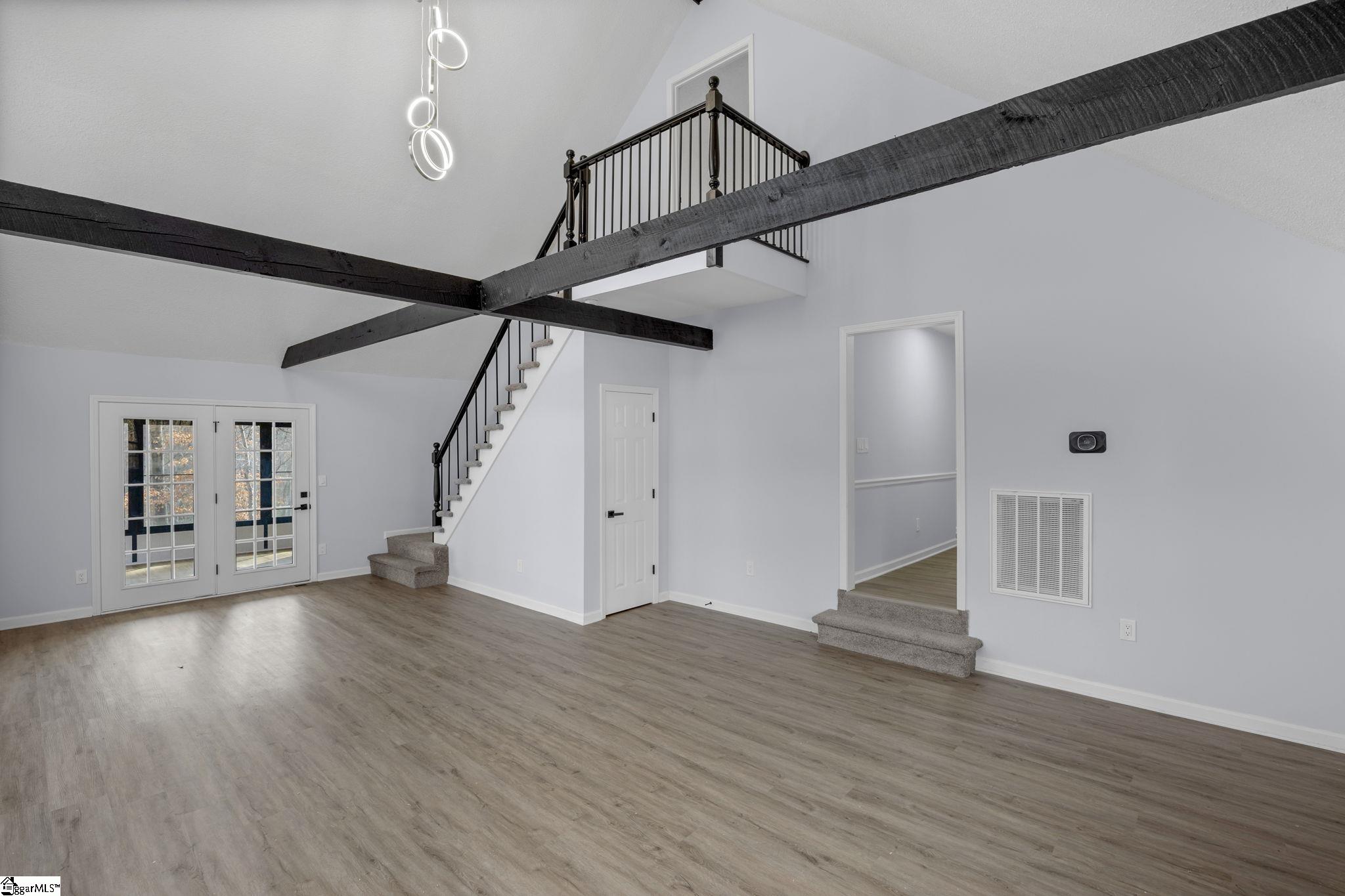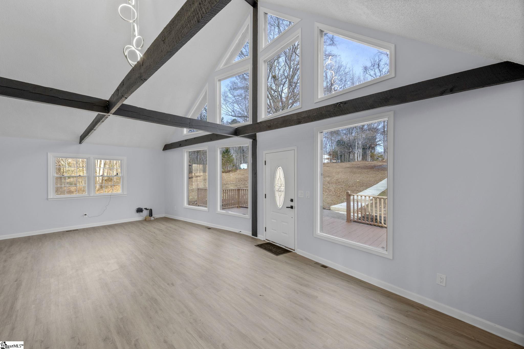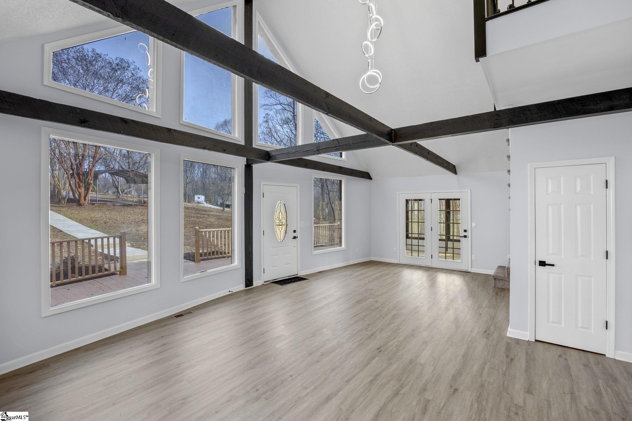Fountain Inn, SC – Renovated 3BR/2BA on 3 Acres. Surrounded by mature trees, this beautifully updated home offers a private setting and 1,000 sqft of deck space to enjoy the outdoors. Inside, you’re welcomed by soaring 20-foot ceilings and grand windows that create a bright, open main living area, flowing seamlessly into the sunroom and upstairs to the primary bedroom. Additional highlights include a large basement storage room and two storage sheds, providing ample space for tools, hobbies, or equipment. Recent upgrades include a newer roof, updated electrical, new moisture barrier, fresh interior and exterior paint, all new flooring, quartz countertops, and fully updated bathrooms. 242 Hawk Lane truly has it all. Call today and don’t miss your opportunity to call this home —it won’t last long!