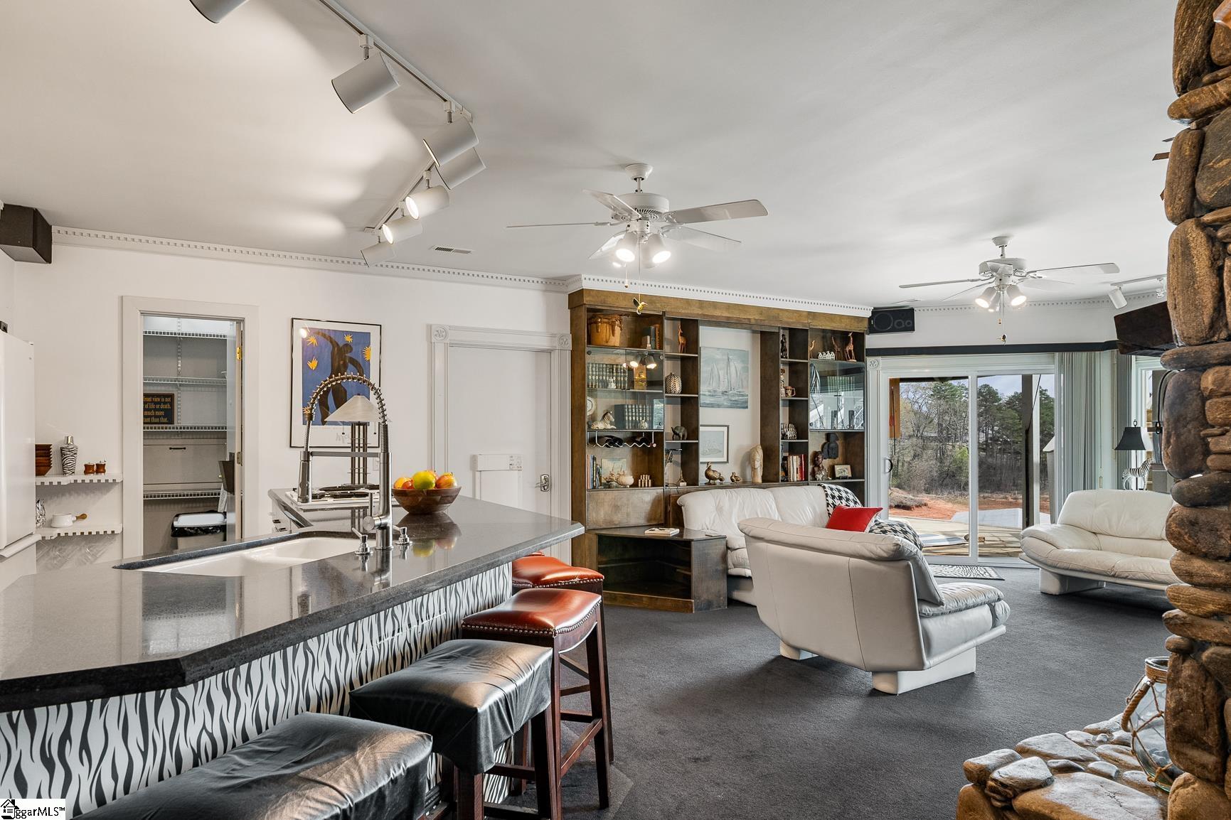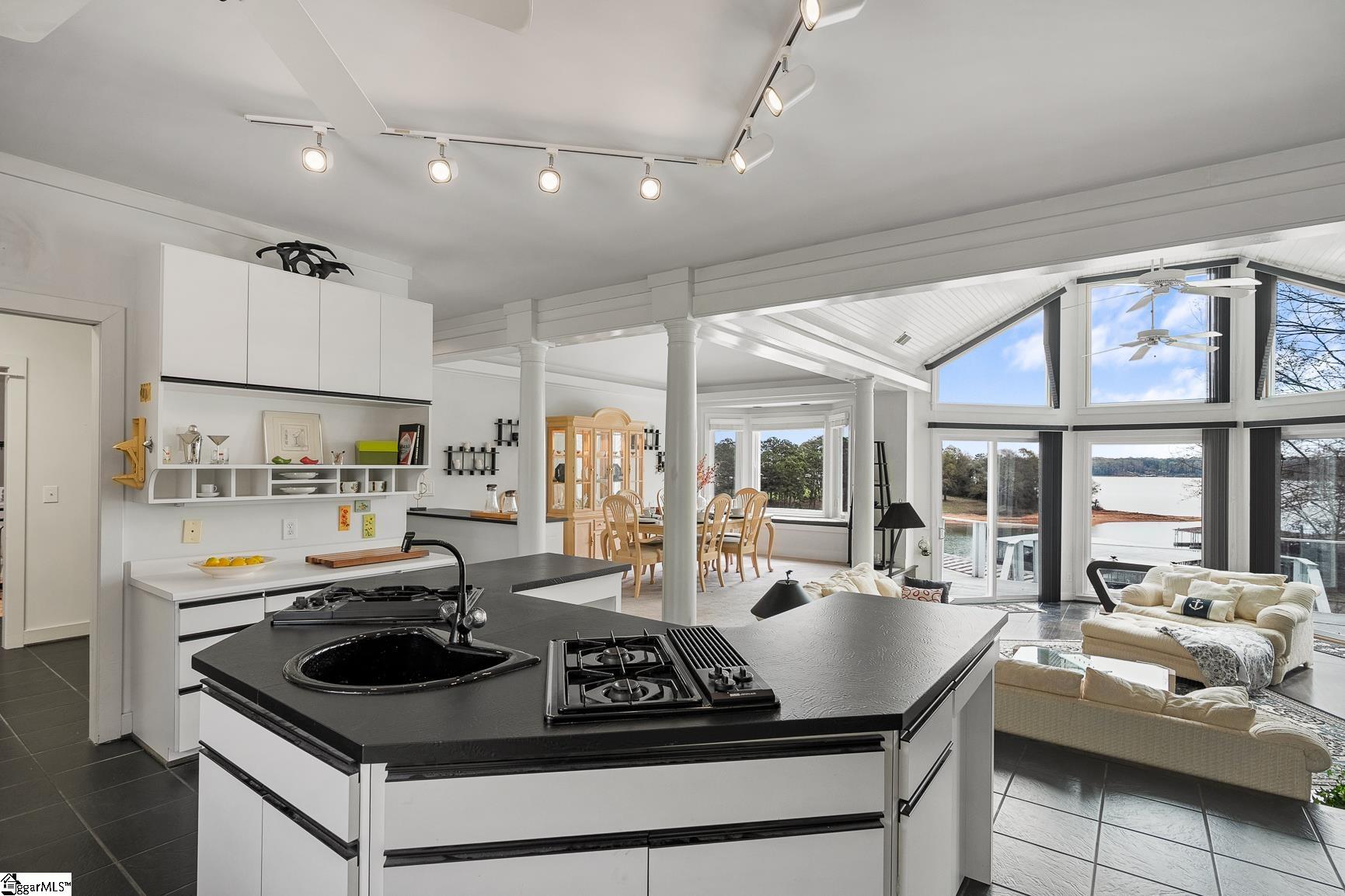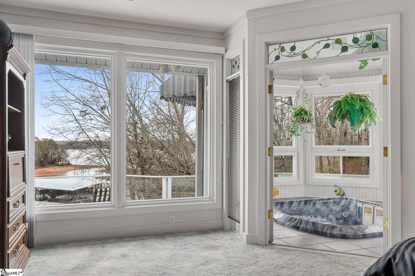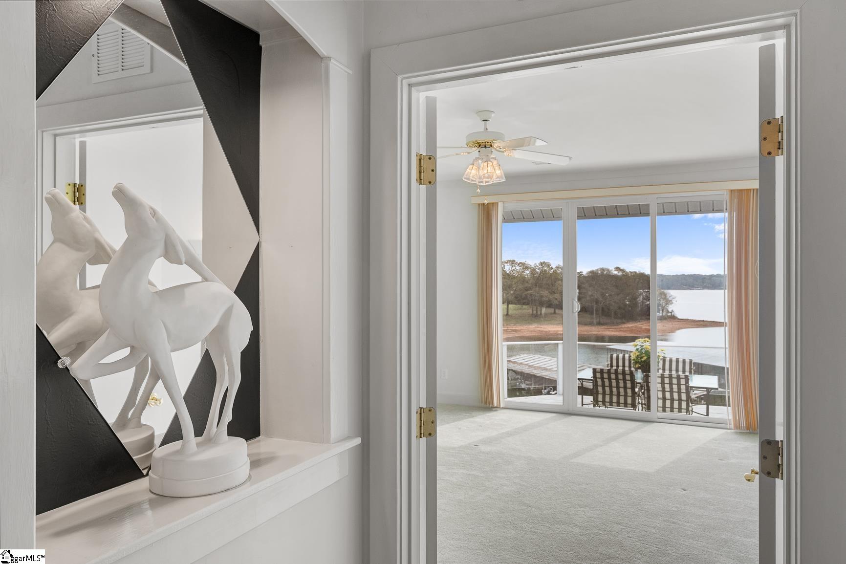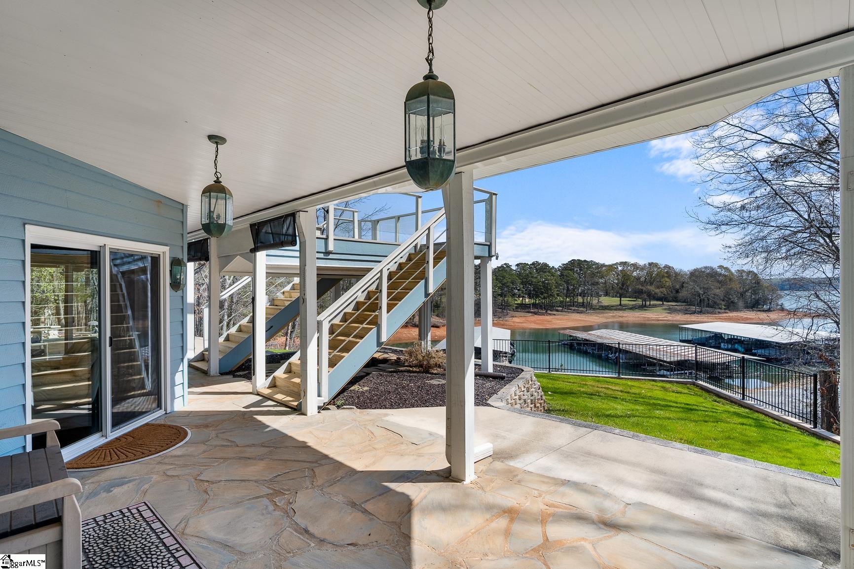 Location Location Location! Beautiful waterfront home situated on a double lot with over 200 feet overlooking slips 1-4 at Portman Marina on Lake Hartwell. Enjoy the convenience of being within walking distance to The Galley Restaurant and boat ramp. This exceptional 3 bedroom 3 1/4 bath home has an ideal layout with lake views from almost every room! At the time this home was built, no expense was spared to create a modern, sleek, contemporary, high-end oasis with room to relax and entertain in mind. The home features two levels of living space with a chair lift providing easy access between floors when needed. Both floors come with their own primary bedroom with ensuite, large walk-in closet, full kitchen, laundry and fireplaces with gas logs making it perfect for multi-generational families, guest or flexable use. This property features a spacious two car garage for your vehicles with an additional garage door, perfect for golf cart or boat storage. The workshop area comes with an abundance of storage and is sure to please! The garage is more than just functional; it’s designed for entertaining and convenience, currently setup with a rotisserie cooker, refrigerator and drink station with Nutone built in blender. Outdoor features are just as impressive and truly set this property apart: a concrete pad for RV/Boat parking, grand 10 ft tall front door with stain glass inserts on each side and motorized retractable awning, new concrete retaining wall with fence, new pair of deck stairs/post to upper deck, covered patio area with natural stone flooring and built in Dynamic Cooking System’s gas grill, outdoor shades and upper deck spanning the entire length of house with tempered glass for unobstructive lake views. Your pet(s) will enjoy having their own automatic doggy door access. Upon entering downstairs, The bar/kitchen set up may just be your favorite part of the house and most used by family and friends! The large walk in pantry with pass through to garage is a unexpected surprise. A striking fireplace made with river rock with anchor fire dogs and gas logs will grab your attention as will the floor to ceiling built in bookcase. You won’t be lacking in room or closet space in this generous size bedroom with ensuite. Once upstairs, you will step into elegance with a open concept layout, showcased by large windows to let in all the natural light! This levels HVAC features 3 zone climate control for enhanced comfort. Notice the sunken living room,16 foot ceiling with mirrored wall fireplace, gas logs, built in lighted cabintry to display treasured items and stereo system with bose speakers. Main level kitchen features a commercial refrigerator and name brand appliances to include JennAir. Split level placement of the 2 bedrooms and bathrooms offers privacy while the primary suite feels like a vacation get away with having its own hot tub and access to the upper deck. This home offers a contemporary feel with unique features throughout. Quality built home where the major conponents are in place with updates in the last year to include electrical and plumbing. Being able to obtain this location in such close proximity to Portman Marina is truly rare! Conveniently located near I-85 if communting to Greenville. Come experience life in The Shoals community of Lake Hartwell in Anderson!