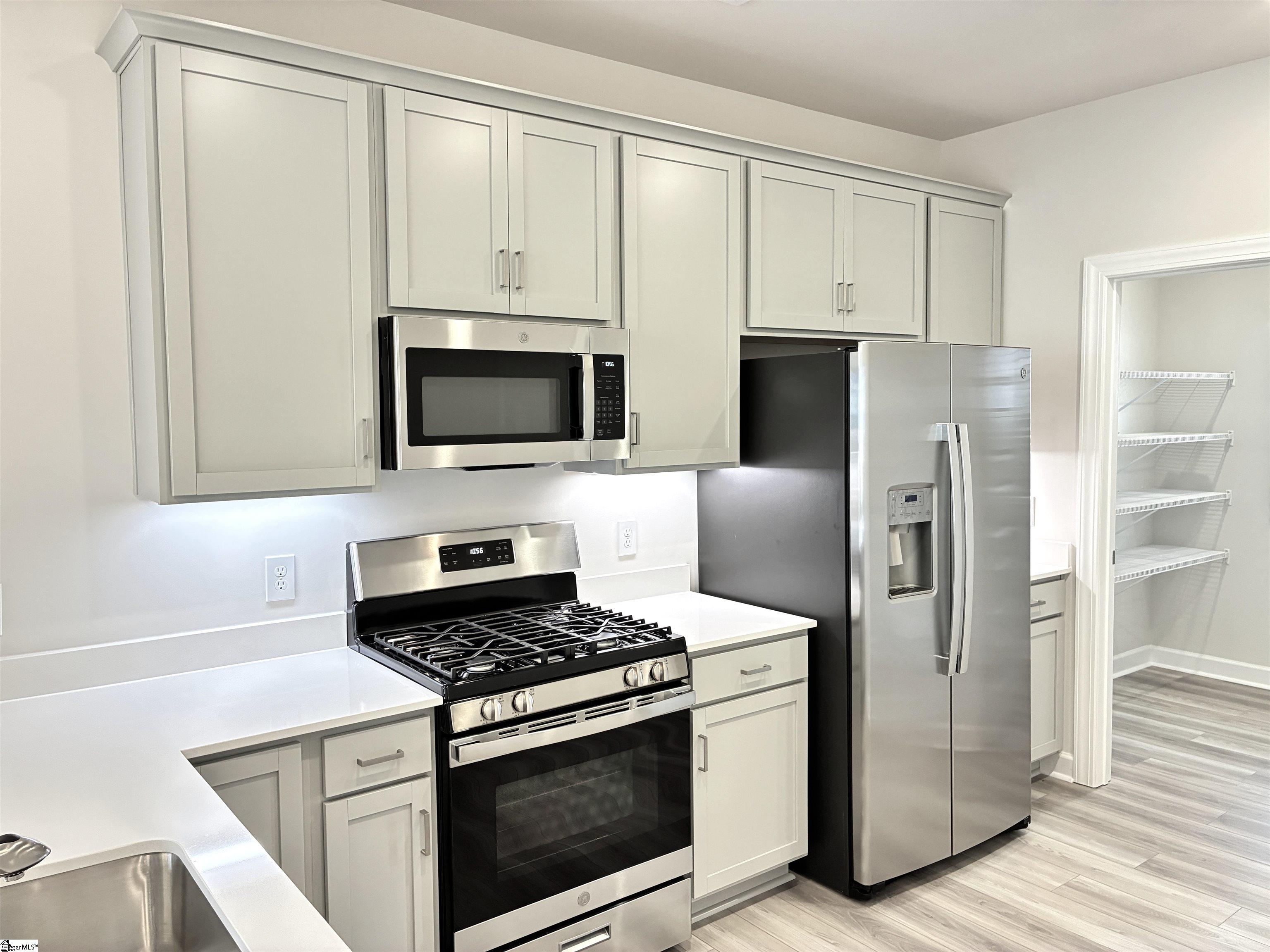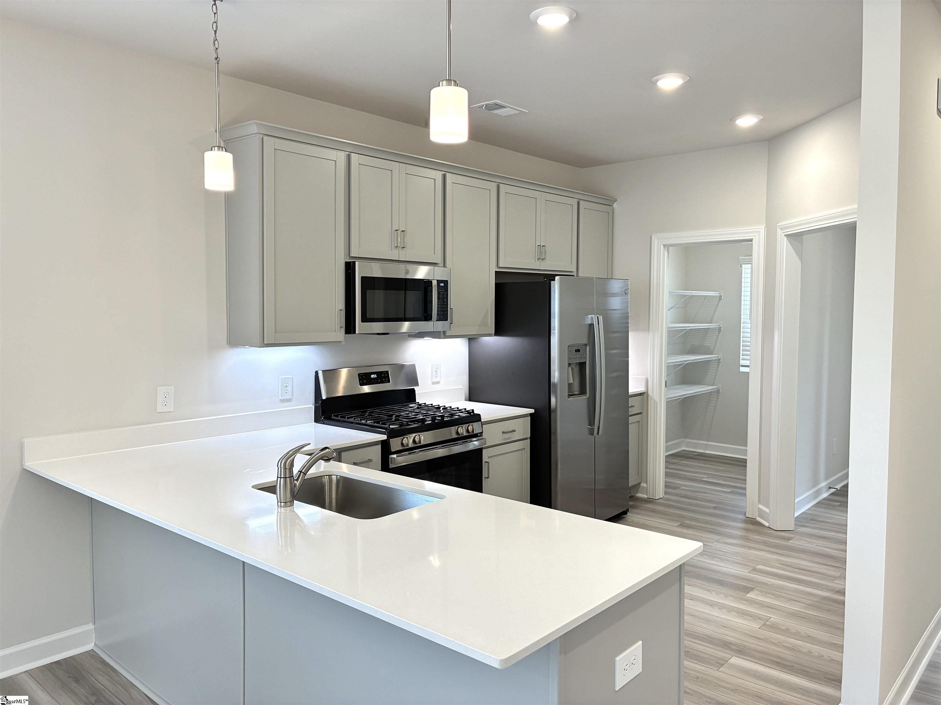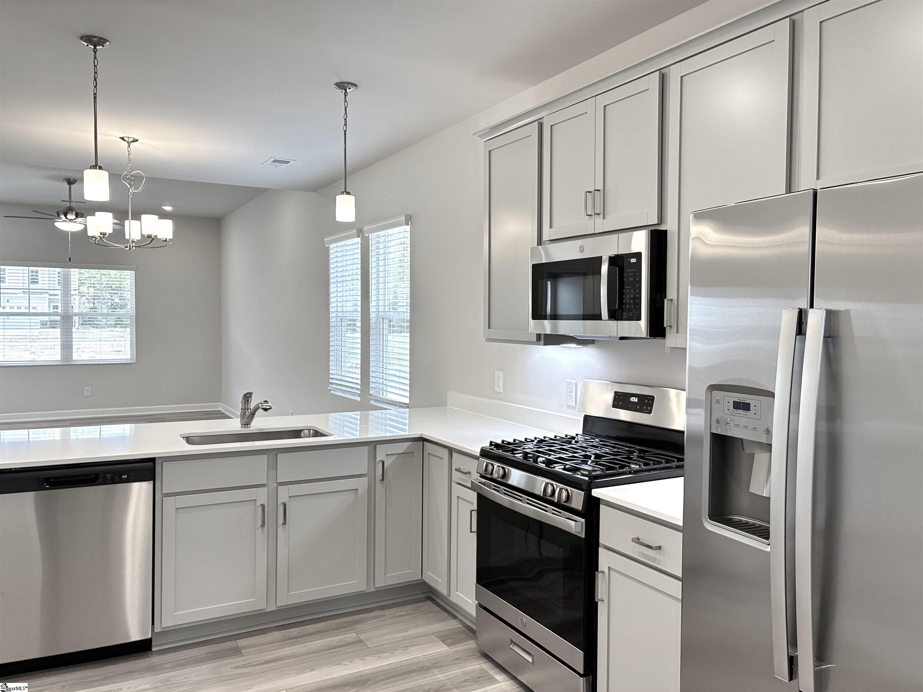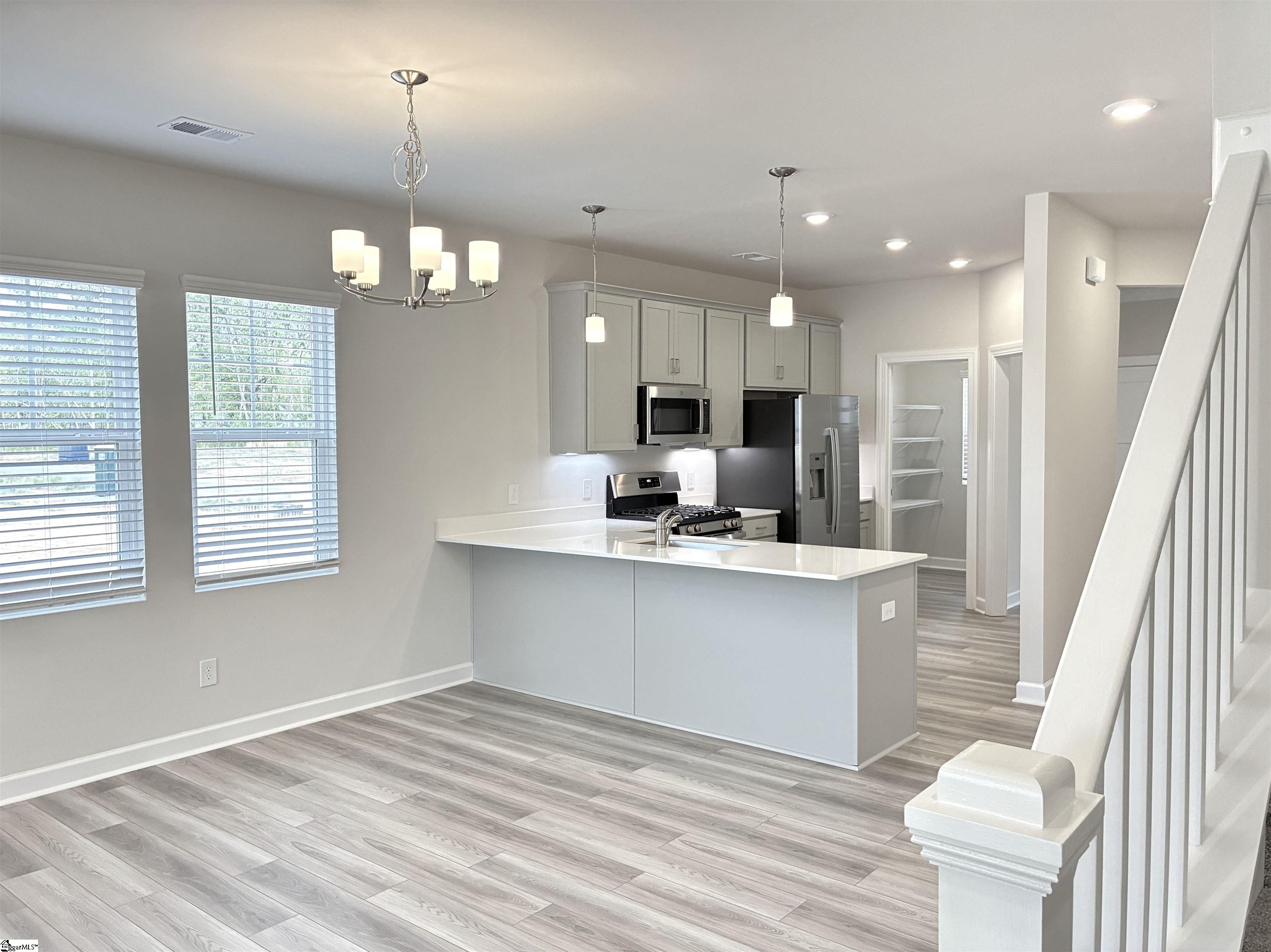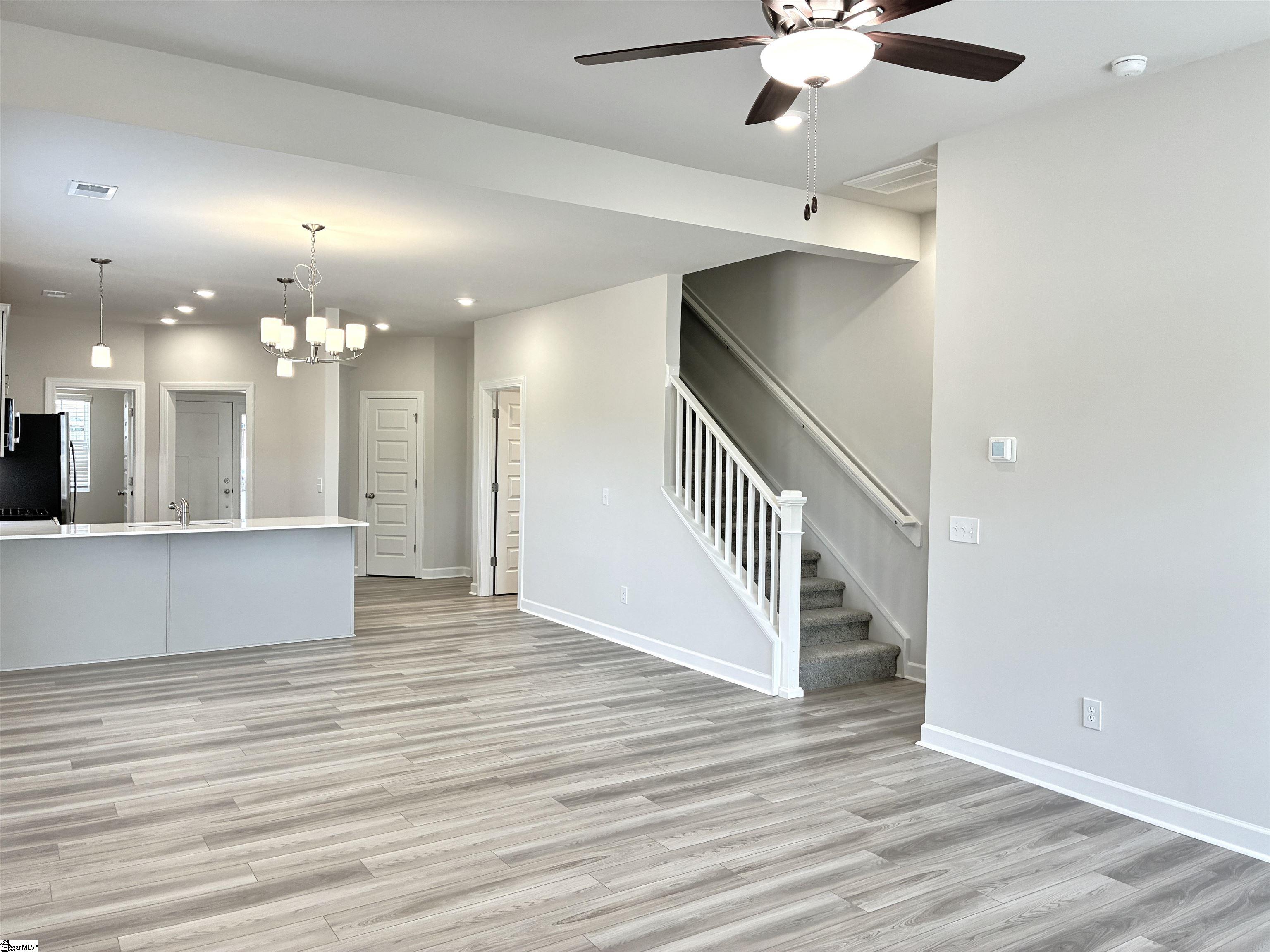Move-In-Rady…Welcome to your Hampton Gray style curated home. This spacious Princeton plan by Cothran Homes has everything you have been looking for with its first-floor vaulted ceiling owner’s bedroom and luxury en-suite that includes Fulton Shadow grey double sink vanity, Arctic White Quartz countertops, Infinity Calacatta Tile flooring, fully tiled walk-in-shower, Silver framed mirror and large walk-in closet. A spacious living room that flows effortlessly into dining and kitchen area complete with, Minka ceiling fan, LED disc lights, Low VOC Sherwin Williams City Loft interior paint and 2” White Blinds. Fulton Shadow grey cabinets, Fashion White Quartz countertops, Satin Nickel cabinet hardware, under cabinet lighting and walk-in pantry make this a dream kitchen complete with GE Stainless appliances including gas range, microwave, dishwasher and refrigerator. This 3 bedroom, 2 ½ bath includes Shaw Midway Plaza Wheat Field carpet in bedrooms and second floor with 5” wide Polaris Lighthouse luxury vinyl plank flooring throughout 1st floor main living areas. First floor laundry room with luxury vinyl plank floors includes hook up for washer /dryer and shelving for all your laundry accessories. The second-floor loft with LED Disc lights will be the perfect space to set up that yoga room or TV den you have always wanted. Last but not least, enjoy some well-deserved down time out on your private rear covered porch and create the outdoor sanctuary you have always wanted. Welcome home!