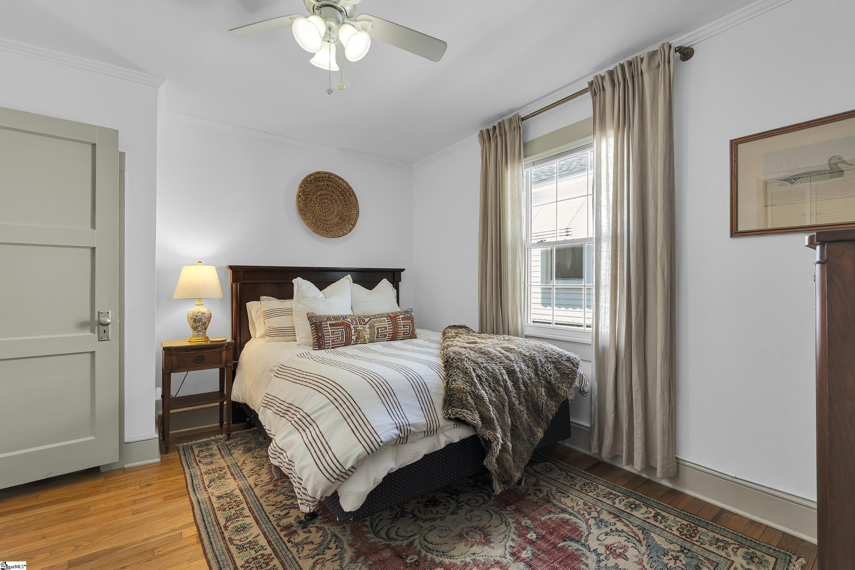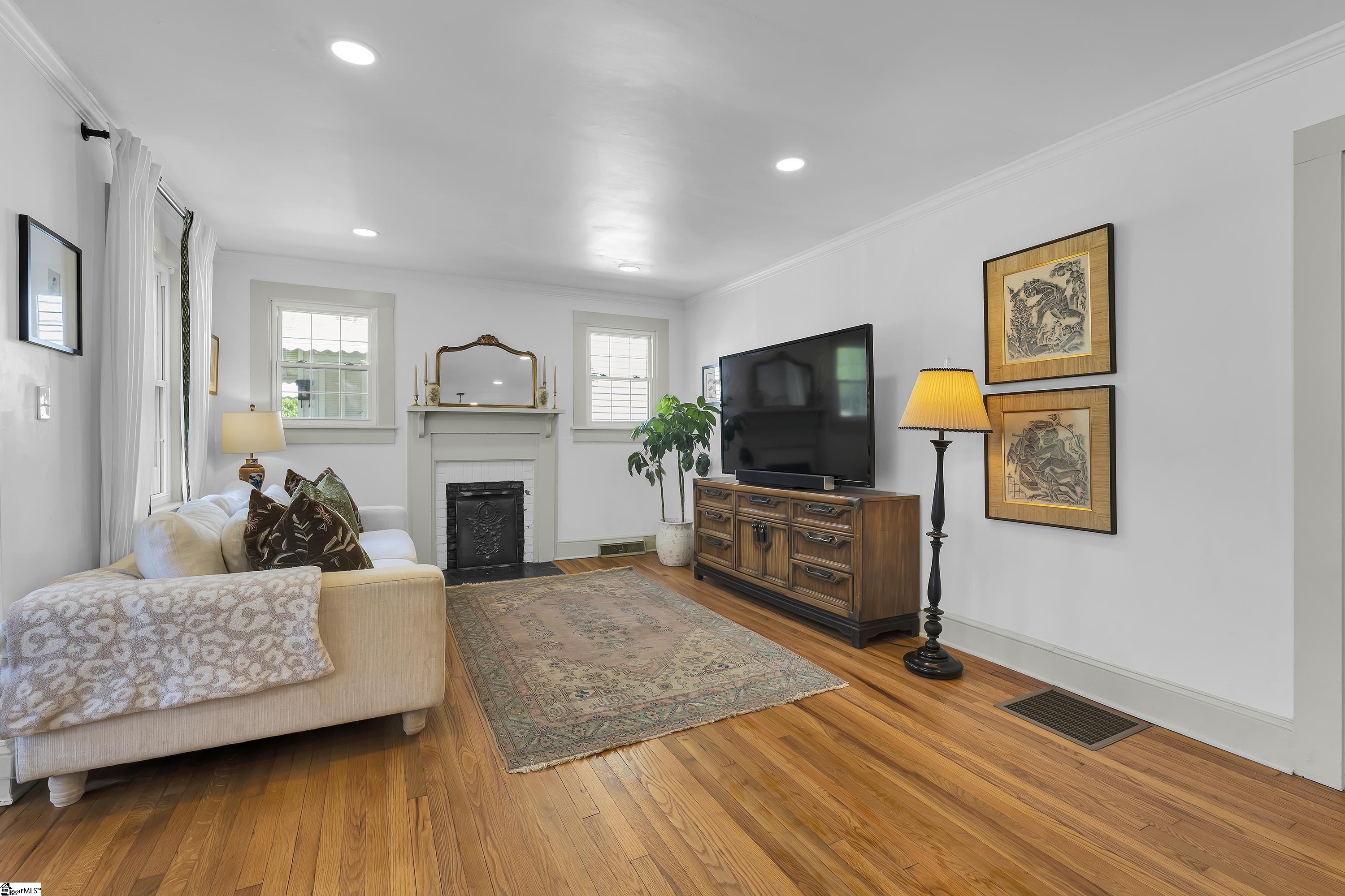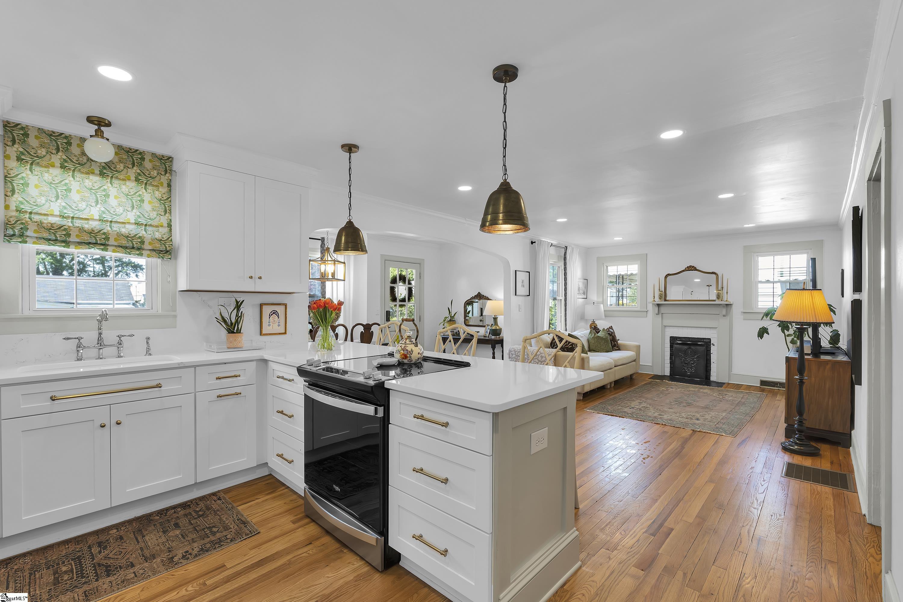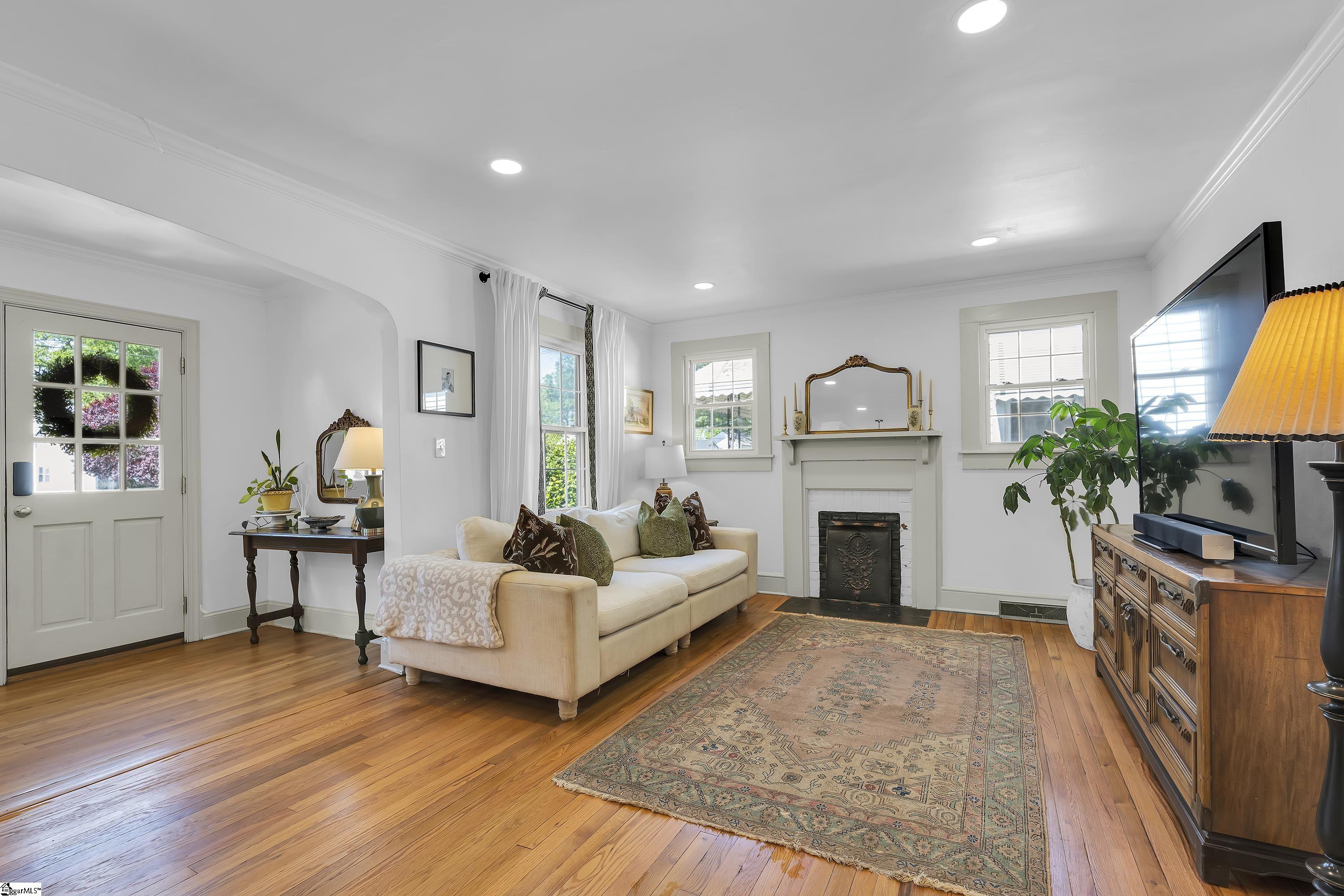 Charming one-level bungalow with 3 bedrooms and 2 full baths in the heart of the Fair Heights neighborhood, just minutes from downtown Greenville, the Swamp Rabbit Trail and Laurens Road’s great shopping and dining options. 25 Cumberland Avenue features over 1500 square feet of living space and provides the perfect blend of old house charm with the modern conveniences from several recent renovations and upgrades. The home features a welcoming covered entrance leading to an open concept main level with foyer, dining area with large windows letting in lots of natural light, and spacious living room with beautiful hardwood floors. The living room overlooks a gourmet chef’s kitchen with white custom cabinetry with soft close features and updated hardware, farm style sink, quartz countertops and backsplash, an island with seating for four, and stainless-steel appliances including smooth-top electric range, refrigerator, dishwasher and disposal – all conveying. The updated and expanded primary suite on main is nestled toward the back of the home and features hardwood floors, fireplace, dressing area and spacious closet, and a spa-like bath with marble floors and vanity, and a large, ceramic tiled shower with updated plumbing fixtures. Two additional bedrooms with hardwood floors share a renovated hall bathroom with quartz-topped vanity, tub/shower combination and ceramic tile floors. A bright and cheery sunroom that doubles as a screened porch provides year-round relaxing and entertaining options and easy access to the outdoors! Rounding out the main level is a laundry area and butler’s pantry/mudroom off the kitchen with access to the gated side patio area and backyard. The fully-fenced, beautifully landscaped backyard features an extended driveway with gated access to the backyard, additional rear parking with room for future garage expansion, a detached storage building and brick patio for additional outdoor entertaining space. Throughout the home you’ll find beautiful hardwood floors, designer finishes, and a long list of recent interior and exterior updates and improvements making this home completely MOVE-IN READY! Zoned for award-winning schools – Sara Collins, Beck Middle and JL Mann High. Don’t miss your chance to own this fantastic home in Greenville’s most sought-after neighborhoods!