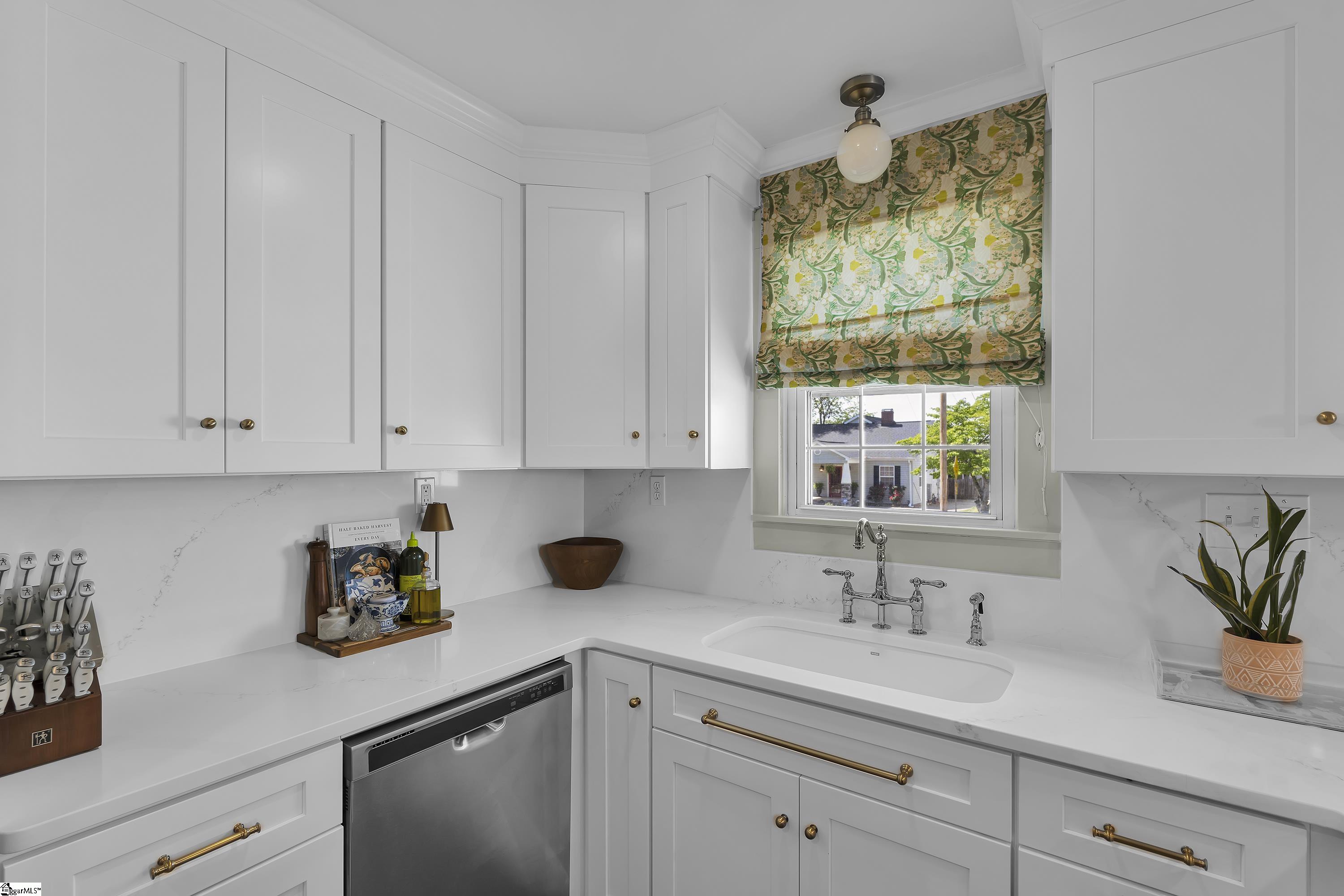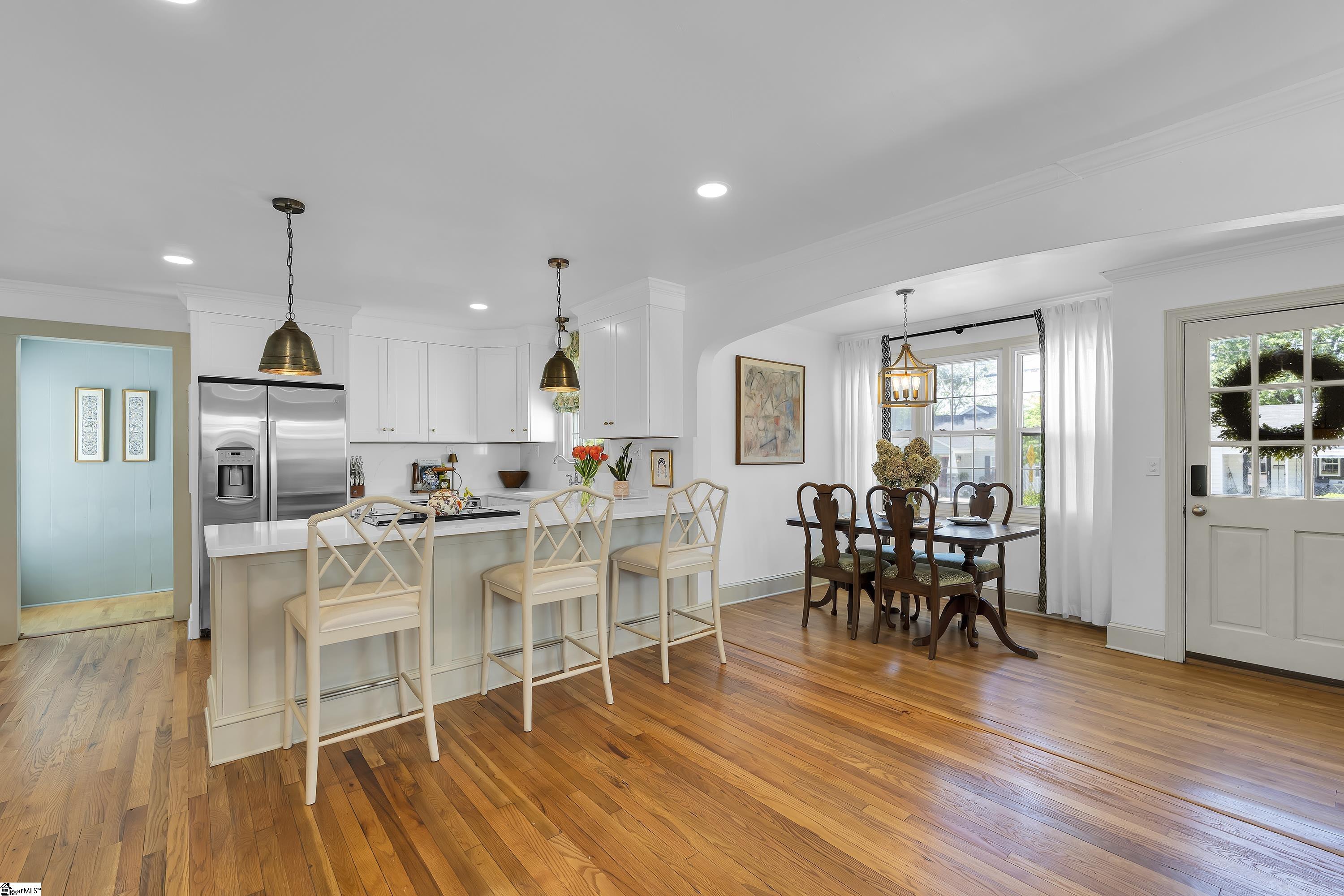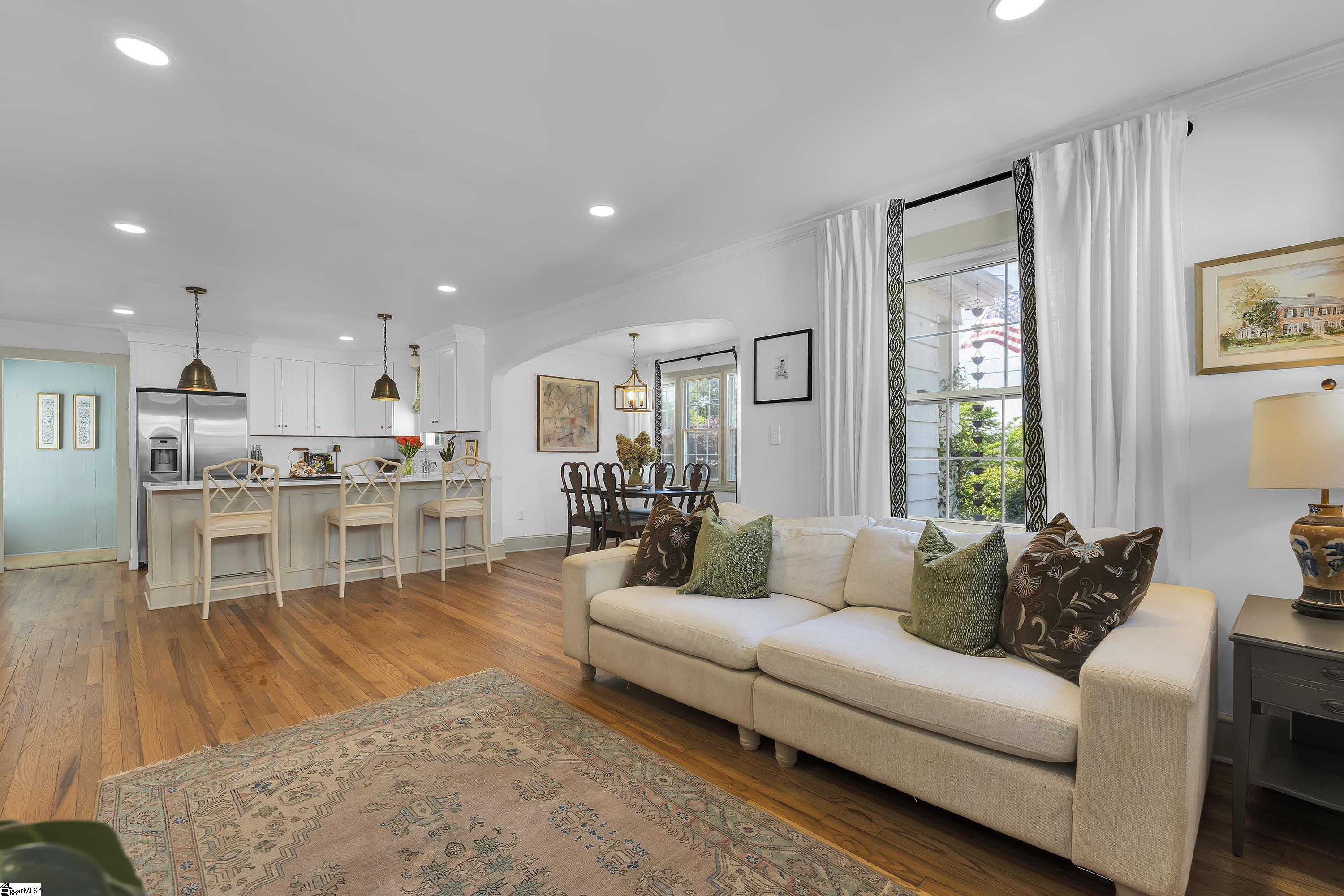 Charming one-level bungalow with 3 bedrooms and 2 full baths in the heart of the Fair Heights neighborhood, just minutes from downtown Greenville, the Swamp Rabbit Trail and Laurens Road’s great shopping and dining options. 25 Cumberland Avenue features over 1500 square feet of living space and provides the perfect blend of old house charm with the modern conveniences from several recent renovations and upgrades. The home features a welcoming covered entrance leading to an open concept main level with foyer, dining area with large windows letting in lots of natural light, and spacious living room with beautiful hardwood floors. The living room overlooks a gourmet chef’s kitchen with white custom cabinetry with soft close features and updated hardware, farm style sink, quartz countertops and backsplash, an island with seating for four, and stainless-steel appliances including smooth-top electric range, refrigerator, dishwasher and disposal – all conveying. The updated and expanded primary suite on main is nestled toward the back of the home and features hardwood floors, fireplace, dressing area and spacious closet, and a spa-like bath with marble floors and vanity, and a large, ceramic tiled shower with updated plumbing fixtures. Two additional bedrooms with hardwood floors share a renovated hall bathroom with quartz-topped vanity, tub/shower combination and ceramic tile floors. A bright and cheery sunroom that doubles as a screened porch provides year-round relaxing and entertaining options and easy access to the outdoors! Rounding out the main level is a laundry area and butler’s pantry/mudroom off the kitchen with access to the gated side patio area and backyard. The fully-fenced, beautifully landscaped backyard features an extended driveway with gated access to the backyard, additional rear parking with room for future garage expansion, a detached storage building and brick patio for additional outdoor entertaining space. Throughout the home you’ll find beautiful hardwood floors, designer finishes, and a long list of recent interior and exterior updates and improvements making this home completely MOVE-IN READY! Zoned for award-winning schools – Sara Collins, Beck Middle and JL Mann High. Don’t miss your chance to own this fantastic home in Greenville’s most sought-after neighborhoods!