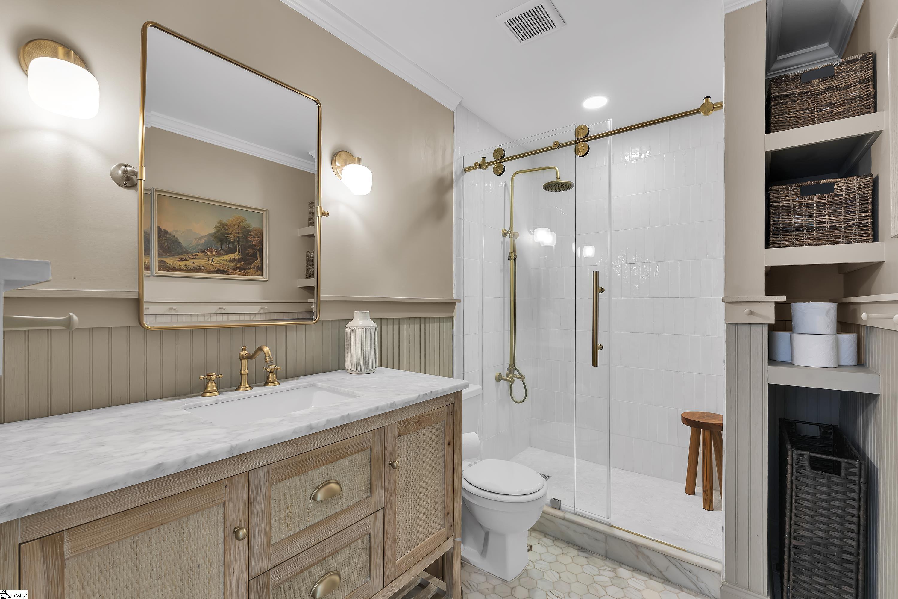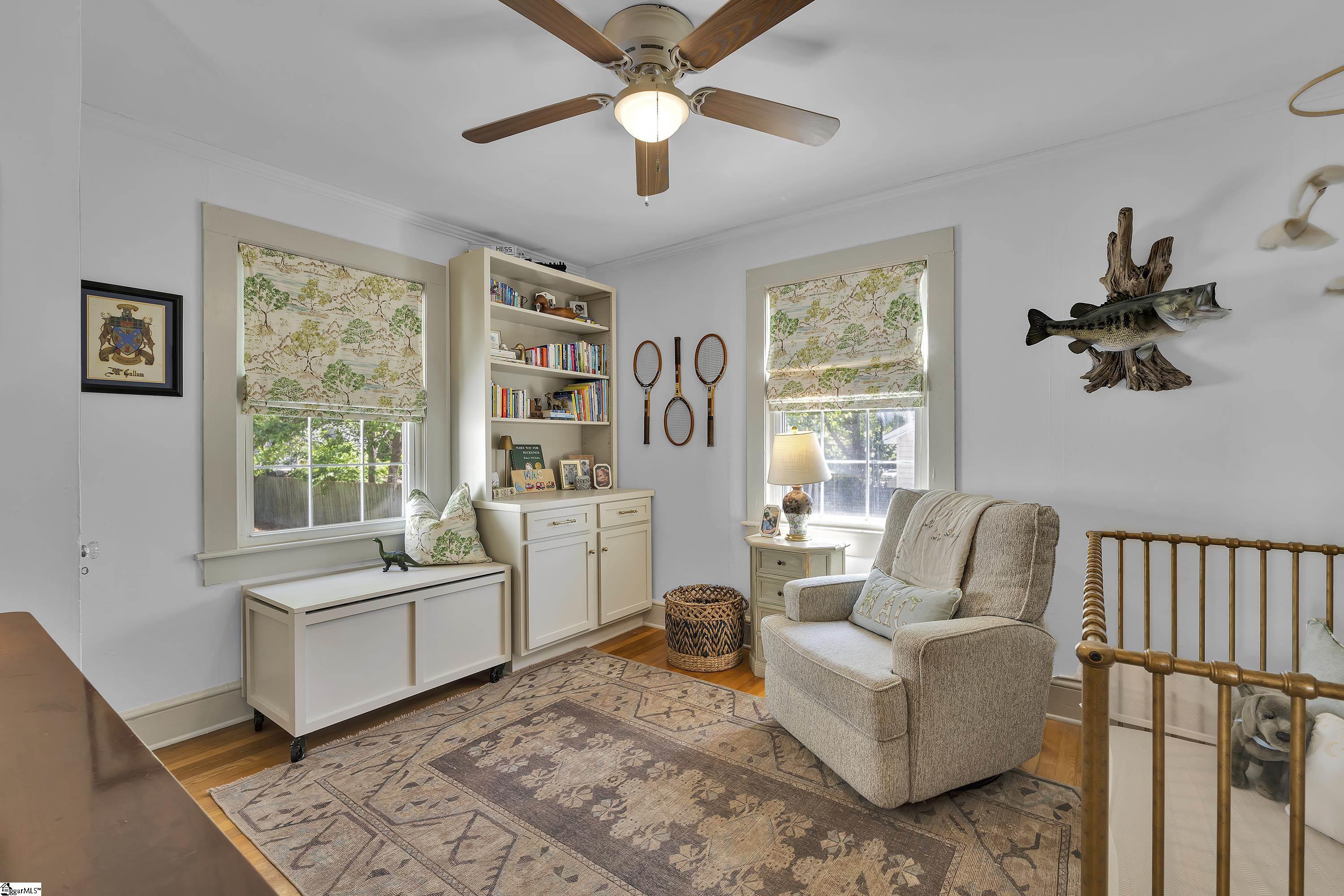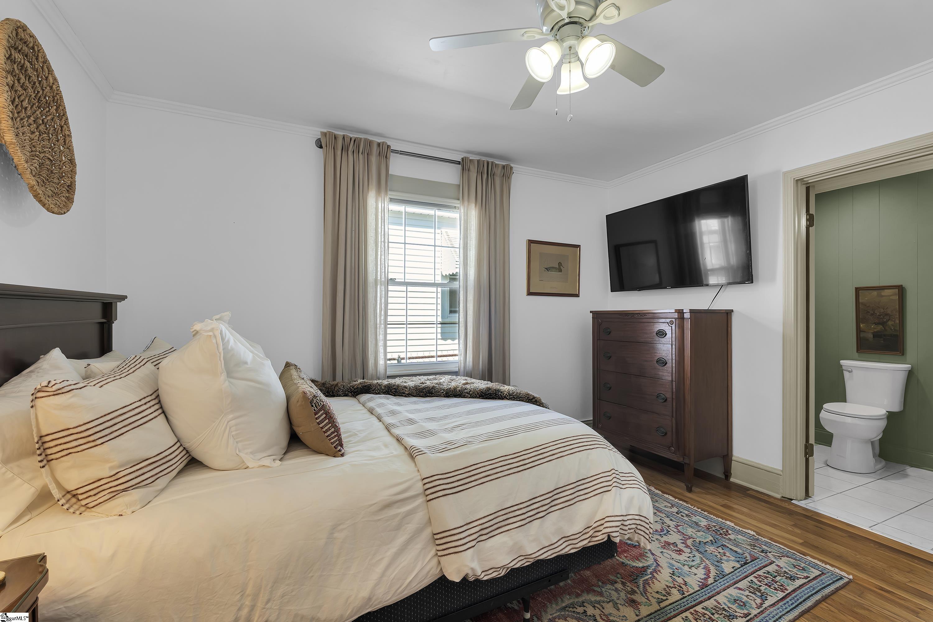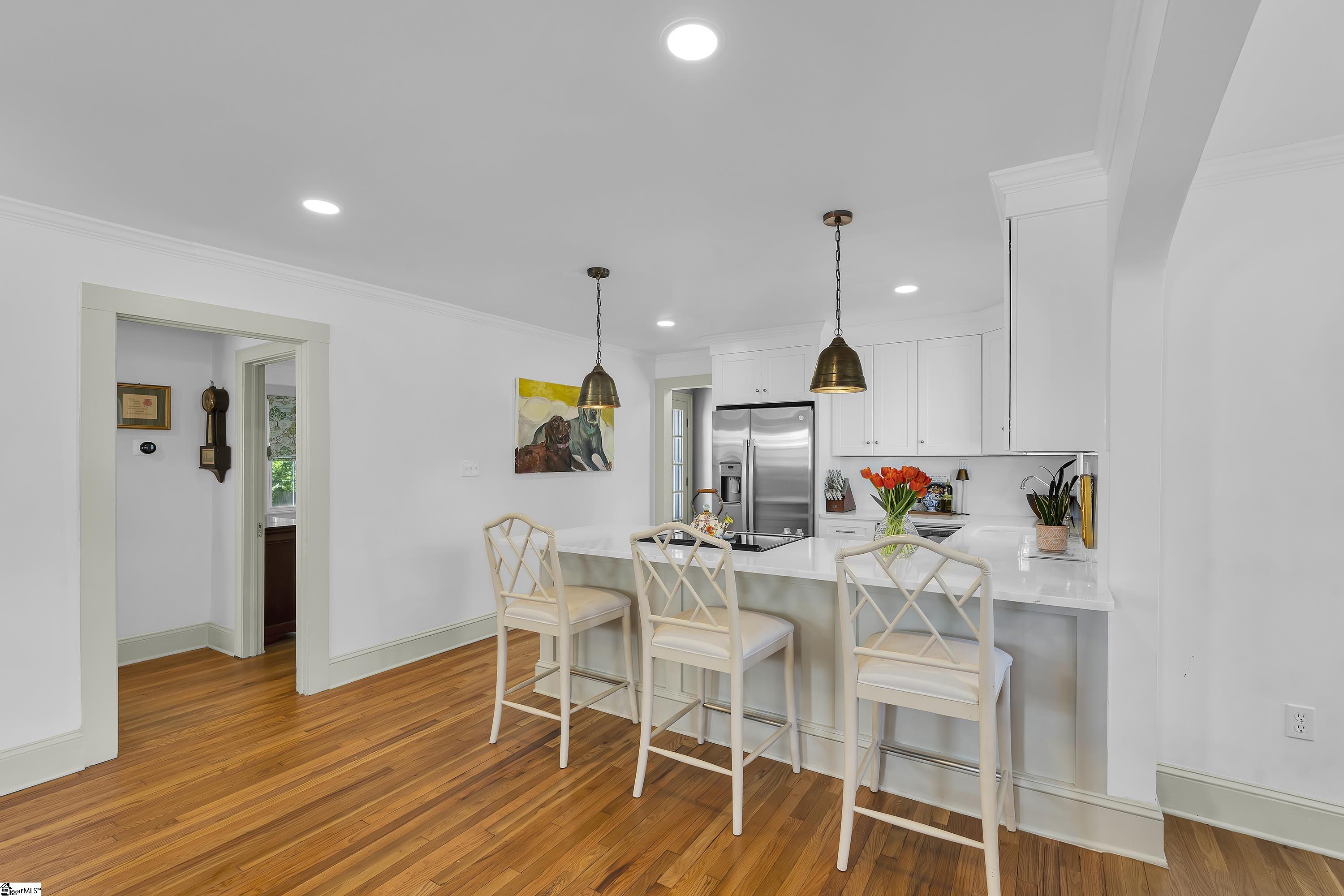 Charming one-level bungalow with 3 bedrooms and 2 full baths in the heart of the Fair Heights neighborhood, just minutes from downtown Greenville, the Swamp Rabbit Trail and Laurens Road’s great shopping and dining options. 25 Cumberland Avenue features over 1500 square feet of living space and provides the perfect blend of old house charm with the modern conveniences from several recent renovations and upgrades. The home features a welcoming covered entrance leading to an open concept main level with foyer, dining area with large windows letting in lots of natural light, and spacious living room with beautiful hardwood floors. The living room overlooks a gourmet chef’s kitchen with white custom cabinetry with soft close features and updated hardware, farm style sink, quartz countertops and backsplash, an island with seating for four, and stainless-steel appliances including smooth-top electric range, refrigerator, dishwasher and disposal – all conveying. The updated and expanded primary suite on main is nestled toward the back of the home and features hardwood floors, fireplace, dressing area and spacious closet, and a spa-like bath with marble floors and vanity, and a large, ceramic tiled shower with updated plumbing fixtures. Two additional bedrooms with hardwood floors share a renovated hall bathroom with quartz-topped vanity, tub/shower combination and ceramic tile floors. A bright and cheery sunroom that doubles as a screened porch provides year-round relaxing and entertaining options and easy access to the outdoors! Rounding out the main level is a laundry area and butler’s pantry/mudroom off the kitchen with access to the gated side patio area and backyard. The fully-fenced, beautifully landscaped backyard features an extended driveway with gated access to the backyard, additional rear parking with room for future garage expansion, a detached storage building and brick patio for additional outdoor entertaining space. Throughout the home you’ll find beautiful hardwood floors, designer finishes, and a long list of recent interior and exterior updates and improvements making this home completely MOVE-IN READY! Zoned for award-winning schools – Sara Collins, Beck Middle and JL Mann High. Don’t miss your chance to own this fantastic home in Greenville’s most sought-after neighborhoods!