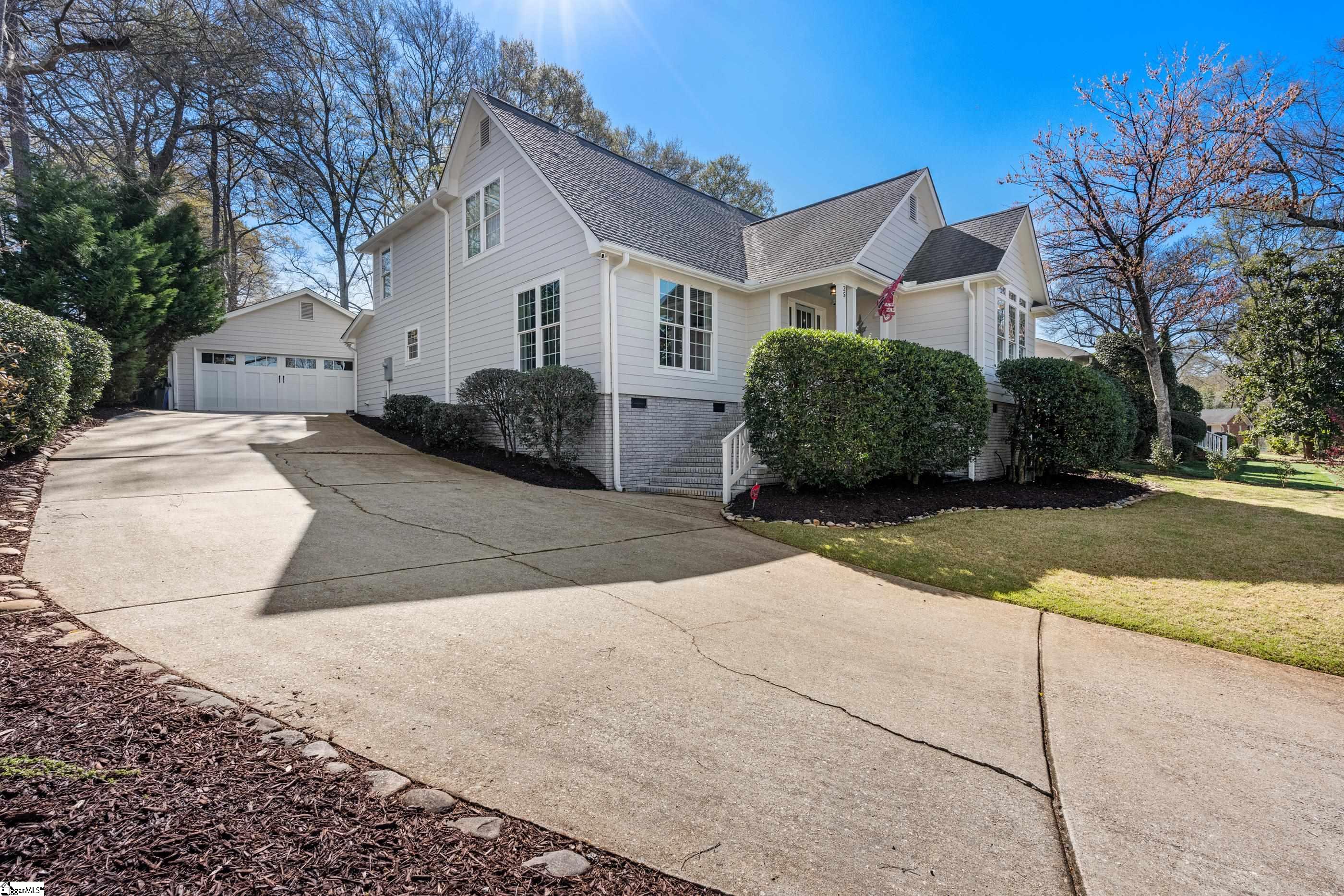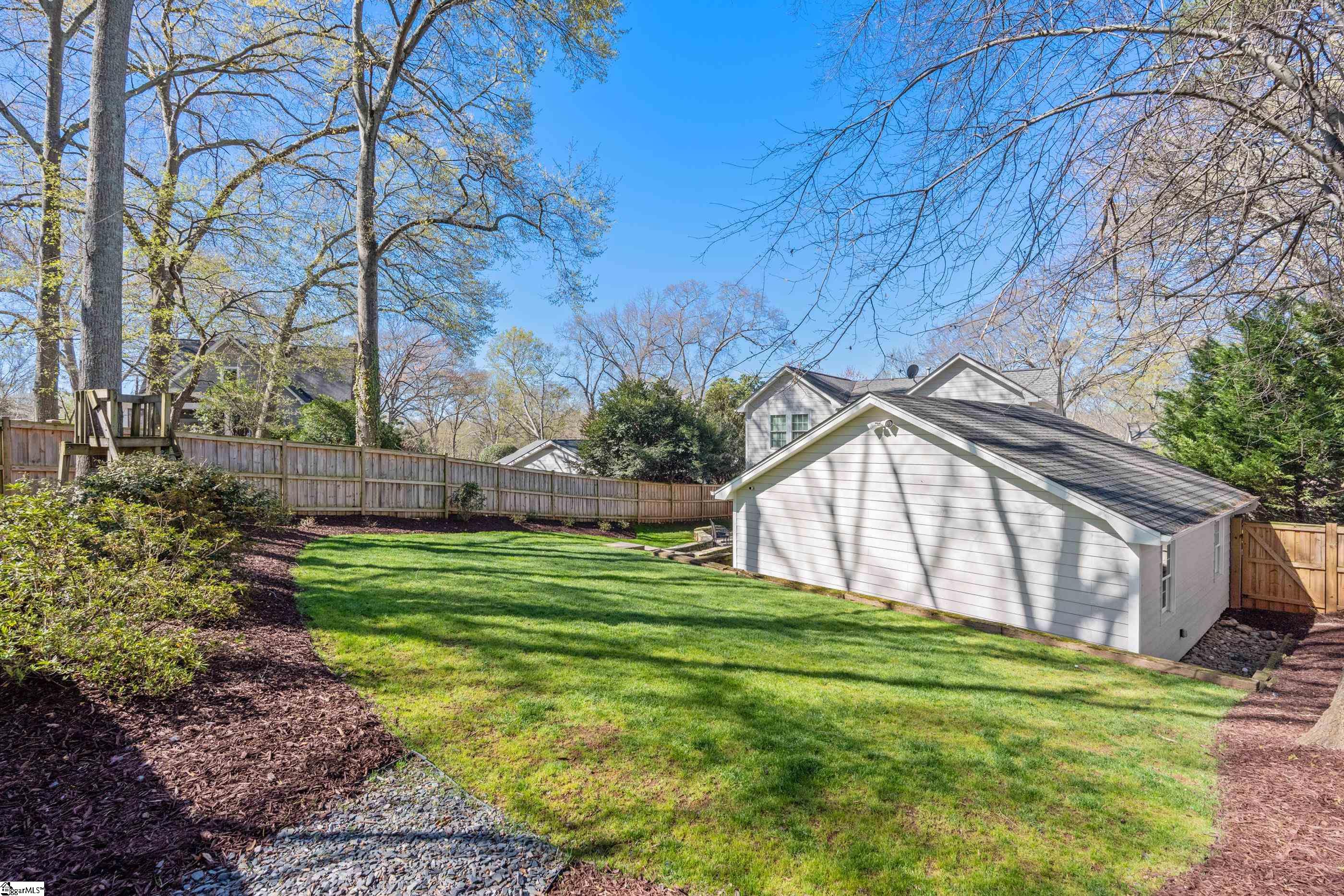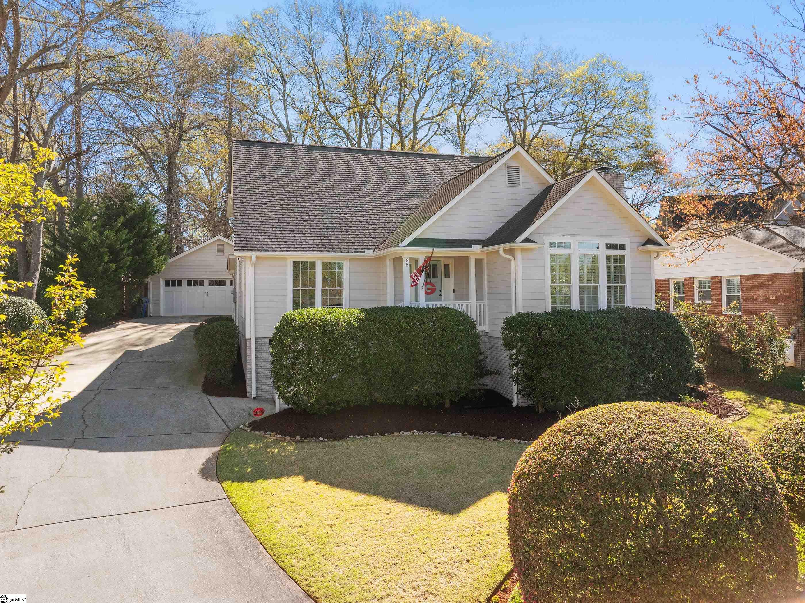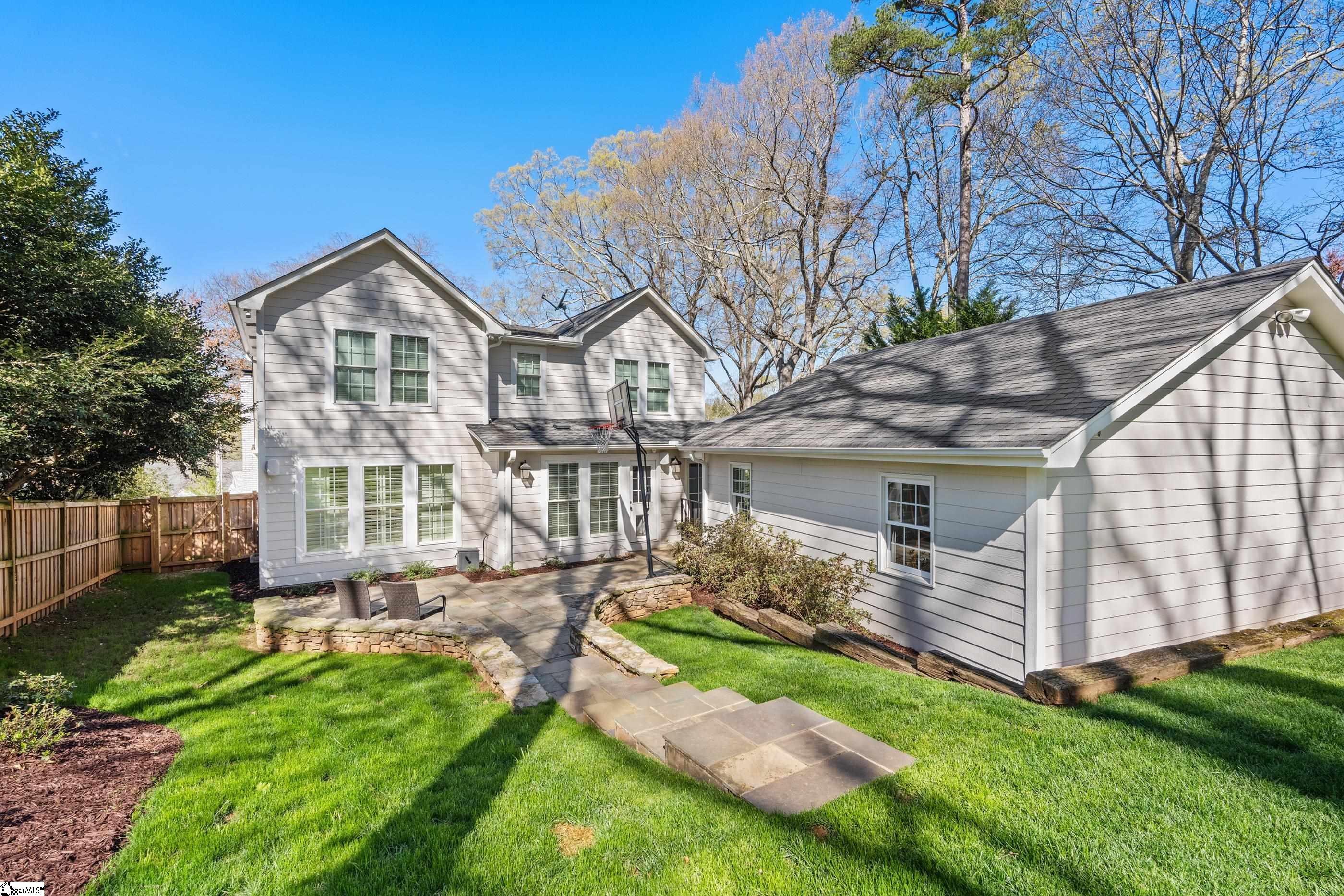 Welcome to 25 Frontus Street, a charming traditional home in the Augusta Road area with nearly 3,000 square feet, 5 bedrooms (or 4 bedrooms plus a flex room), and 3.5 bathrooms. Filled with natural light and ideal for both everyday living and hosting, this home features a spacious kitchen with granite countertops, a large center island, abundant storage, wine chiller in the pantry/bar area, and easy flow into the main living spaces. A mudroom with built-in storage adds everyday convenience- ideal for bookbags and other luggage and sports equipment. Front living room features a gorgeous, vaulted ceiling, fireplace and built in cabinetry. The main level primary suite includes a walk-in shower, jetted tub, and generous walk-in closet space, while upstairs provides four additional bedrooms or the flexibility of three bedrooms plus a flex room, office, or playroom. Outside, enjoy a beautifully landscaped, fenced backyard with large patio along with a detached two-car garage connected by a covered breezeway. This home backs up to the amazing neighborhood park, Rockwood Park, which provides a playground, basketball court and gathering spaces for many afternoons of play and enjoyment. This location cannot be beat! Zoned for award winning schools, this home pairs classic character and updates with a highly desirable Augusta Road area location. Convenient to Prisma’s Memorial Hospital, downtown Greenville, and all that the Augusta Road dining and shopping has to offer. Come see the beautiful, move-in ready home today!