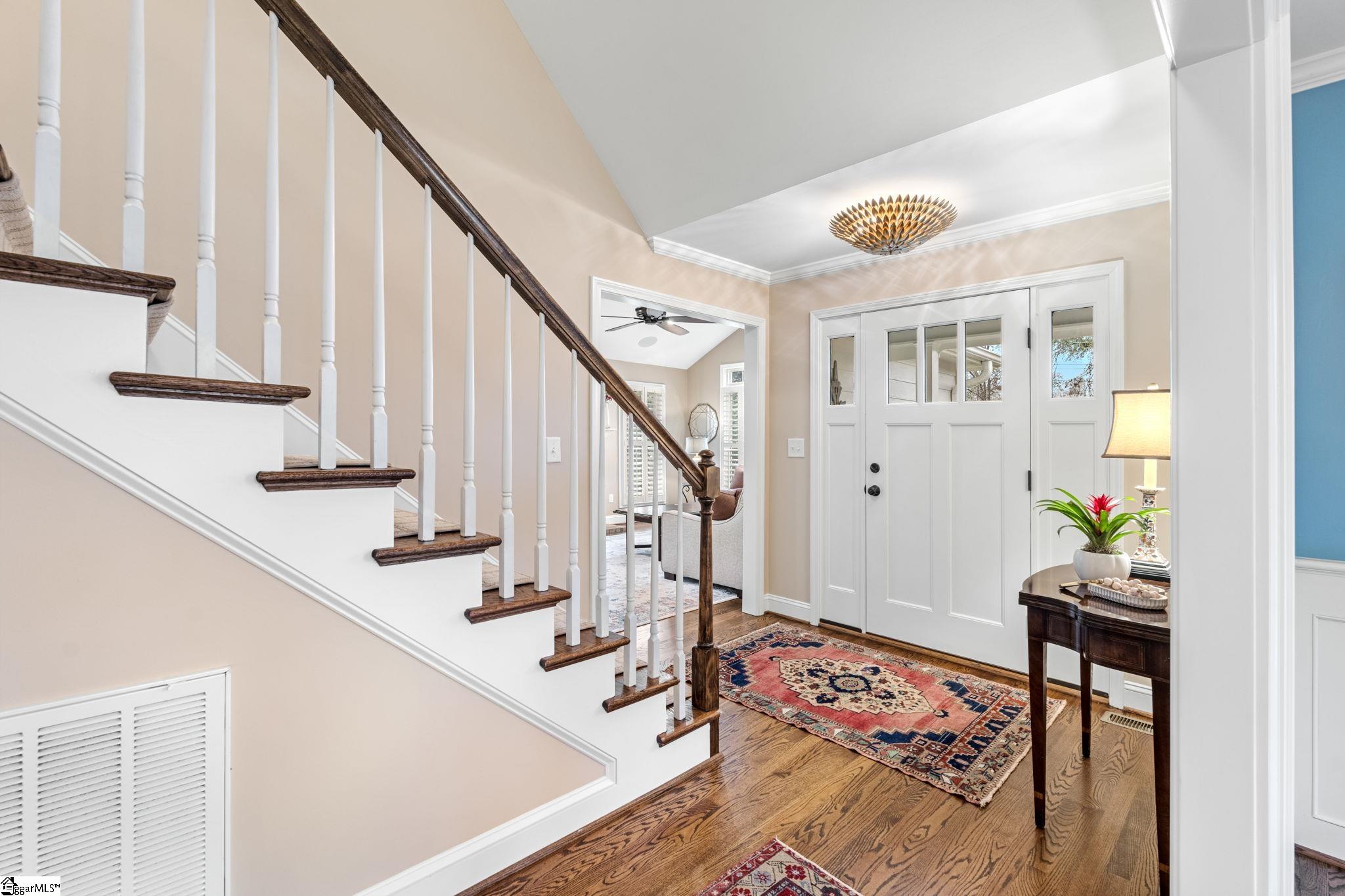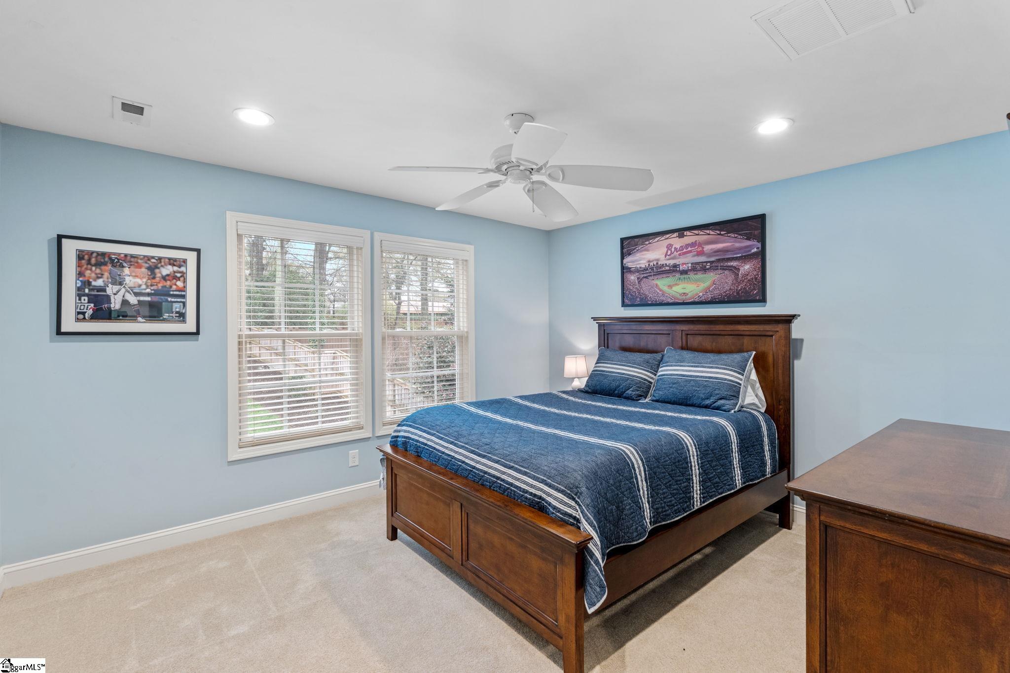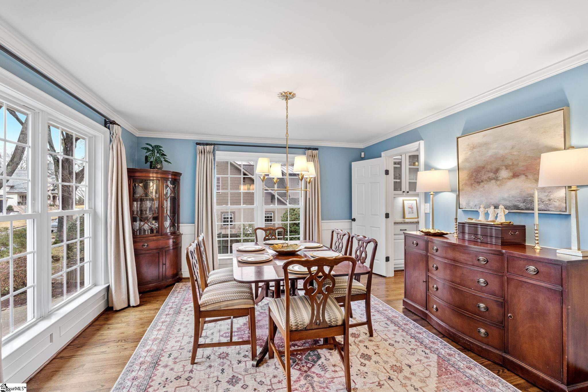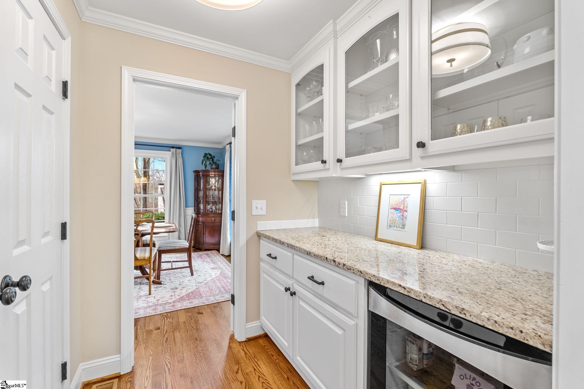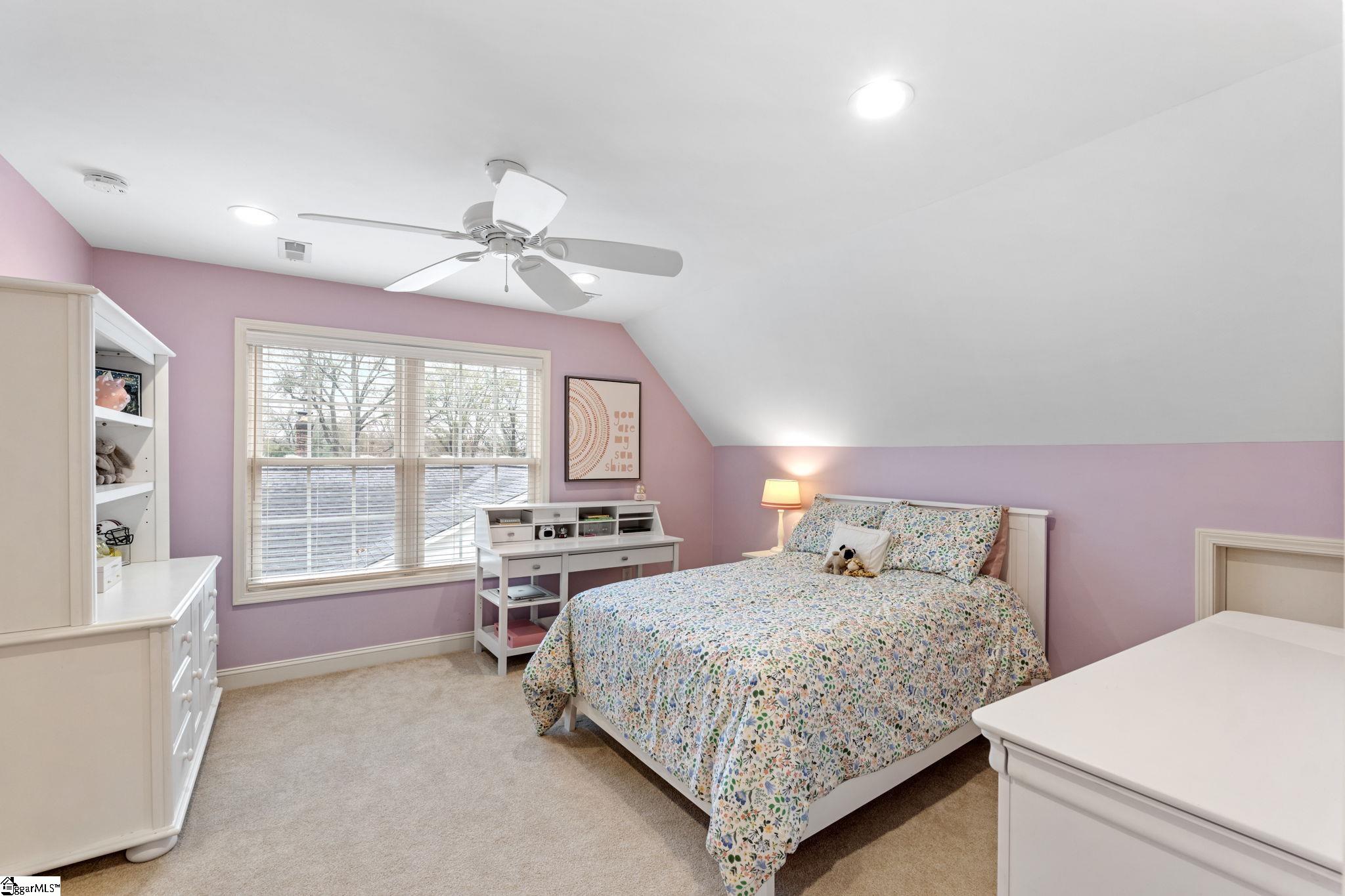 Welcome to 25 Frontus Street, a charming traditional home in the Augusta Road area with nearly 3,000 square feet, 5 bedrooms (or 4 bedrooms plus a flex room), and 3.5 bathrooms. Filled with natural light and ideal for both everyday living and hosting, this home features a spacious kitchen with granite countertops, a large center island, abundant storage, wine chiller in the pantry/bar area, and easy flow into the main living spaces. A mudroom with built-in storage adds everyday convenience- ideal for bookbags and other luggage and sports equipment. Front living room features a gorgeous, vaulted ceiling, fireplace and built in cabinetry. The main level primary suite includes a walk-in shower, jetted tub, and generous walk-in closet space, while upstairs provides four additional bedrooms or the flexibility of three bedrooms plus a flex room, office, or playroom. Outside, enjoy a beautifully landscaped, fenced backyard with large patio along with a detached two-car garage connected by a covered breezeway. This home backs up to the amazing neighborhood park, Rockwood Park, which provides a playground, basketball court and gathering spaces for many afternoons of play and enjoyment. This location cannot be beat! Zoned for award winning schools, this home pairs classic character and updates with a highly desirable Augusta Road area location. Convenient to Prisma’s Memorial Hospital, downtown Greenville, and all that the Augusta Road dining and shopping has to offer. Come see the beautiful, move-in ready home today!