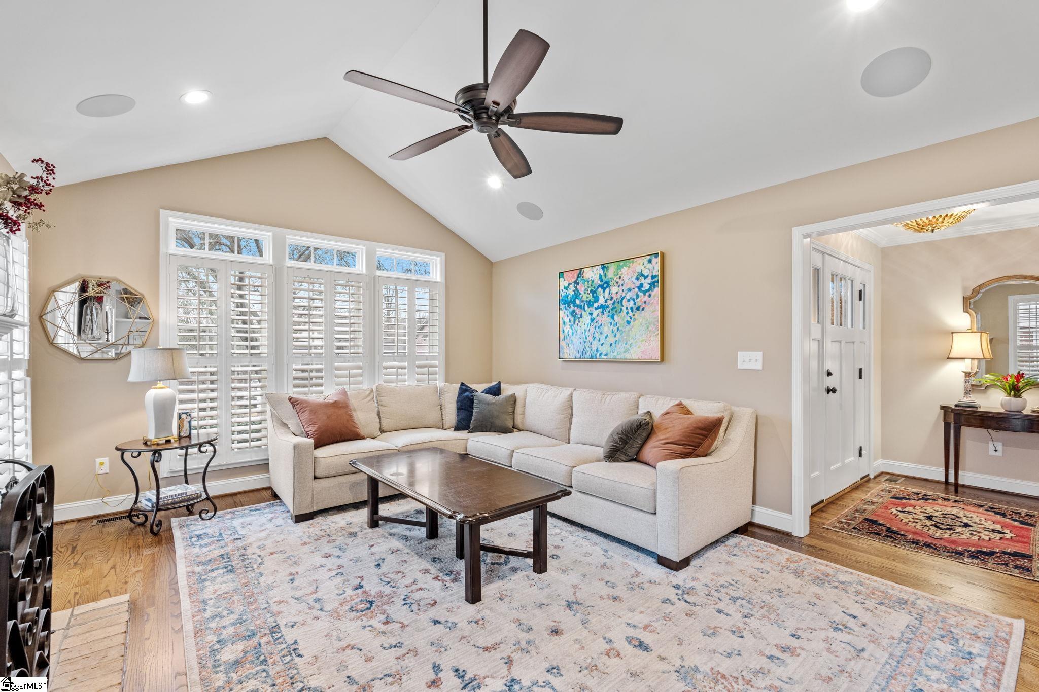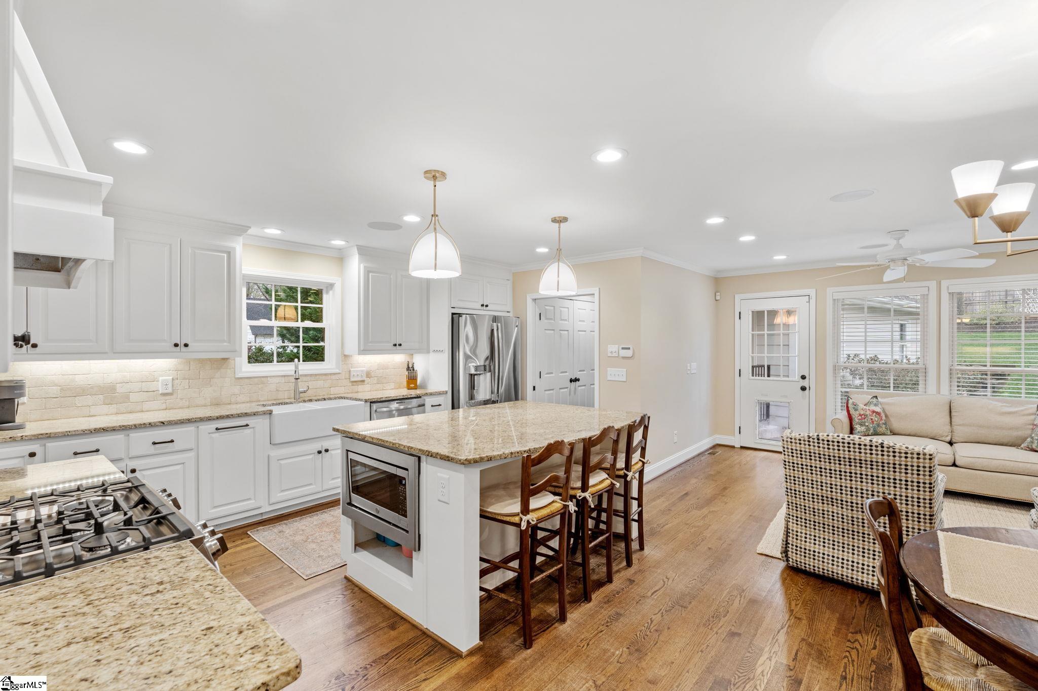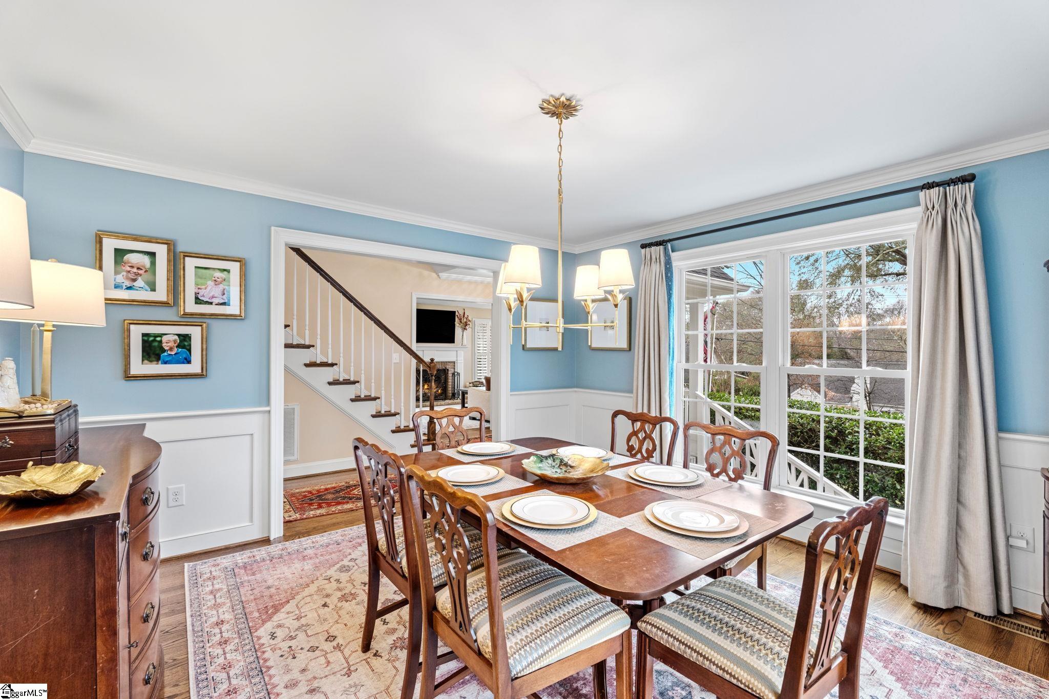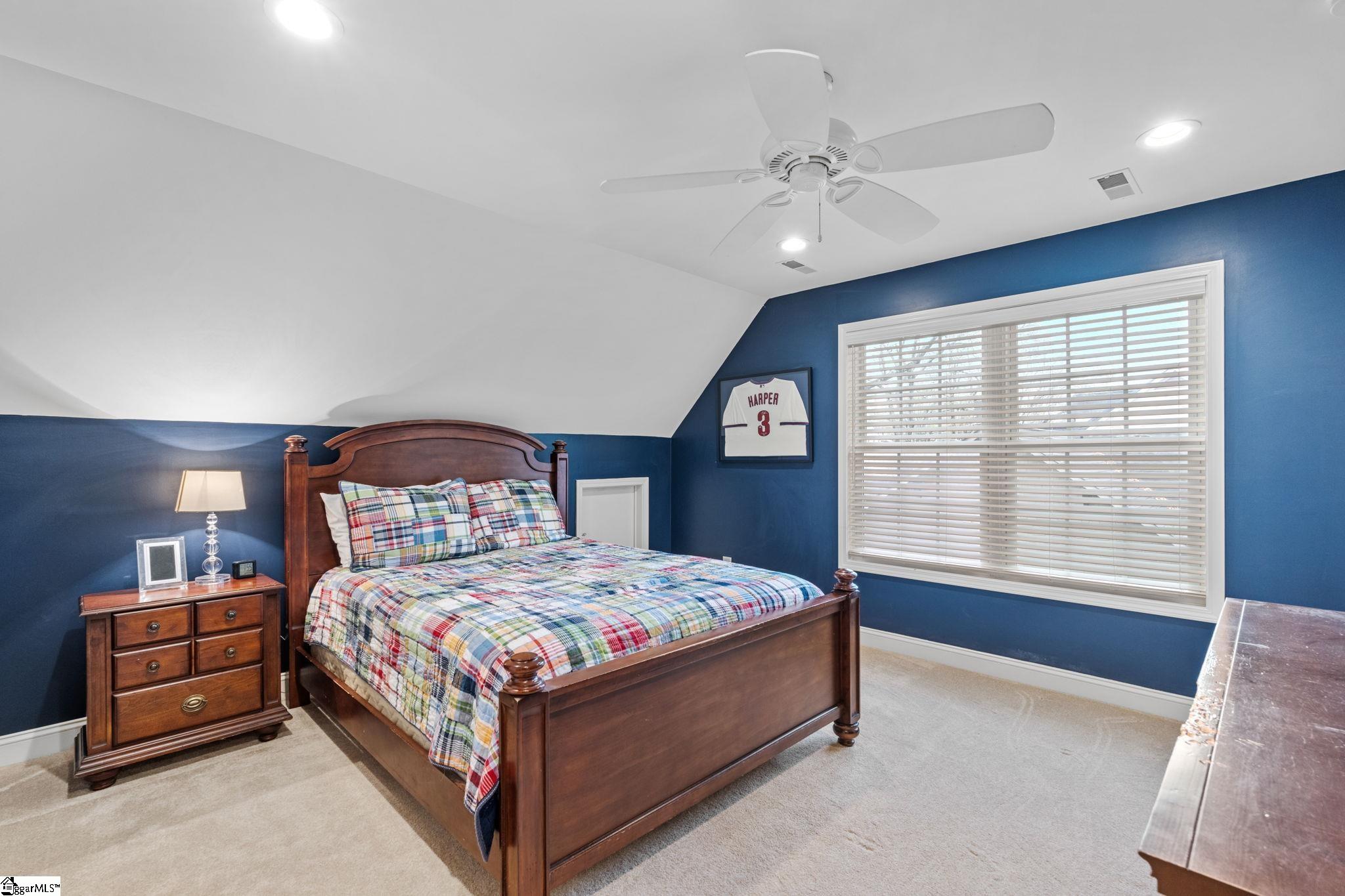 Welcome to 25 Frontus Street, a charming traditional home in the Augusta Road area with nearly 3,000 square feet, 5 bedrooms (or 4 bedrooms plus a flex room), and 3.5 bathrooms. Filled with natural light and ideal for both everyday living and hosting, this home features a spacious kitchen with granite countertops, a large center island, abundant storage, wine chiller in the pantry/bar area, and easy flow into the main living spaces. A mudroom with built-in storage adds everyday convenience- ideal for bookbags and other luggage and sports equipment. Front living room features a gorgeous, vaulted ceiling, fireplace and built in cabinetry. The main level primary suite includes a walk-in shower, jetted tub, and generous walk-in closet space, while upstairs provides four additional bedrooms or the flexibility of three bedrooms plus a flex room, office, or playroom. Outside, enjoy a beautifully landscaped, fenced backyard with large patio along with a detached two-car garage connected by a covered breezeway. This home backs up to the amazing neighborhood park, Rockwood Park, which provides a playground, basketball court and gathering spaces for many afternoons of play and enjoyment. This location cannot be beat! Zoned for award winning schools, this home pairs classic character and updates with a highly desirable Augusta Road area location. Convenient to Prisma’s Memorial Hospital, downtown Greenville, and all that the Augusta Road dining and shopping has to offer. Come see the beautiful, move-in ready home today!