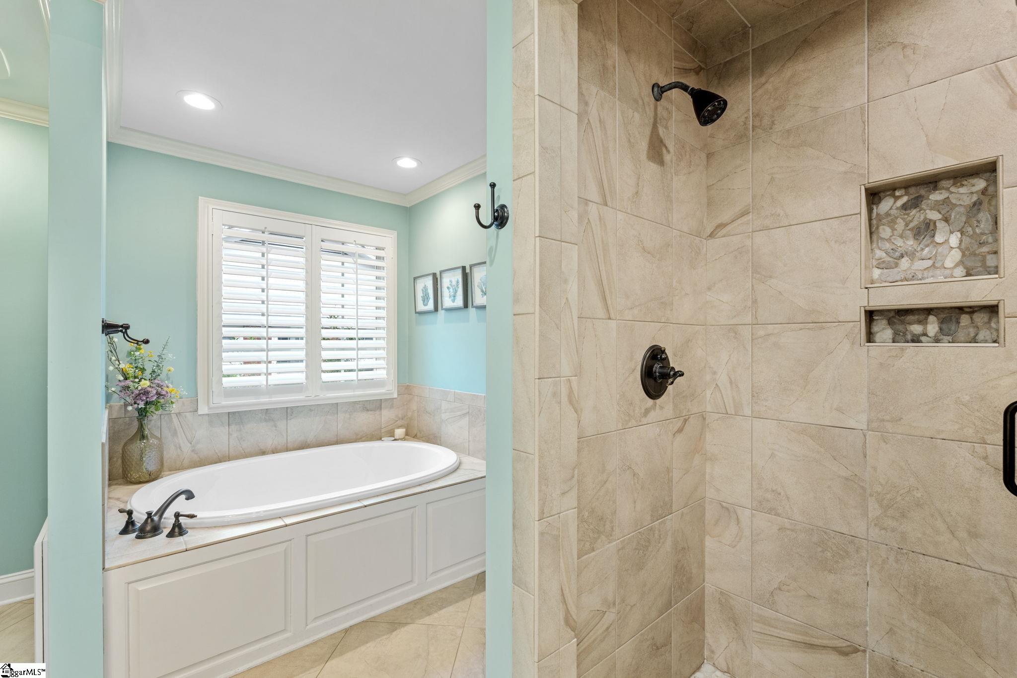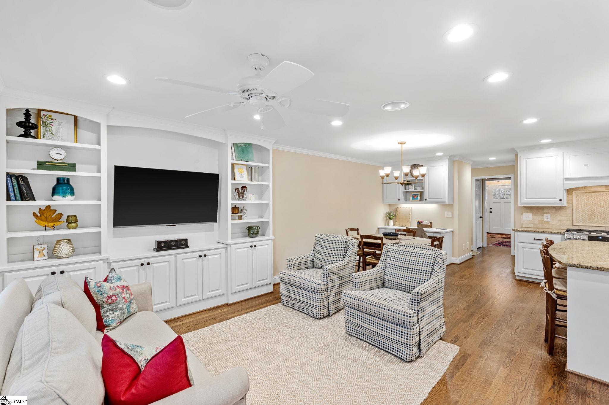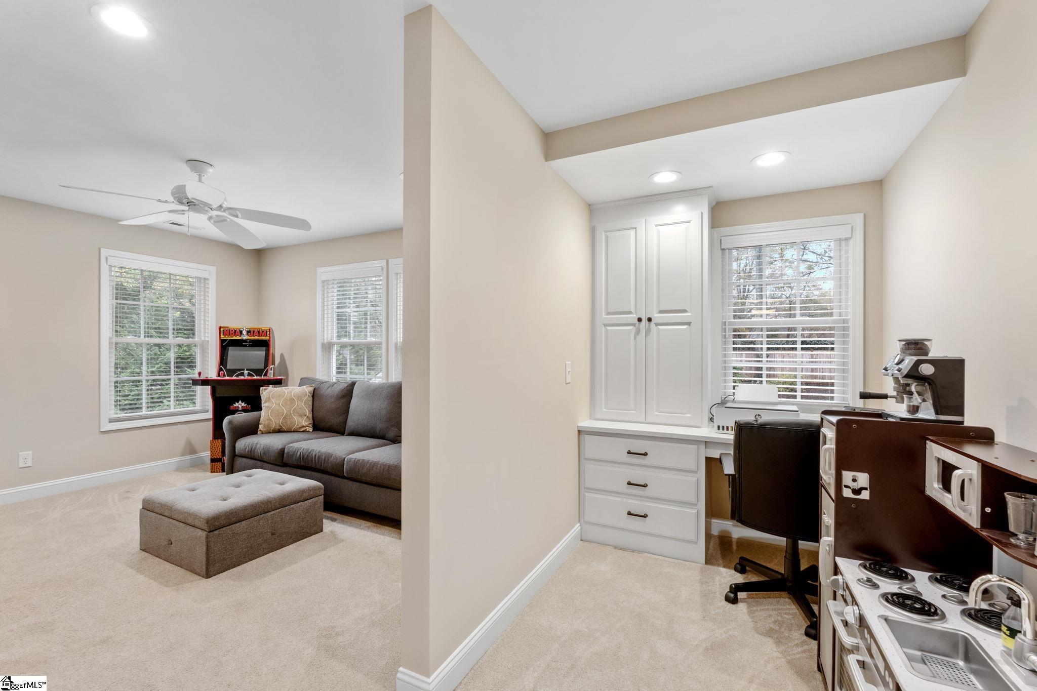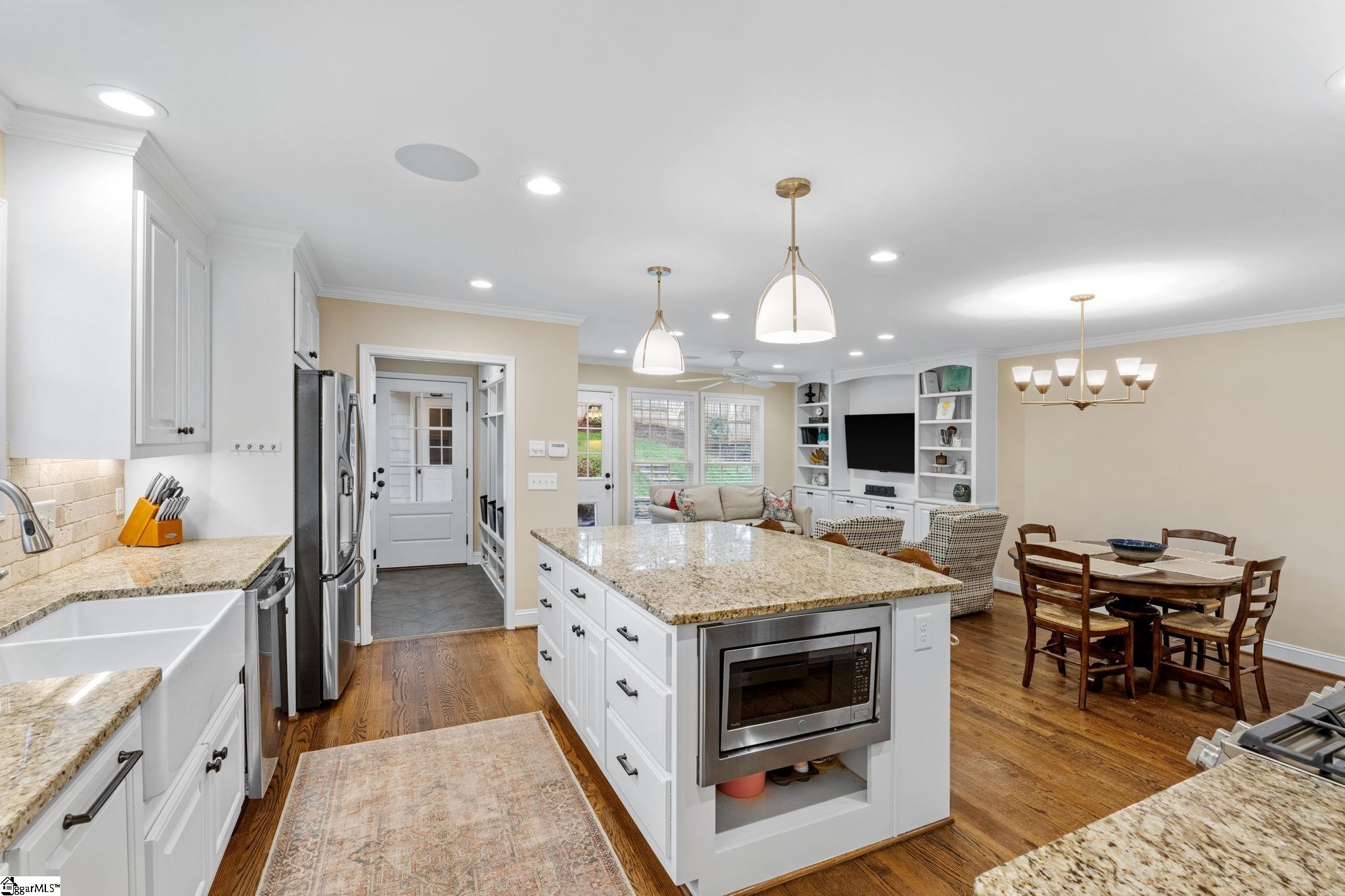 Welcome to 25 Frontus Street, a charming traditional home in the Augusta Road area with nearly 3,000 square feet, 5 bedrooms (or 4 bedrooms plus a flex room), and 3.5 bathrooms. Filled with natural light and ideal for both everyday living and hosting, this home features a spacious kitchen with granite countertops, a large center island, abundant storage, wine chiller in the pantry/bar area, and easy flow into the main living spaces. A mudroom with built-in storage adds everyday convenience- ideal for bookbags and other luggage and sports equipment. Front living room features a gorgeous, vaulted ceiling, fireplace and built in cabinetry. The main level primary suite includes a walk-in shower, jetted tub, and generous walk-in closet space, while upstairs provides four additional bedrooms or the flexibility of three bedrooms plus a flex room, office, or playroom. Outside, enjoy a beautifully landscaped, fenced backyard with large patio along with a detached two-car garage connected by a covered breezeway. This home backs up to the amazing neighborhood park, Rockwood Park, which provides a playground, basketball court and gathering spaces for many afternoons of play and enjoyment. This location cannot be beat! Zoned for award winning schools, this home pairs classic character and updates with a highly desirable Augusta Road area location. Convenient to Prisma’s Memorial Hospital, downtown Greenville, and all that the Augusta Road dining and shopping has to offer. Come see the beautiful, move-in ready home today!