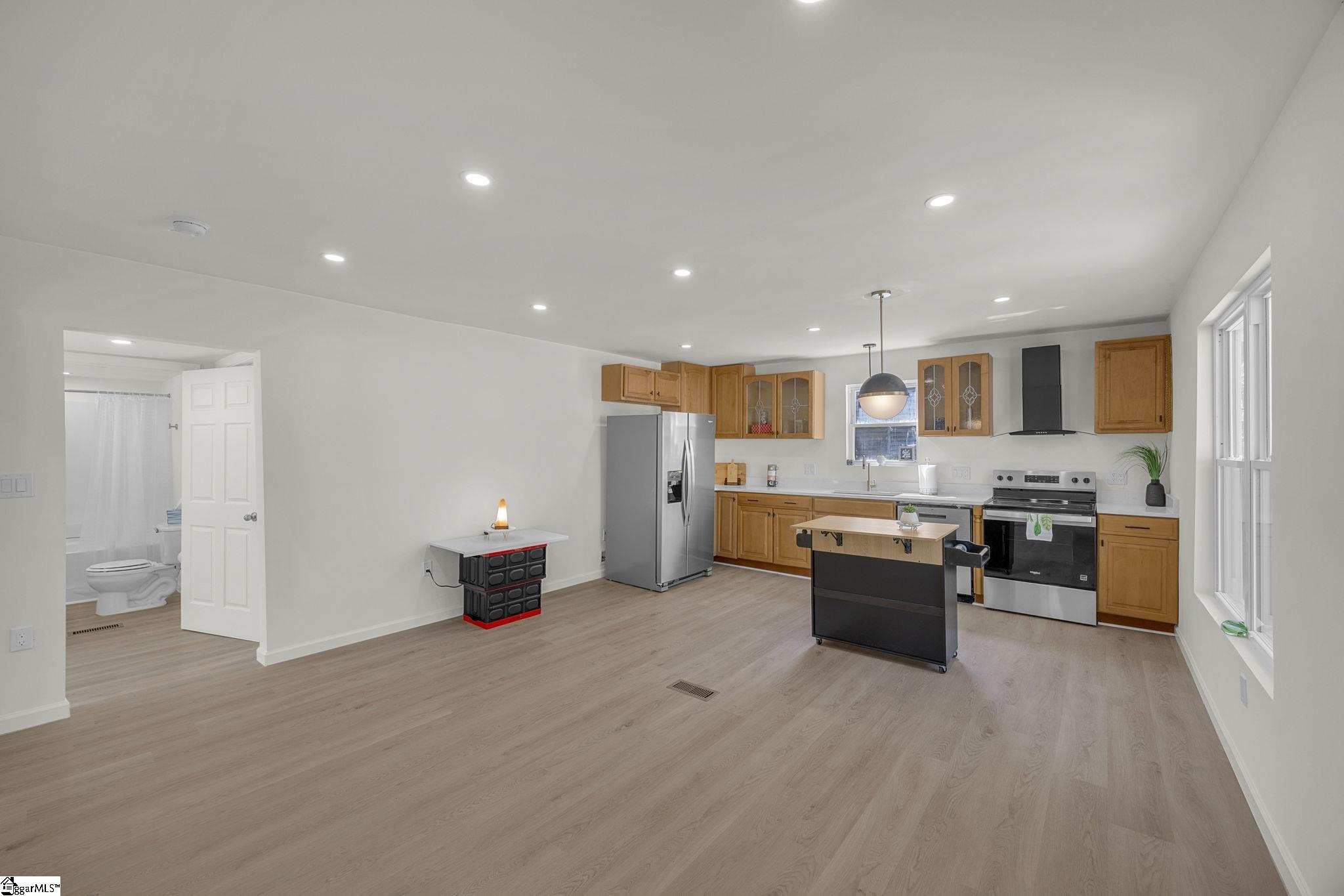 Welcome to this beautifully renovated home in Ware Shoals where modern updates meet small town charm. This 2 bedroom 2 bathroom home has been thoughtfully updated from top to bottom and offers a truly move in ready opportunity for its next owner. Step inside to a bright and inviting layout featuring updated flooring, fresh paint, and stylish finishes throughout. The kitchen stands out with updated cabinetry, sleek countertops, and modern touches that make it both functional and visually appealing. It flows seamlessly into the main living space, creating a comfortable environment for everyday living and easy entertaining. Both bathrooms have been tastefully updated, adding to the overall sense of quality and care that went into the renovation. Every space in the home has been designed to feel clean, cohesive, and welcoming. The unfinished basement offers plenty of storage space and gives buyers the flexibility to tailor it to their needs over time. Step outside to enjoy a spacious deck overlooking the yard, perfect for relaxing evenings or hosting friends and family. The yard provides ample space for outdoor activities, pets, or future landscaping ideas, giving you room to make it your own. Located in a quiet area of Ware Shoals, this home offers a peaceful setting while still being a great fit for first time buyers, those looking to downsize, or investors seeking a turnkey rental opportunity.