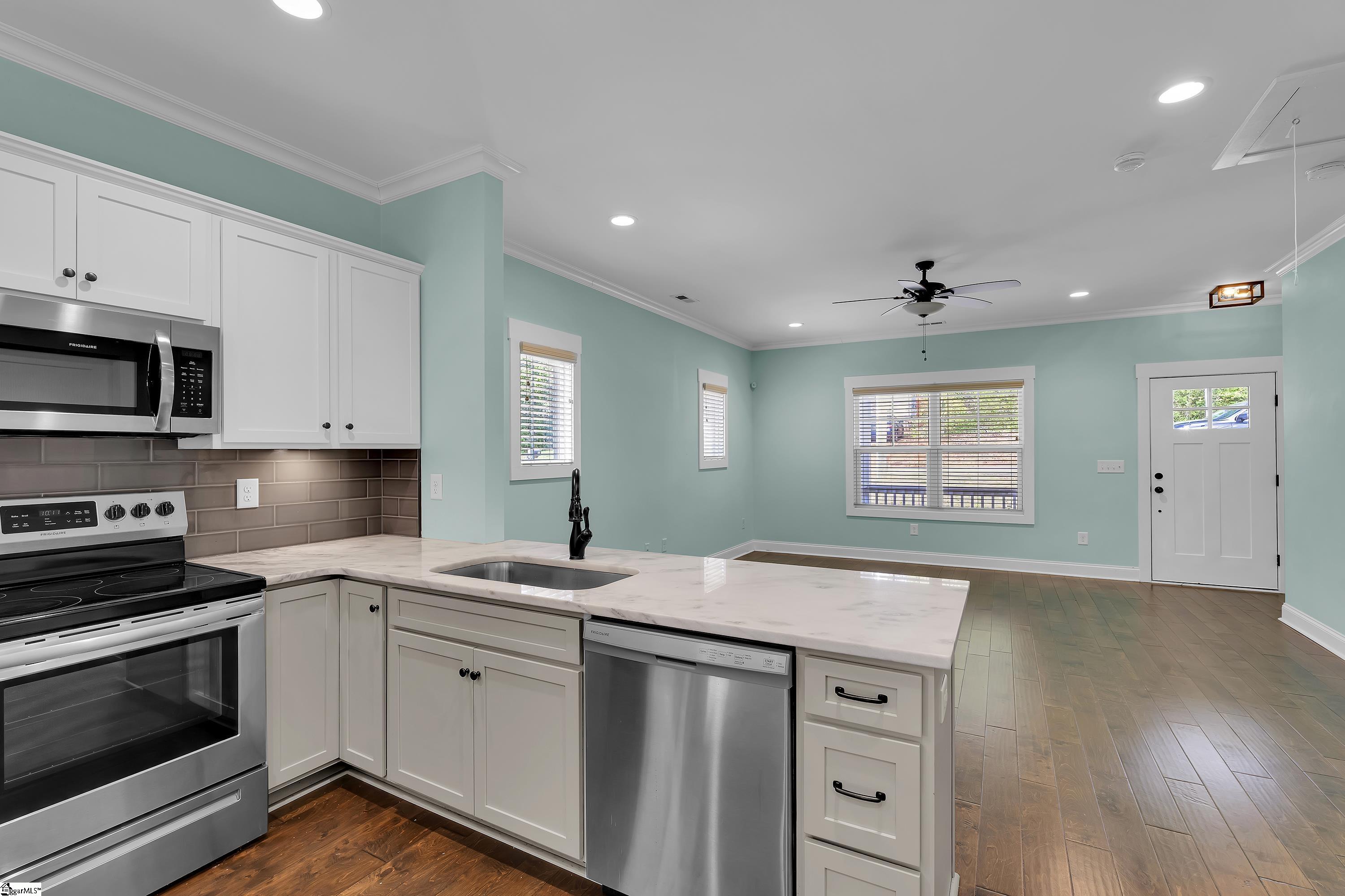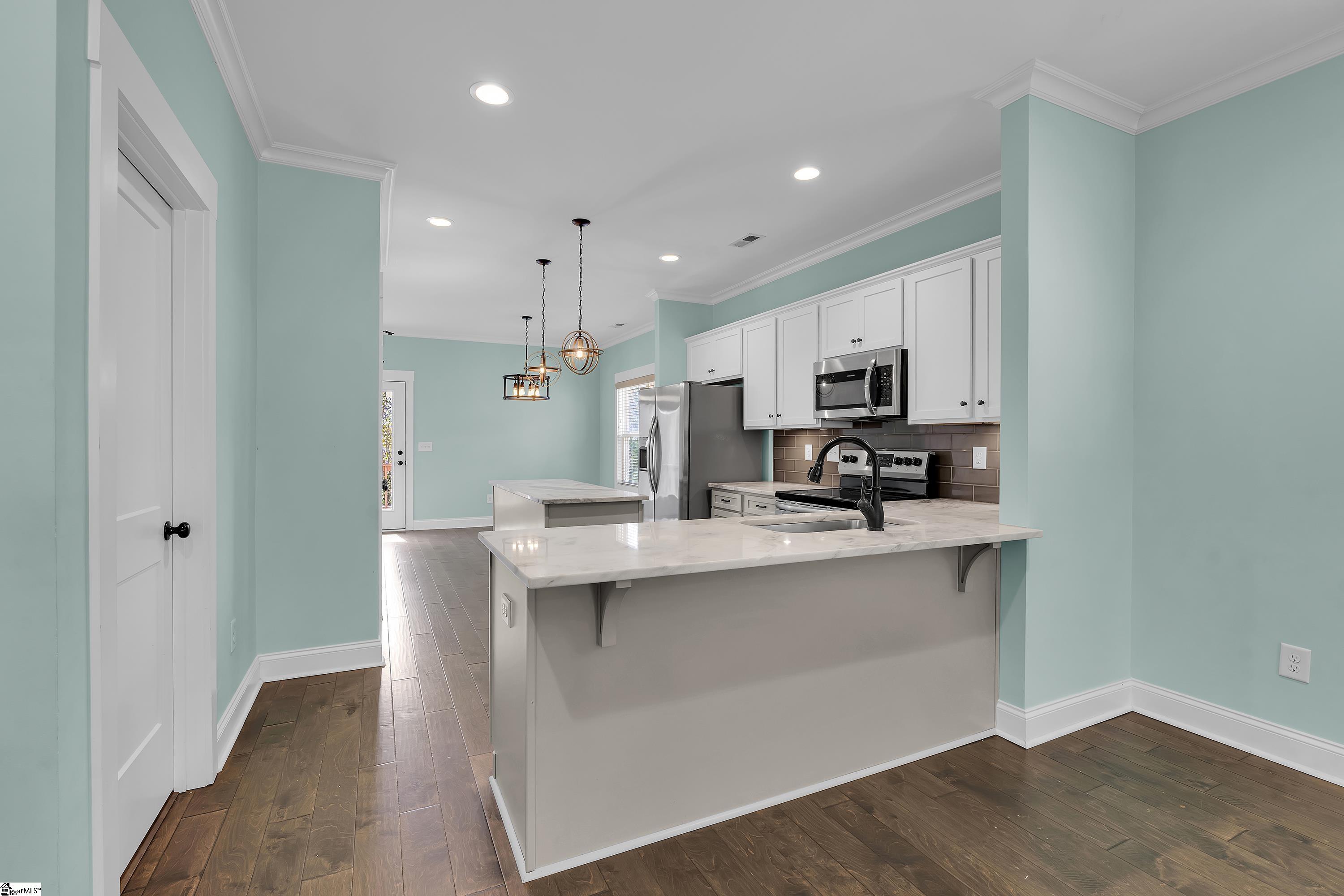 Some homes just put you in the middle of everything and that’s exactly what 27 Burgess Ave delivers. Tucked into one of Greenville’s most connected pockets, you’re minutes from the energy of Downtown Greenville, the trails of Paris Mountain, the charm of Travelers Rest, and the tree-lined streets surrounding Furman University. Whatever your version of a great weekend looks like, it starts right outside your front door. Built by Renaissance Custom Homes, one of the most respected names in Greenville’s local building community, the craftsmanship here is the kind you notice the moment you pull up. A covered front porch framed by thoughtful landscaping welcomes you home every single day, and sets the tone for everything inside. Step through the door and the space opens up in all the right ways. Nine-foot ceilings, rich engineered hardwood floors, and an open-concept layout create a home that feels both elevated and effortlessly livable, whether you’re hosting a dinner party or just enjoying a quiet evening in. The kitchen is where it all comes together: marble style granite countertops, stainless steel appliances, and solid maple soft-close cabinetry that’s as beautiful as it is functional. This is a space that actually makes you want to cook. The primary suite is your retreat at the end of the day with a walk-in closet, dual vanities, and a spa-like tiled walk-in shower that feels far more like a luxury hotel than a home. Two additional bedrooms offer flexibility for guests, a home office, or whatever your life calls for right now. A dedicated walk-in laundry and storage room keeps everything organized and out of sight. Out back, the flat, fully fenced yard is a blank canvas for the life you want to live, morning coffee on a quiet Saturday, summer barbecues with your favorite people, a garden, a firepit, a dog. The space is ready for all of it. This is Greenville living at its most connected, most considered, and most comfortable.