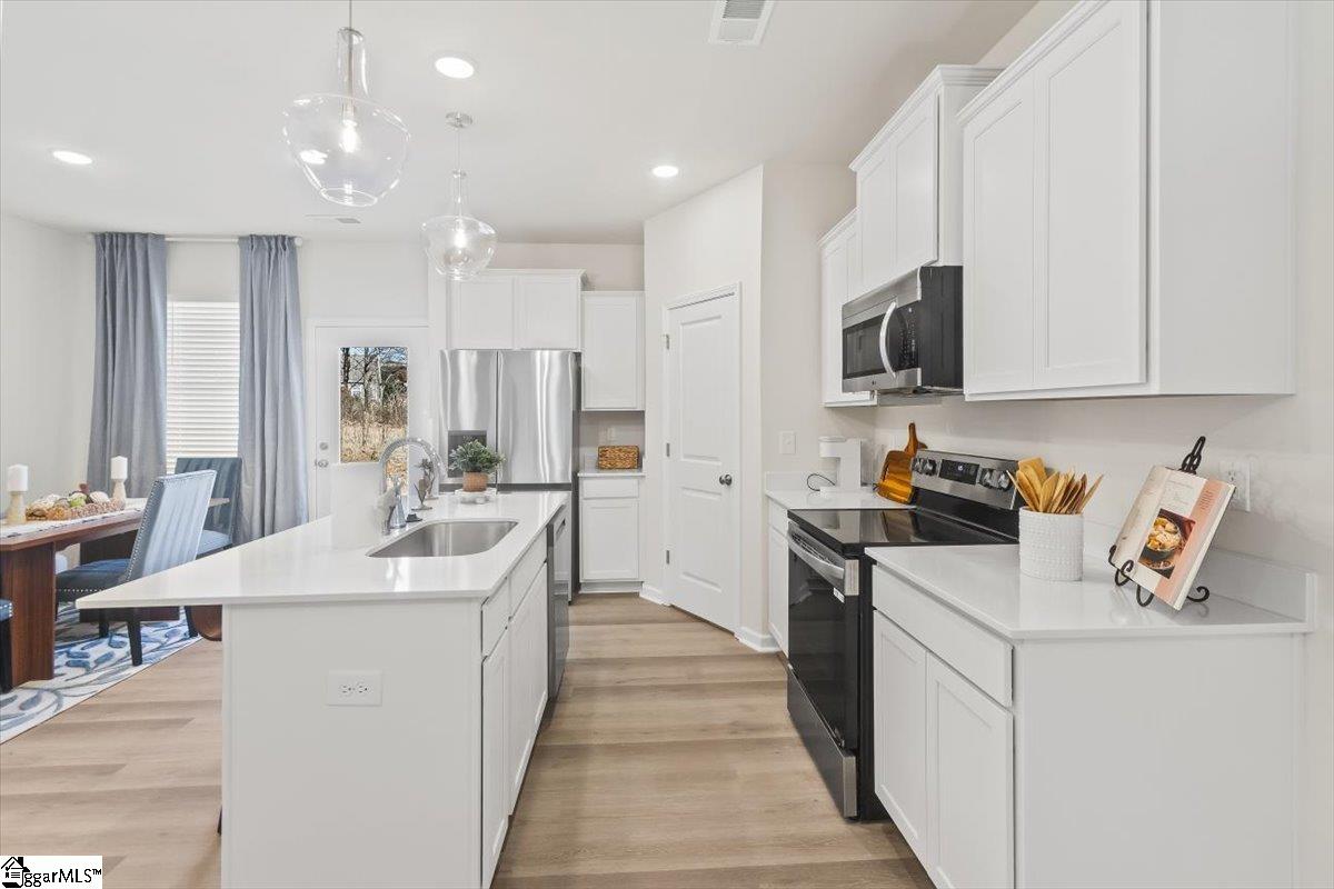 Welcome to Cottage Corners – Your Perfect Blend of Comfort & Convenience! Discover this beautiful 2-story END UNIT luxury townhome in the charming Cottage Corners community. Designed with an open-concept floor plan, this home offers 3 spacious bedrooms, 2.5 bathrooms, and bright living areas that make everyday living both comfortable and stylish. The heart of the home is the chef-inspired kitchen, featuring quartz countertops, a center island for gatherings, and plenty of cabinet space. Enjoy cooking and entertaining in a space that flows seamlessly into the dining and living areas, highlighted by luxury plank flooring throughout the main level. Step outside to your private rear patio, complete with side privacy fencing – perfect for morning coffee, summer grilling, or relaxing evenings. The primary suite is a true retreat, offering a spa-like bath with dual vanities, glass shower, and a generous walk-in closet with space for everything (yes, even a king-sized bed and multiple dressers!). Additional features include: Stone & vinyl exteriors for timeless curb appeal Hard surface flooring throughout main living spaces Convenient location off Old Rutherford Rd, close to shopping, dining, schools, and major highways for easy commuting. Cottage Corners combines modern style with everyday convenience in a warm, welcoming neighborhood. Don’t miss the chance to make this beautiful townhome your new home – schedule your tour today!