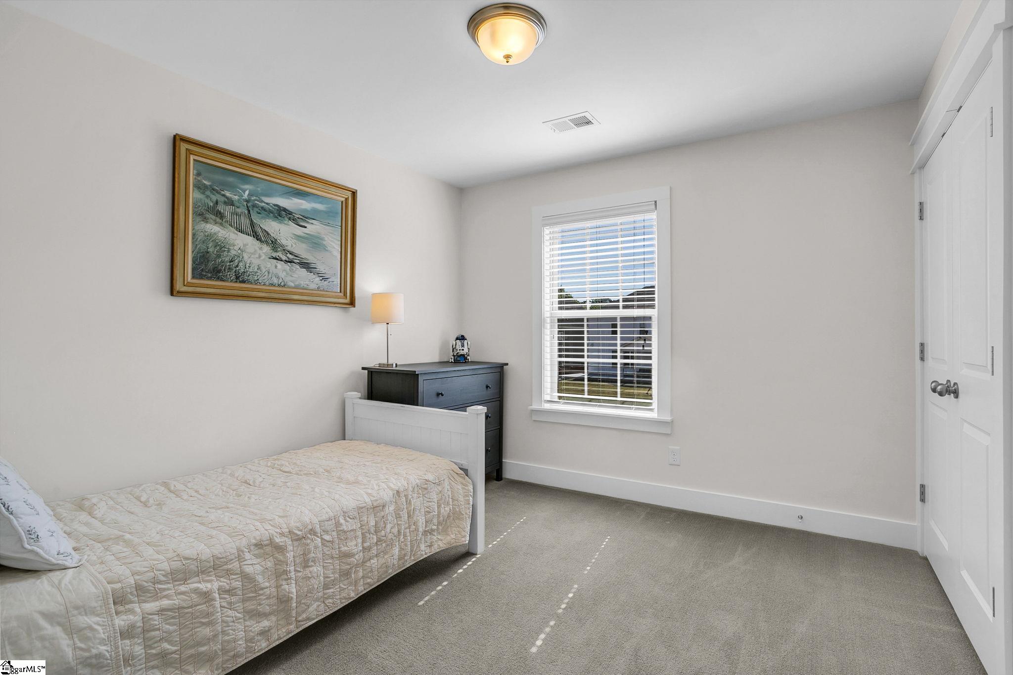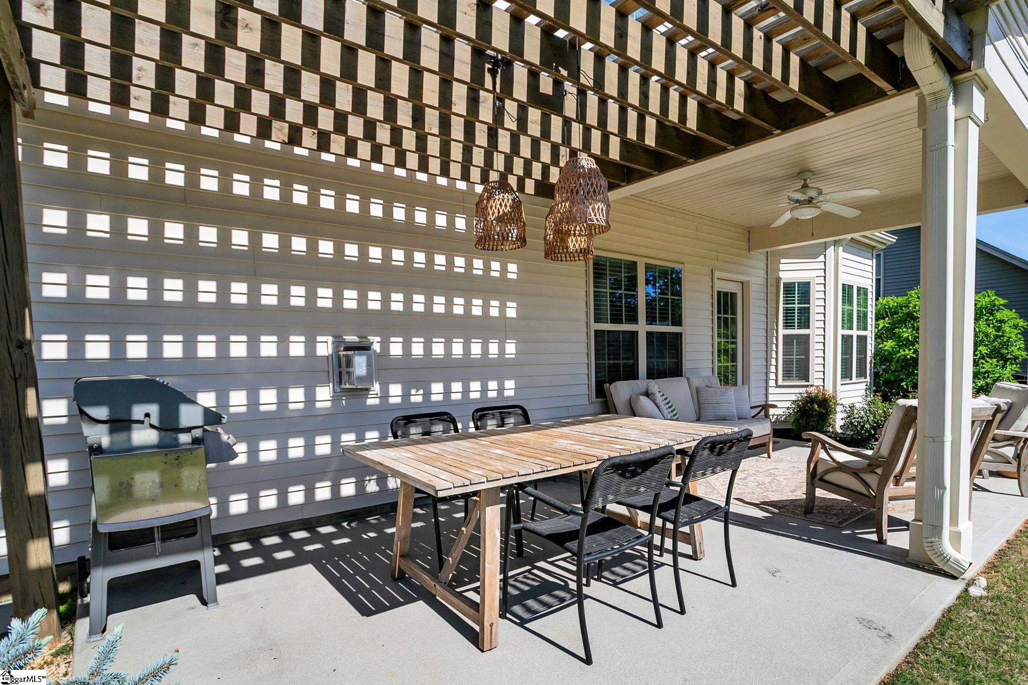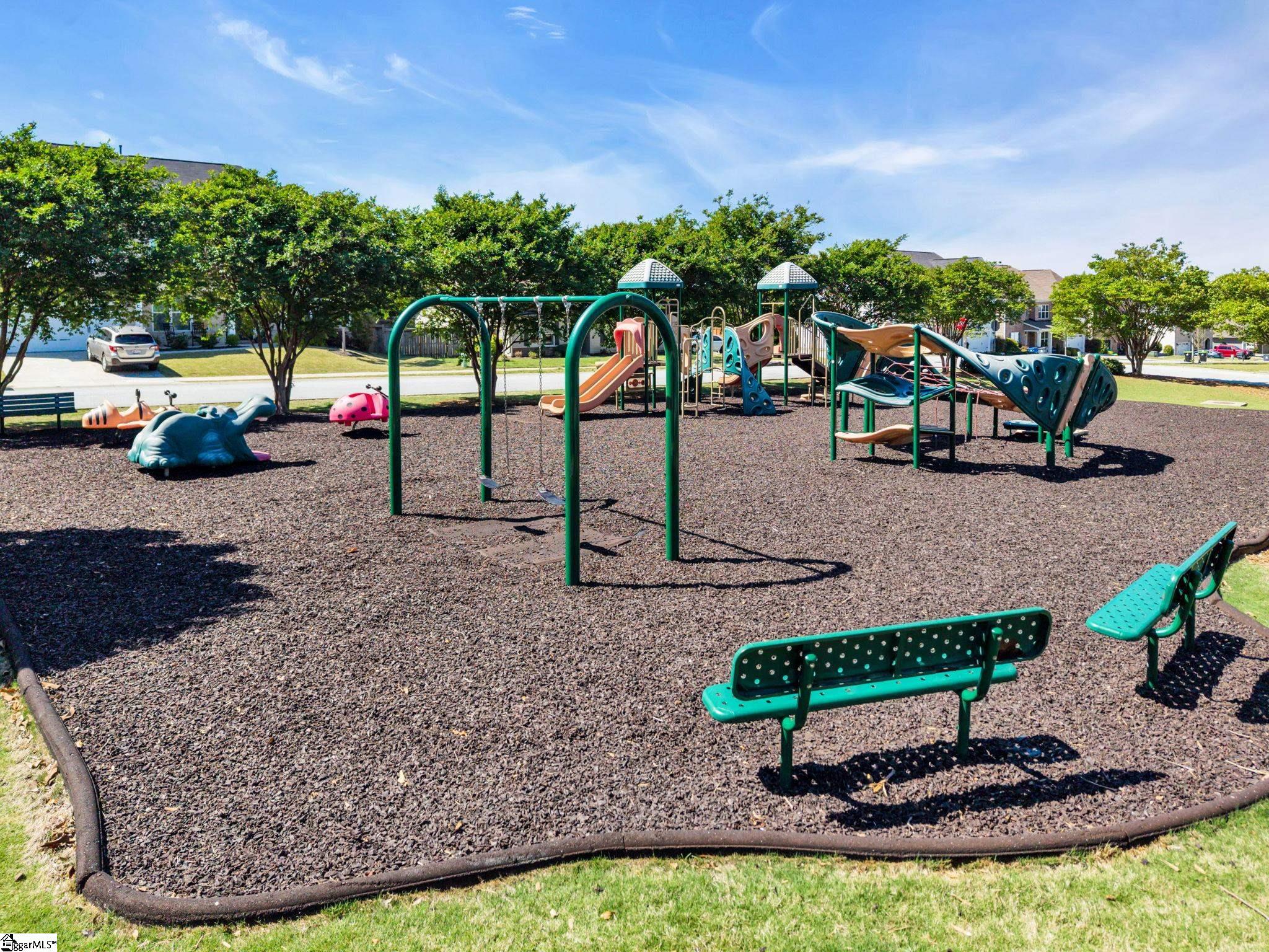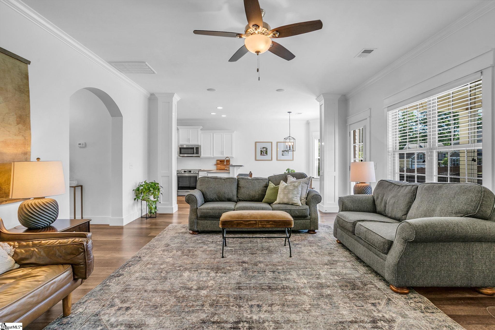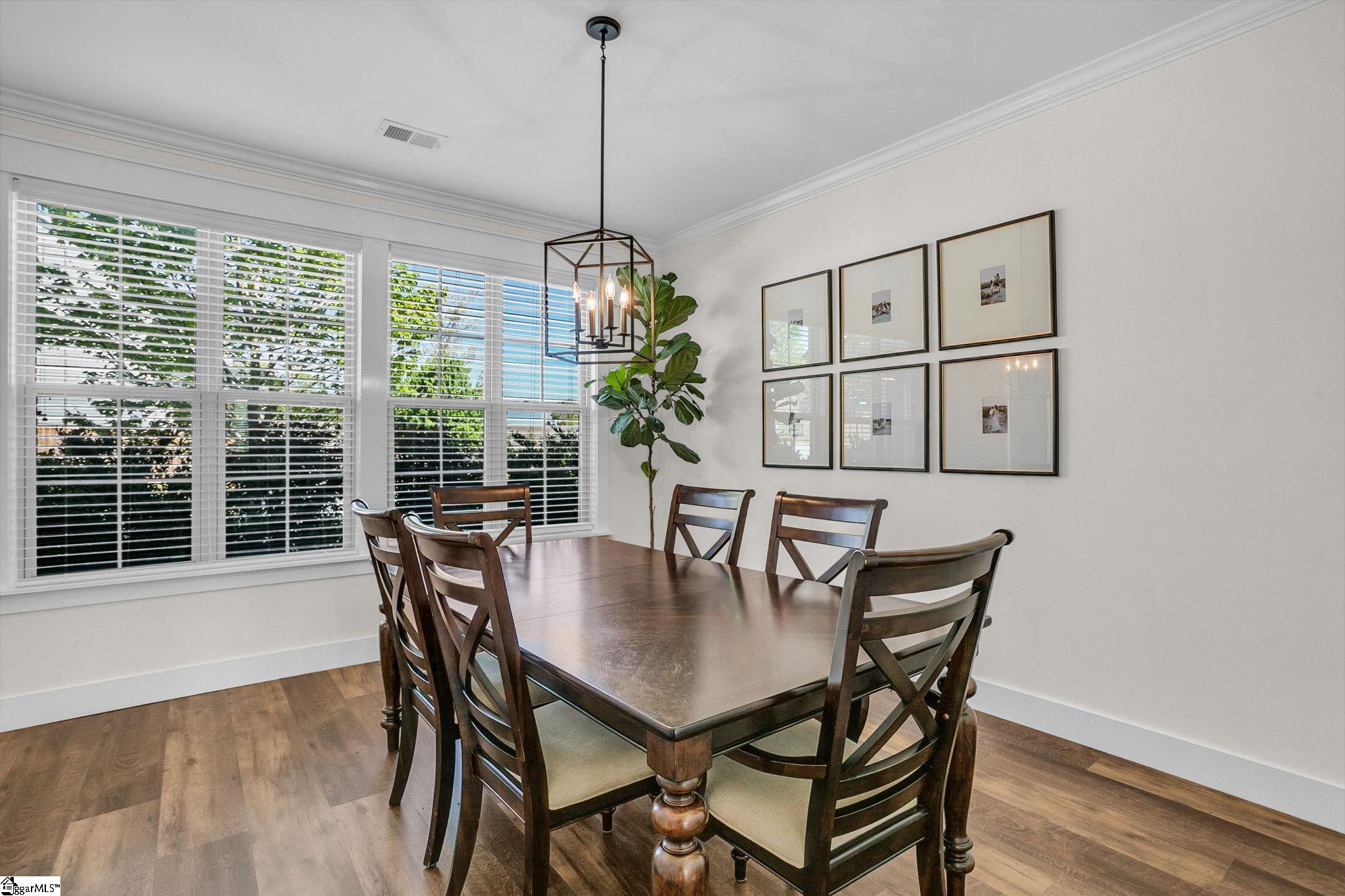 Welcome to this beautifully upgraded and thoughtfully designed home, where modern finishes, timeless craftsmanship, and functional living come together seamlessly. From the moment you enter, you’re greeted by elegant arched doorways, soaring 9’ smooth ceilings, and an abundance of natural light streaming through energy-efficient windows, creating a bright and inviting atmosphere. The main level features a desirable open-concept layout, effortlessly connecting the kitchen, breakfast area, and great room—perfect for both everyday living and entertaining. High-tier Coretec flooring flows throughout the main level, complemented by custom craftsman trim, crown molding, and a stunning upgraded wood staircase accented by Newel railings. The kitchen is a true standout with an abundance of professionally refinished white cabinetry accented by a tile backsplash, quartz countertops, and stainless appliances. The breakfast area adjoins the kitchen with windows overlooking the backyard and don’t overlook the pantry! A convenient ensuite on the main level provides the perfect space for guests or anyone who prefers to avoid stairs. Upstairs, the thoughtfully designed layout continues with the primary suite, three generously sized secondary bedrooms, a full hall bath, a spacious laundry room, and a versatile flex room. A charming hallway nook offers the perfect spot for a centralized study or computer area while the flex room provides endless possibilities—ideal as a playroom, home office, media room, or fitness space. The oversized primary suite is a true retreat, featuring a trey ceiling and a luxurious ensuite bath complete with a quartz dual-sink vanity, garden tub, separate shower, and a spacious walk-in closet. For your outdoor enjoyment, step outside to enjoy an extended covered back patio overlooking a lush, professionally landscaped backyard. Designed for both beauty and ease, the outdoor space includes a custom pergola, garden boxes, and a rose arbor, along with a variety of hydrangeas, roses, and camellias all with low maintenance in mind. The fully fenced yard and playground add to the home’s versatility and appeal. Additional highlights include wood blinds throughout, a half bath, side attic storage off the primary suite, hanging shelving in garage, and a whole-home air purifier for enhanced comfort and air quality. All of this located in the lively Copper Creek community where residents enjoy sidewalks, street lights, a community clubhouse and pool along with an extensive playground. Minutes from thriving downtown Simpsonville, Heritage Park, I-385, Woodruff Road Shopping and so much more, this home truly offers the perfect blend of location, style, space, and thoughtful upgrades—making it a must-see for today’s discerning buyer.
