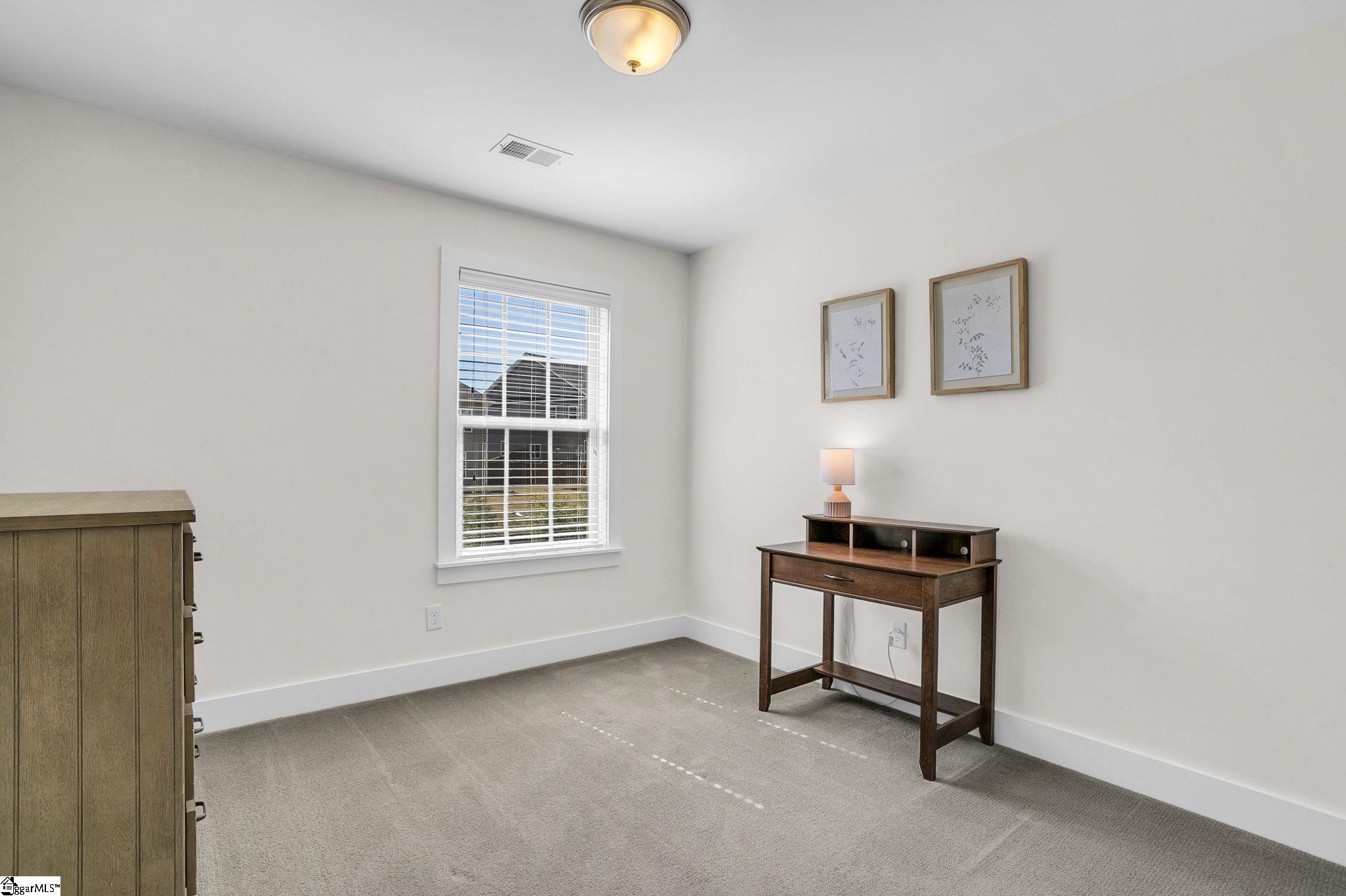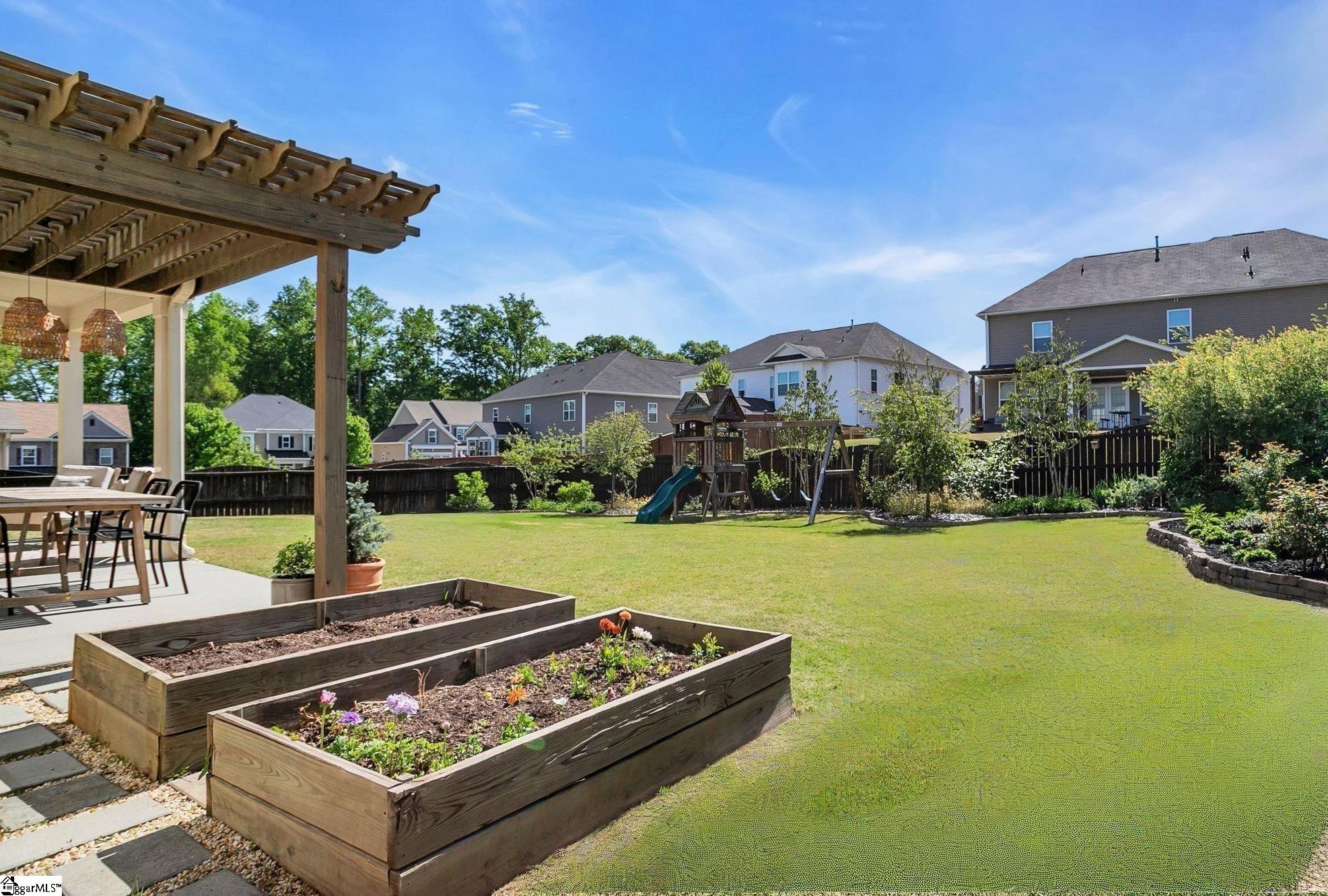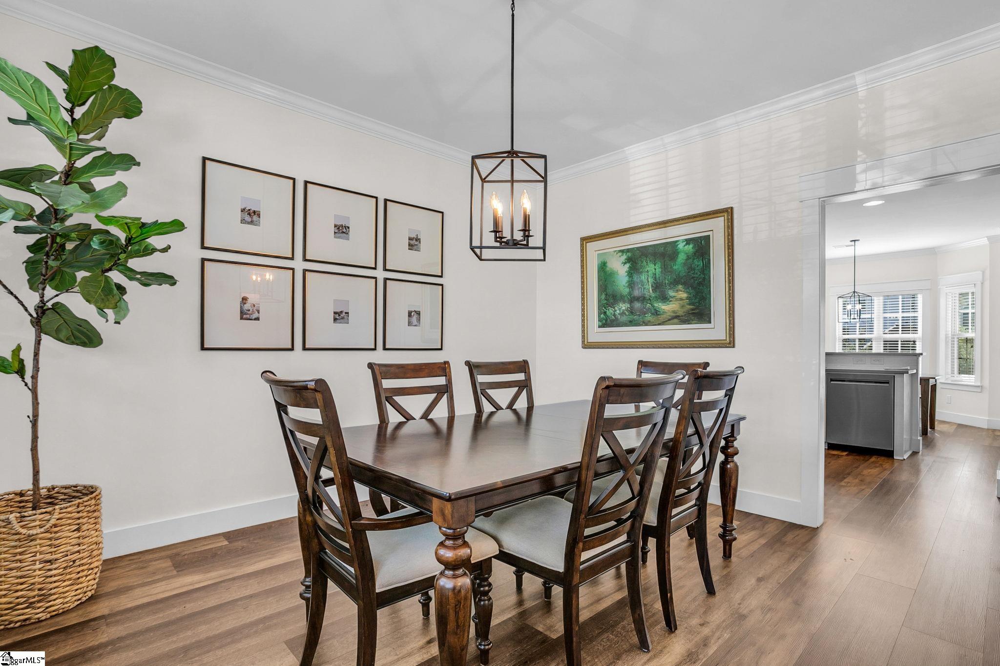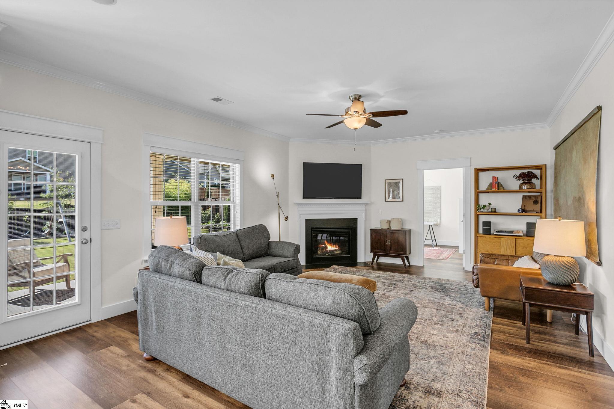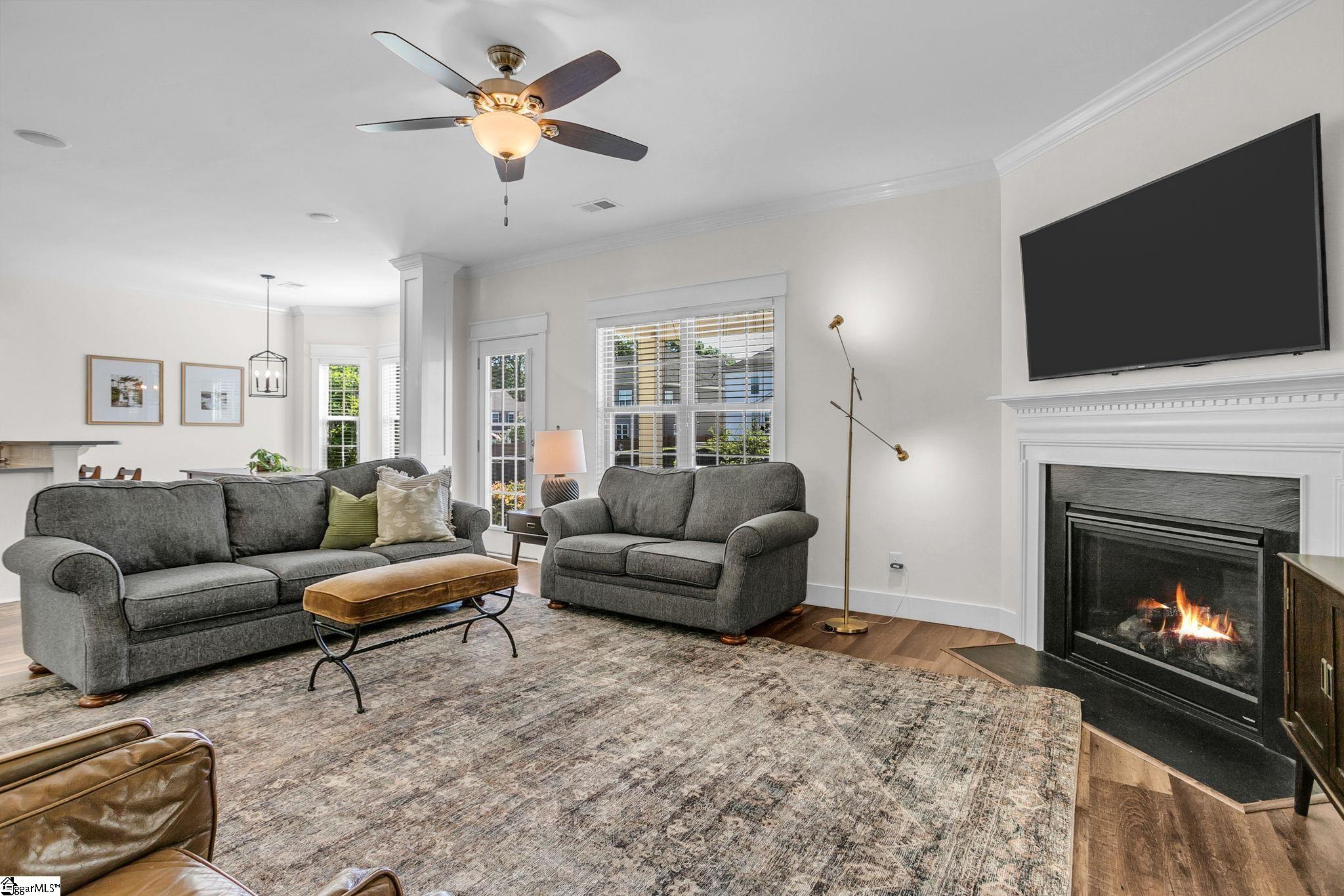 Welcome to this beautifully upgraded and thoughtfully designed home, where modern finishes, timeless craftsmanship, and functional living come together seamlessly. From the moment you enter, you’re greeted by elegant arched doorways, soaring 9’ smooth ceilings, and an abundance of natural light streaming through energy-efficient windows, creating a bright and inviting atmosphere. The main level features a desirable open-concept layout, effortlessly connecting the kitchen, breakfast area, and great room—perfect for both everyday living and entertaining. High-tier Coretec flooring flows throughout the main level, complemented by custom craftsman trim, crown molding, and a stunning upgraded wood staircase accented by Newel railings. The kitchen is a true standout with an abundance of professionally refinished white cabinetry accented by a tile backsplash, quartz countertops, and stainless appliances. The breakfast area adjoins the kitchen with windows overlooking the backyard and don’t overlook the pantry! A convenient ensuite on the main level provides the perfect space for guests or anyone who prefers to avoid stairs. Upstairs, the thoughtfully designed layout continues with the primary suite, three generously sized secondary bedrooms, a full hall bath, a spacious laundry room, and a versatile flex room. A charming hallway nook offers the perfect spot for a centralized study or computer area while the flex room provides endless possibilities—ideal as a playroom, home office, media room, or fitness space. The oversized primary suite is a true retreat, featuring a trey ceiling and a luxurious ensuite bath complete with a quartz dual-sink vanity, garden tub, separate shower, and a spacious walk-in closet. For your outdoor enjoyment, step outside to enjoy an extended covered back patio overlooking a lush, professionally landscaped backyard. Designed for both beauty and ease, the outdoor space includes a custom pergola, garden boxes, and a rose arbor, along with a variety of hydrangeas, roses, and camellias all with low maintenance in mind. The fully fenced yard and playground add to the home’s versatility and appeal. Additional highlights include wood blinds throughout, a half bath, side attic storage off the primary suite, hanging shelving in garage, and a whole-home air purifier for enhanced comfort and air quality. All of this located in the lively Copper Creek community where residents enjoy sidewalks, street lights, a community clubhouse and pool along with an extensive playground. Minutes from thriving downtown Simpsonville, Heritage Park, I-385, Woodruff Road Shopping and so much more, this home truly offers the perfect blend of location, style, space, and thoughtful upgrades—making it a must-see for today’s discerning buyer.