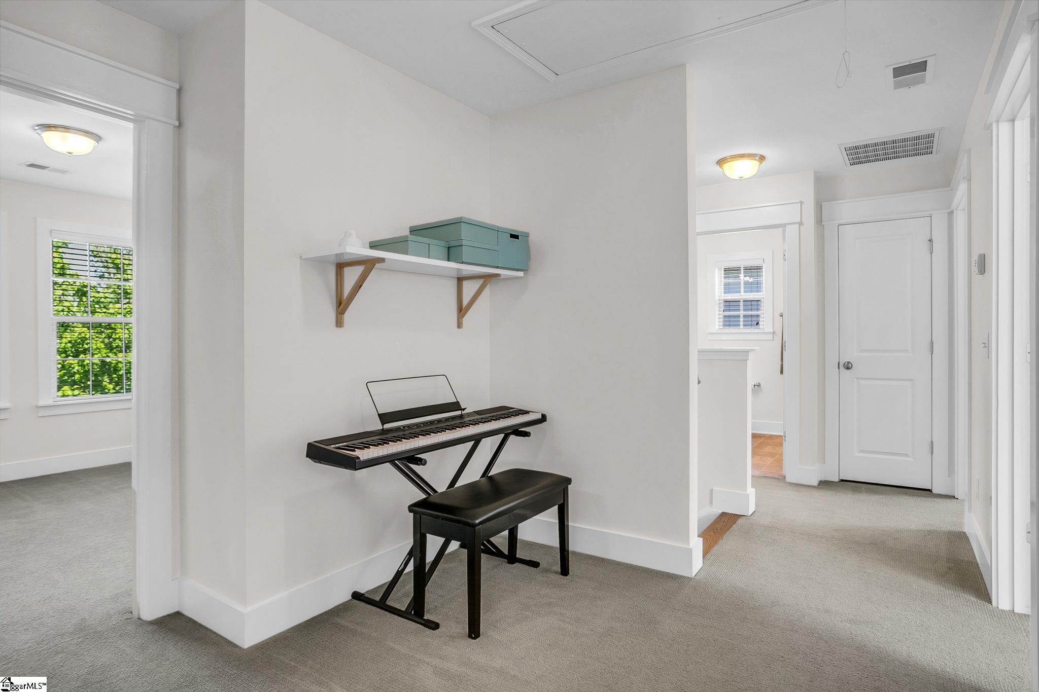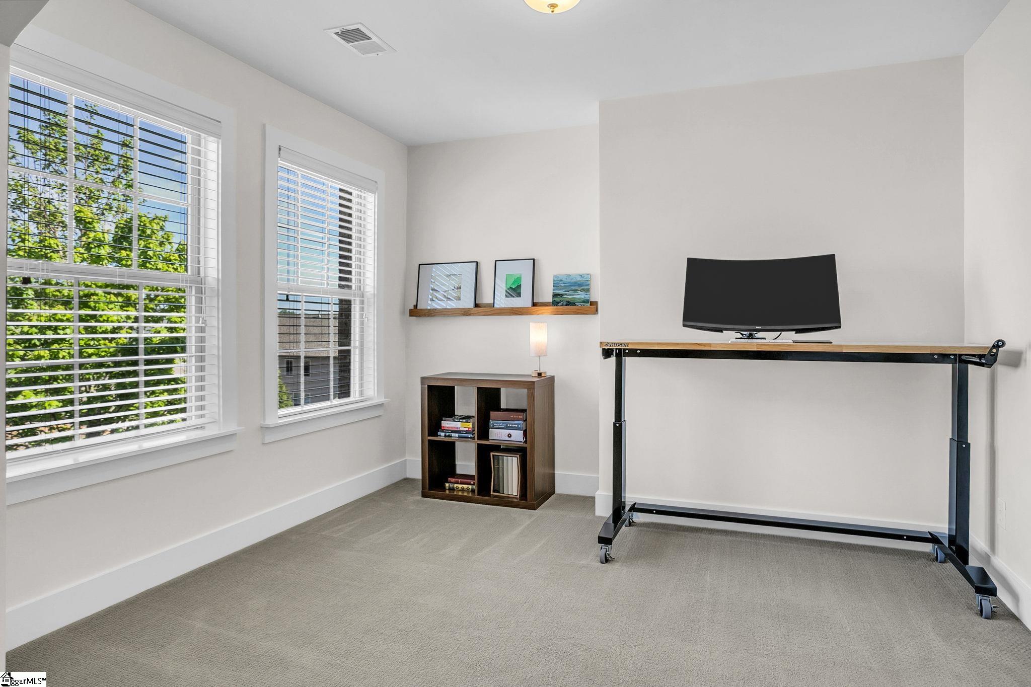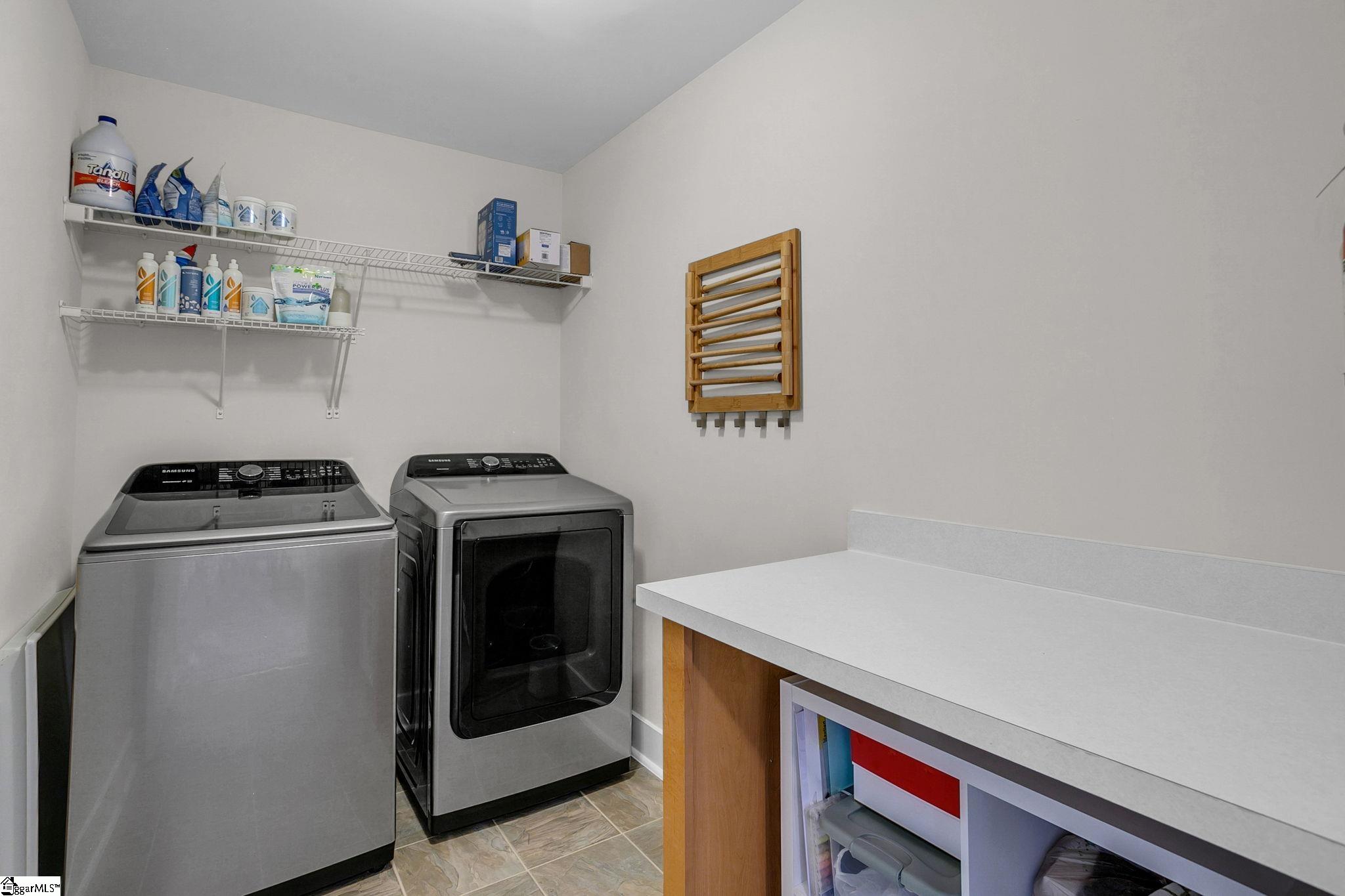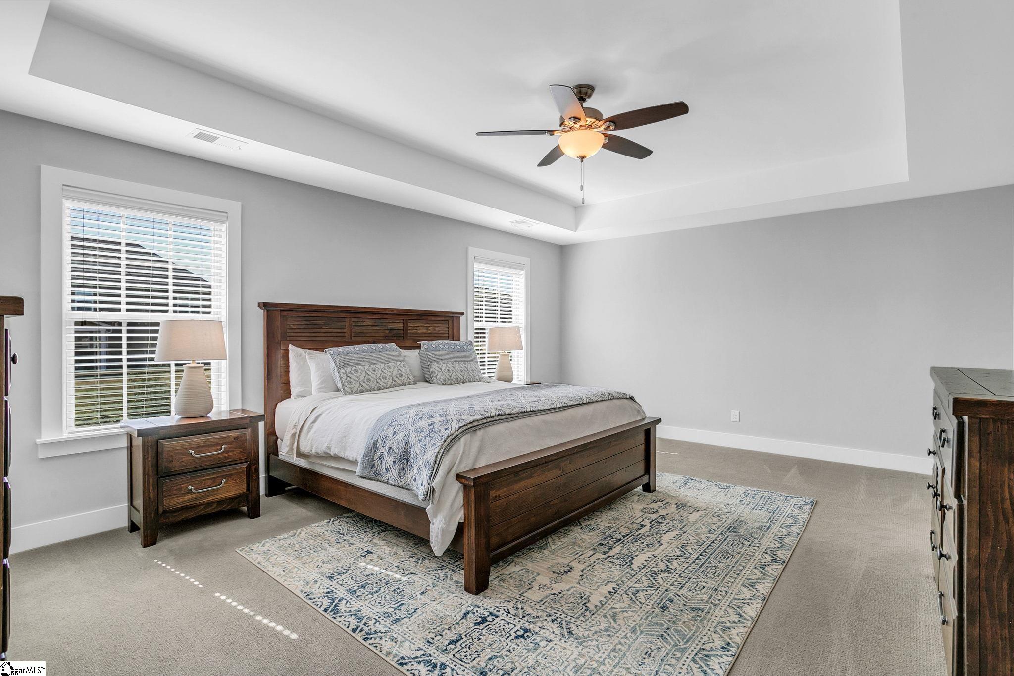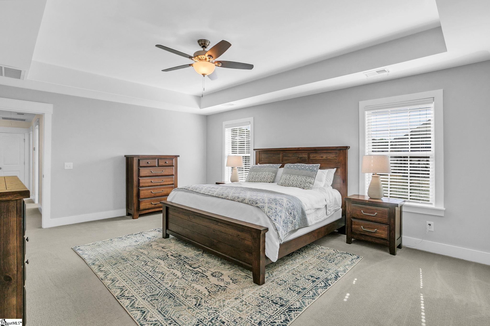 Welcome to this beautifully upgraded and thoughtfully designed home, where modern finishes, timeless craftsmanship, and functional living come together seamlessly. From the moment you enter, you’re greeted by elegant arched doorways, soaring 9’ smooth ceilings, and an abundance of natural light streaming through energy-efficient windows, creating a bright and inviting atmosphere. The main level features a desirable open-concept layout, effortlessly connecting the kitchen, breakfast area, and great room—perfect for both everyday living and entertaining. High-tier Coretec flooring flows throughout the main level, complemented by custom craftsman trim, crown molding, and a stunning upgraded wood staircase accented by Newel railings. The kitchen is a true standout with an abundance of professionally refinished white cabinetry accented by a tile backsplash, quartz countertops, and stainless appliances. The breakfast area adjoins the kitchen with windows overlooking the backyard and don’t overlook the pantry! A convenient ensuite on the main level provides the perfect space for guests or anyone who prefers to avoid stairs. Upstairs, the thoughtfully designed layout continues with the primary suite, three generously sized secondary bedrooms, a full hall bath, a spacious laundry room, and a versatile flex room. A charming hallway nook offers the perfect spot for a centralized study or computer area while the flex room provides endless possibilities—ideal as a playroom, home office, media room, or fitness space. The oversized primary suite is a true retreat, featuring a trey ceiling and a luxurious ensuite bath complete with a quartz dual-sink vanity, garden tub, separate shower, and a spacious walk-in closet. For your outdoor enjoyment, step outside to enjoy an extended covered back patio overlooking a lush, professionally landscaped backyard. Designed for both beauty and ease, the outdoor space includes a custom pergola, garden boxes, and a rose arbor, along with a variety of hydrangeas, roses, and camellias all with low maintenance in mind. The fully fenced yard and playground add to the home’s versatility and appeal. Additional highlights include wood blinds throughout, a half bath, side attic storage off the primary suite, hanging shelving in garage, and a whole-home air purifier for enhanced comfort and air quality. All of this located in the lively Copper Creek community where residents enjoy sidewalks, street lights, a community clubhouse and pool along with an extensive playground. Minutes from thriving downtown Simpsonville, Heritage Park, I-385, Woodruff Road Shopping and so much more, this home truly offers the perfect blend of location, style, space, and thoughtful upgrades—making it a must-see for today’s discerning buyer.