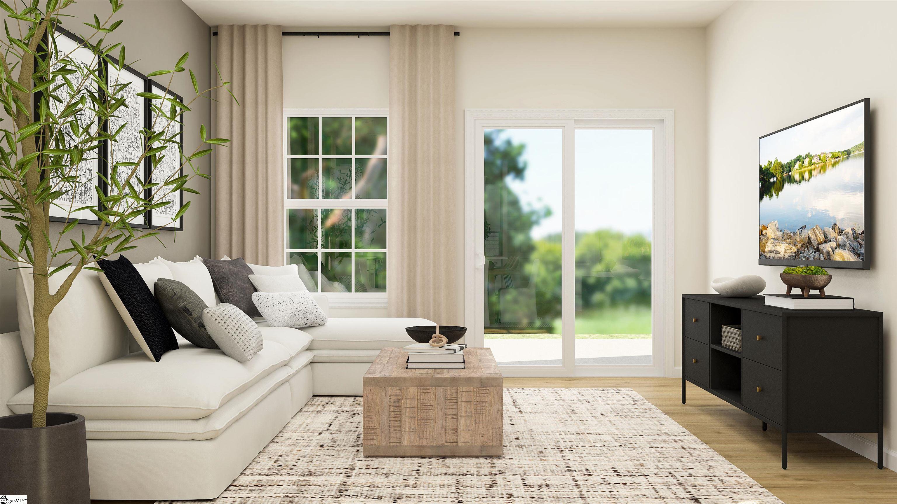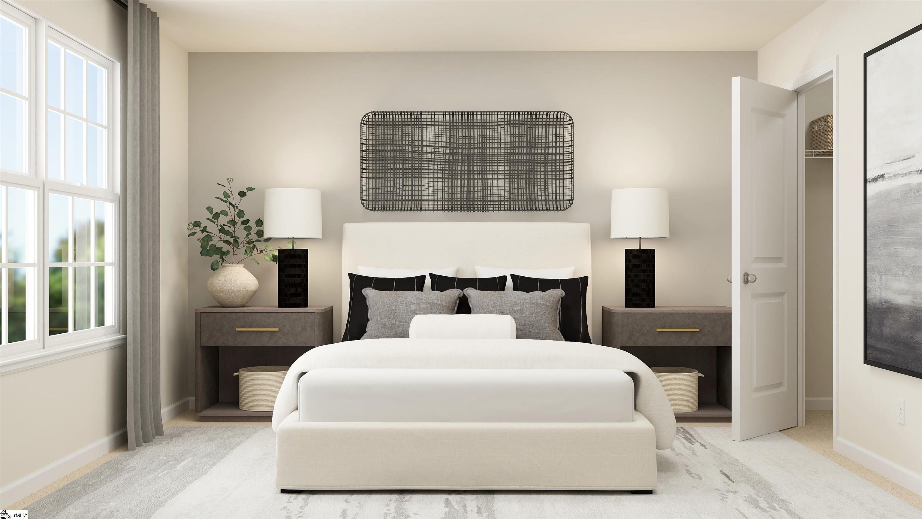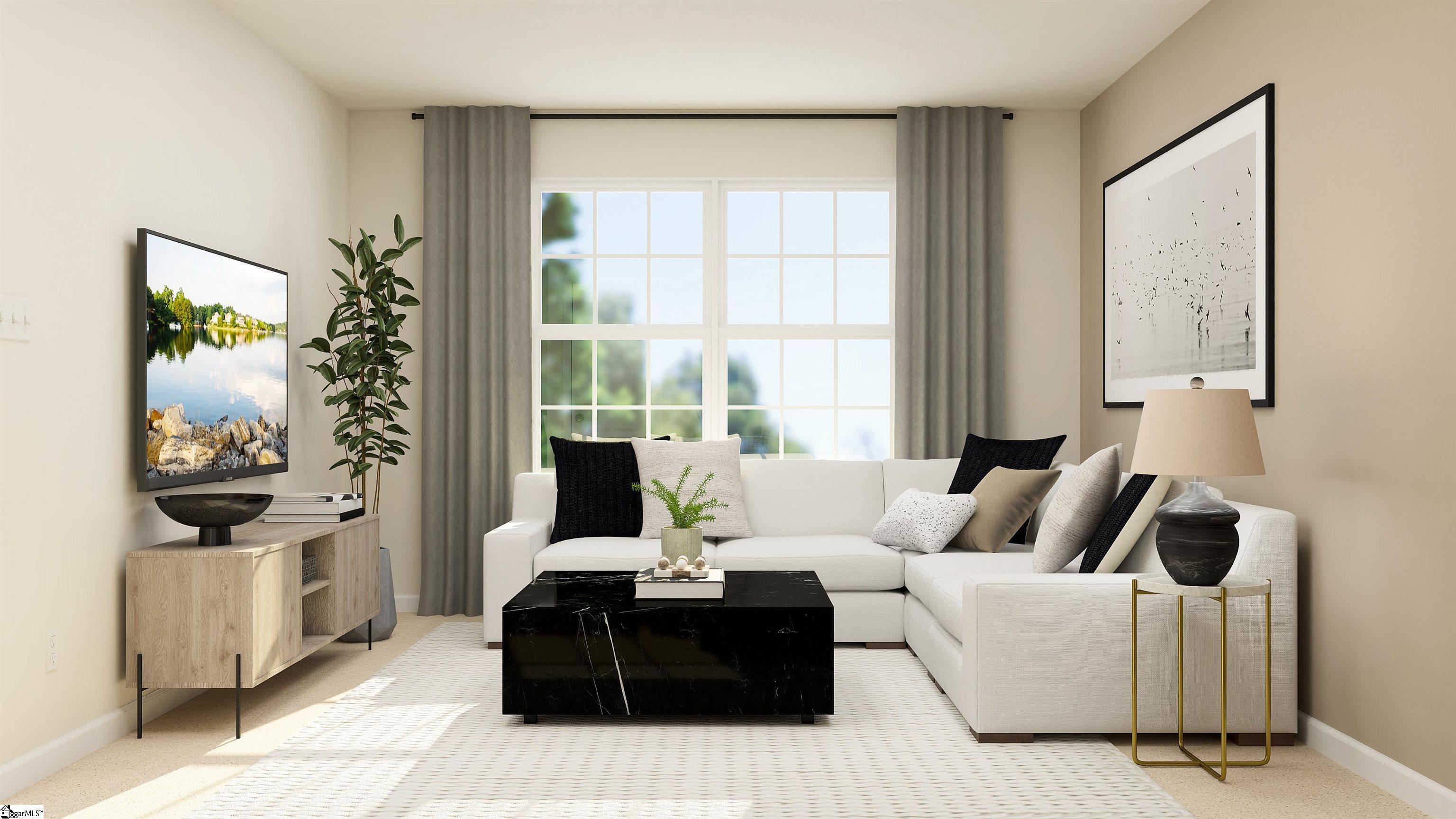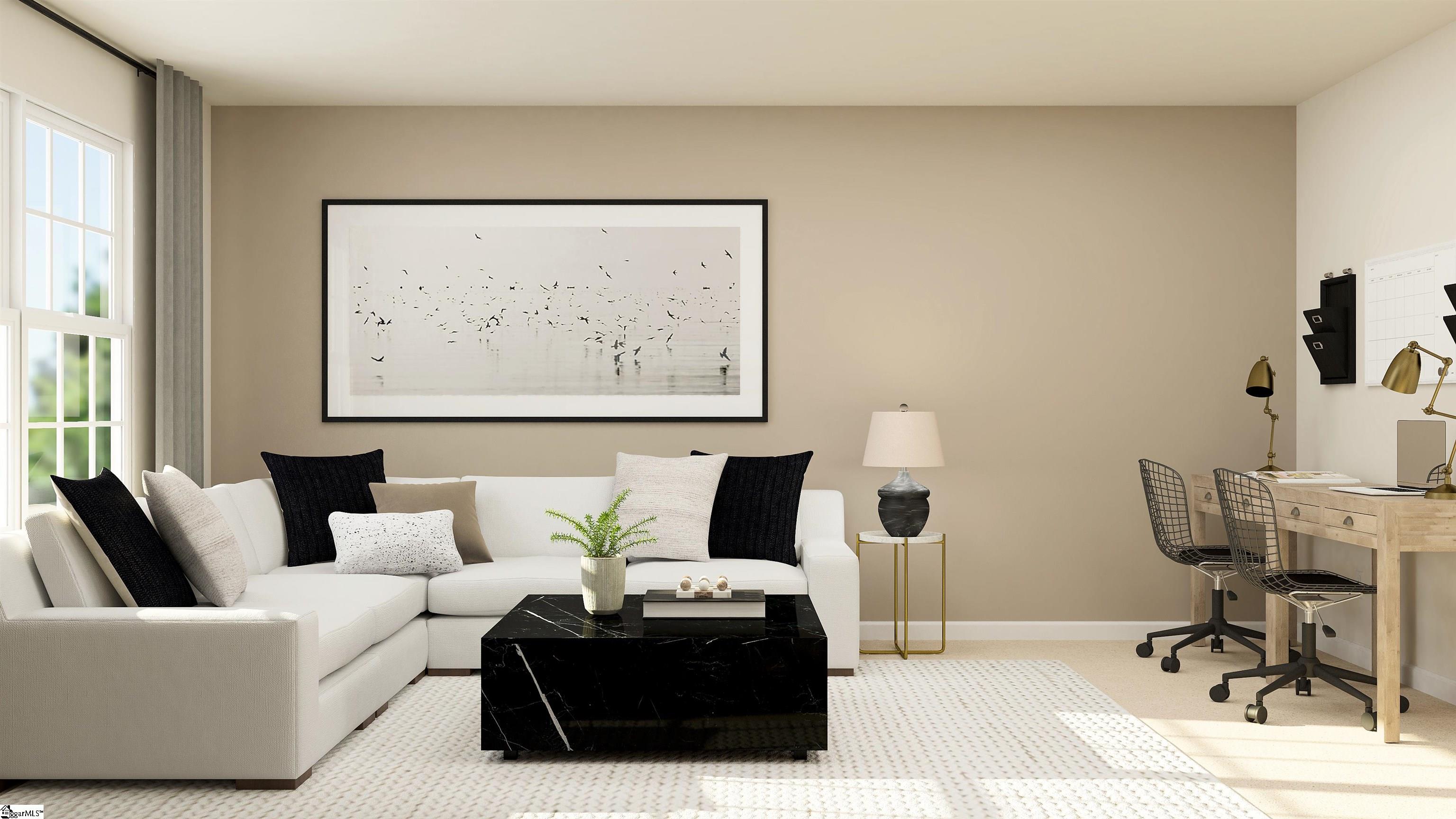 The Edgefield floorplan at Spring Park community in Travelers Rest, South Carolina, offers a thoughtfully designed two-story layout that blends comfort, functionality, and modern living. With approximately 1,931 square feet, it includes three bedrooms, two and a half bathrooms, and a one-car garage. A standout feature is the first-floor owner’s suite, tucked privately at the back of the home with a walk-in closet and en-suite bath. The main level also showcases an open-concept living area that connects the living room, kitchen, dining space, and a rear patio—ideal for entertaining or family gatherings. Upstairs, two secondary bedrooms share the space with a versatile loft that can function as an office, media room, or play area. Located just north of Greenville, the Spring Park community offers easy access to shopping, dining, and outdoor recreation like the Swamp Rabbit Trail, along with neighborhood features such as a dog park, fostering a vibrant and connected lifestyle.