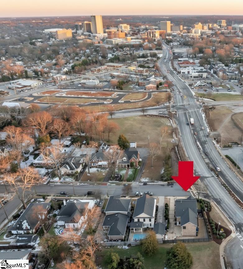 Welcome to 3 James Street, an all brick home on a historic street just a 25 minute walk to Downtown Greenville. Golf cart friendly and approximately a 5 minute ride into the heart of downtown, this location places you minutes from the Swamp Rabbit Trail and Unity Park, offering direct access to miles of green space, dining, shopping, and entertainment. From the covered front porch, enjoy glimpses of the Downtown Greenville skyline and the character of one of the city’s most established neighborhoods. Priced at $875,000, this 4 bedroom, 2.5 bathroom home Plus a dedicated office downstairs delivers space and function rarely found this close to downtown. Inside, hardwood floors, 9 foot ceilings, oversized windows, and custom window treatments create a bright and open main level filled with natural light. The floor plan is designed for real life. A spacious dining room greets as you enter plus an open kitchen with bar seating and room for a table overlooks the side yard covered porch. A flexible room with glass French doors provides the ideal home office or additional living space. The living room features a gas fireplace and flows seamlessly into the kitchen, making everyday living and entertaining effortless. The kitchen is finished with granite countertops, Bosch appliances including a gas range, beautiful cabinetry, generous storage, and a breakfast bar that anchors the space. Upstairs you will find a beautiful primary bedroom plus 3 spacious additional bedrooms, a large hall bath, an oversized laundry room with sink and extra storage, and a private owners suite. The owners bath includes a double vanity, tiled shower with frameless glass surround, soaking tub, and a large walk in closet. Additional features include a tankless water heater, long driveway leading to a two car garage, covered side porch, full irrigation system, and additional yard space with fencing. If proximity, walkability, and lifestyle matter, this North Main location delivers. Bike to the Swamp Rabbit Trail, meet friends at Unity Park, take a golf cart to dinner downtown, and be home in minutes.