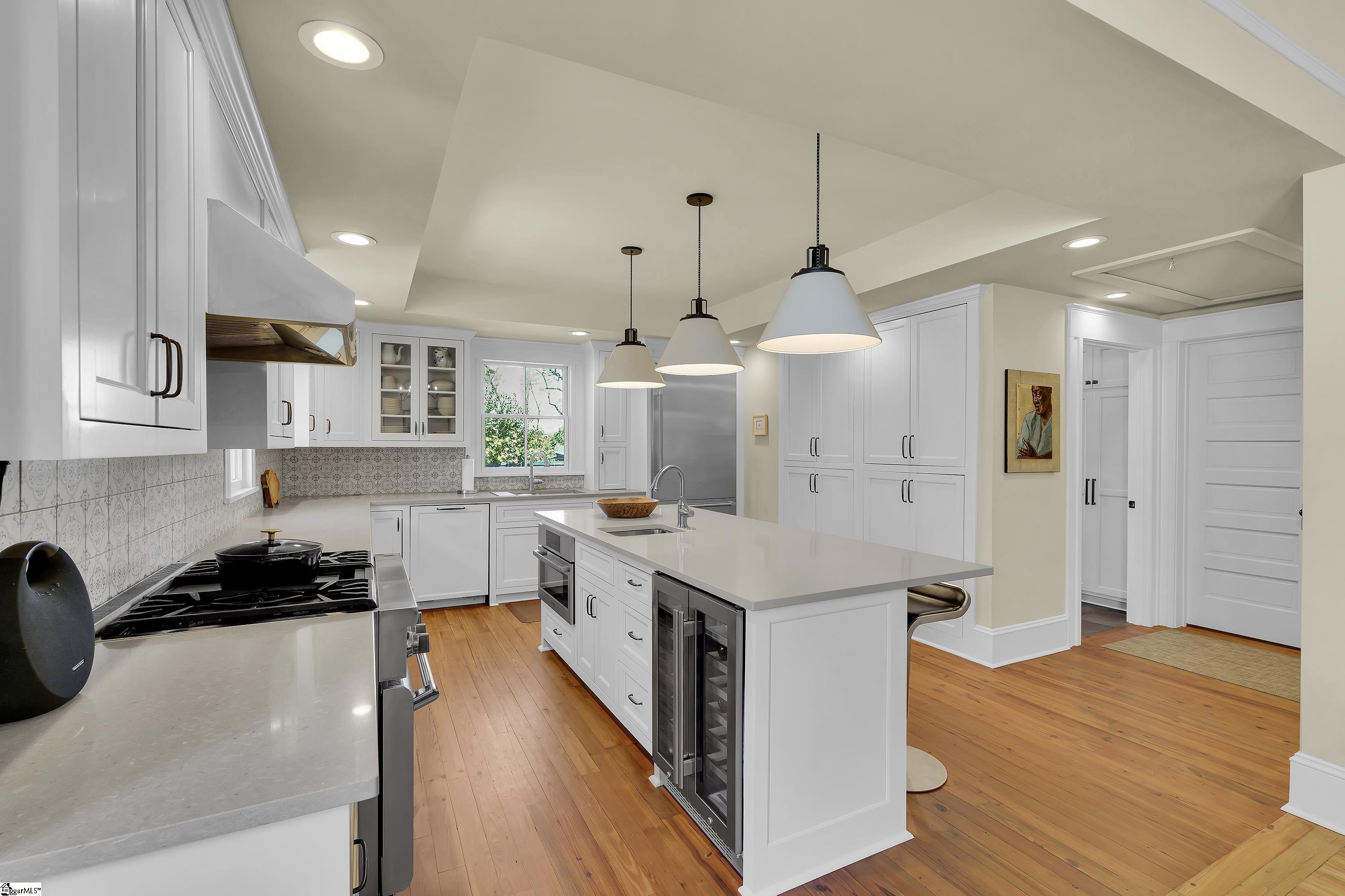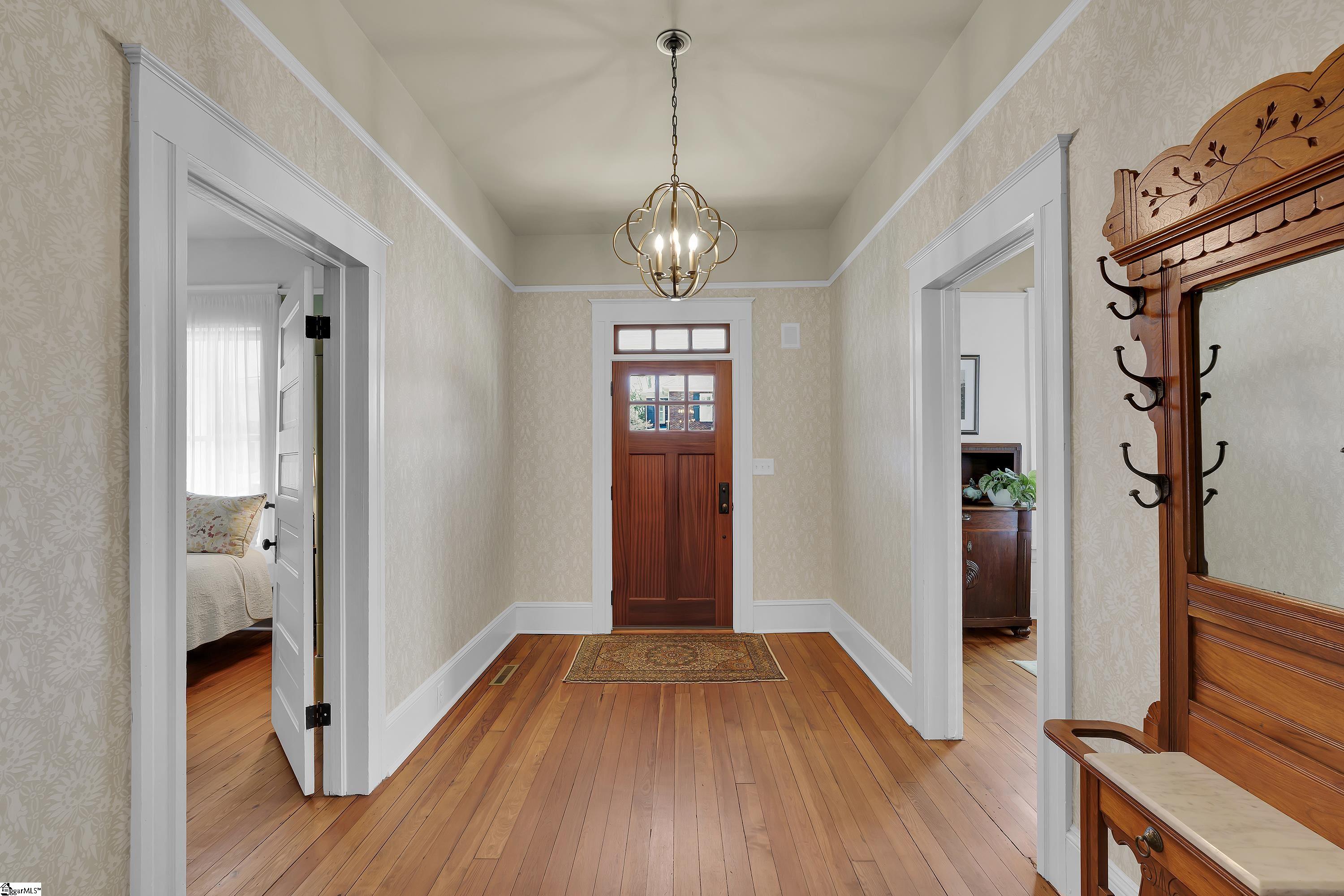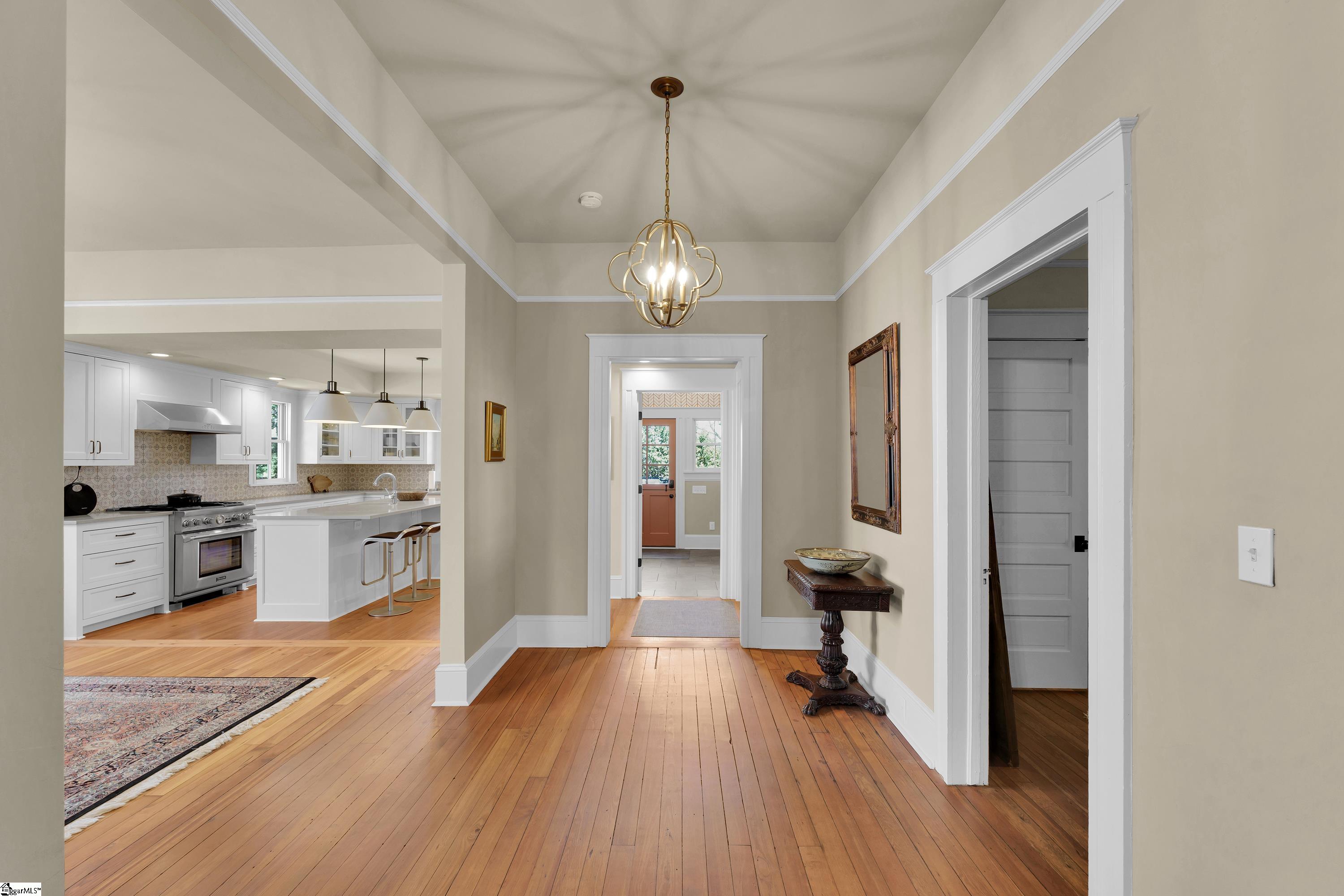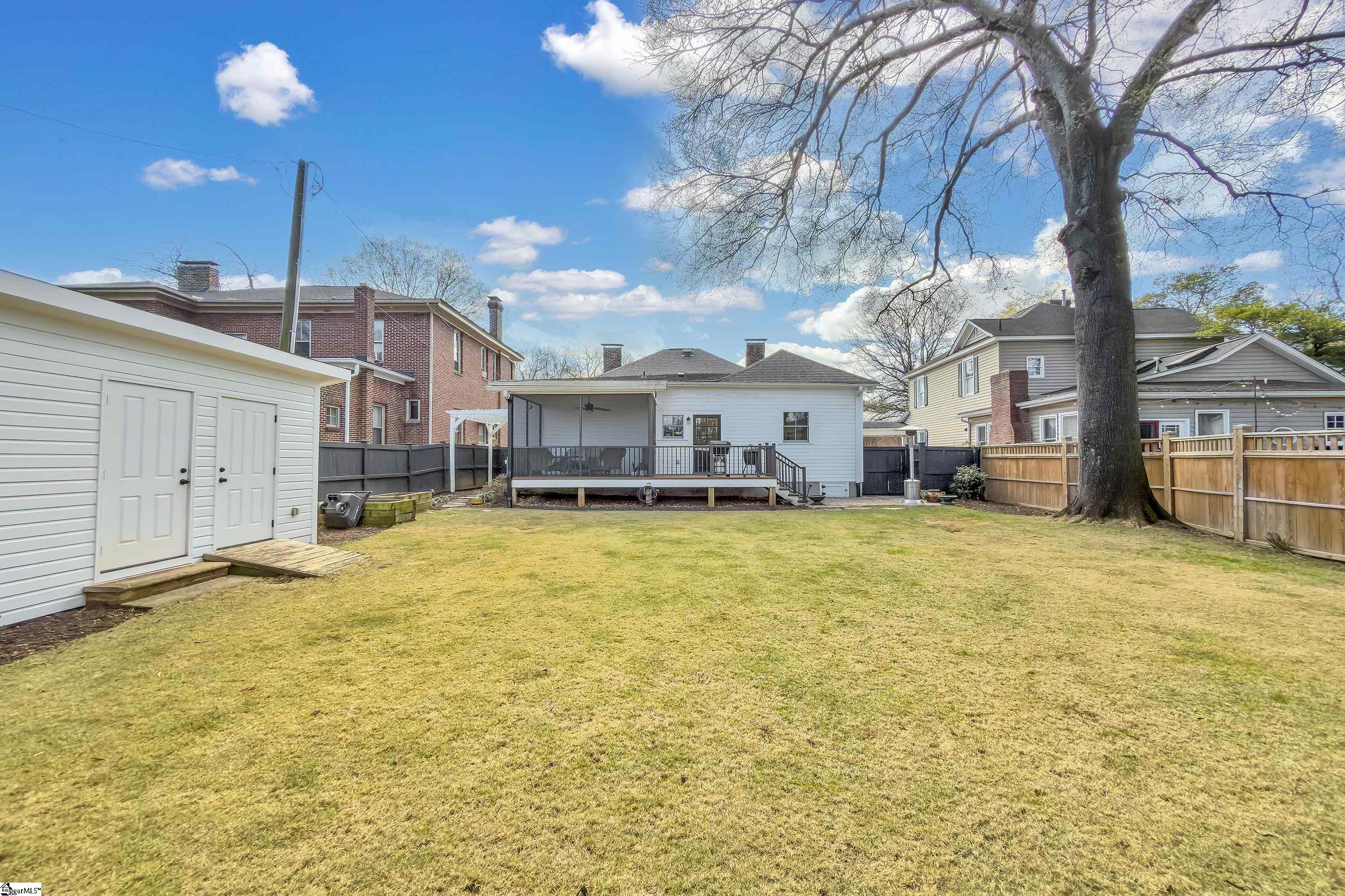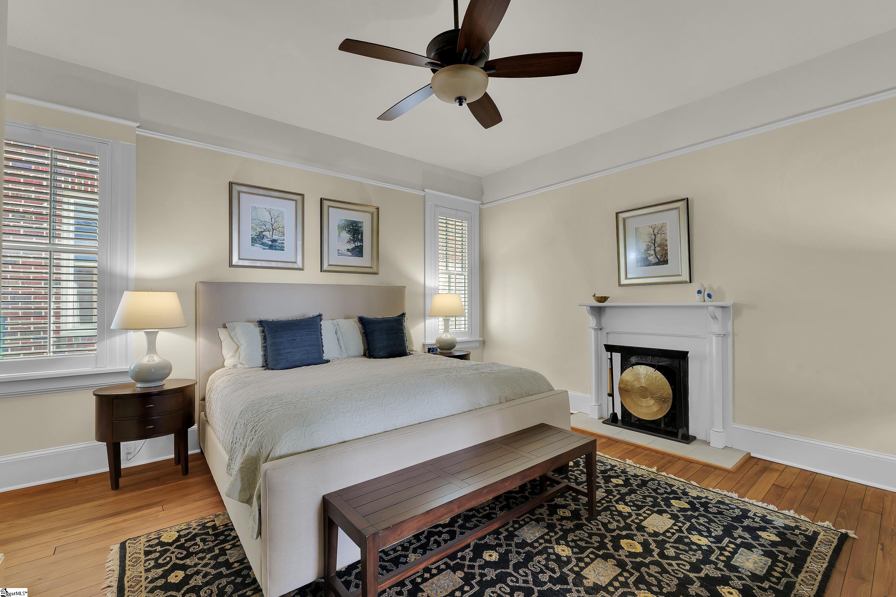 Welcome to 30 Pinckney Street, located in the historic Hampton-Pinckney neighborhood—Greenville’s National Register Historic District—where this beautifully restored 1905 home blends timeless character with modern living. Just a 10-minute walk to Main Street and only minutes to Unity Park, this property provides walkable access to Greenville’s award-winning restaurants, shops, parks, and the Swamp Rabbit Trail. Fully and thoughtfully renovated, this move-in-ready home preserves its historic charm while featuring stylish updates throughout. The beautifully designed kitchen is the heart of the home with custom white cabinetry, Thermador appliances, artesian-stone tile backsplash, oversized island with a prep sink, a built-in speed oven microwave, and a generous wine chiller—perfect for entertaining and everyday living. Original heart-pine floors run throughout the home, complemented by tile in the bathrooms and laundry room. A traditional center hallway floorplan creates a natural flow from room to room, while large, oversized windows fill the home with natural light. Four original fireplaces add character in the living room, dining room, and both bedrooms. The primary suite offers a relaxing retreat with two closets, large vanity with an oversized sink, soaking tub, and a walk-in shower with built-in seat and multiple shower heads. A laundry room with sink and cabinetry adds everyday convenience. Outdoor living is just as inviting, with a welcoming front porch, and an additional screened porch, deck, and patio overlooking the private fenced backyard—ideal for relaxing evenings or entertaining guests. The property also includes a storage shed with electricity and an extra-long paved driveway, providing ample parking. Renovated historic homes in downtown Greenville with this level of character, outdoor living, and walkability rarely come available, making this an incredible opportunity to enjoy modern comfort and timeless character in one of the city’s most sought-after neighborhoods.