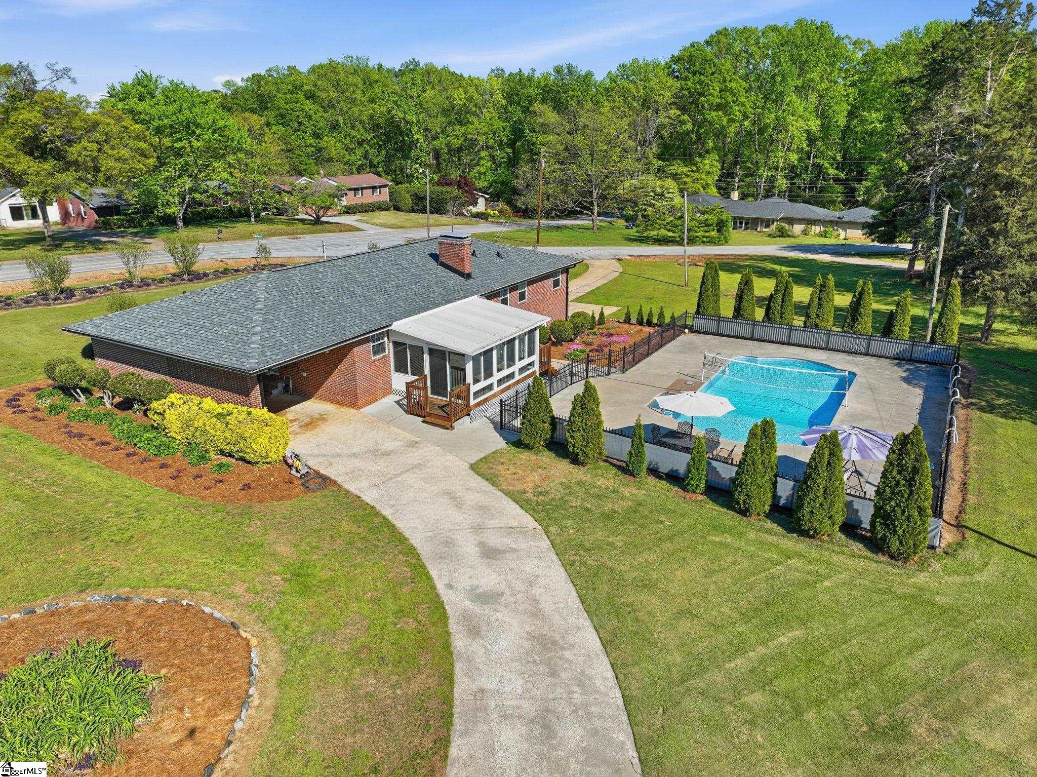 Welcome to this beautifully updated 3-bedroom, 2-bath brick ranch with a walk-out basement, ideally located in the heart of Mauldin, SC. Set on .89 acres with no HOA, this property offers the perfect blend of space, privacy, and flexibility. Step inside to discover a thoughtfully refreshed interior that balances modern updates with timeless charm. The walk-out basement adds valuable additional living space—perfect for a recreation room, home office, or private guest suite. Step outside and experience your own private retreat, featuring a gorgeous swimming pool—perfect for summer fun and entertaining guests. The finished sunroom offers a bright, relaxing space with direct access to the pool area, creating a seamless indoor-outdoor flow. Surrounding the home, you’ll find colorful, breathtaking landscaping that enhances the beauty and serenity of the property. Enjoy the convenience of being just minutes from Main Street, with easy access to shopping, dining, and the lively BridgeWay Station, featuring restaurants, coffee shops, and a welcoming community atmosphere. Quick connections to I-85 and I-385 make commuting effortless. Offering an ideal combination of location, land, and livability, this home is a standout opportunity in one of the area’s fastest-growing communities.