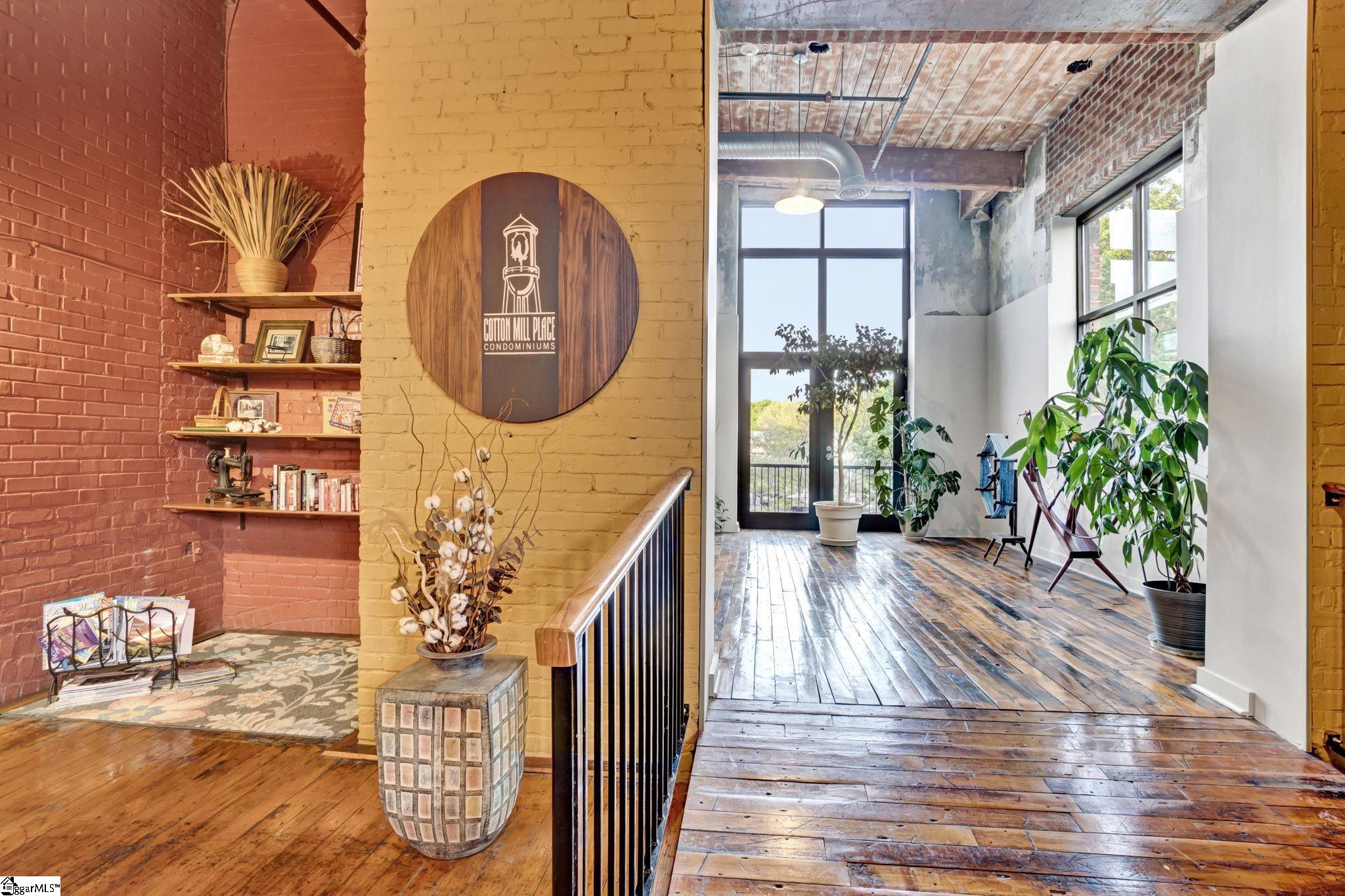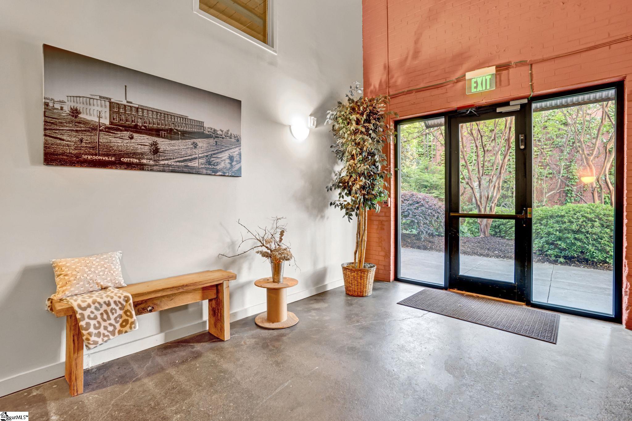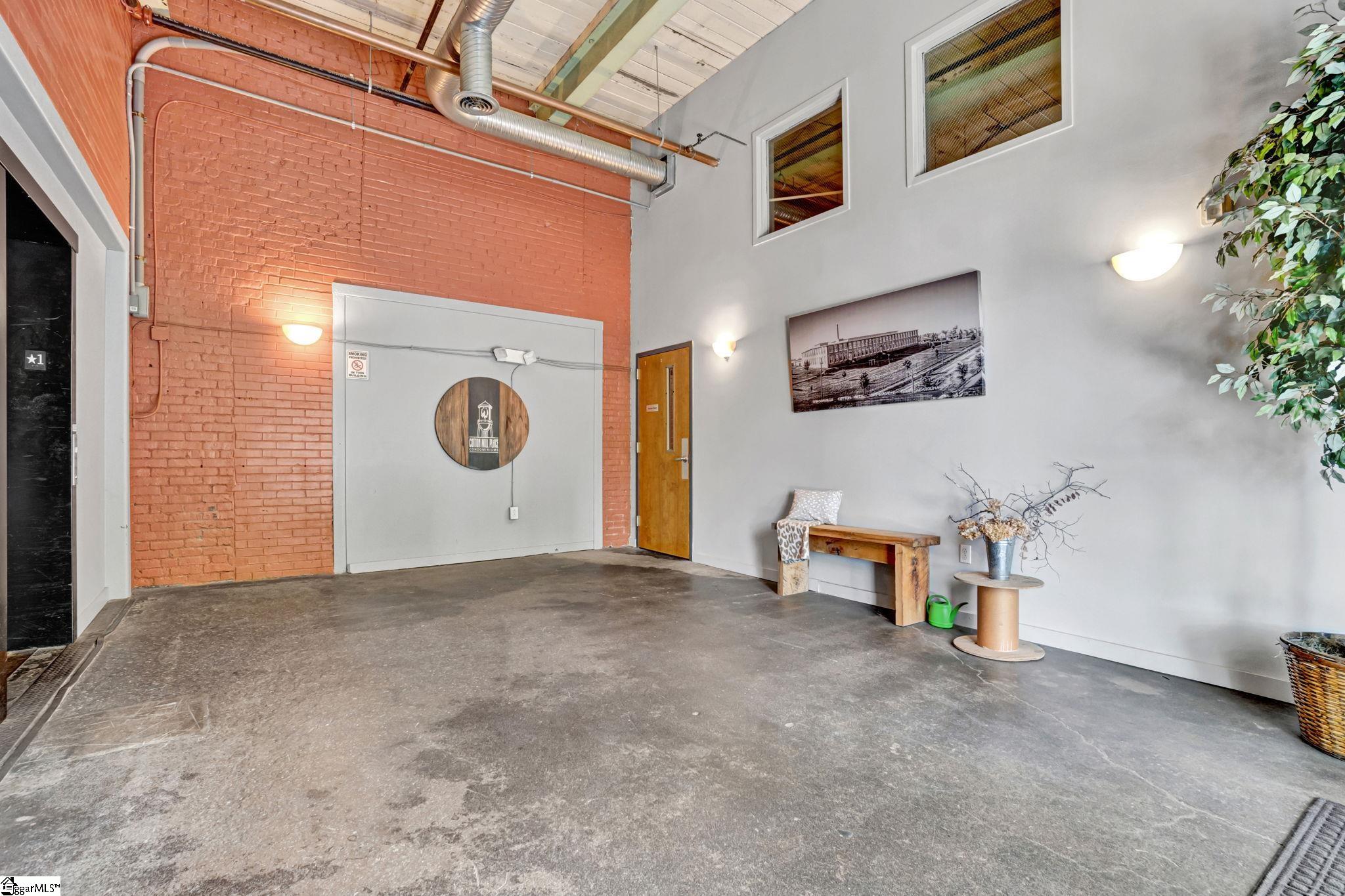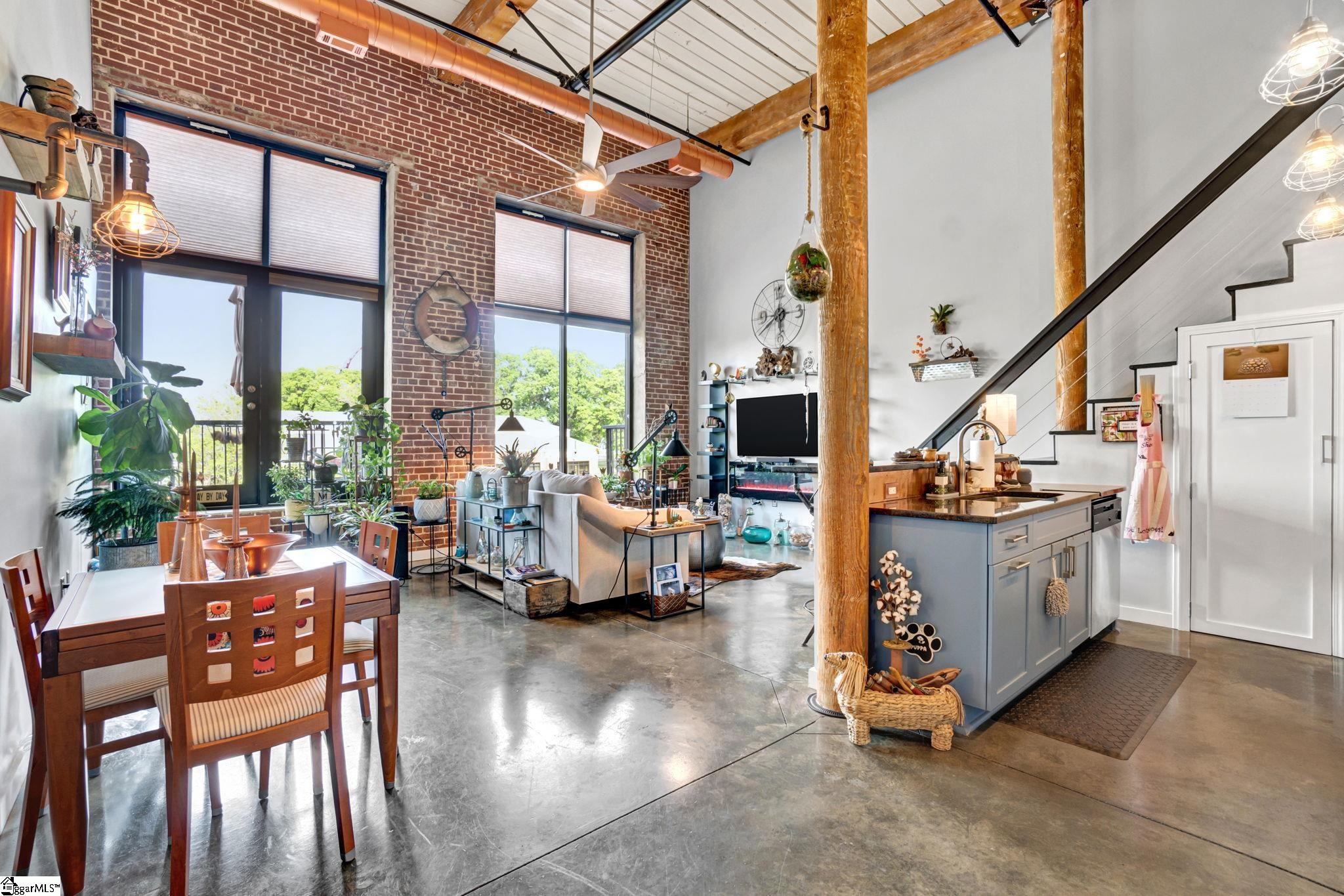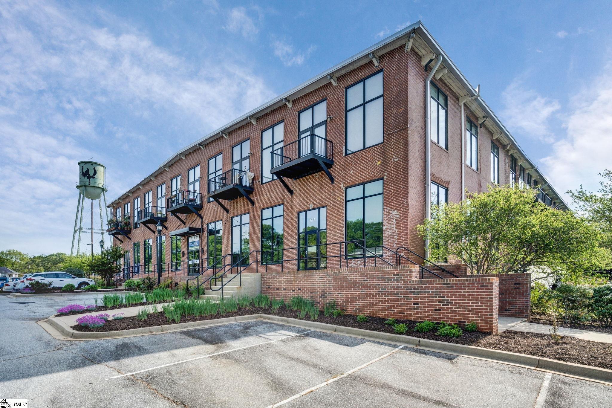 Unique Contemporary Living with Vintage Appeal! This well-maintained 2 BR, 1 BA condo offers an open, airy floor plan highlighted by 18-foot ceilings and oversized windows that fill the space with natural light. Distinctive architectural details – including original brick walls, wood ceilings, exposed beams, and columns – create a warm, character-rich atmosphere. The spacious 16’ x 14’ second bedroom/loft provides flexible living options and can be used as a bedroom, office, or additional living space. Just off the great room, a quaint balcony offers a private outdoor retreat. Community amenities include on-site fitness center, community room, beautifully maintained courtyard with tables/benches, serene pond w/ swings and deck area. A 90 sq. ft. climate-controlled private storage unit adds valuable convenience.Ideally located with quick access to I-85/I-385 and within walking distance to Historic Downtown Simpsonville, this property offers both charm and accessibility.