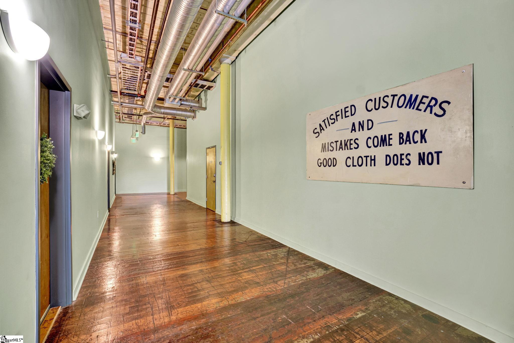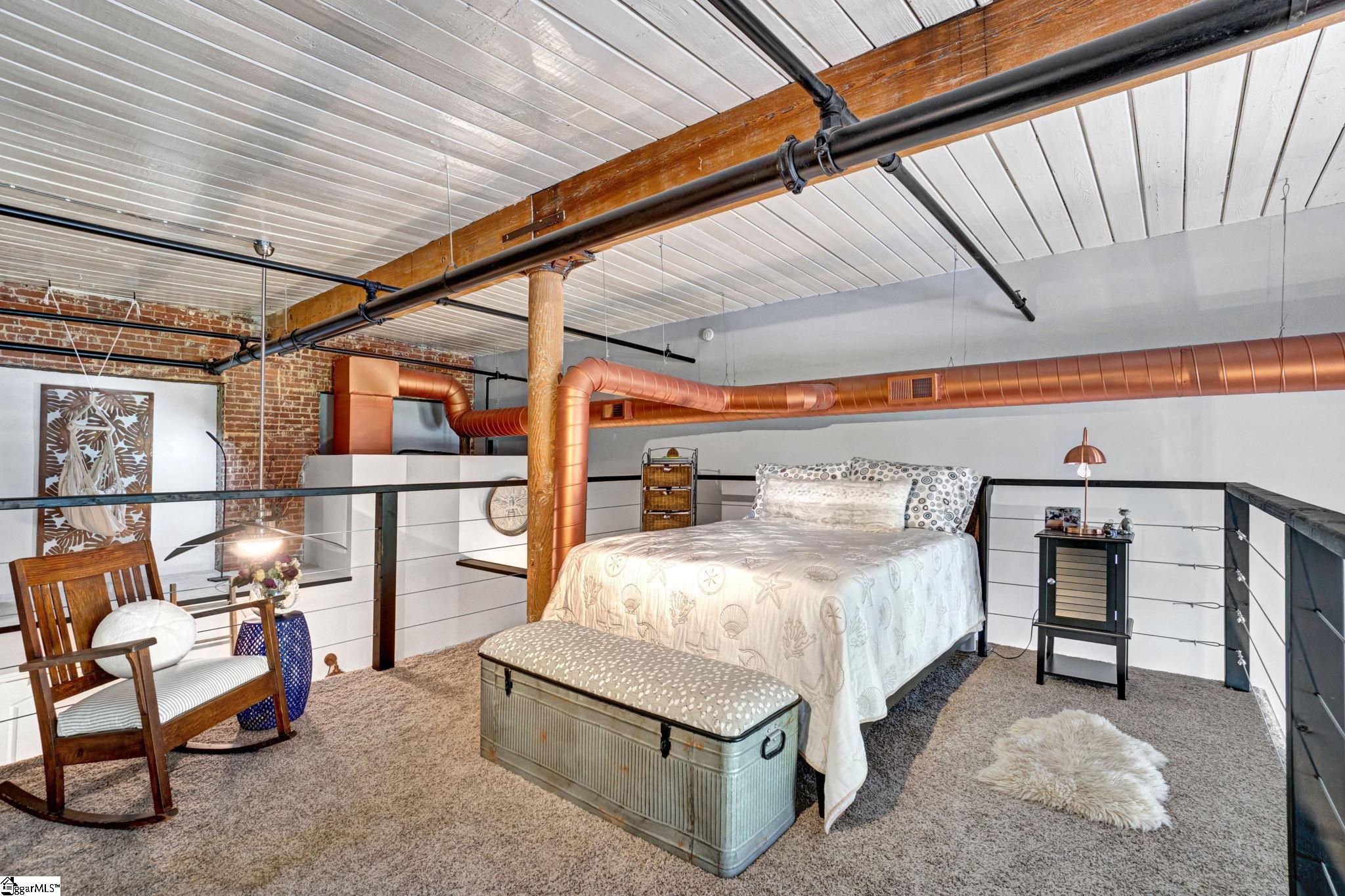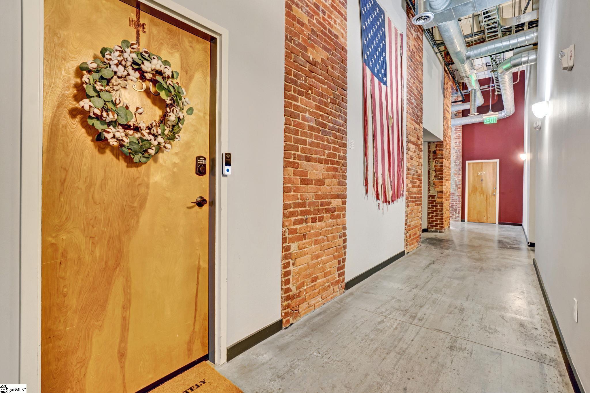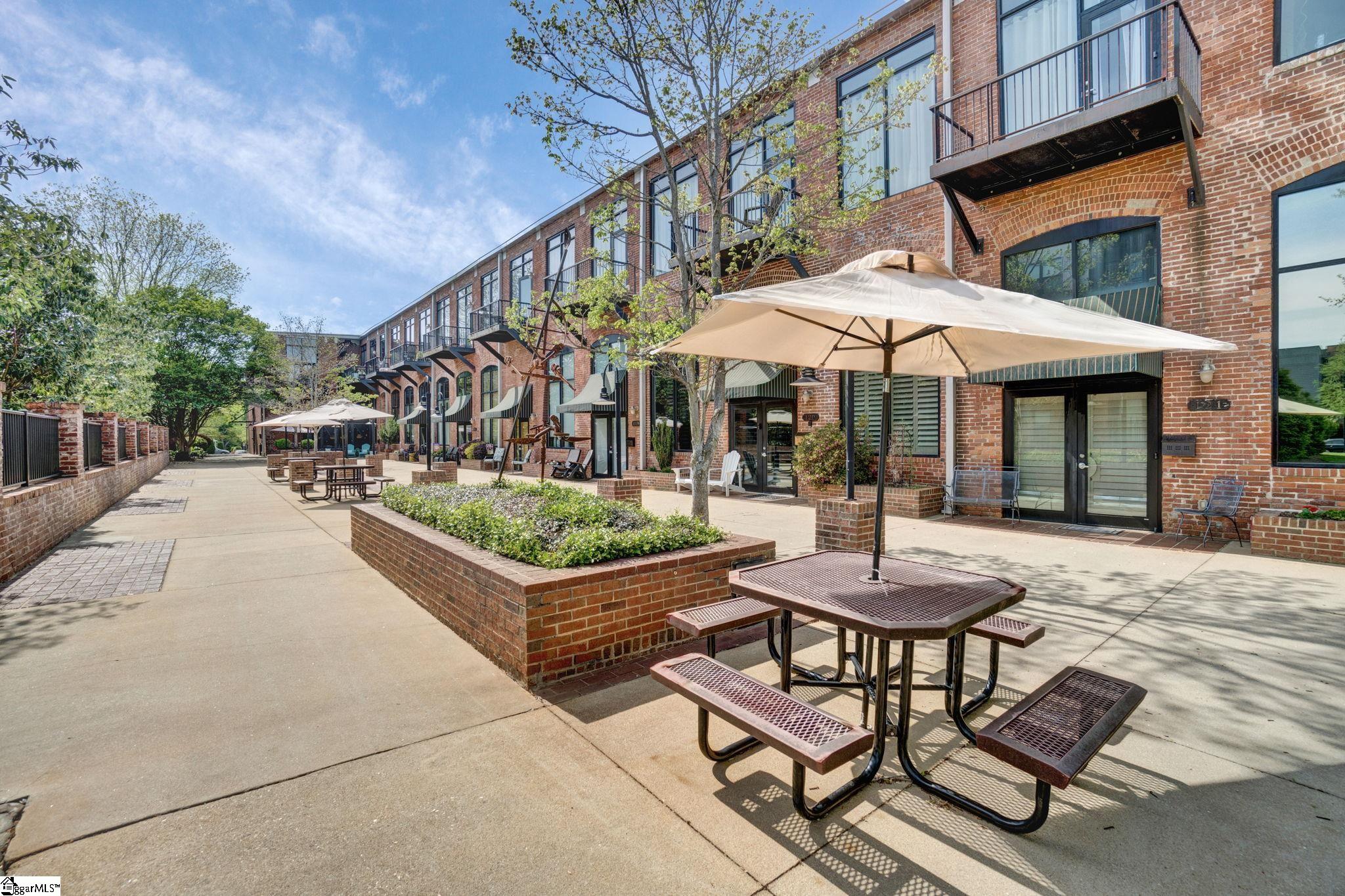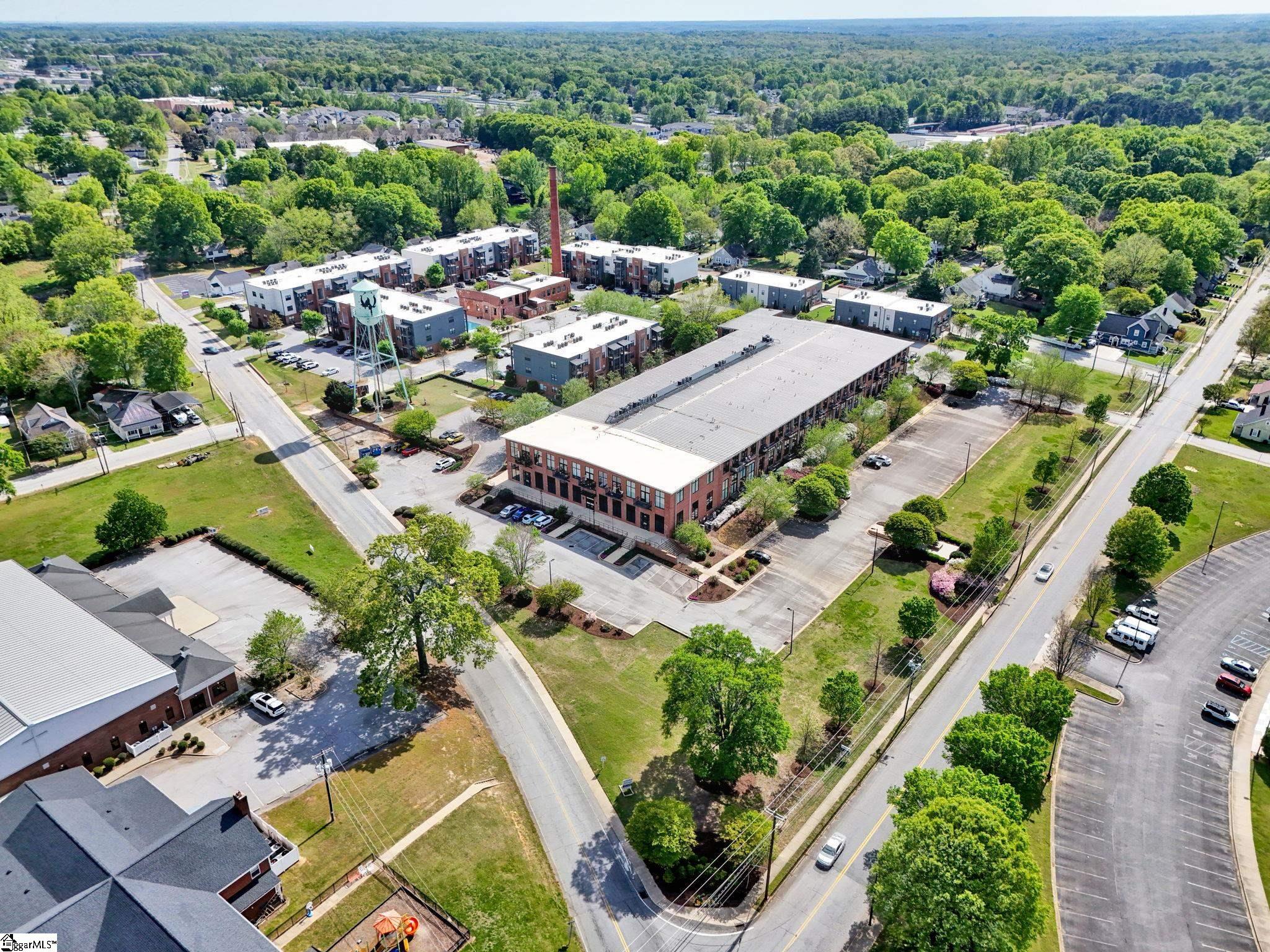 Unique Contemporary Living with Vintage Appeal! This well-maintained 2 BR, 1 BA condo offers an open, airy floor plan highlighted by 18-foot ceilings and oversized windows that fill the space with natural light. Distinctive architectural details – including original brick walls, wood ceilings, exposed beams, and columns – create a warm, character-rich atmosphere. The spacious 16’ x 14’ second bedroom/loft provides flexible living options and can be used as a bedroom, office, or additional living space. Just off the great room, a quaint balcony offers a private outdoor retreat. Community amenities include on-site fitness center, community room, beautifully maintained courtyard with tables/benches, serene pond w/ swings and deck area. A 90 sq. ft. climate-controlled private storage unit adds valuable convenience.Ideally located with quick access to I-85/I-385 and within walking distance to Historic Downtown Simpsonville, this property offers both charm and accessibility.