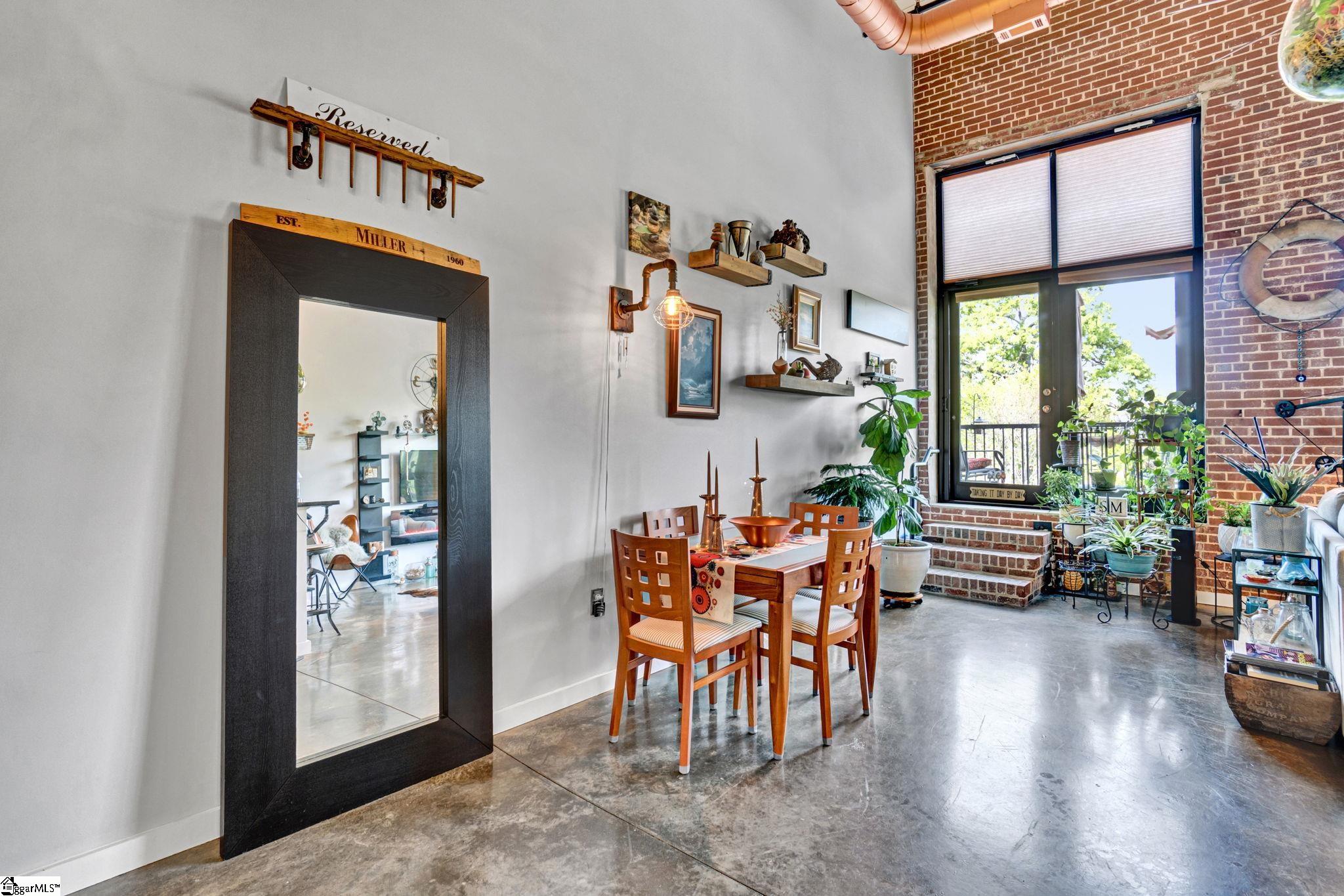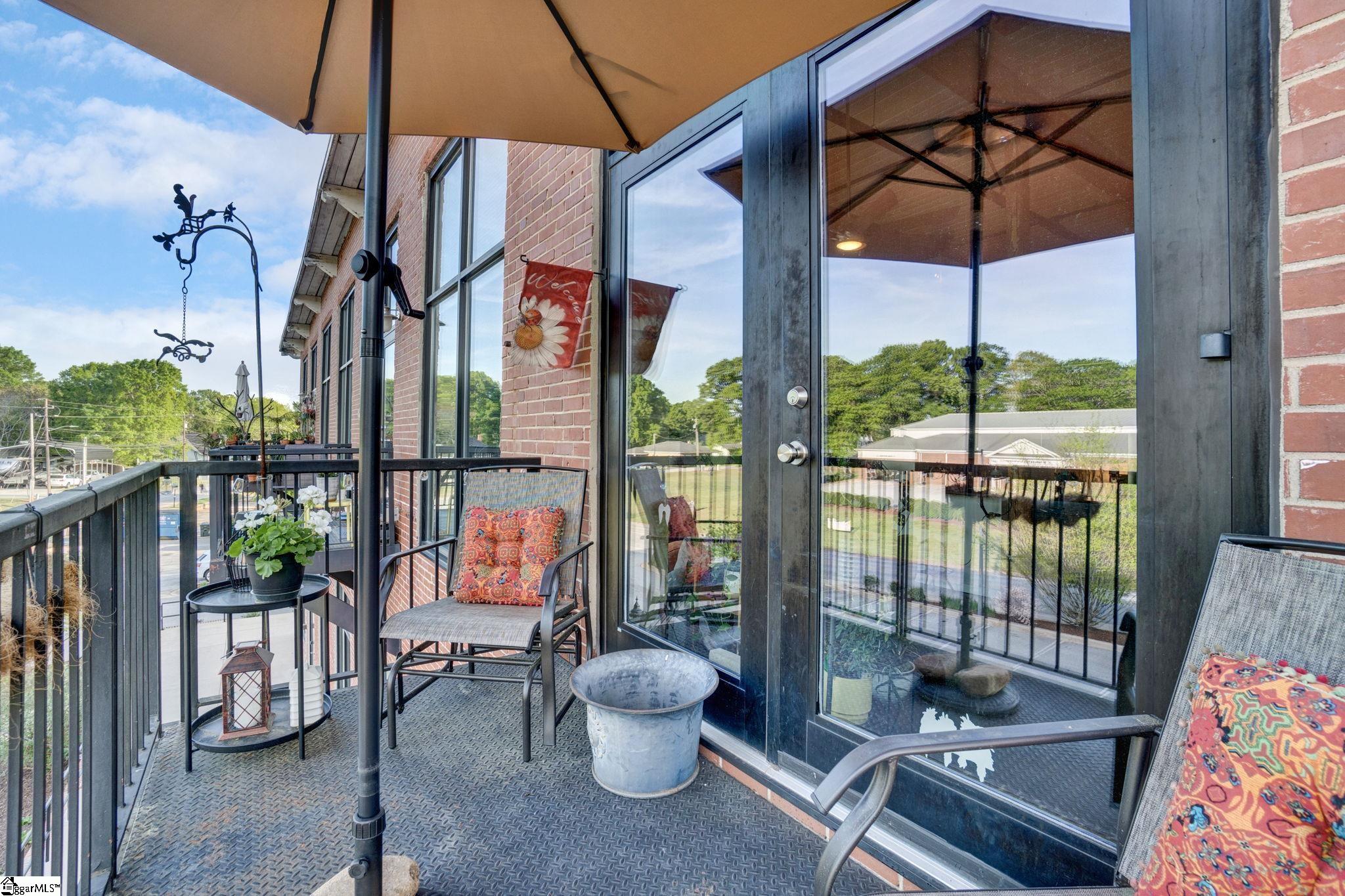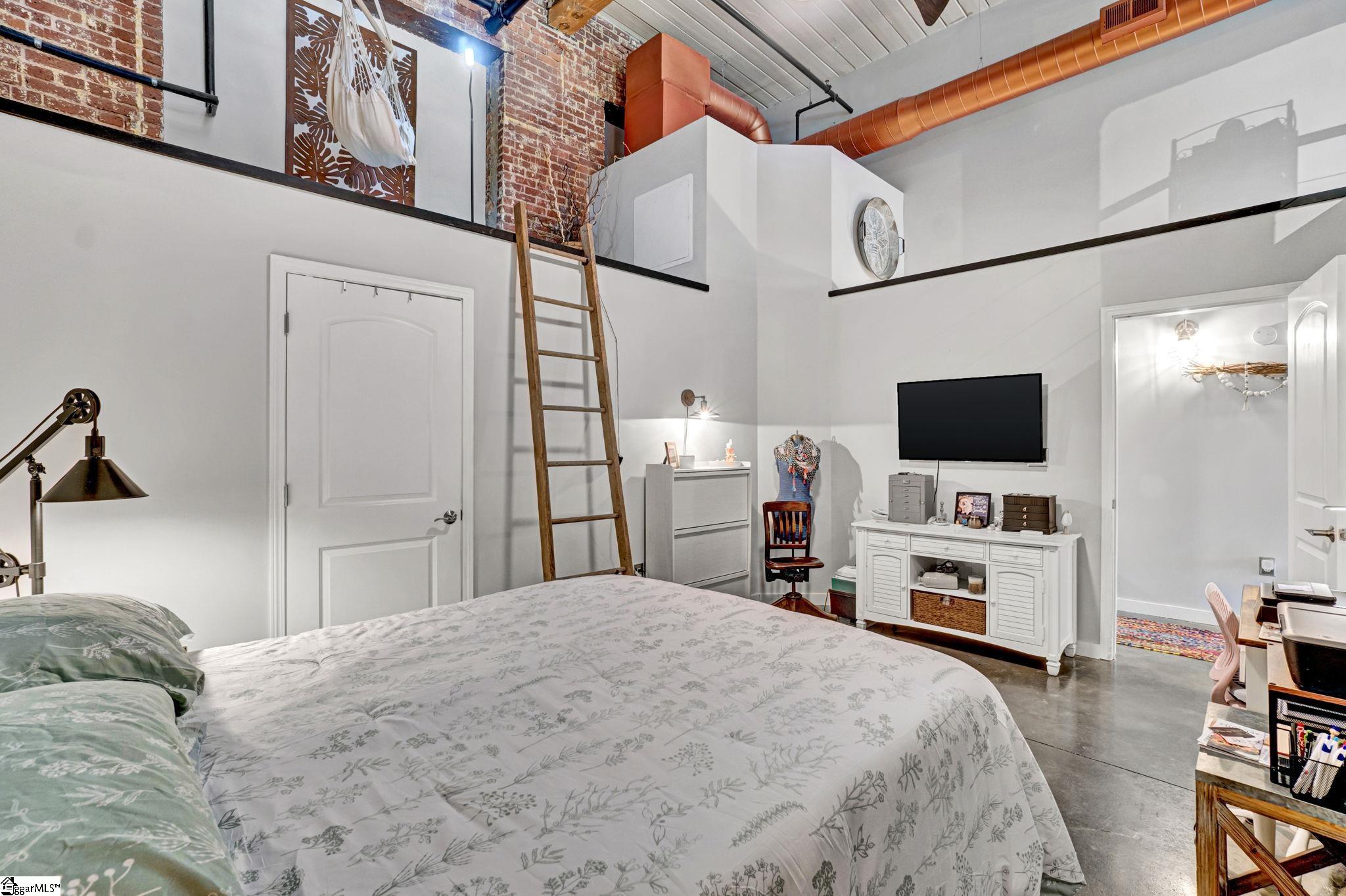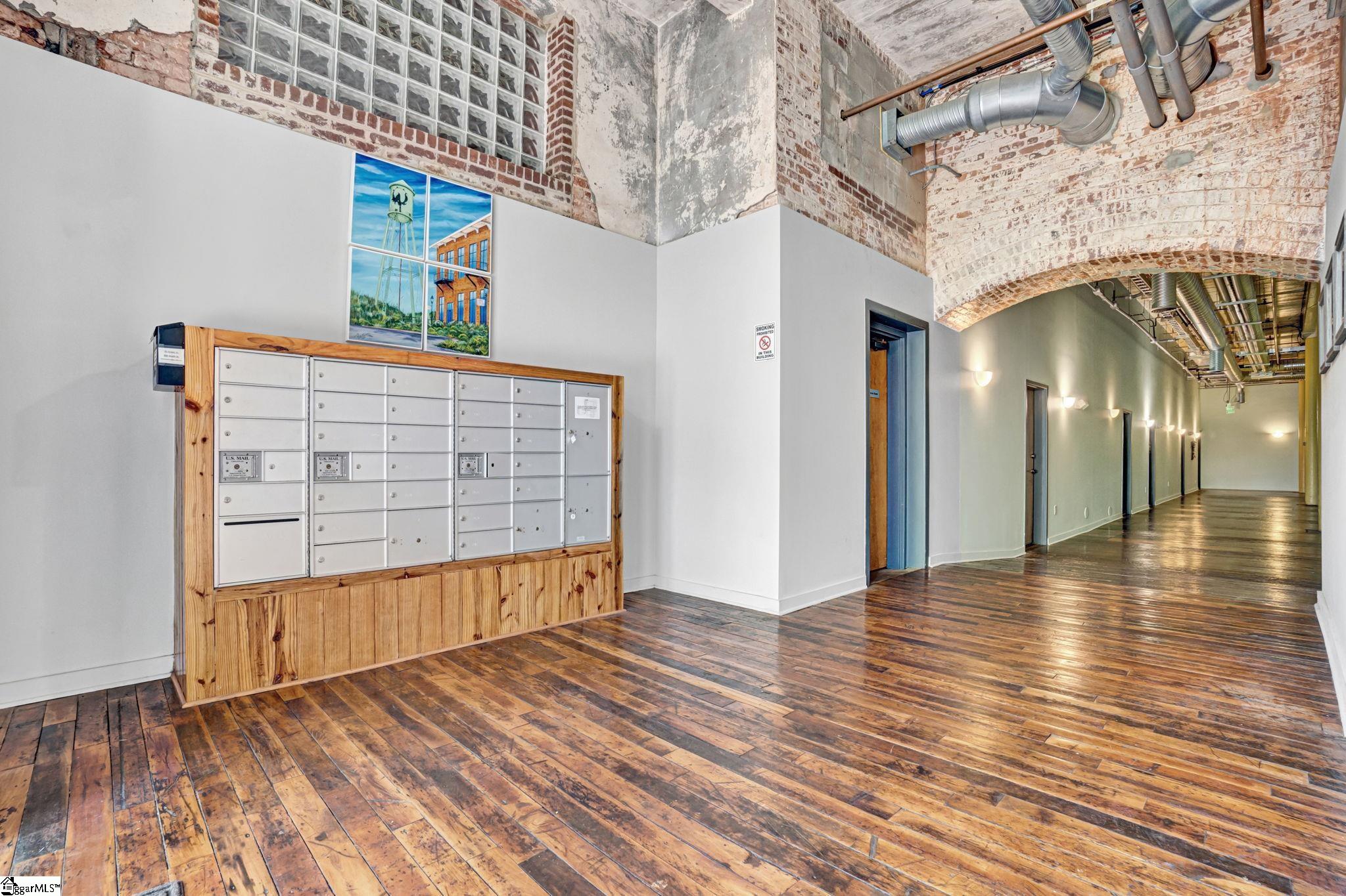 Unique Contemporary Living with Vintage Appeal! This well-maintained 2 BR, 1 BA condo offers an open, airy floor plan highlighted by 18-foot ceilings and oversized windows that fill the space with natural light. Distinctive architectural details – including original brick walls, wood ceilings, exposed beams, and columns – create a warm, character-rich atmosphere. The spacious 16’ x 14’ second bedroom/loft provides flexible living options and can be used as a bedroom, office, or additional living space. Just off the great room, a quaint balcony offers a private outdoor retreat. Community amenities include on-site fitness center, community room, beautifully maintained courtyard with tables/benches, serene pond w/ swings and deck area. A 90 sq. ft. climate-controlled private storage unit adds valuable convenience.Ideally located with quick access to I-85/I-385 and within walking distance to Historic Downtown Simpsonville, this property offers both charm and accessibility.
