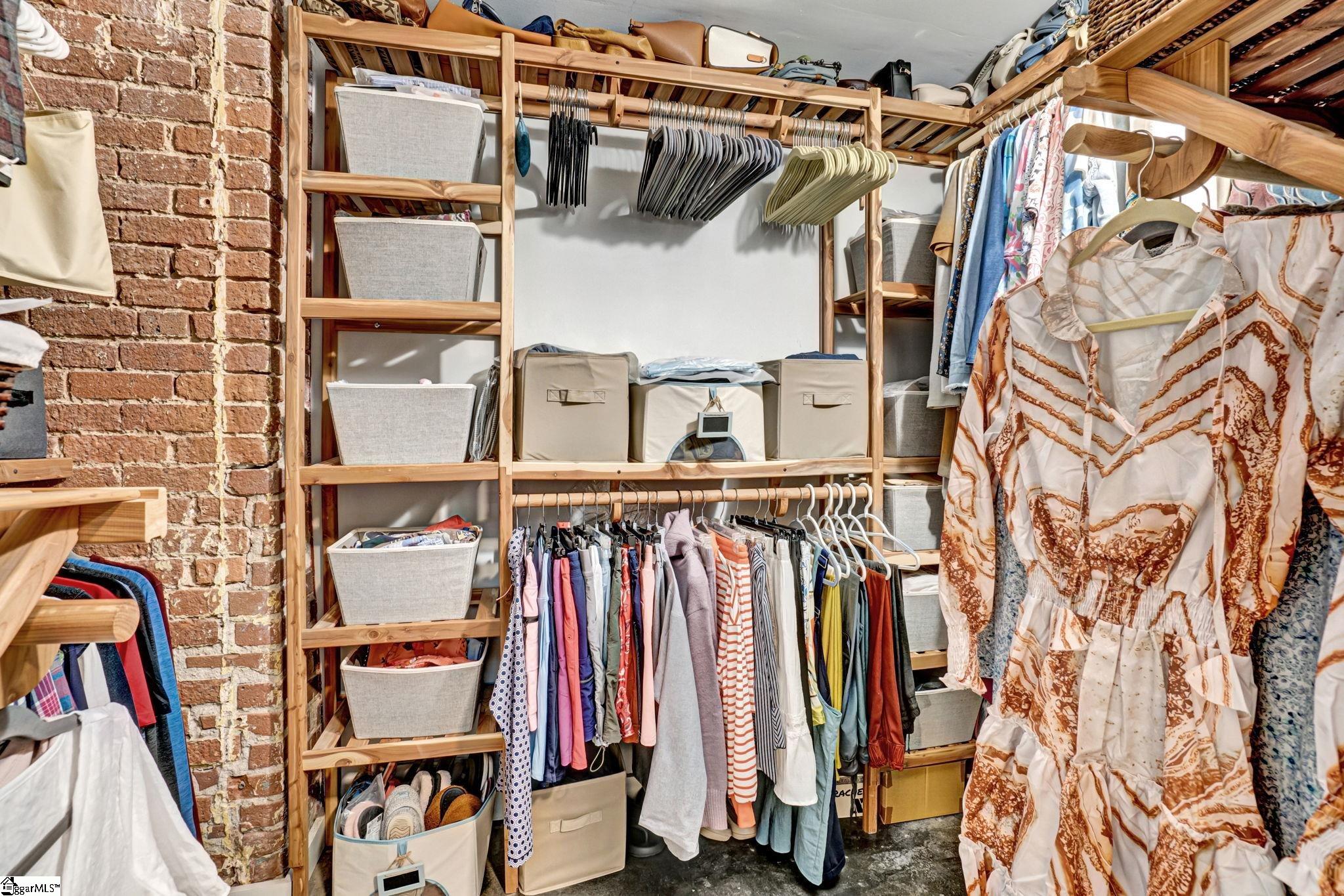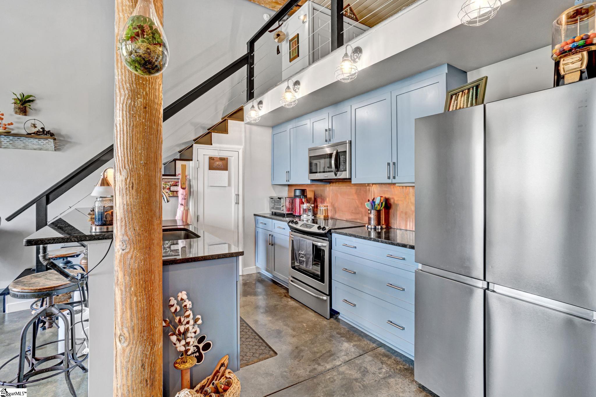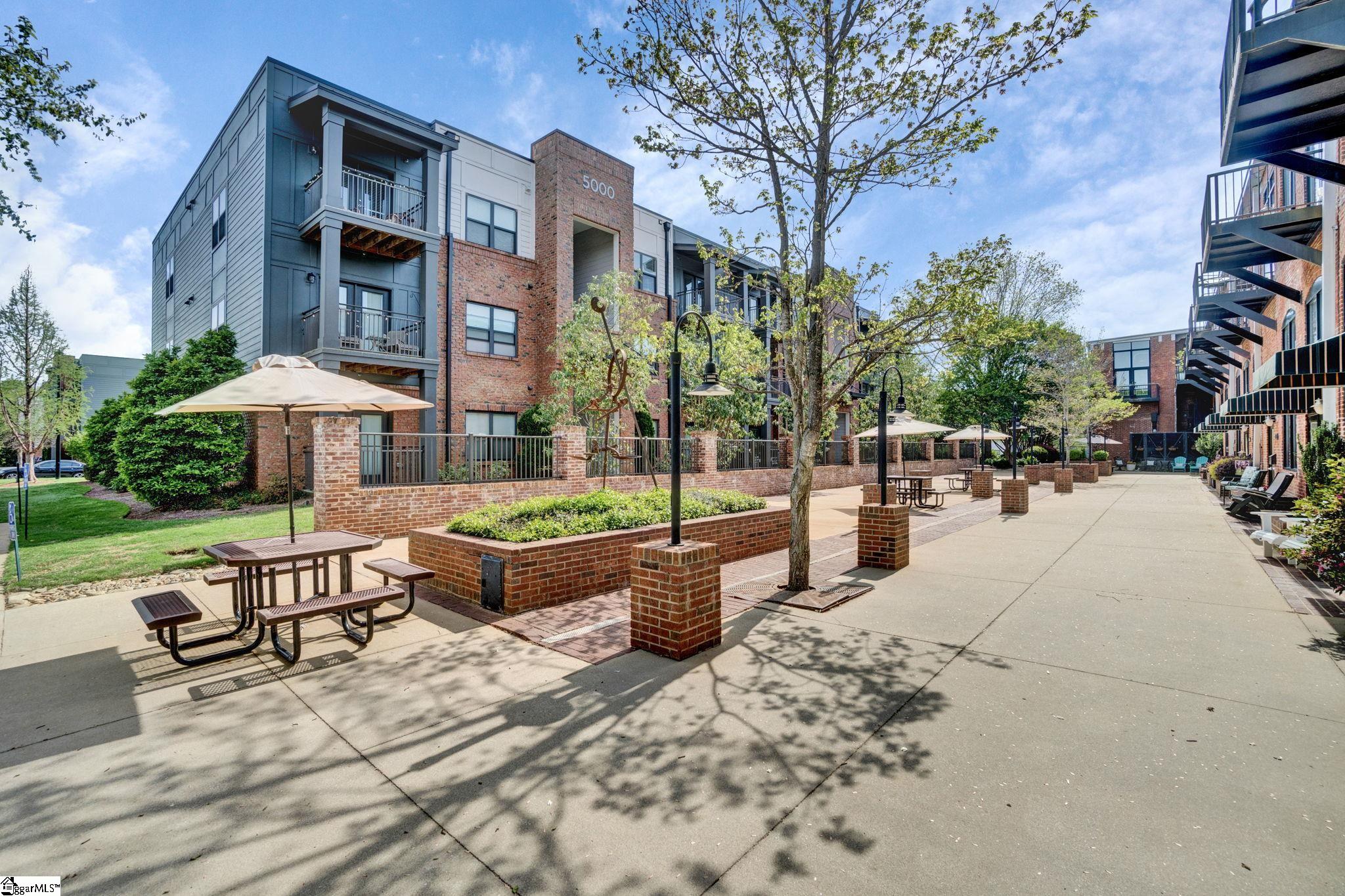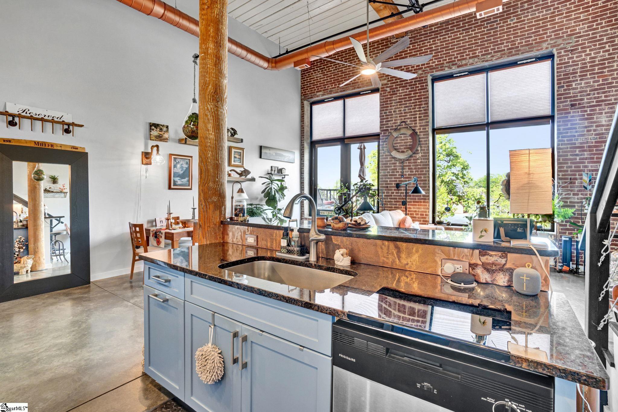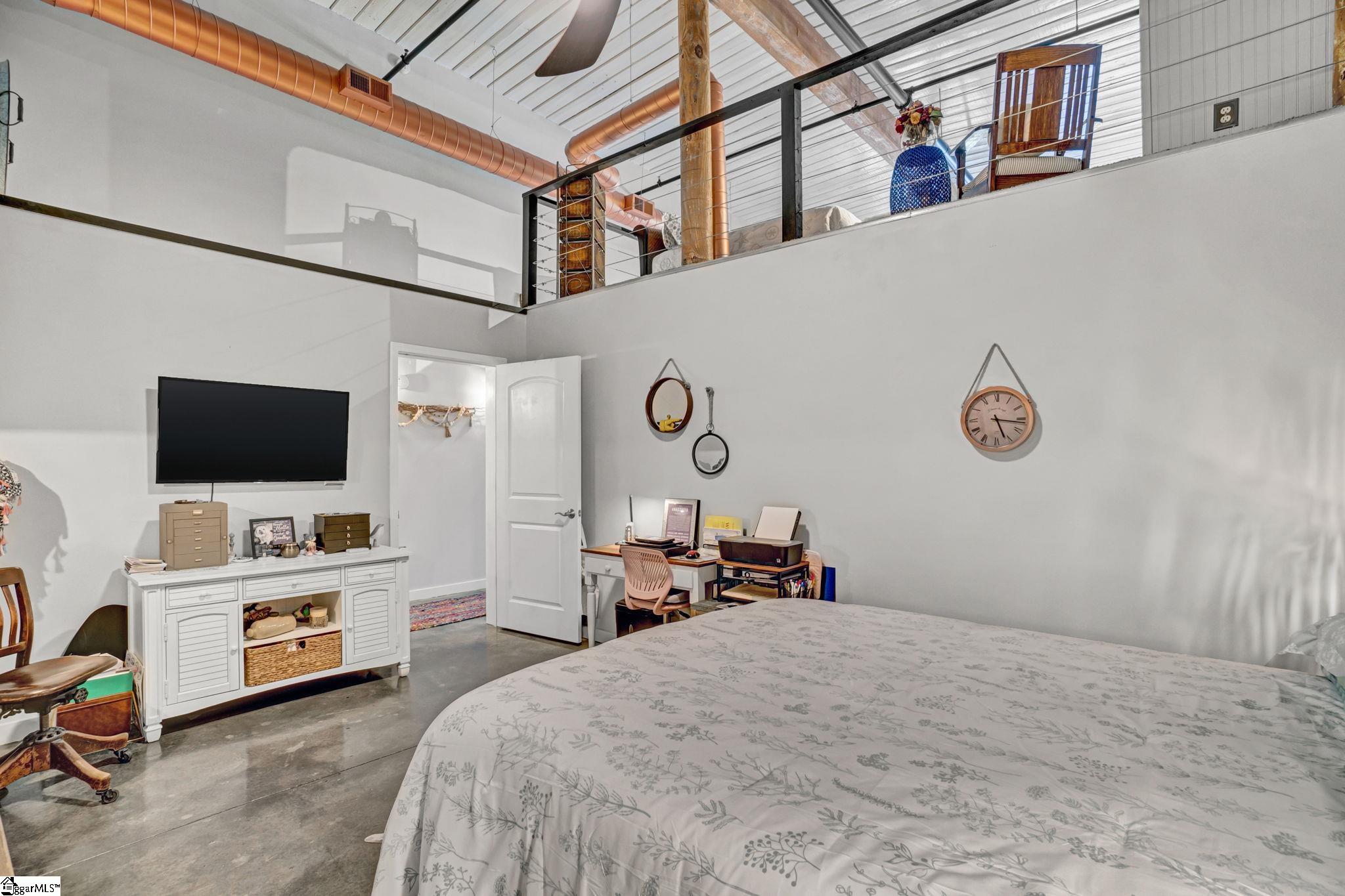 Unique Contemporary Living with Vintage Appeal! This well-maintained 2 BR, 1 BA condo offers an open, airy floor plan highlighted by 18-foot ceilings and oversized windows that fill the space with natural light. Distinctive architectural details – including original brick walls, wood ceilings, exposed beams, and columns – create a warm, character-rich atmosphere. The spacious 16’ x 14’ second bedroom/loft provides flexible living options and can be used as a bedroom, office, or additional living space. Just off the great room, a quaint balcony offers a private outdoor retreat. Community amenities include on-site fitness center, community room, beautifully maintained courtyard with tables/benches, serene pond w/ swings and deck area. A 90 sq. ft. climate-controlled private storage unit adds valuable convenience.Ideally located with quick access to I-85/I-385 and within walking distance to Historic Downtown Simpsonville, this property offers both charm and accessibility.