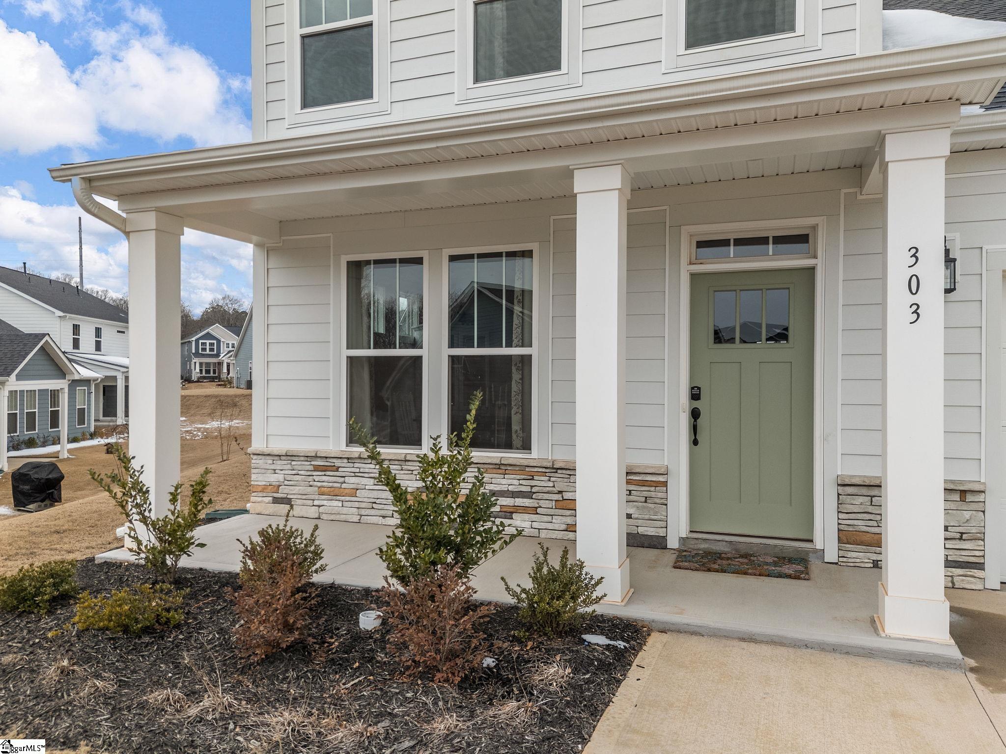 Welcome to 303 Eskdale road, this beautiful like new home located in the Mulberry Subdivision. This premier craftsman style home is like brand new and ready for its new owners. Enjoy access to the swamp rabbit trail, minutes from I385 , Heritage park amphitheater, and the charming downtown Fountain Inn only minutes away! You will fall in love with this popular floor plan that boost over 2,700 square feet. Entering you have a foyer that offers a dinning room that flow’s seamlessly into your kitchen and living room area. The kitchen offers an abundant amount of upgrades. Plenty of cabinet space, large island, quartz countertops, tile backsplash ,farm house sink, pendent lighting, and stainless steel appliances to remain. Extra windows were thoughtfully added for natural lighting. The great room provides agas fireplace for those warm cozy evenings. On the first floor you have a guest bathroom, primary suite and a walk in laundry room with cabinets for extra storage. The primary suite boost trey ceilings, walk in closet, and a full bath with double sinks, and a beautiful tile shower. On the second floor you have three great size bedrooms, a loft area, a finished storage room, and another full bath with a tub/shower combination. Outdoors you can enjoy your expanded covered wrap around back porch and the largest lot in the neighborhood! This bright, welcoming home has so much to offer that you must see yourself.