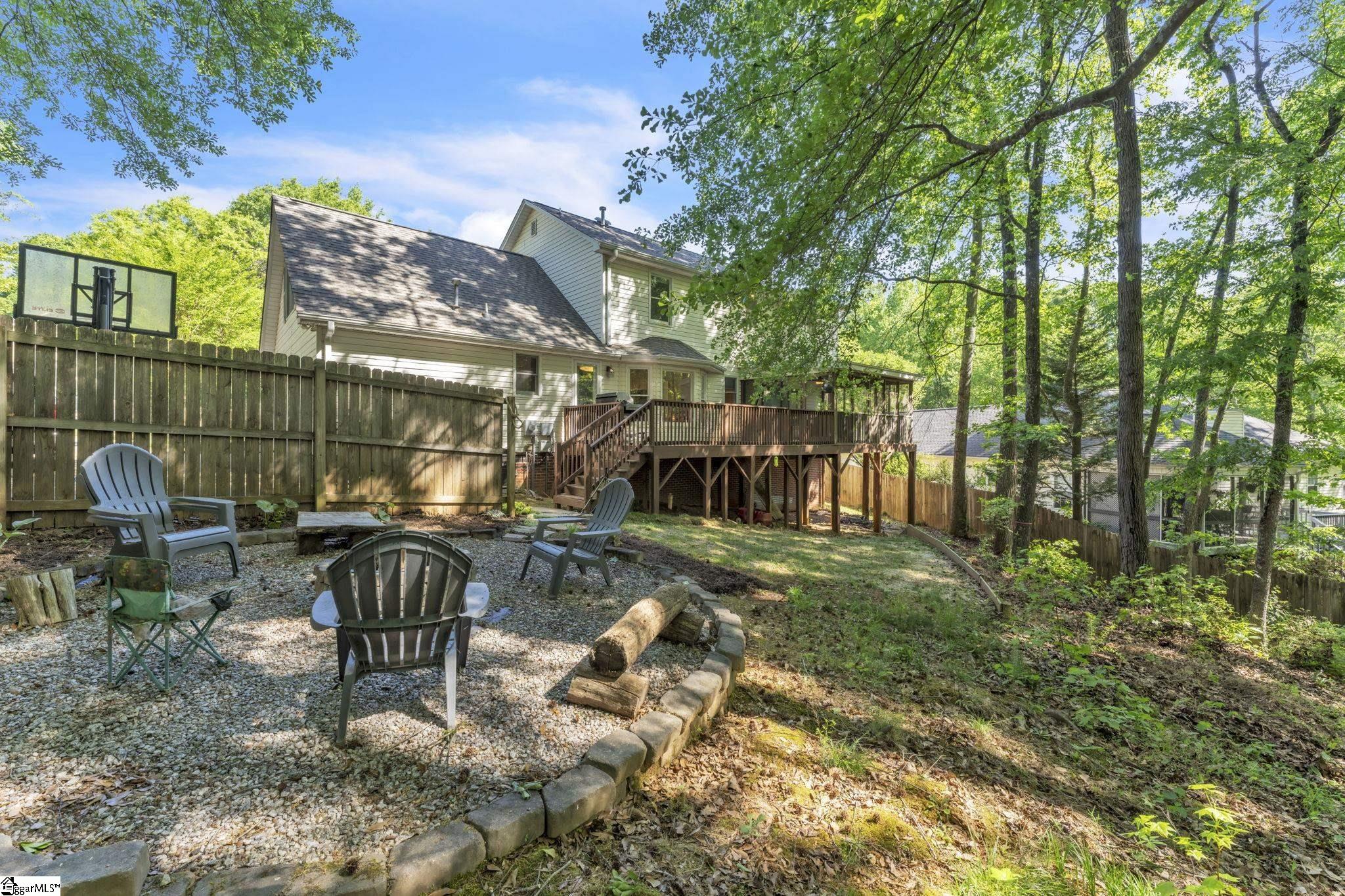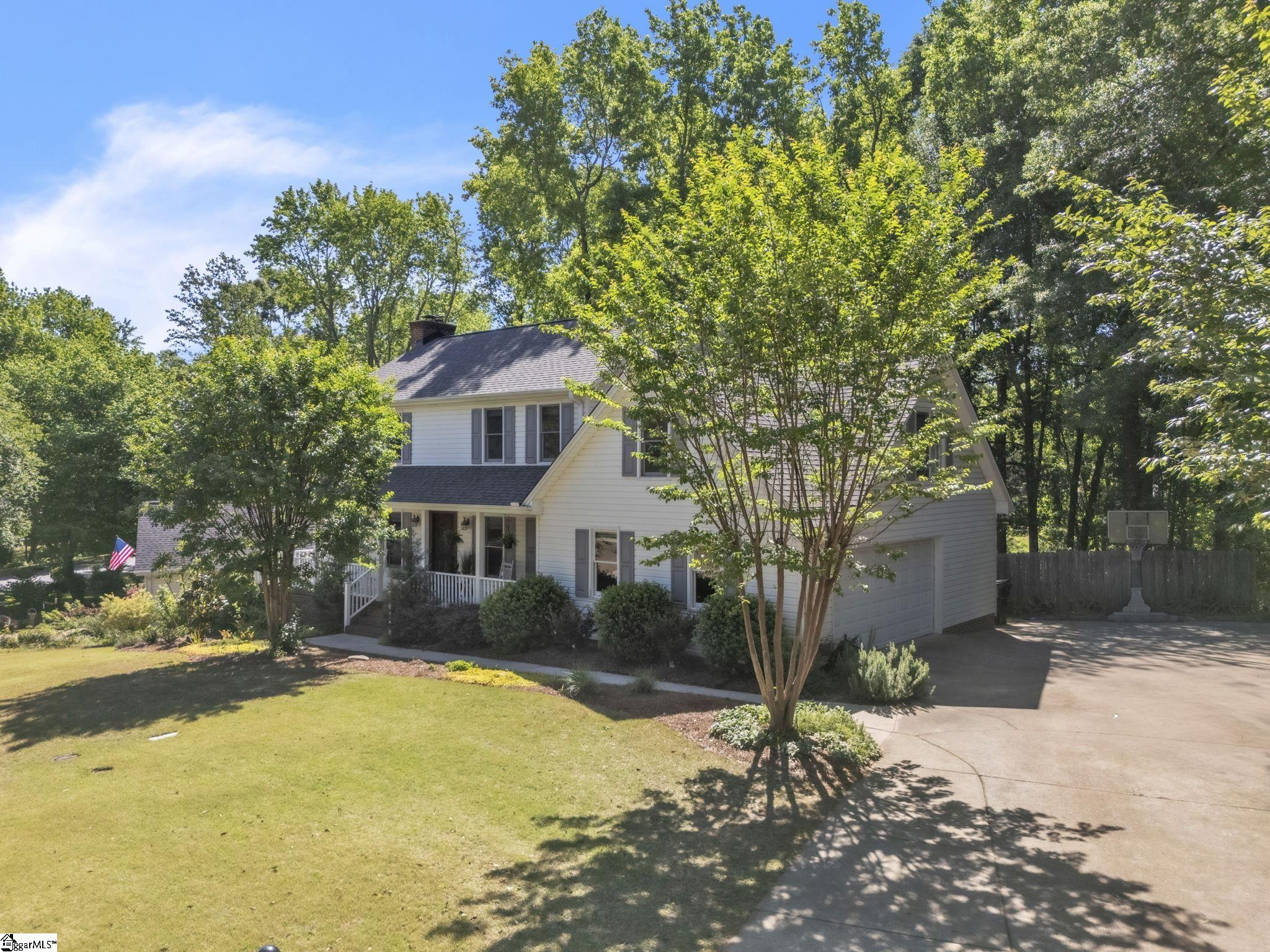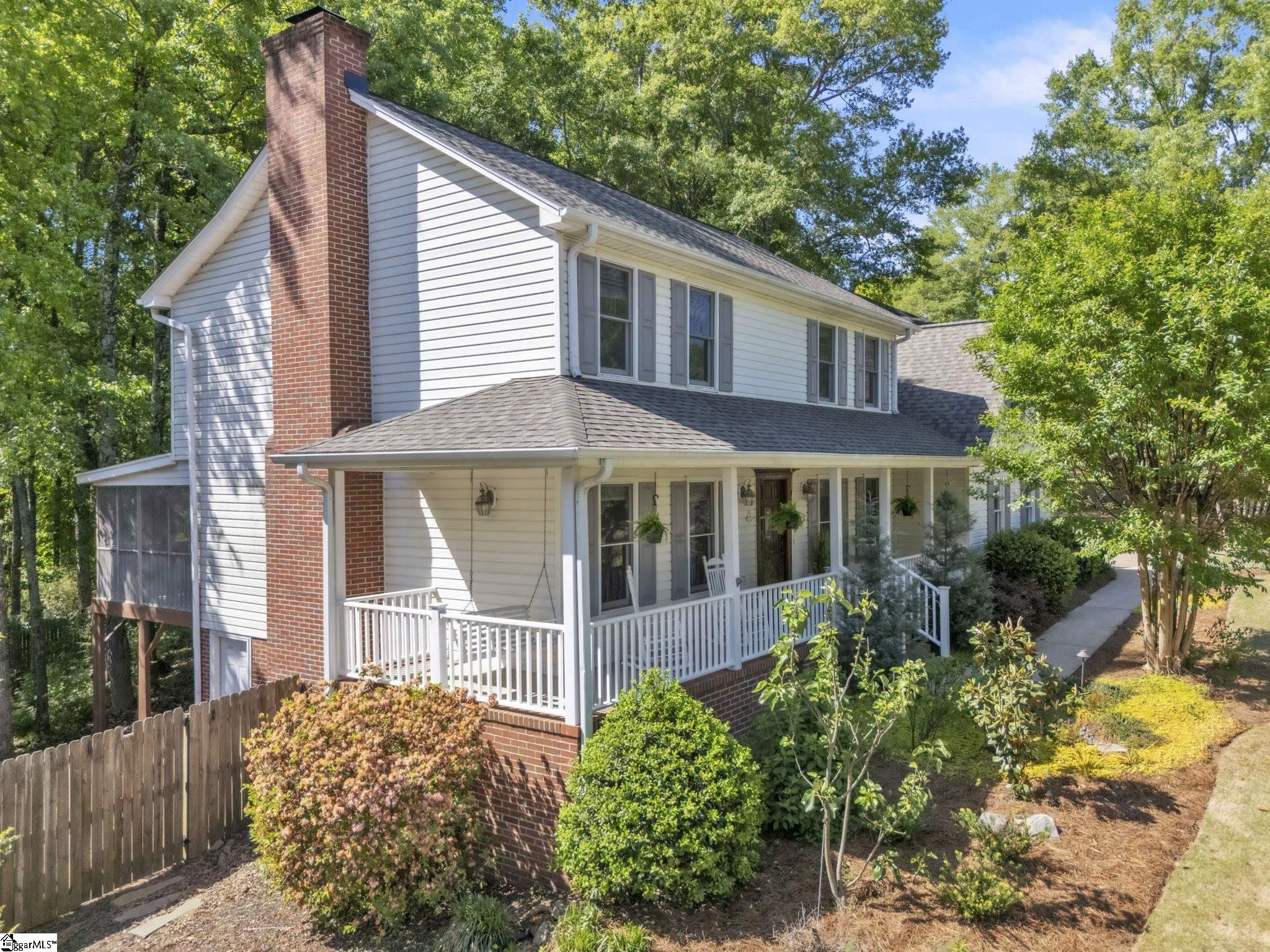 Welcome to 304 Wagoncreek Drive, a well-maintained home in tucked away in the established Wagon Creek neighborhood offering a great blend of space, privacy, and thoughtful updates in a convenient Simpsonville location. From the moment you arrive, you’ll notice the inviting front porch and side-facing garage, giving the home strong curb appeal and a more traditional feel. Inside, the main level features hardwood floors throughout, a spacious living room centered around a full masonry fireplace, and a formal dining room that works just as well for everyday living as it does for hosting. The kitchen offers plenty of workspace with updated finishes, stainless steel appliances, and a bright breakfast area overlooking the backyard. Upstairs, hardwood floors continue throughout all four bedrooms. The primary suite offers ample space along with a full bathroom, while the fourth bedroom includes its own full bathroom, making it a great setup for guests or added privacy. Where this home really stands out is outside. The screened porch and large back deck overlook a wooded backyard, creating a private setting that’s hard to find. Whether it’s morning coffee on the porch or evenings around the fire pit, this space is easy to enjoy year-round. Also, check out the fully finished room in the garage that can be a perfect flex space! Additional updates include a new roof installed in 2026 and an HVAC system replaced in 2022, offering added peace of mind for the next owner. Located less than a mile from Downtown Simpsonville (you could literally walk to it), a few mins from I-385, and everyday shopping and dining, this home offers both convenience and a setting that feels tucked away. The new buyer is also eligible to get pool memberships at either at Poinsettia or Powderhorn pools!