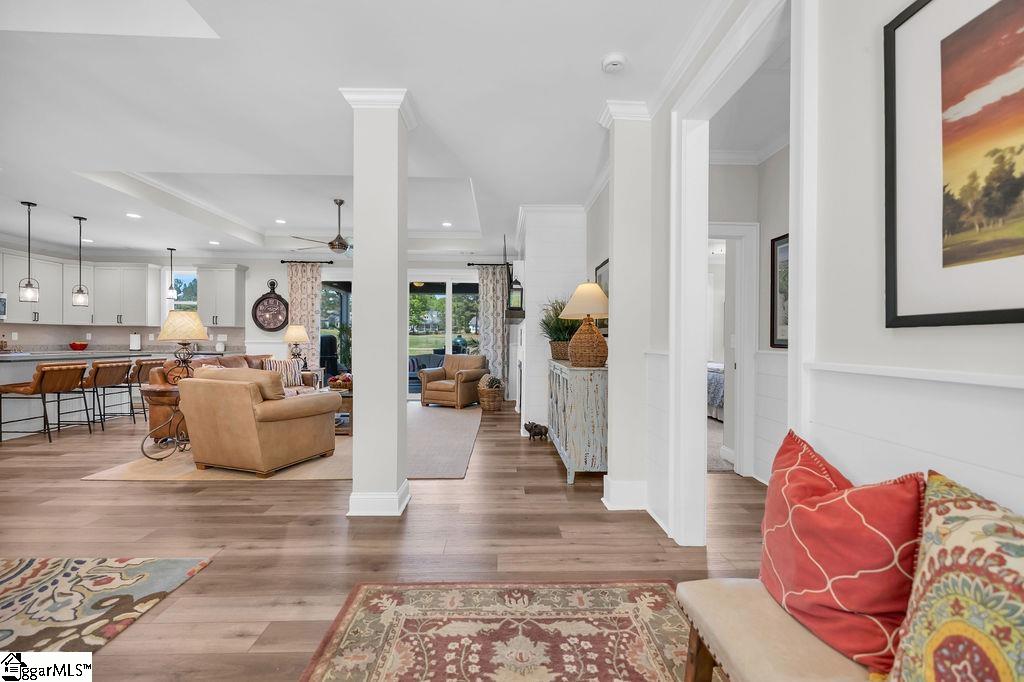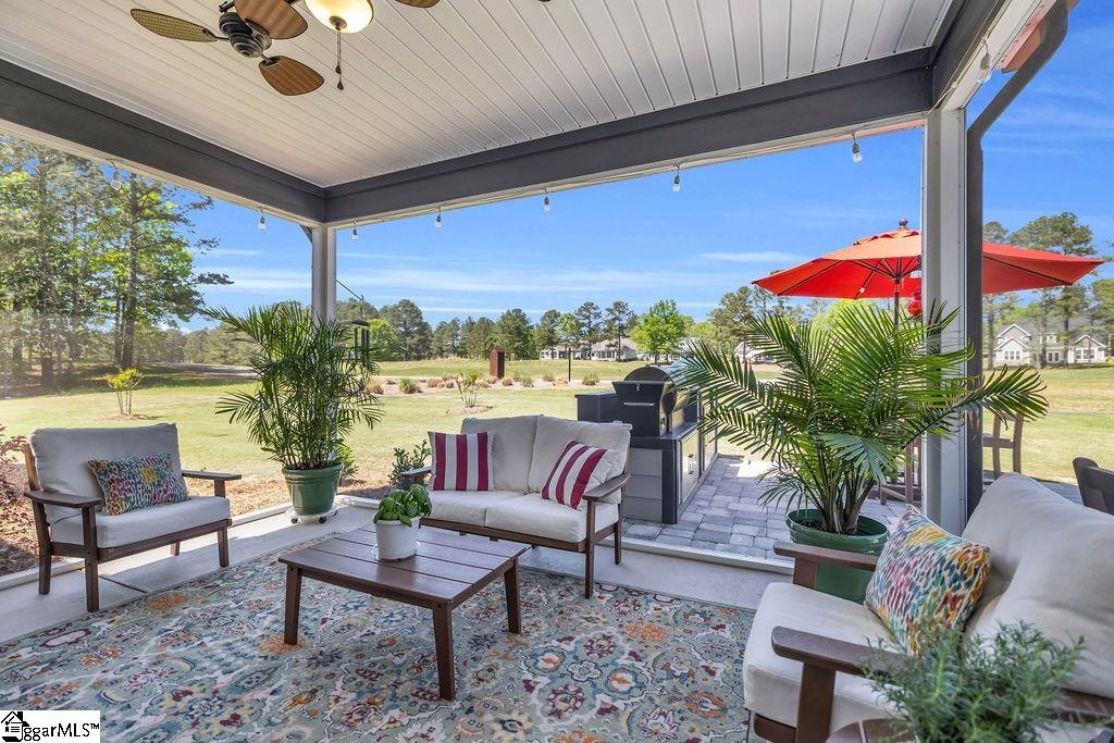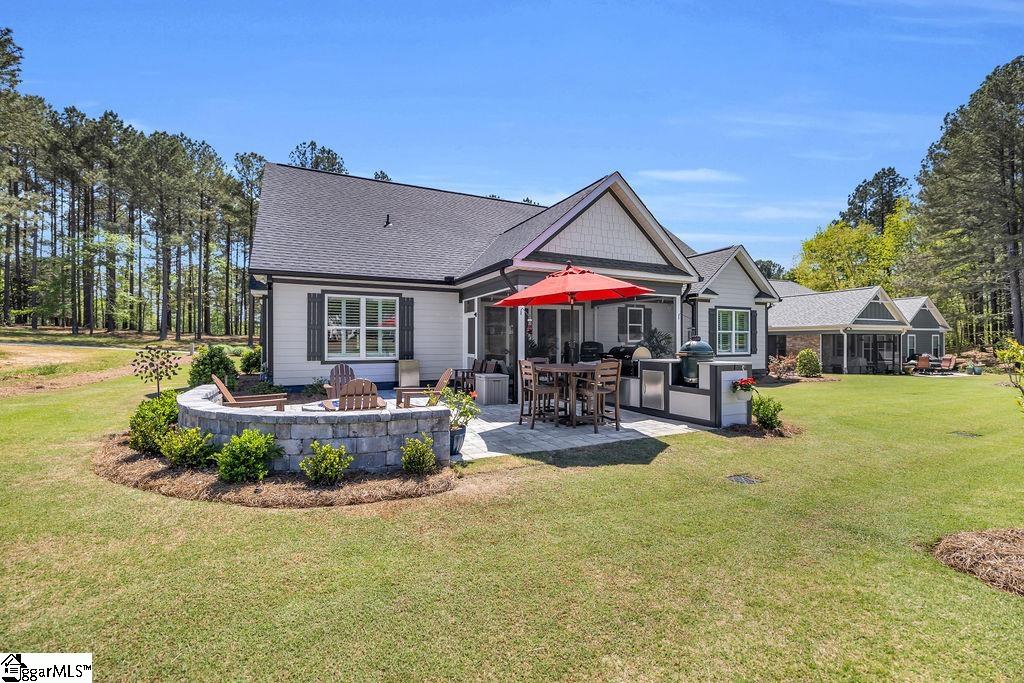 Be still, my heart — this is the one! From the moment you step inside, you’ll know you’ve found the home and lifestyle you’ve been searching for. Instantly, your eyes are drawn to the breathtaking, expansive views of the private Grand Harbor Golf Course and tranquil pond—best enjoyed from your spacious screened porch or the beautifully paved patio with outdoor kitchen and custom gas firepit. Imagine evenings spent here, greeting friendly neighbors as they make their way across the green of Hole 15 or tee off on Hole 16. Better than new, this thoughtfully designed, two-year-old home perfectly blends upscale elegance with casual comfort. The open-concept layout welcomes you with a stunning great room, cozy fireplace, large island, and a formal dining area—ideal for both everyday living and entertaining. Beautiful shiplap accents, a soothing neutral color palette, wide-plank luxury vinyl flooring, and plantation shutters throughout create a light, airy, and inviting atmosphere. Your gourmet kitchen is sure to impress, featuring a gas stove, luxury appliances, custom cabinetry, tile backsplash, and deep shelved pantry—everything you need to cook, gather, and celebrate life’s moments. The split floor plan offers 4 bedrooms and 3 full baths, providing privacy and flexibility for your family and guests. The primary suite is a peaceful retreat with a spa-like bath showcasing a large, tiled walk-in shower with frameless glass doors, dual-sink vanity, and a generous custom closet. Upstairs, a spacious bonus room with its own full bath offers endless possibilities—a guest suite, media room, office, or fitness space. Outside, enjoy year-round relaxation and entertaining on your screened porch and paver patio, complete with a custom gas firepit and built-in summer kitchen for grilling, smoking and entertaining your family and friends with your grill skills. The finished 2.5-car garage offers epoxy floors, a separate golf cart door, and ample storage. And the best part? Your initial membership to Grand Harbor Golf & Yacht Club is included—offering access to resort-style amenities including a lakeside pool, fitness center, tennis and pickleball courts, marina, restaurants, equestrian center, playground, and a vibrant social calendar. Every detail of this home was designed for comfort, connection, and style. All that’s missing is you. (Gas grill and smoker negotiable with appropriate offer)